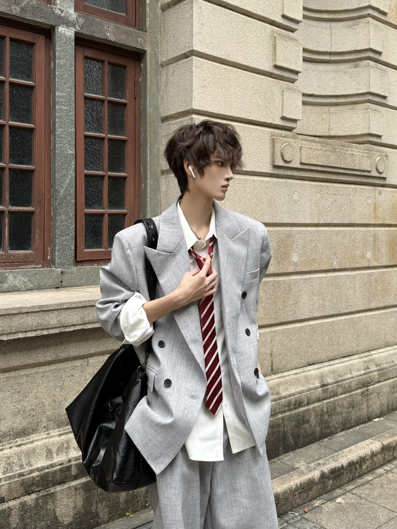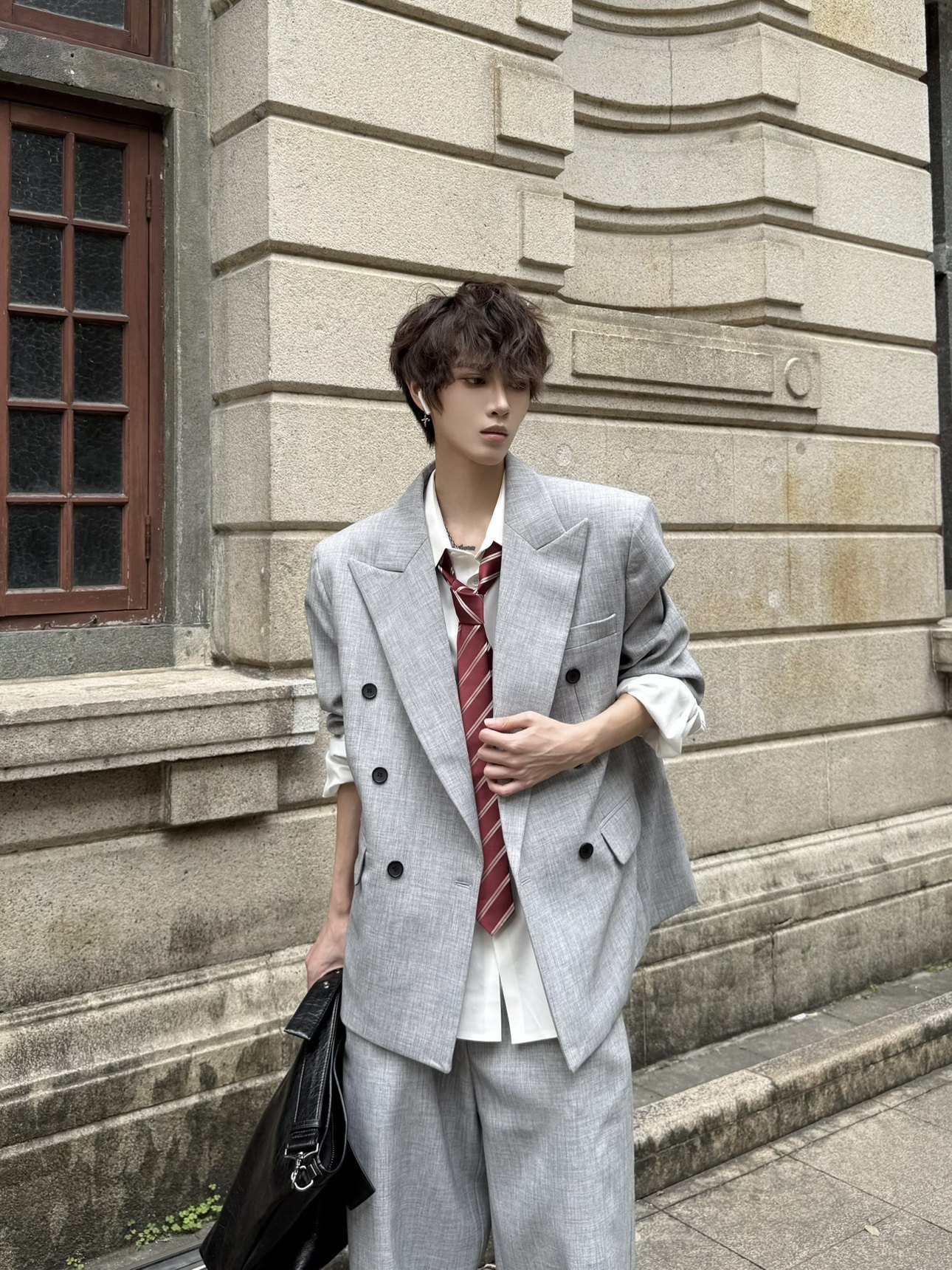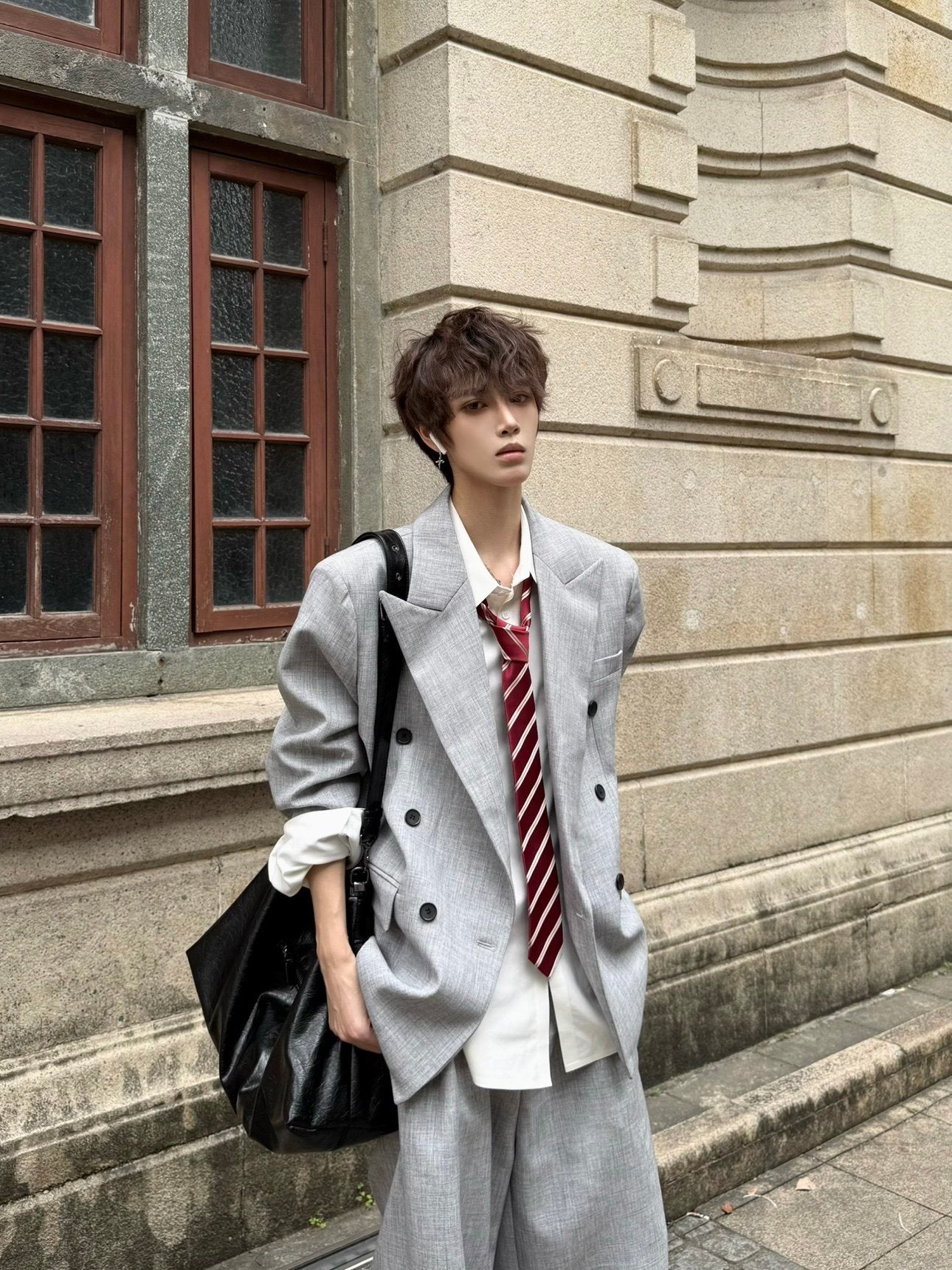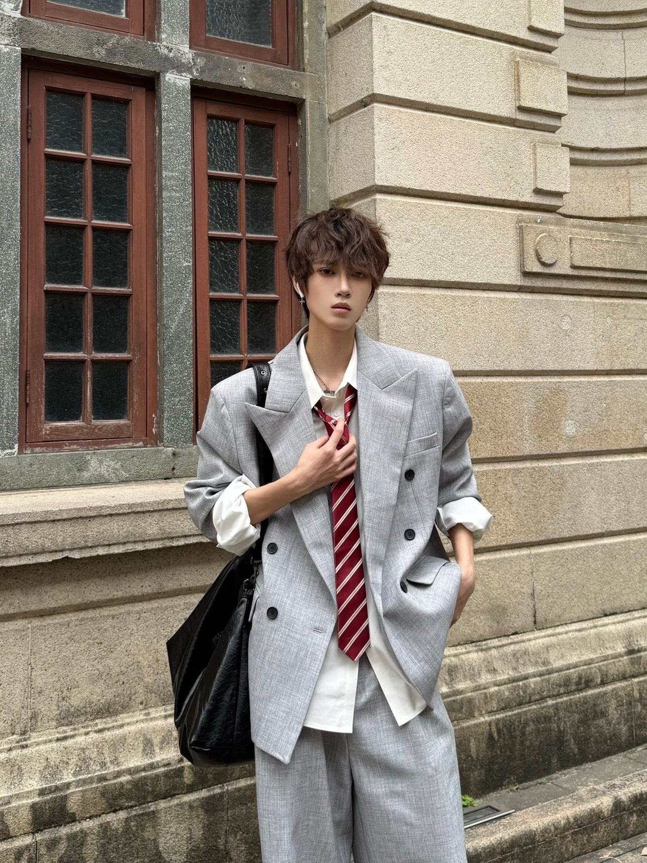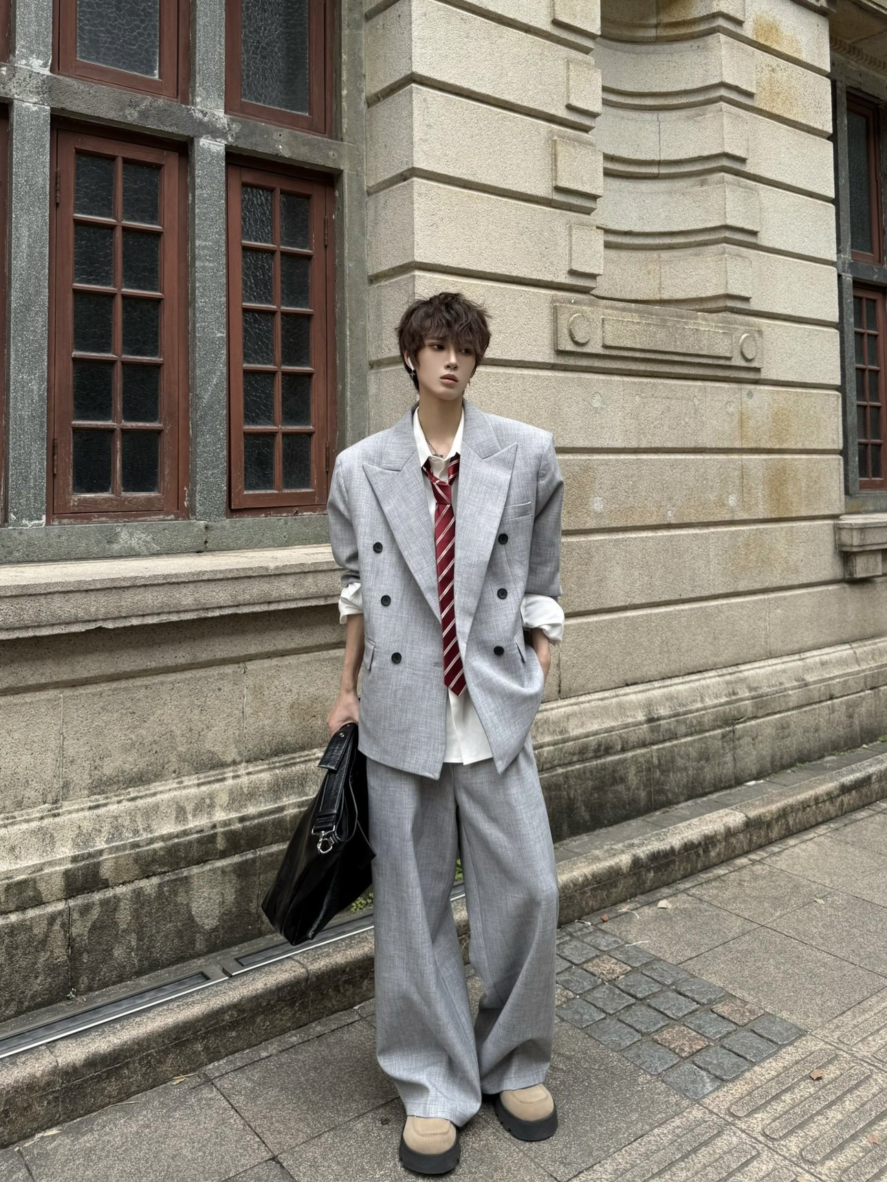 Shoulder-Pad Oversize Tailored Jacket & Wide Leg Trousers Setup WN23158
