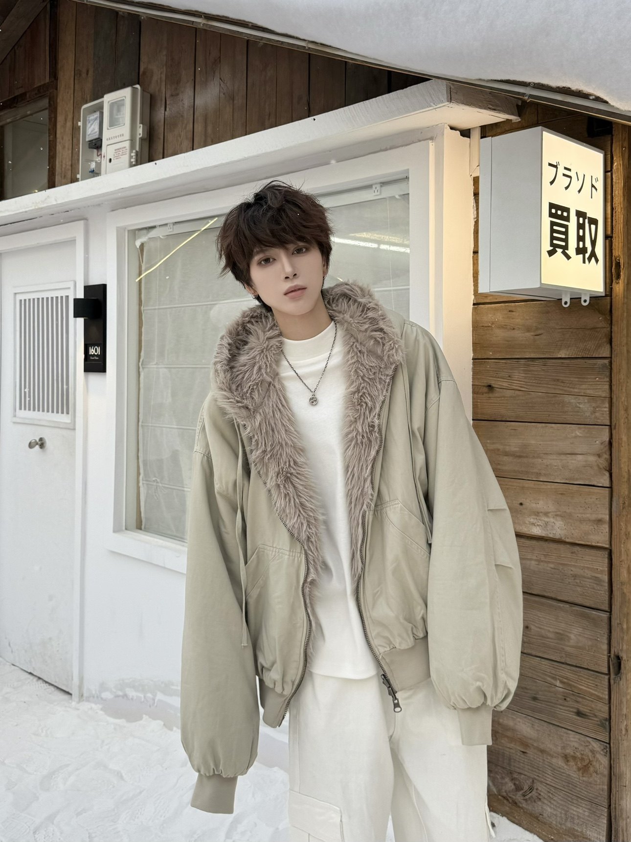 Hooded Fake Fur Collar Two-Way Wear Jacket WN23192
