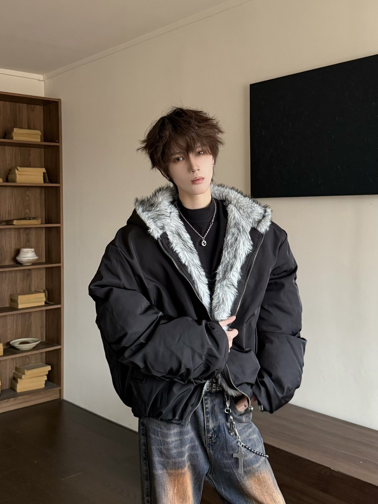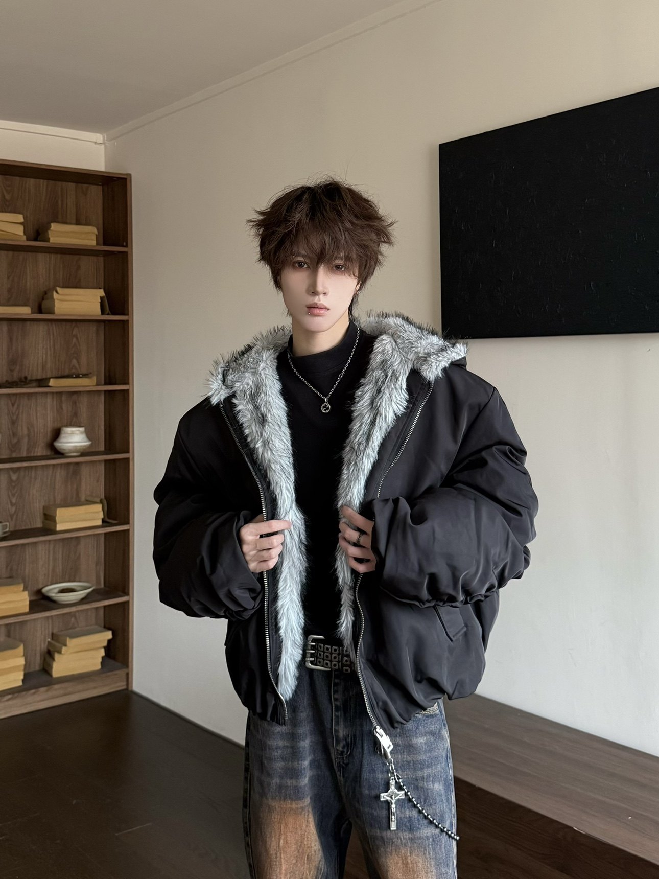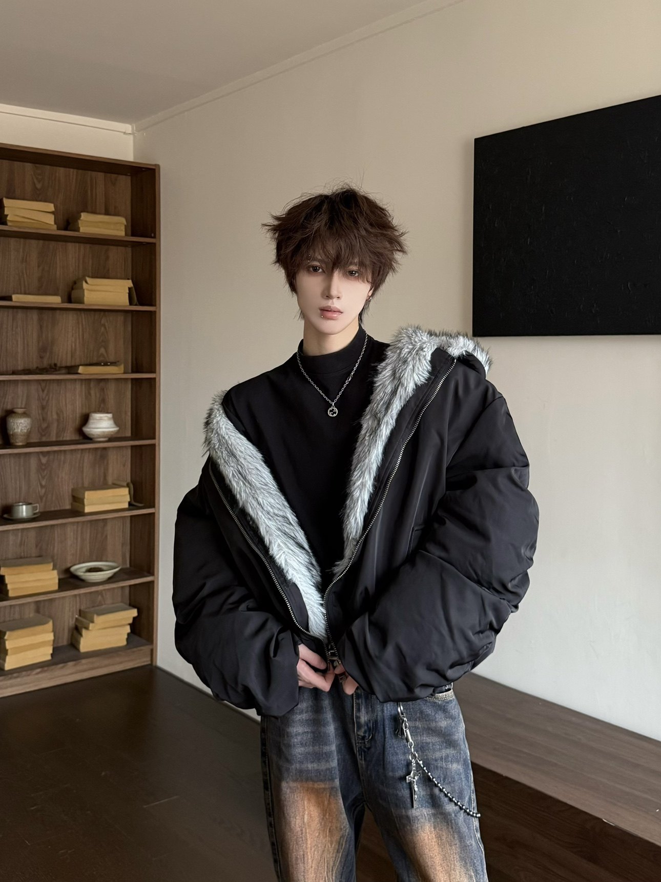 Hooded Fake Fur Collar Oversize Puffer Jacket WN23193