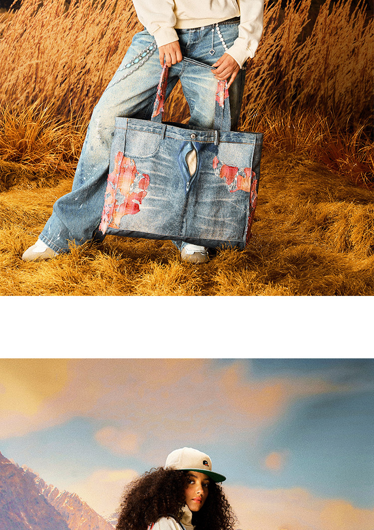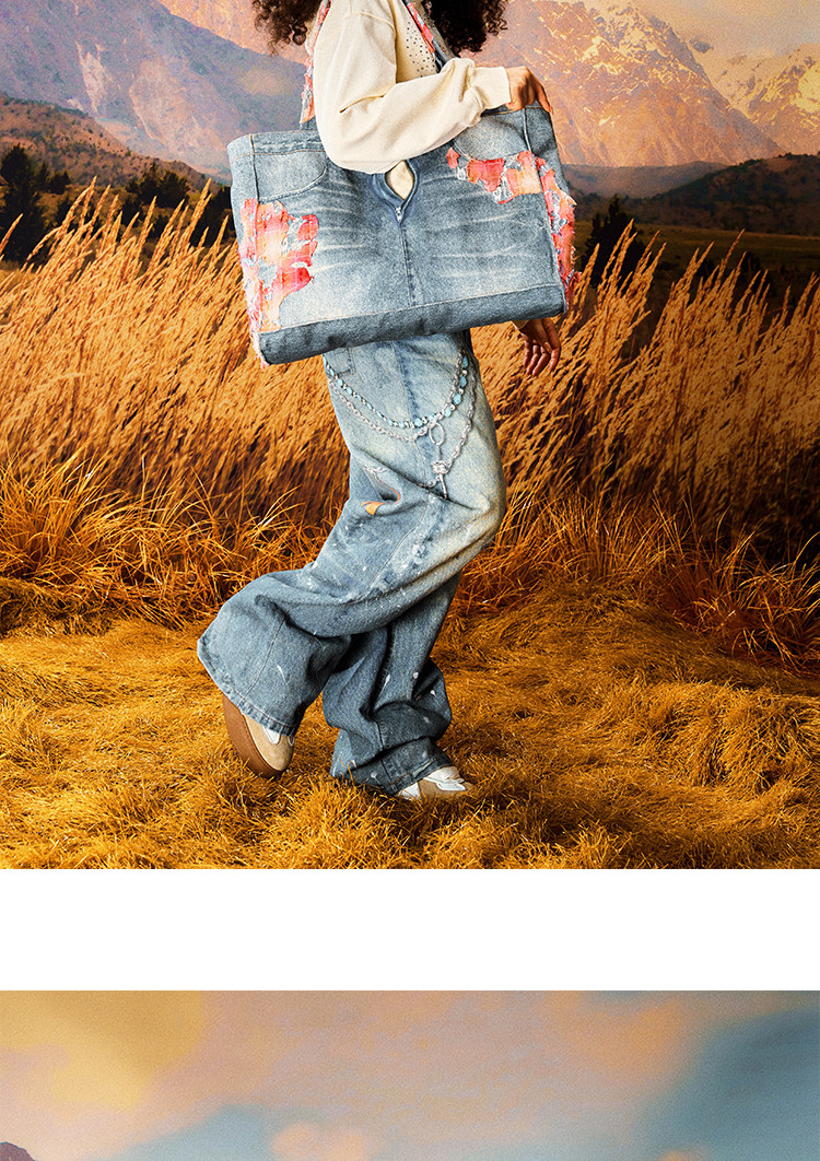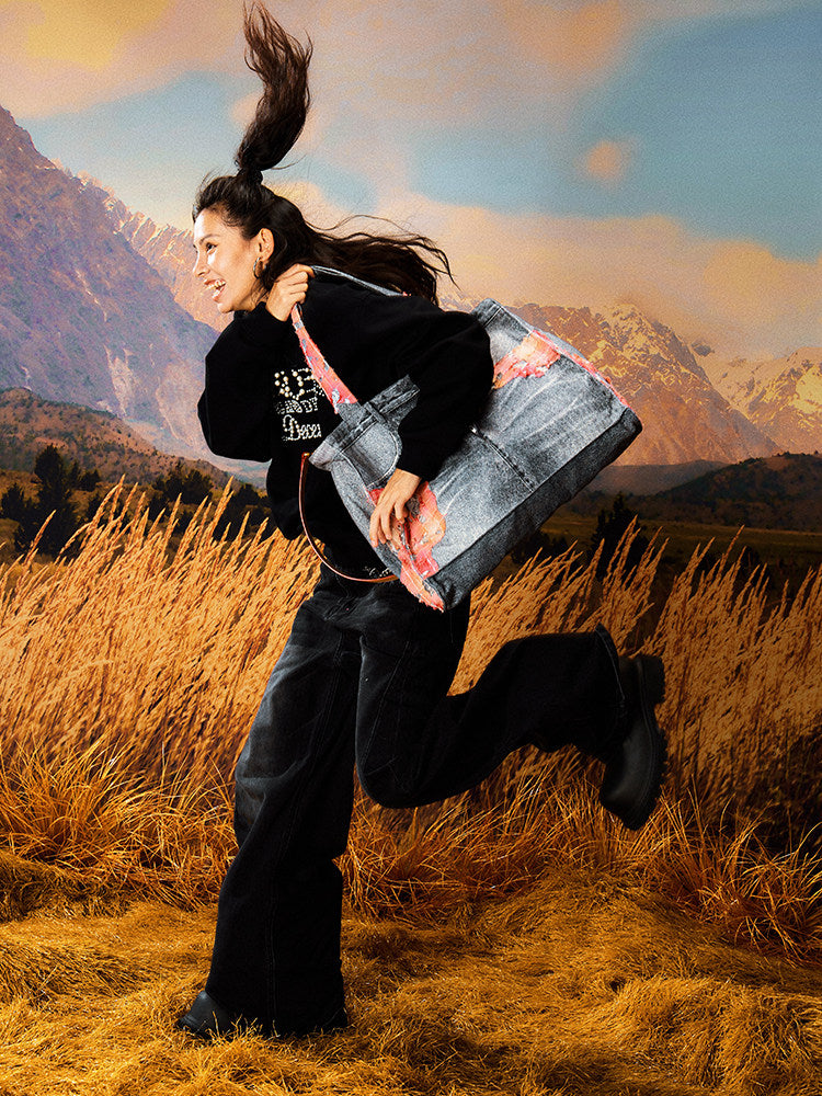 Floral Damage Denim Tote Bag WN23209