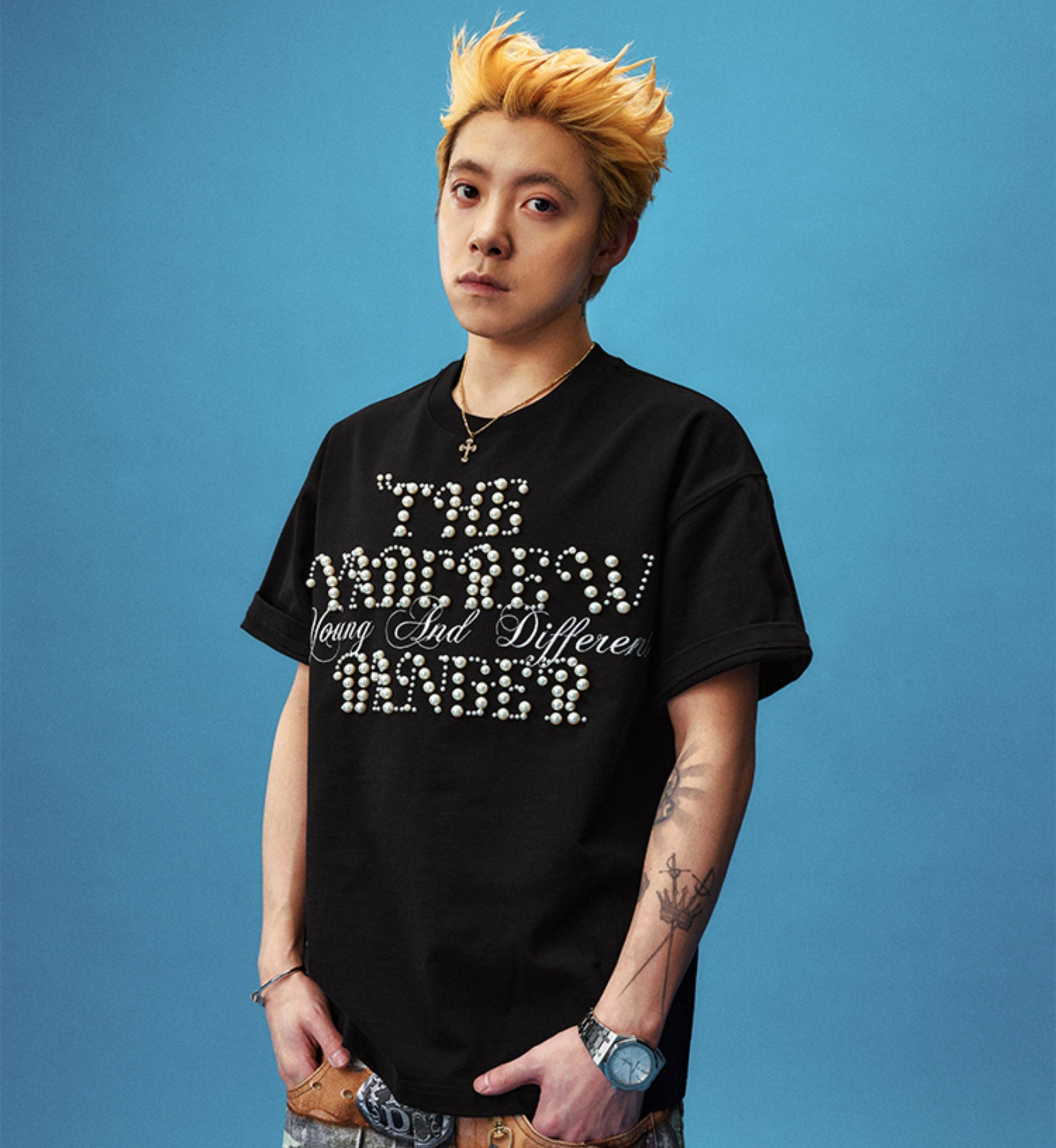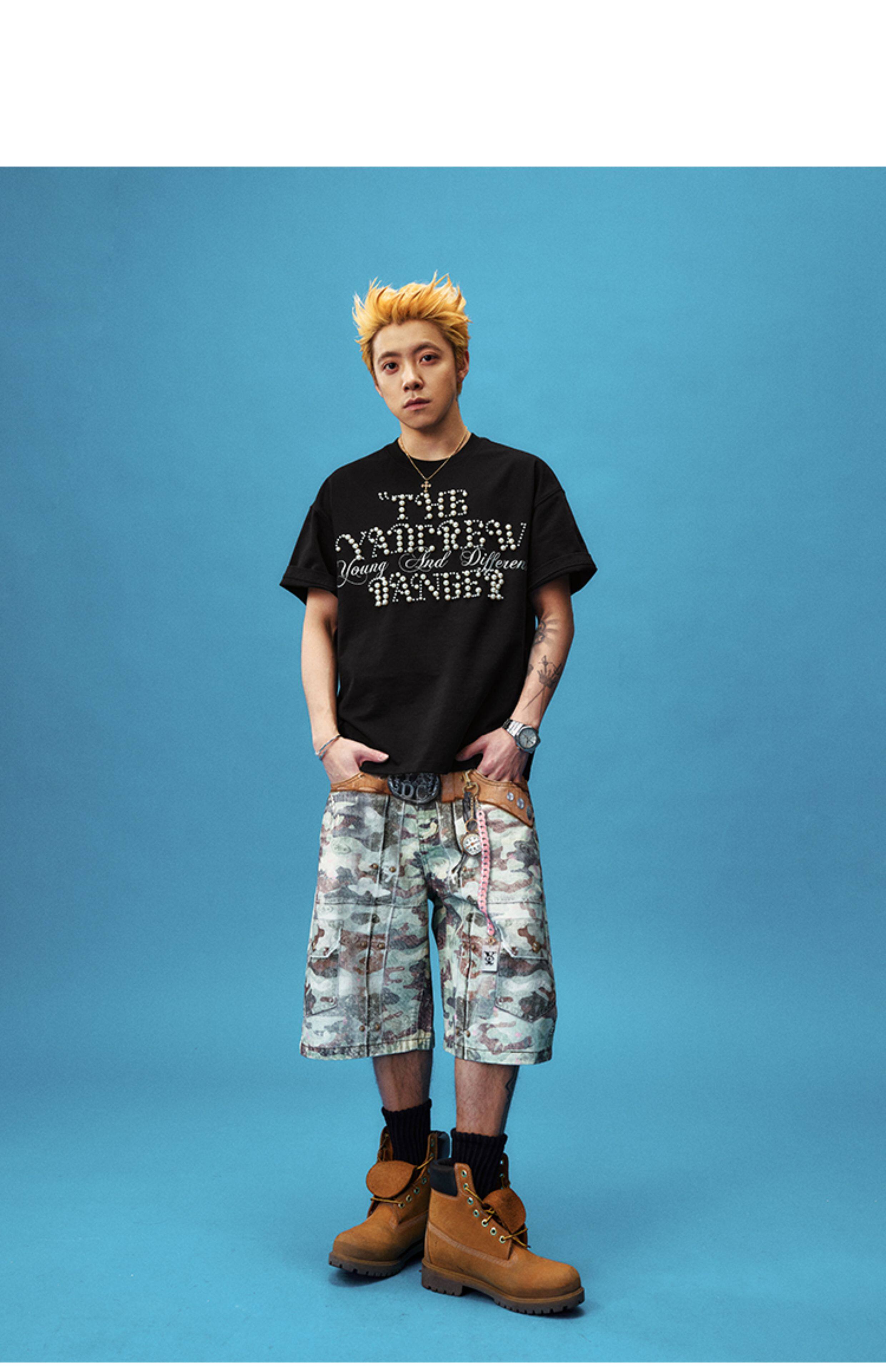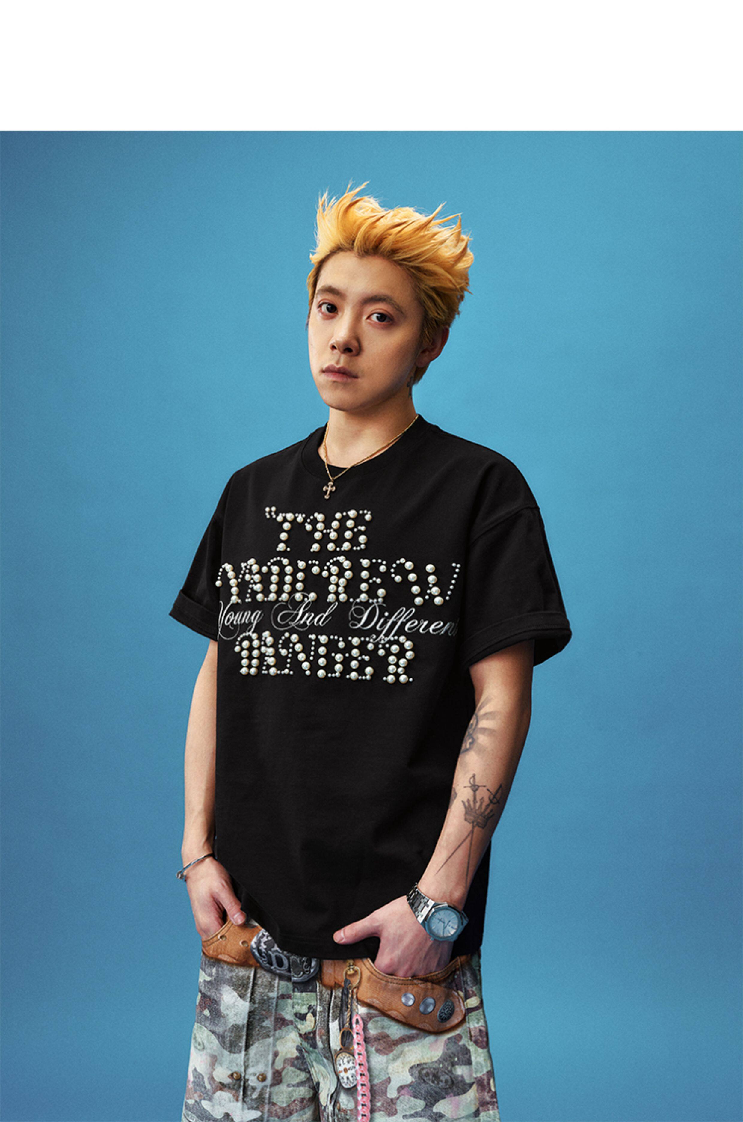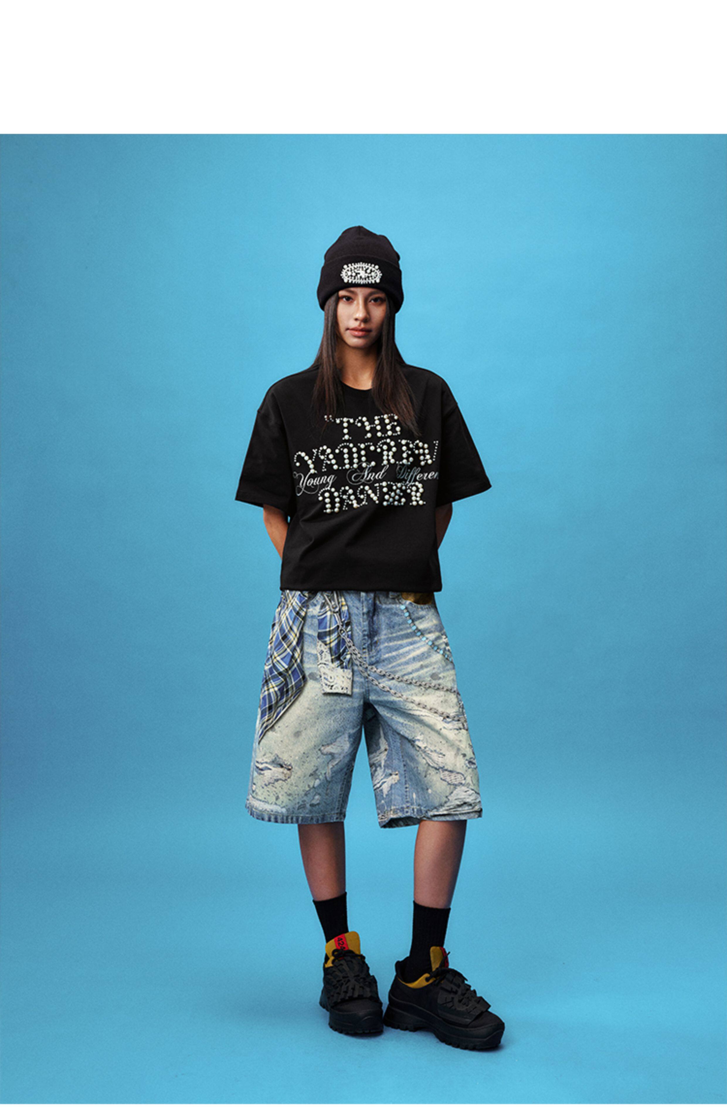 Pearl Letter Embroidery Oversize Short Sleeve T-Shirt WN23246