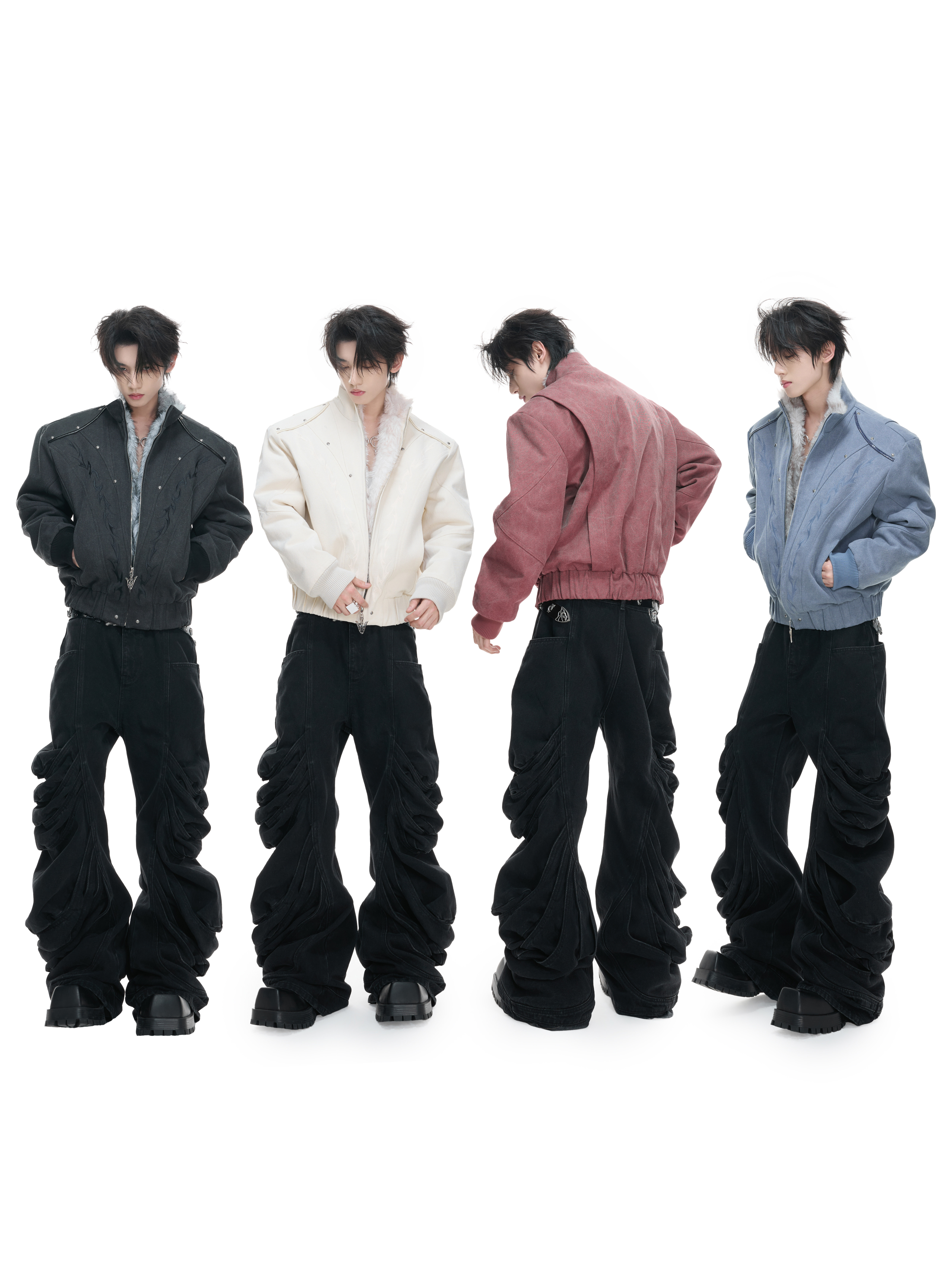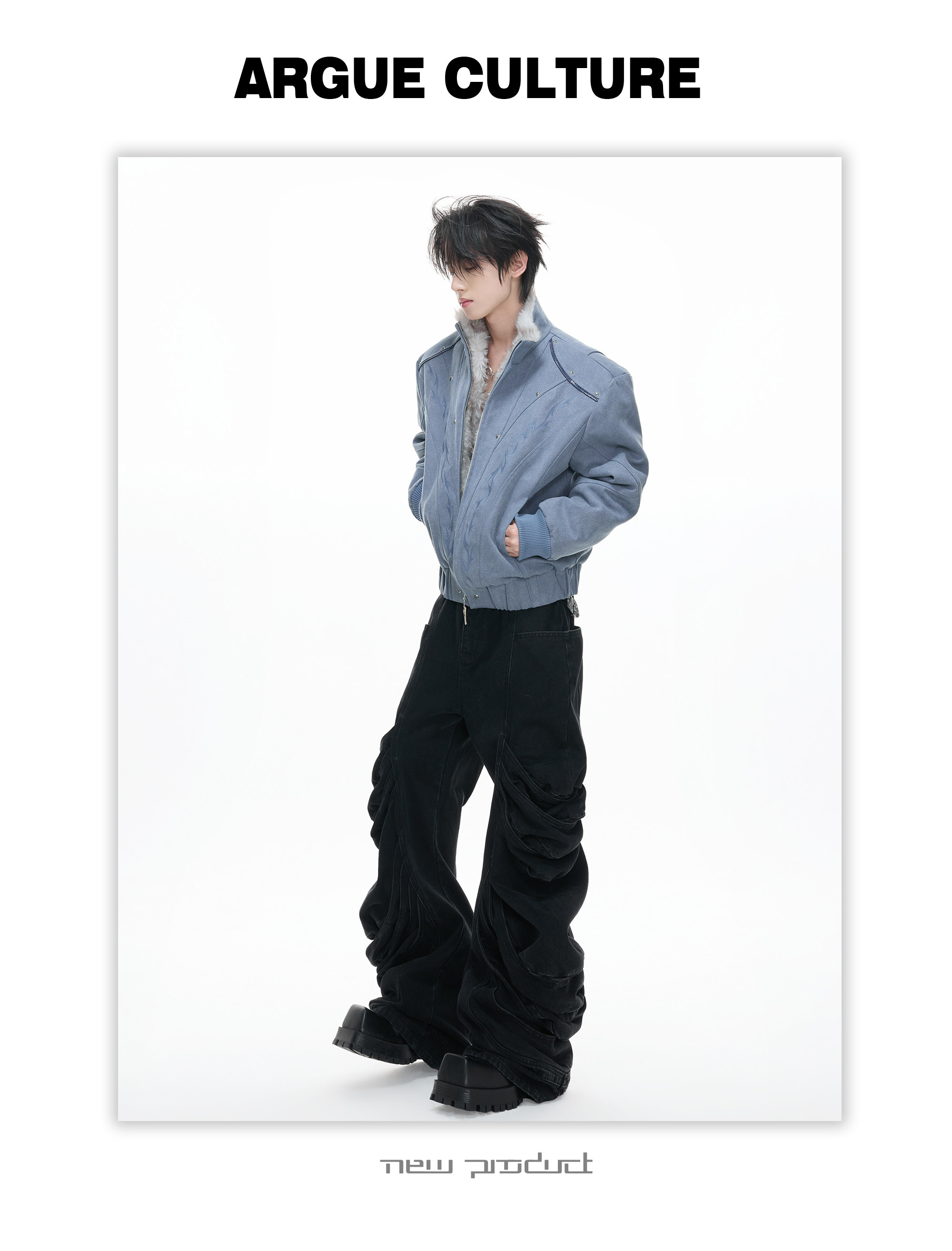 Heavyweight Washed Canvas Fleece Lining Short Jacket WN23321