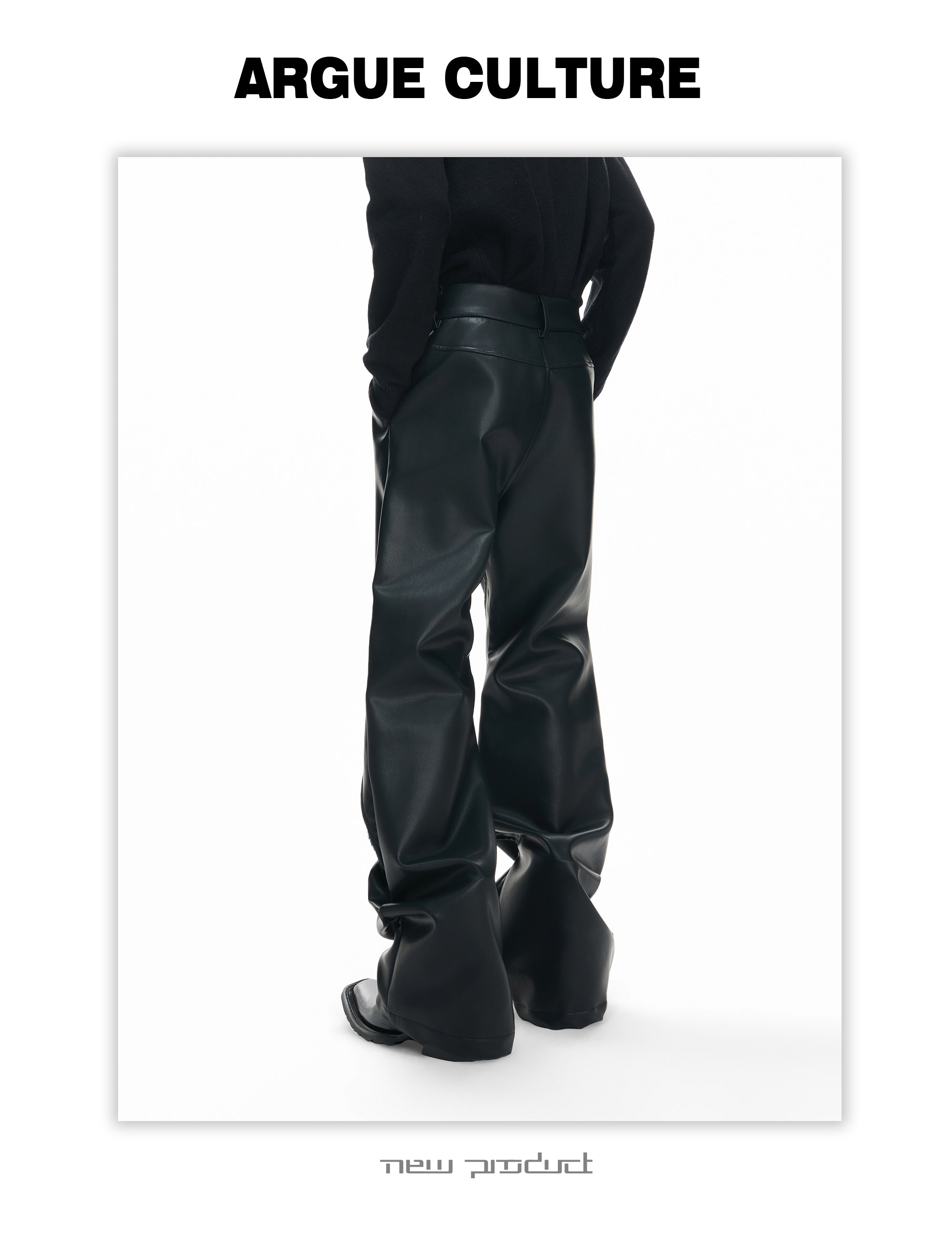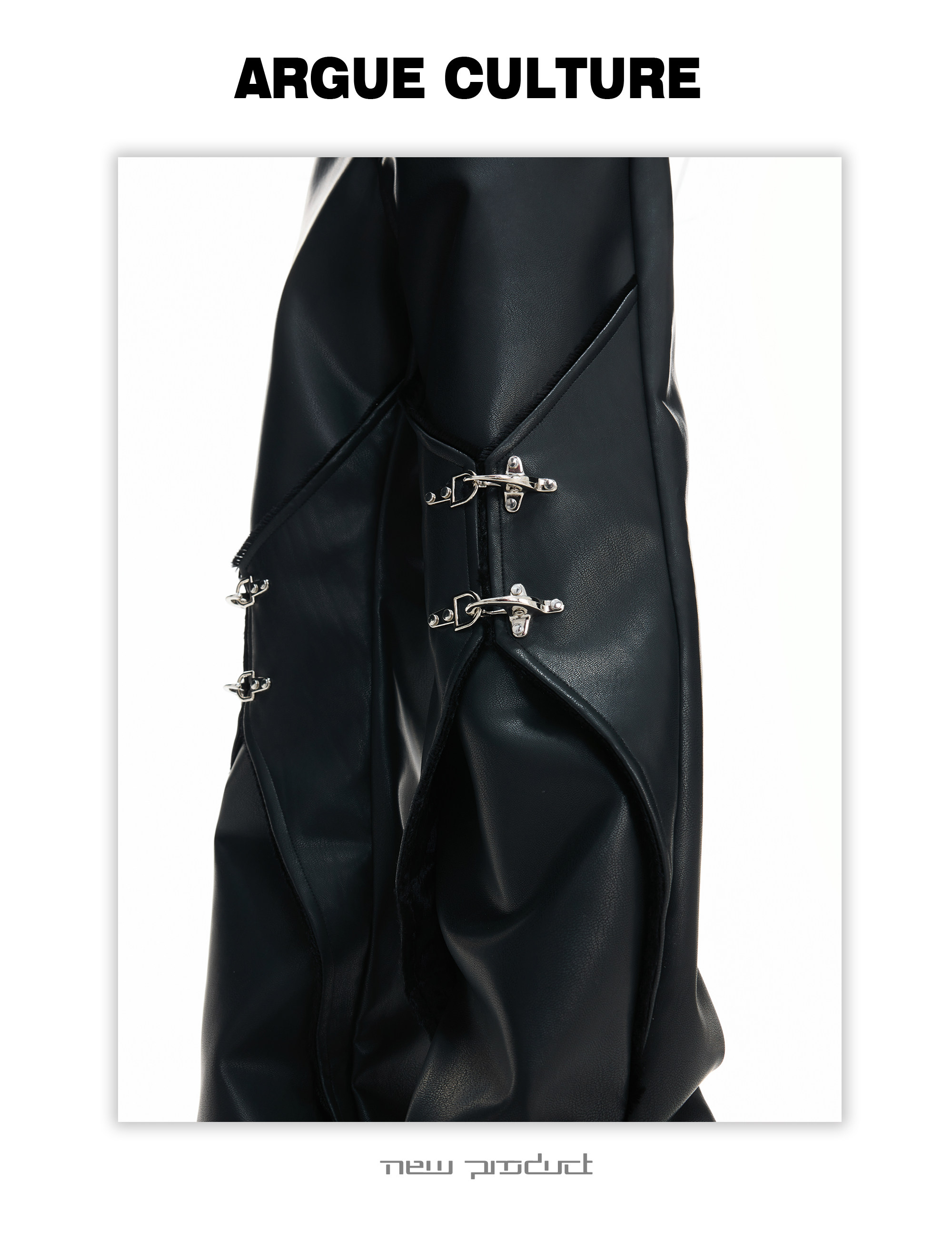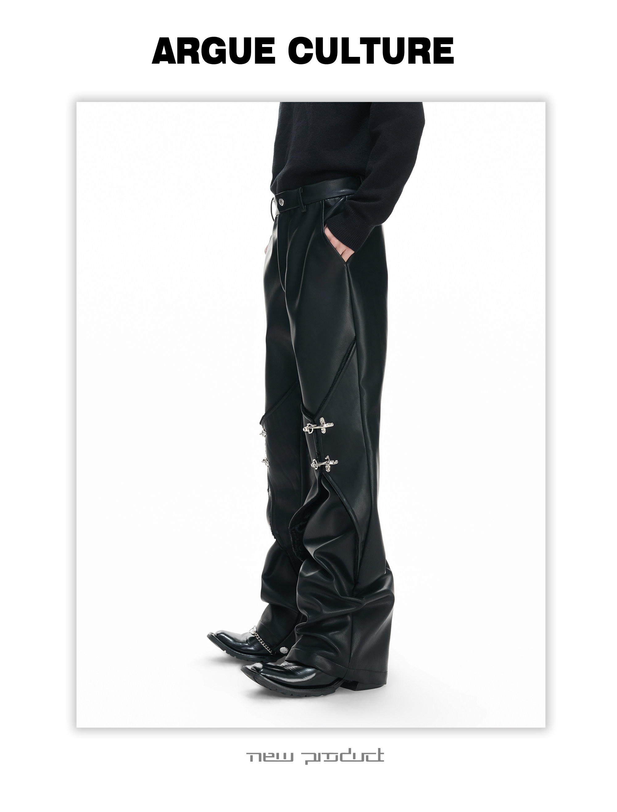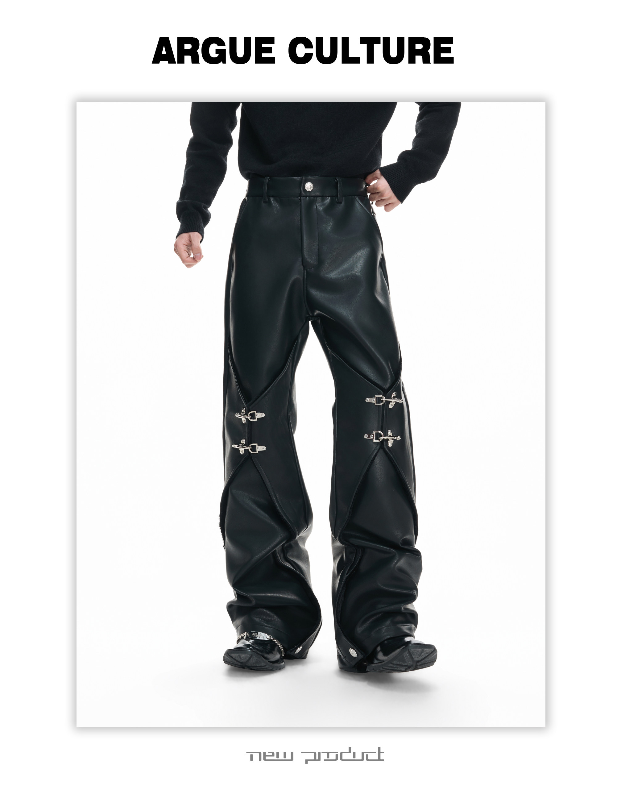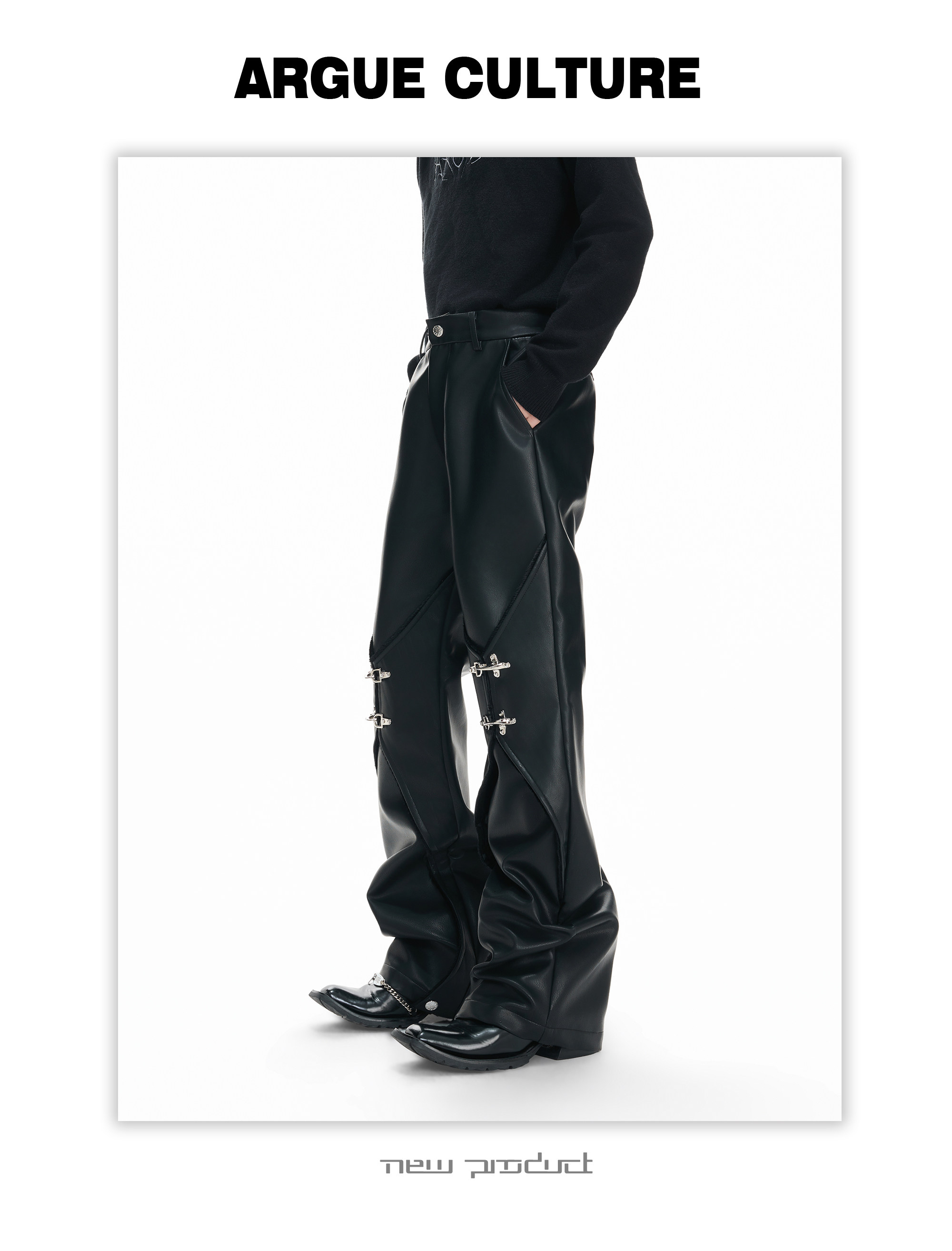 Wax Coating Panel Metal Buckle Straight PU Leather Pants WN23324