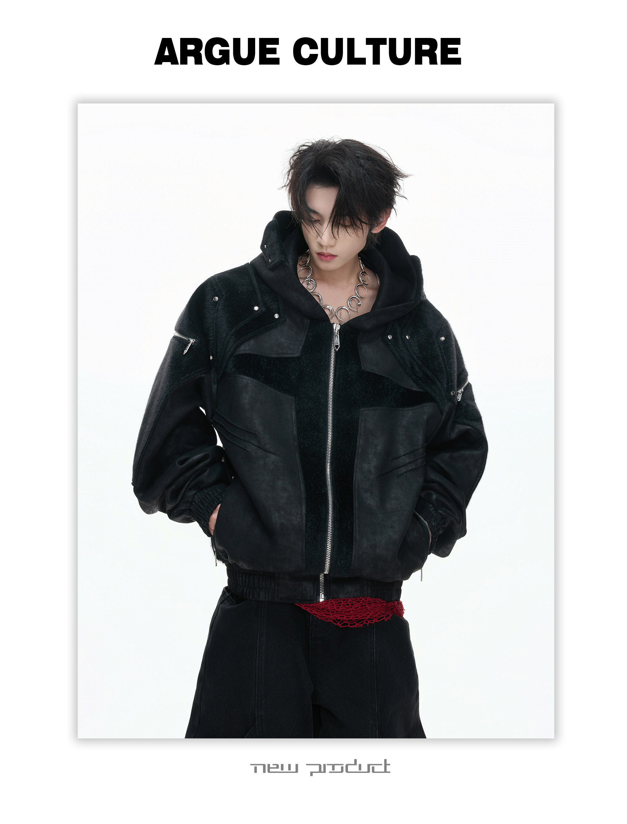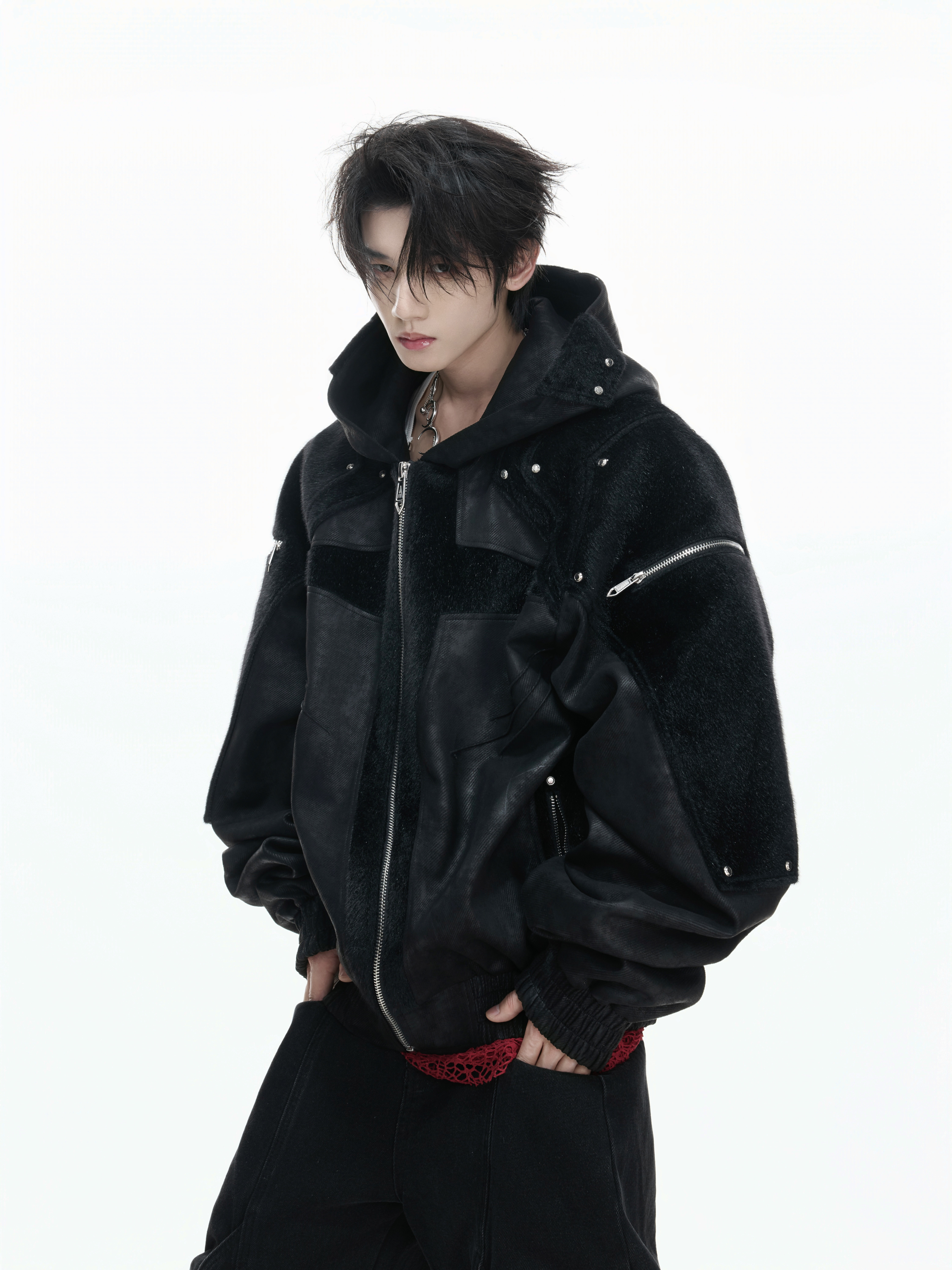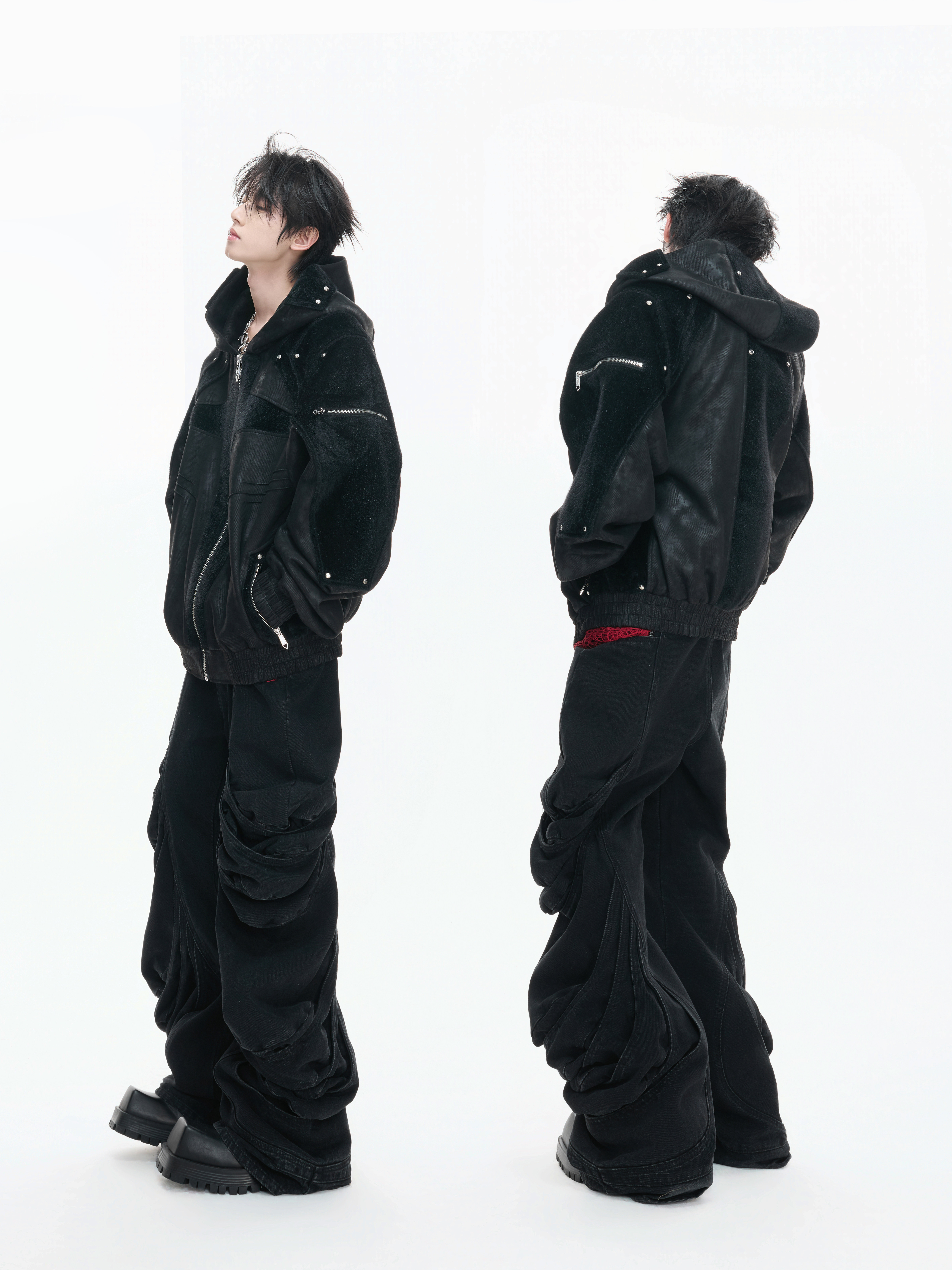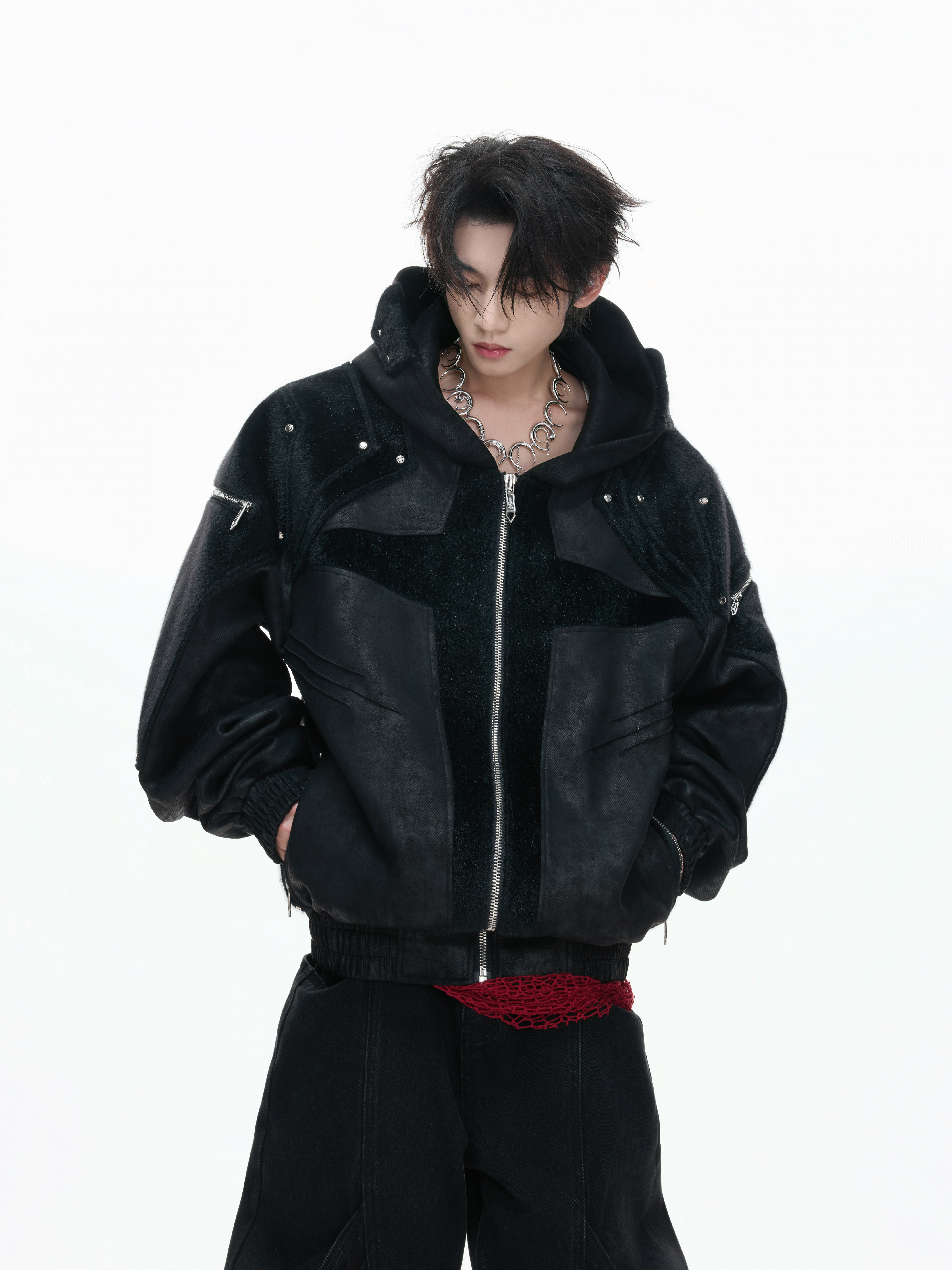 Matte Wax Coating Deconstructed Hooded Jacket WN23325