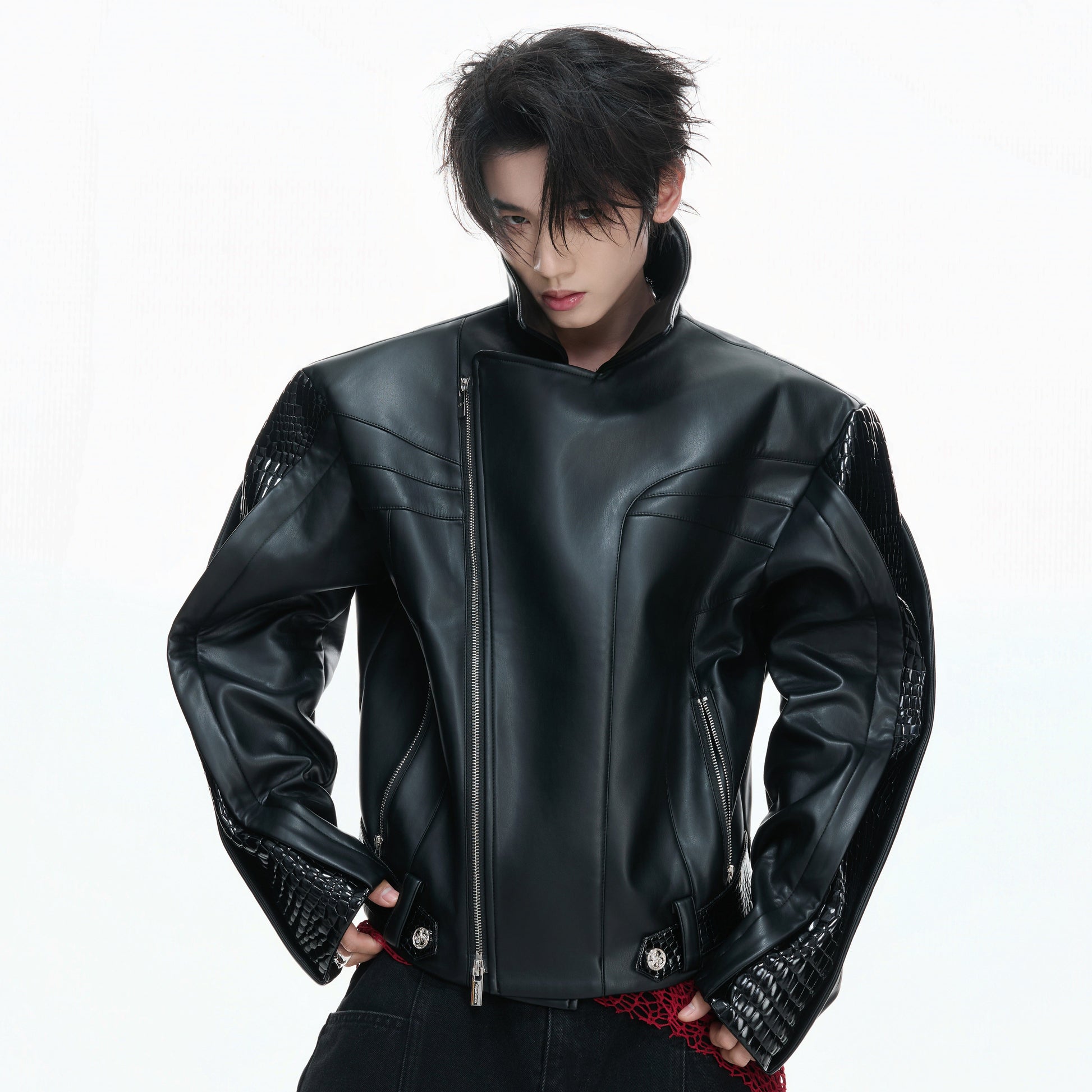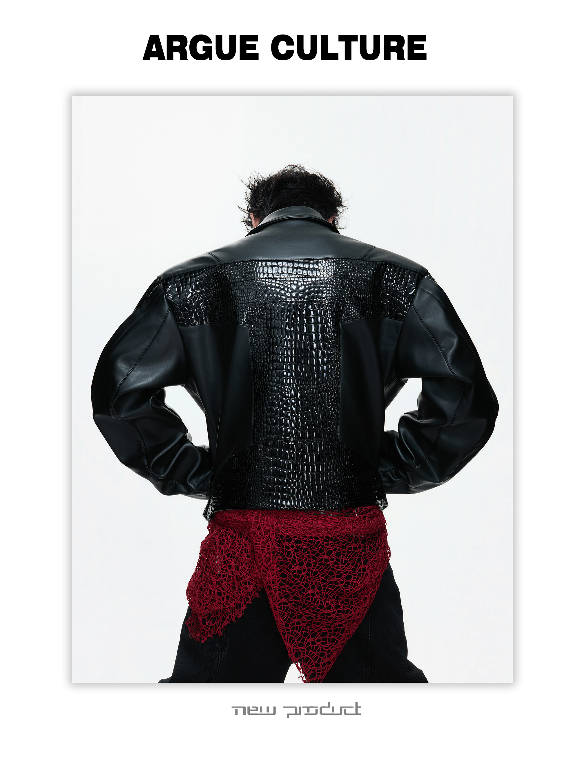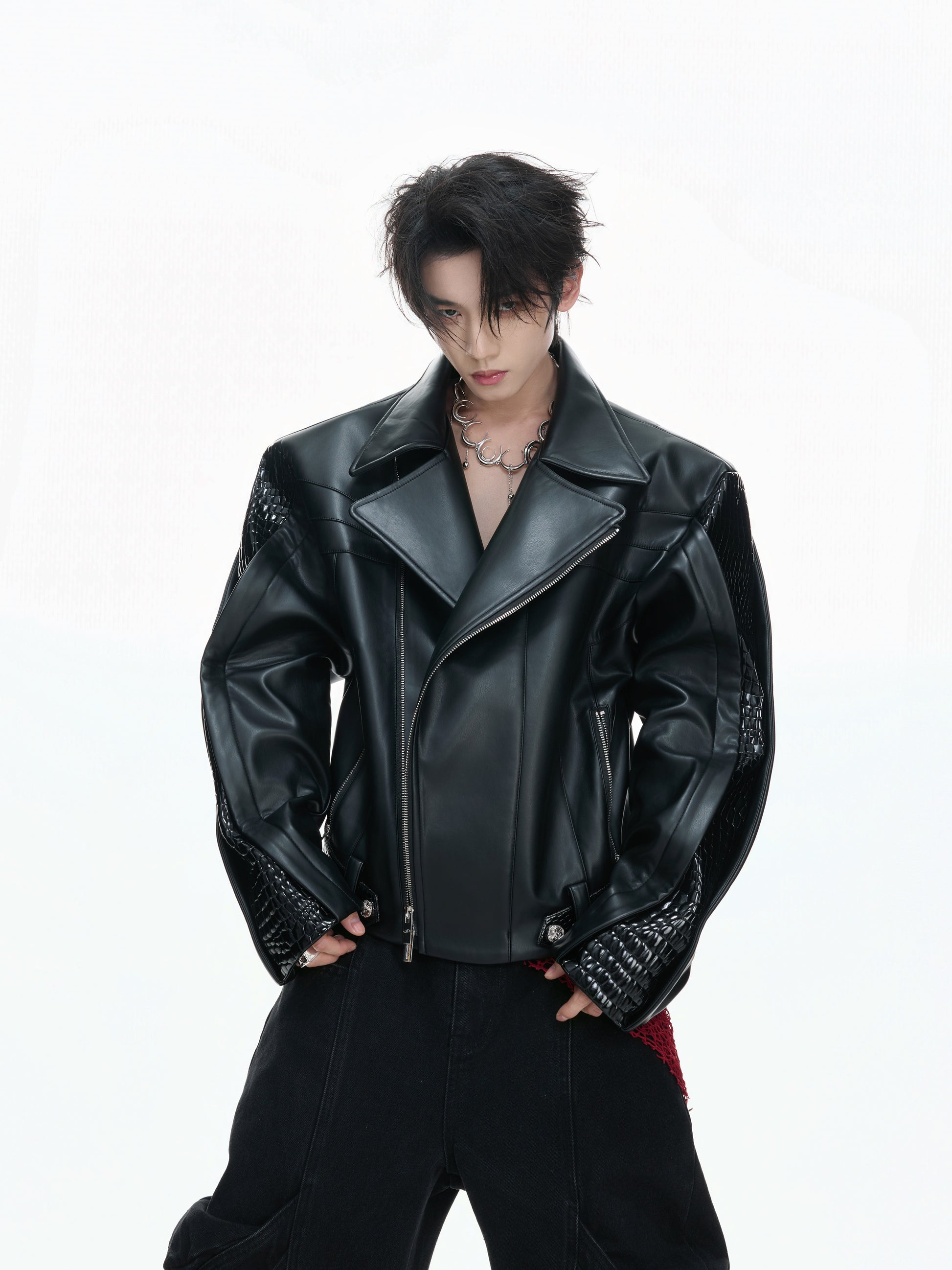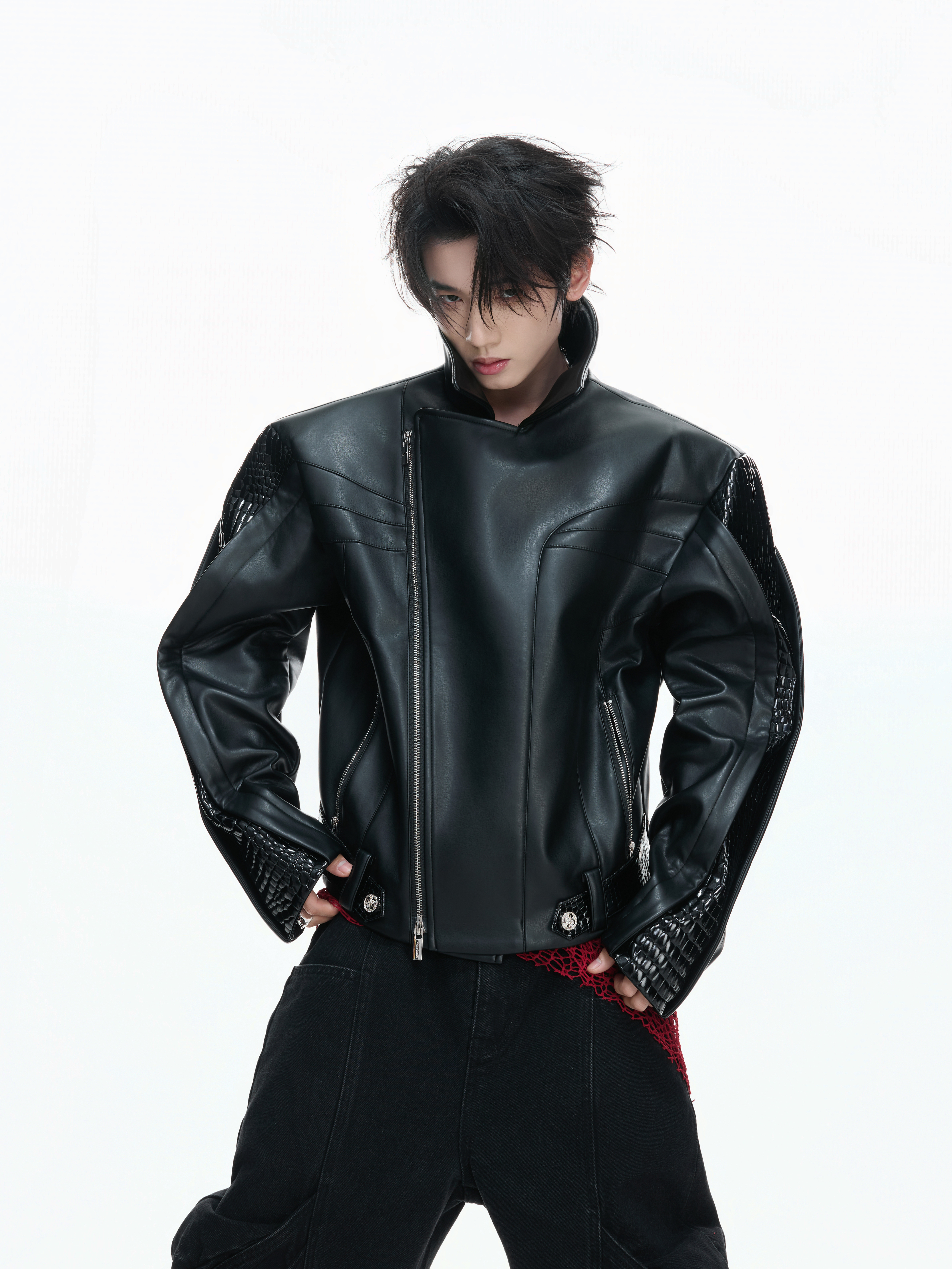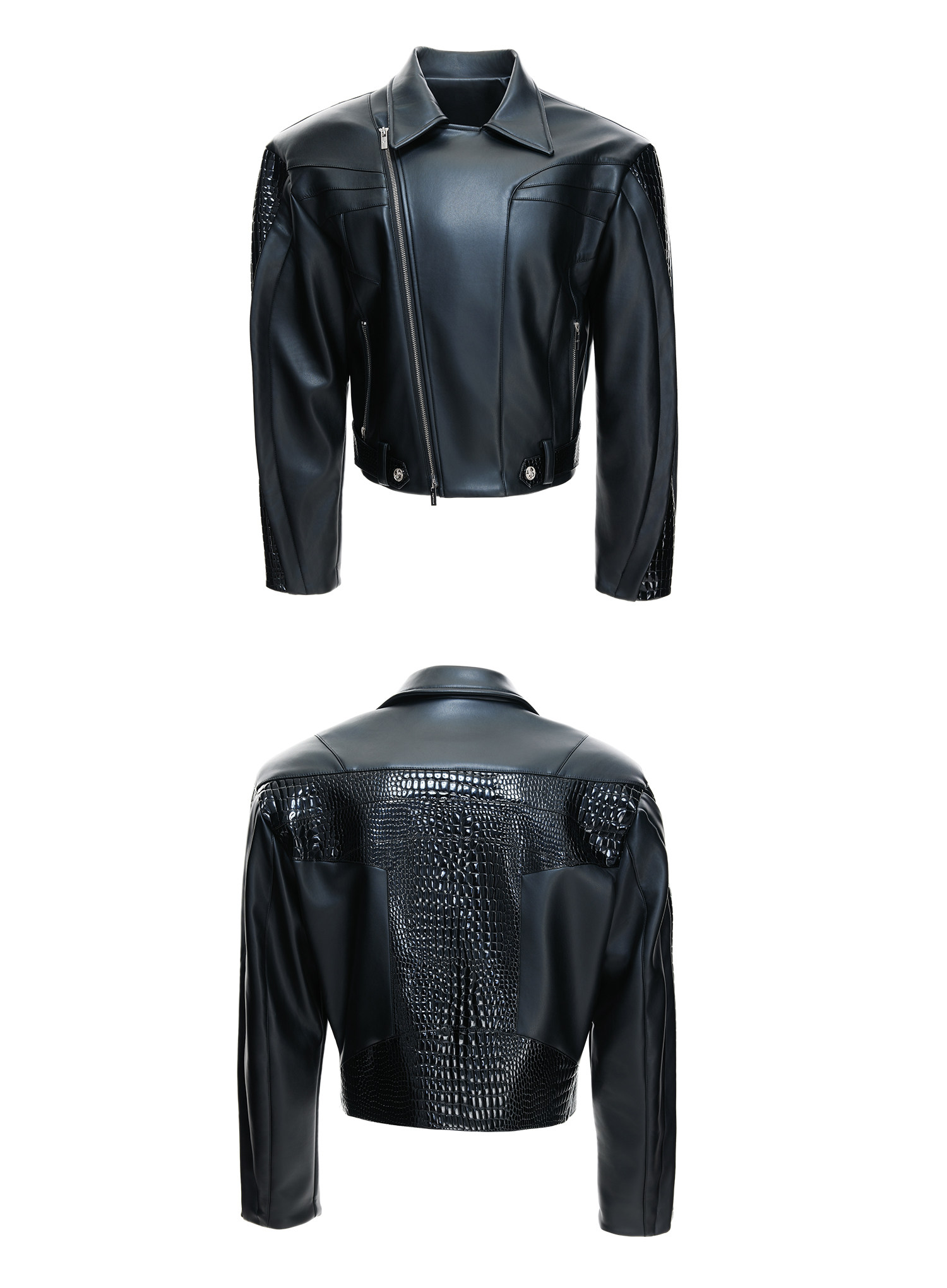 Crocodile Texture Irregular Zipper Short PU Leather Jacket WN23332