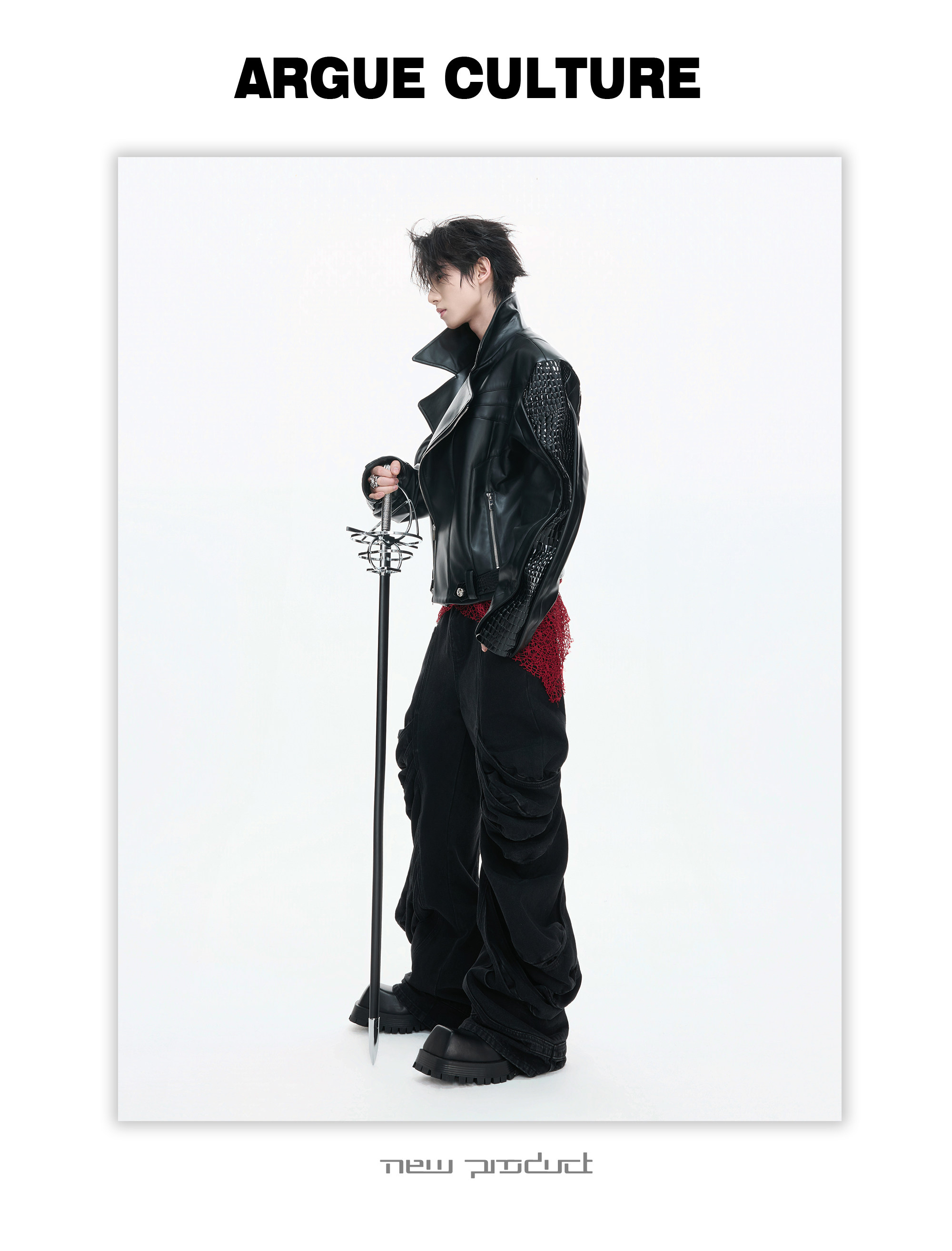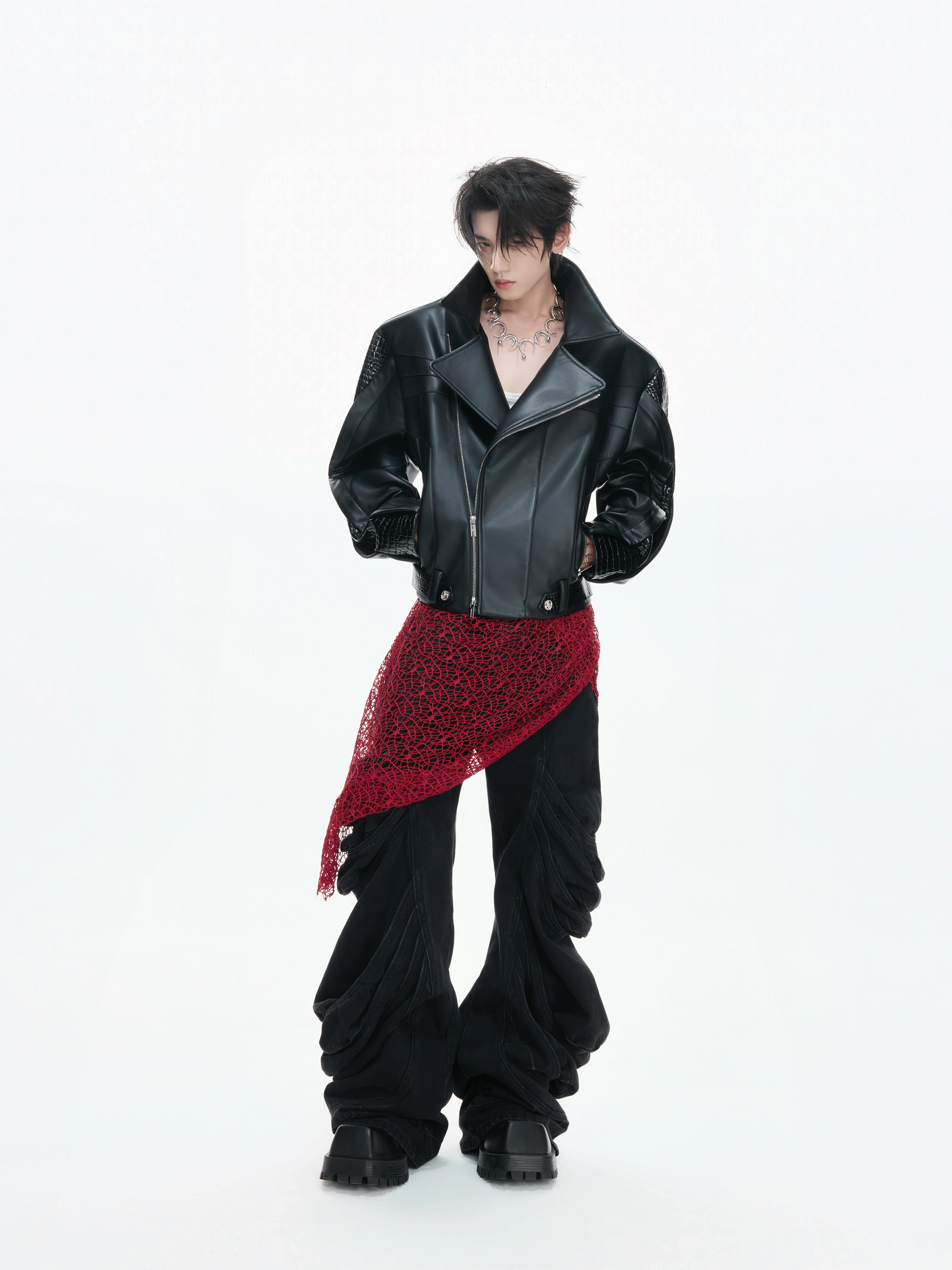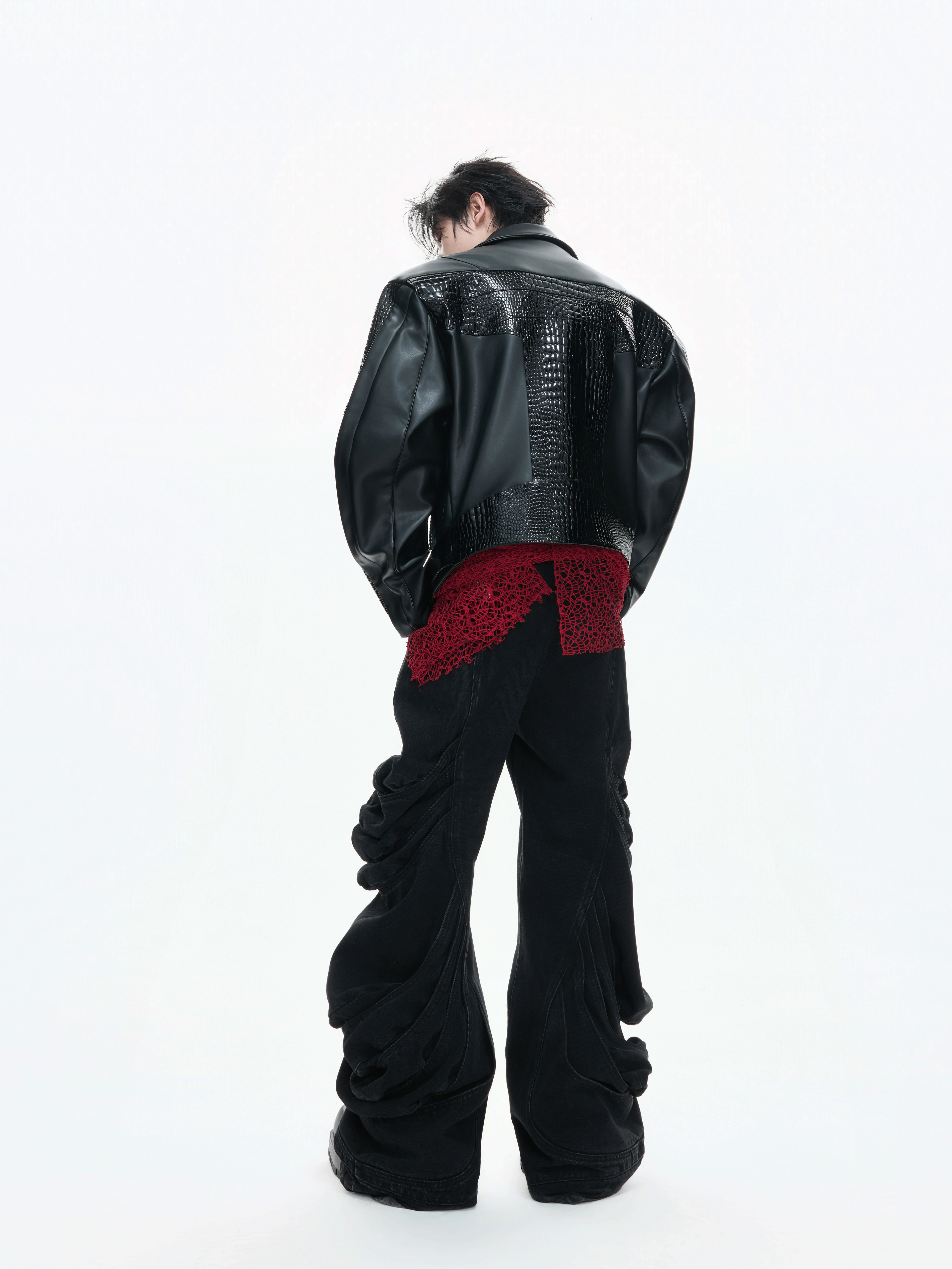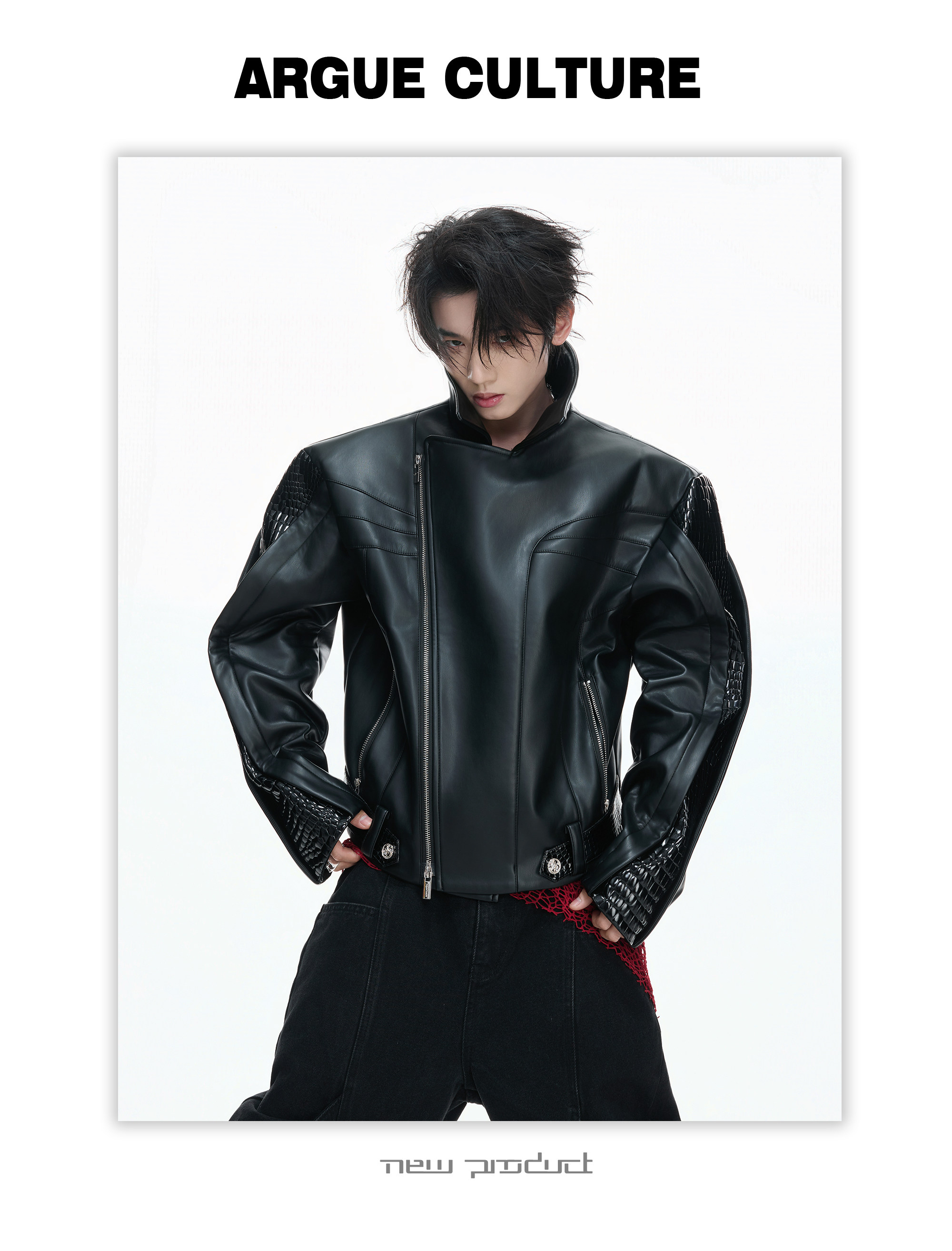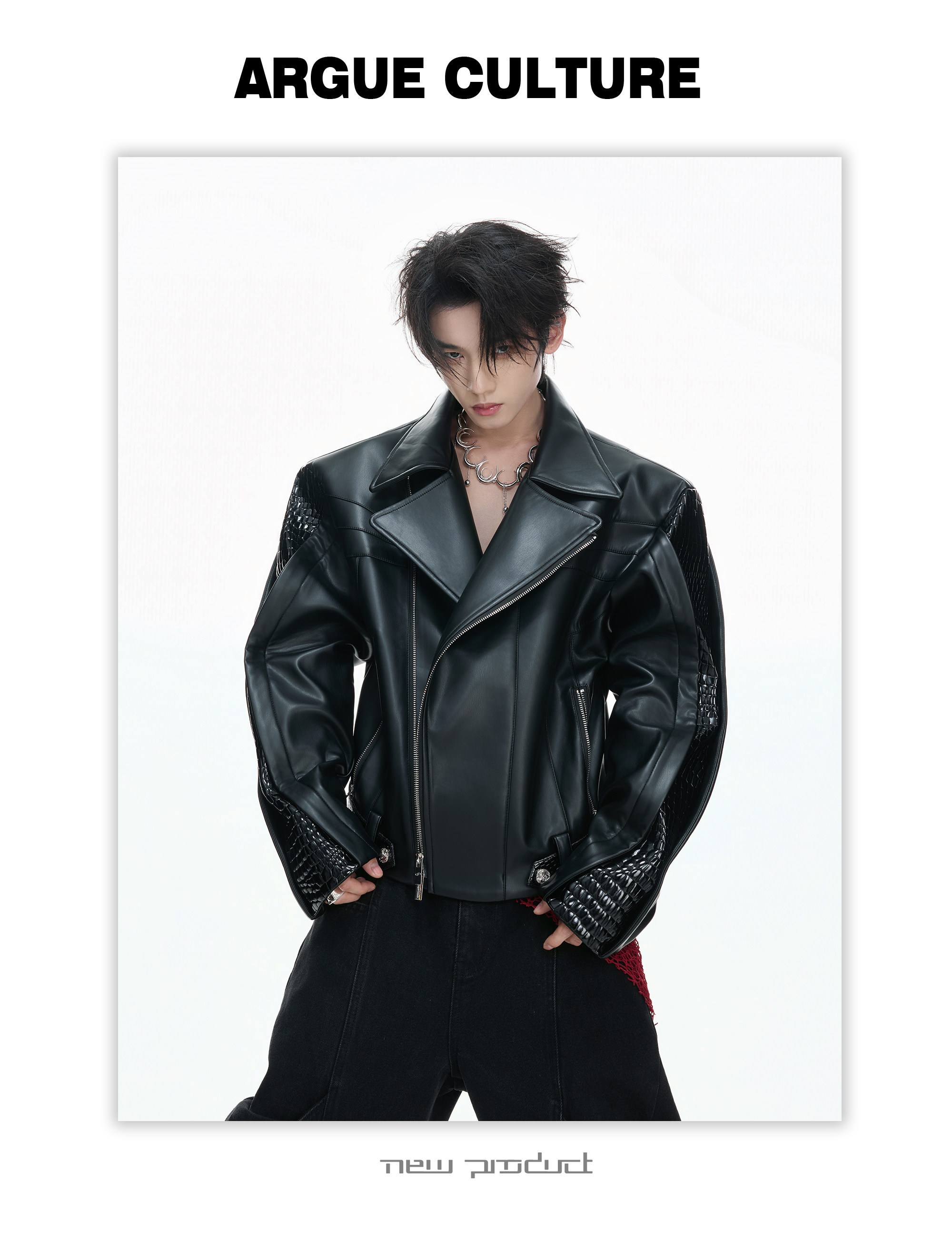 Crocodile Texture Irregular Zipper Short PU Leather Jacket WN23332