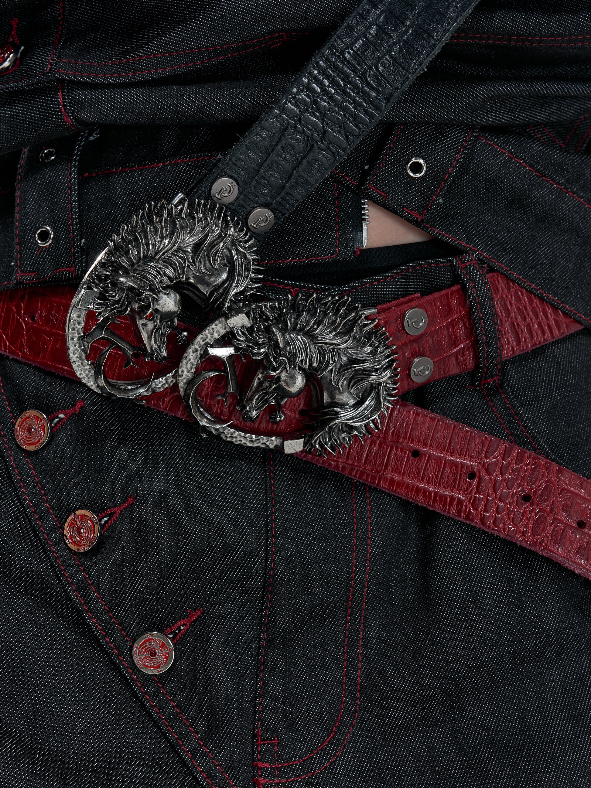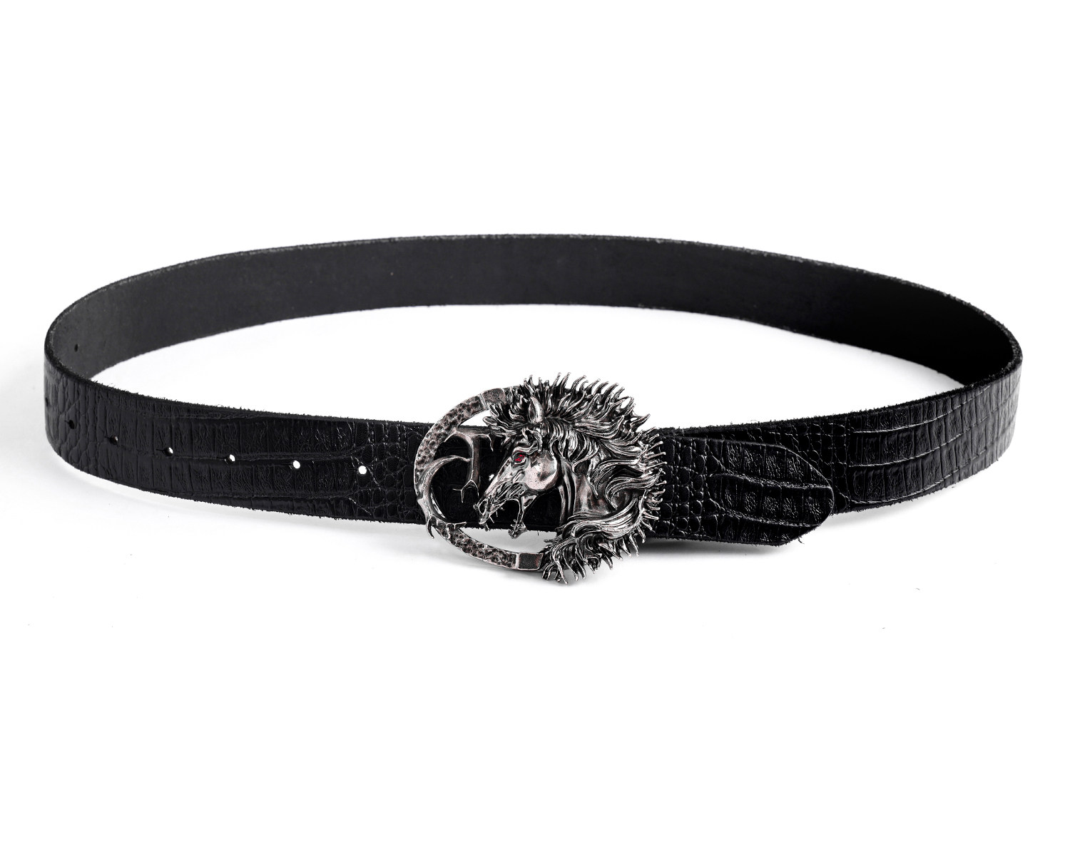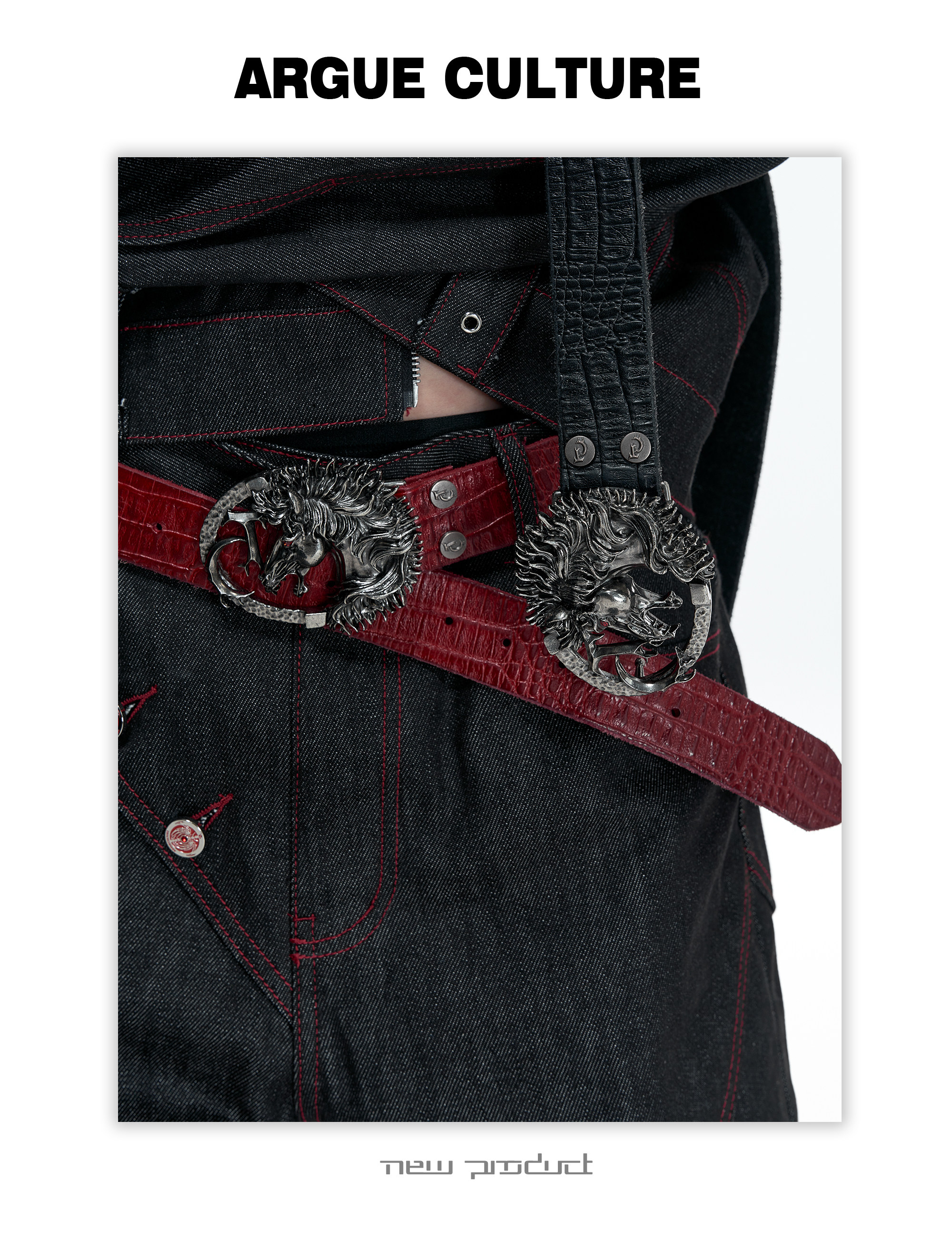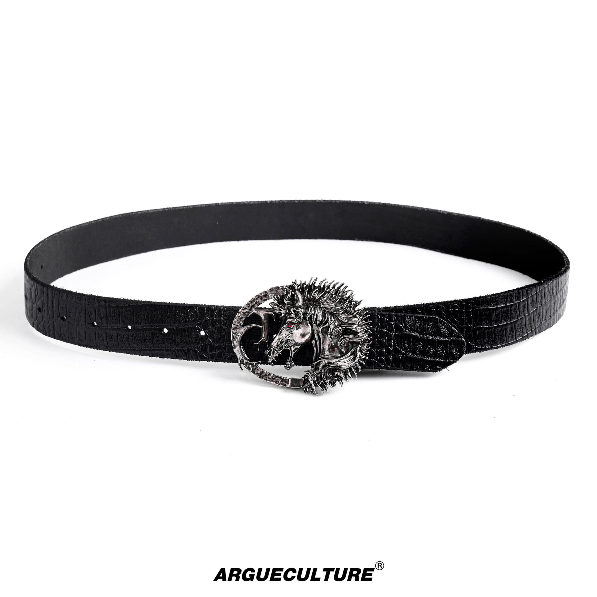 Crocodile Pattern Antique Horse Head Leather Belt WN23334