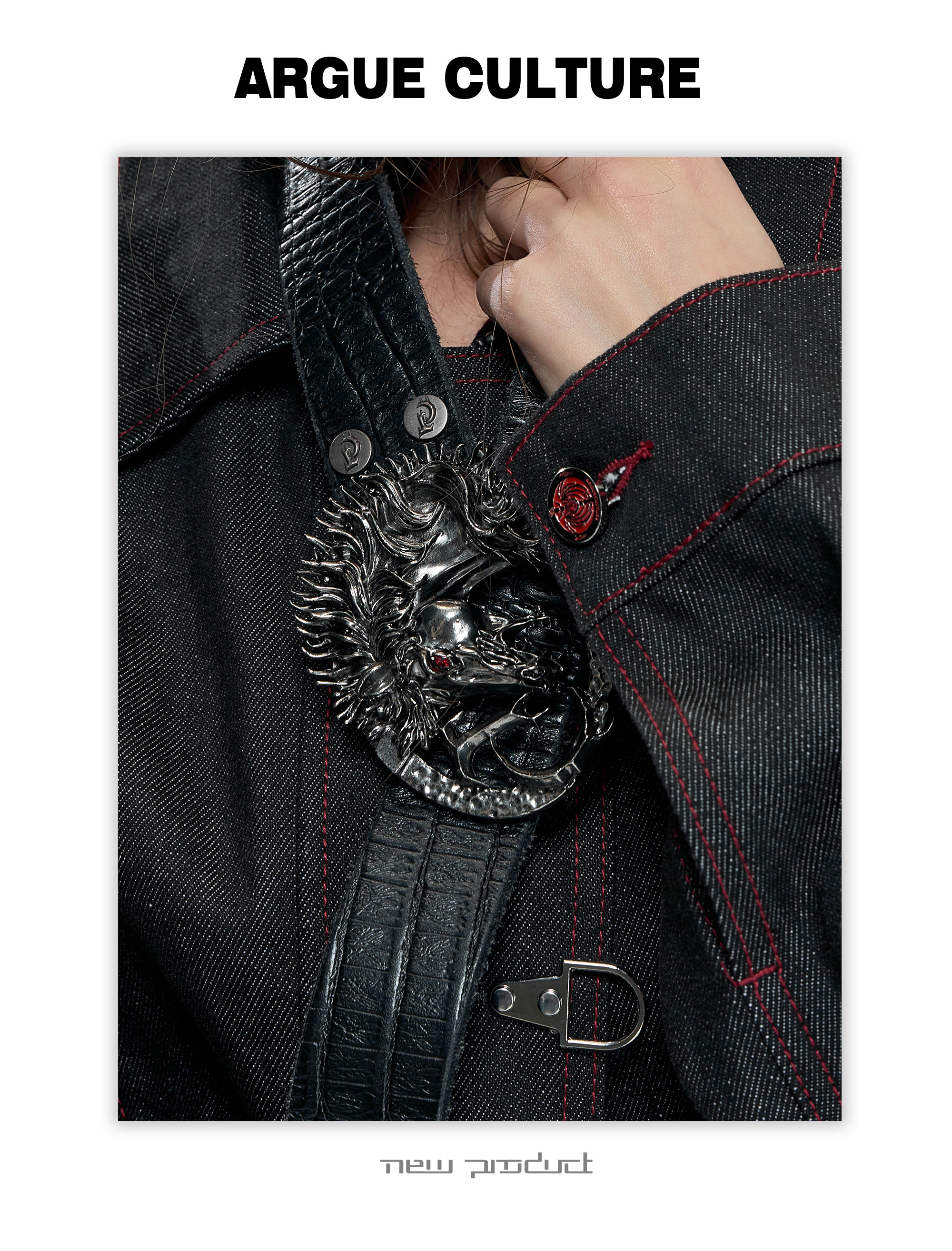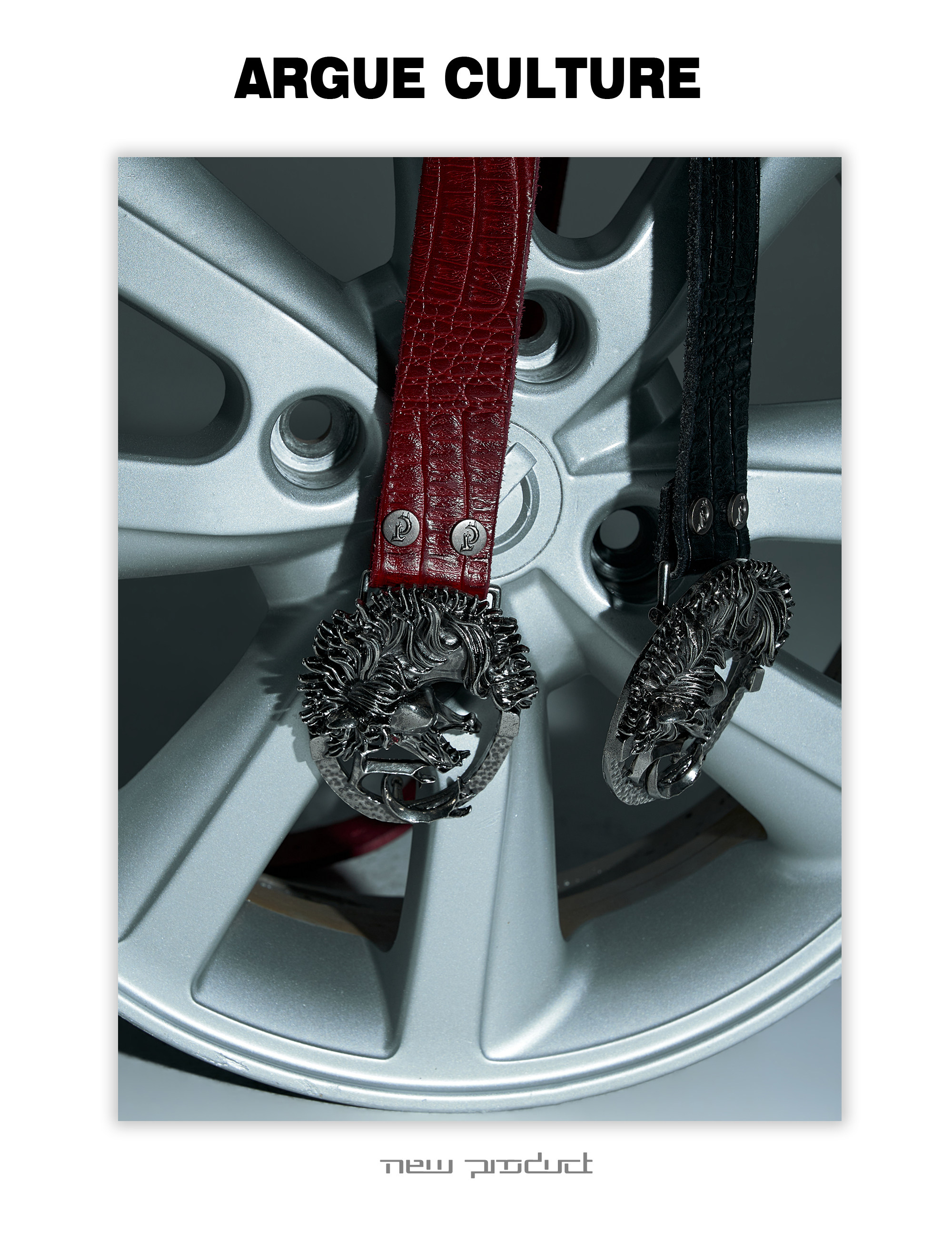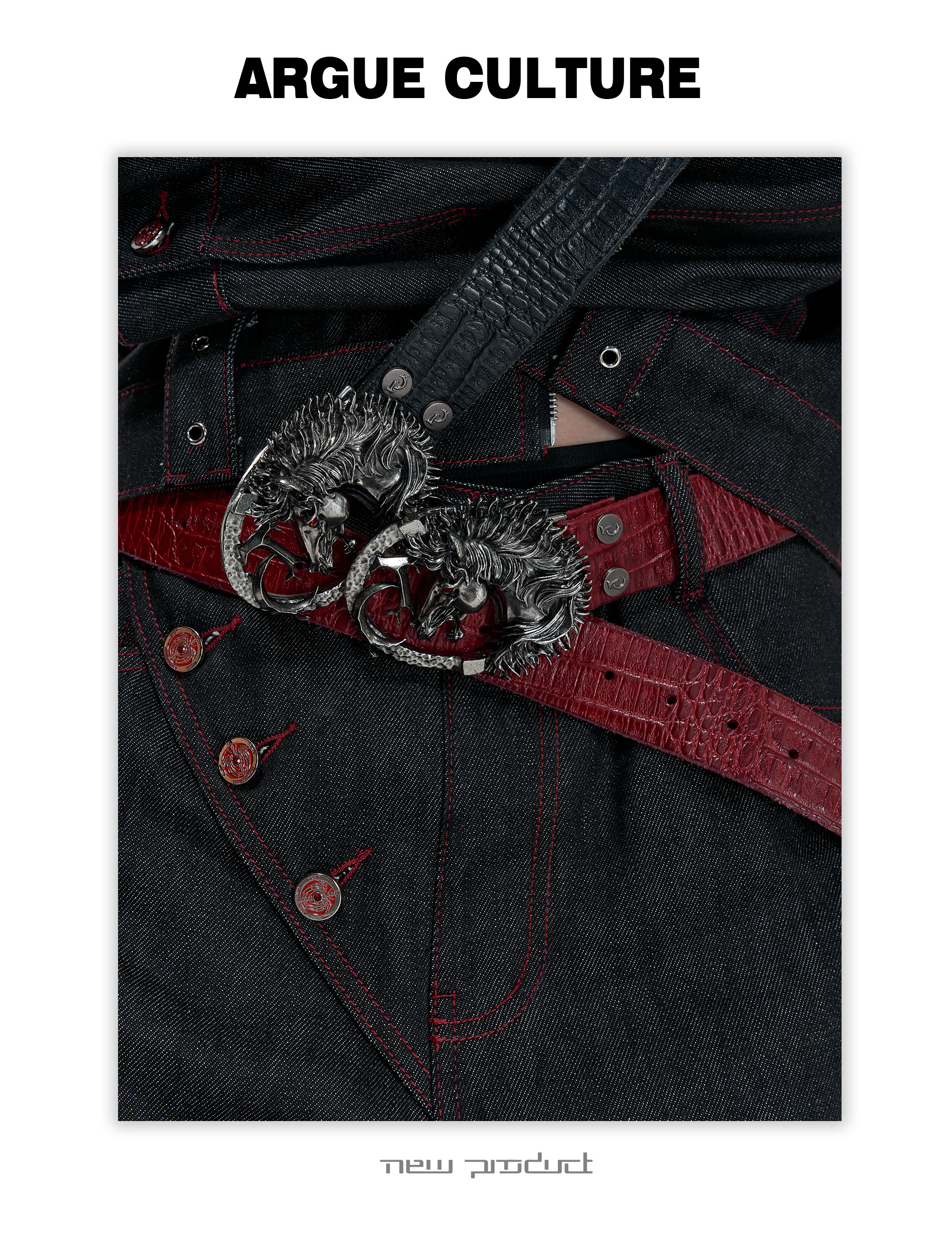 Crocodile Pattern Antique Horse Head Leather Belt WN23334