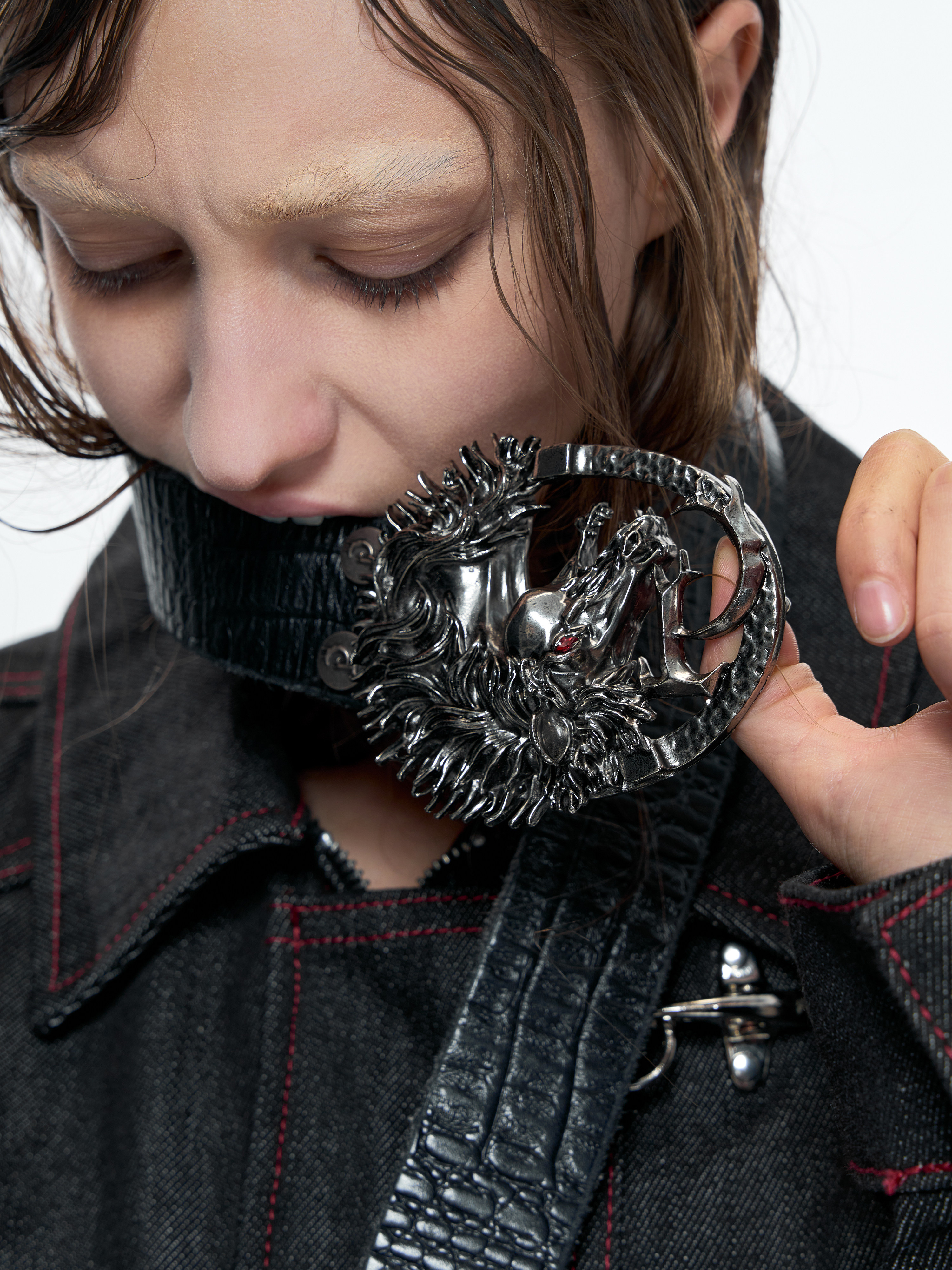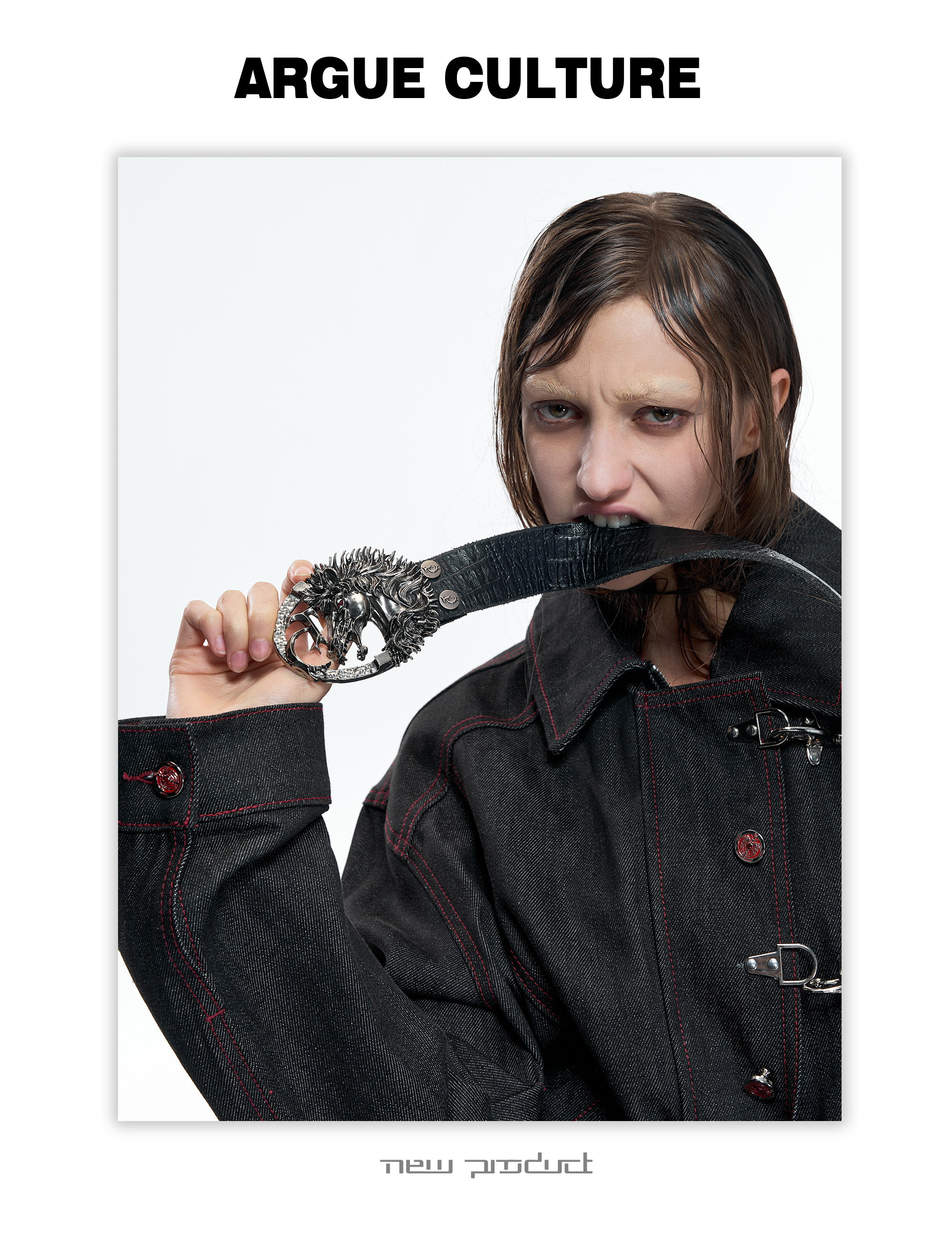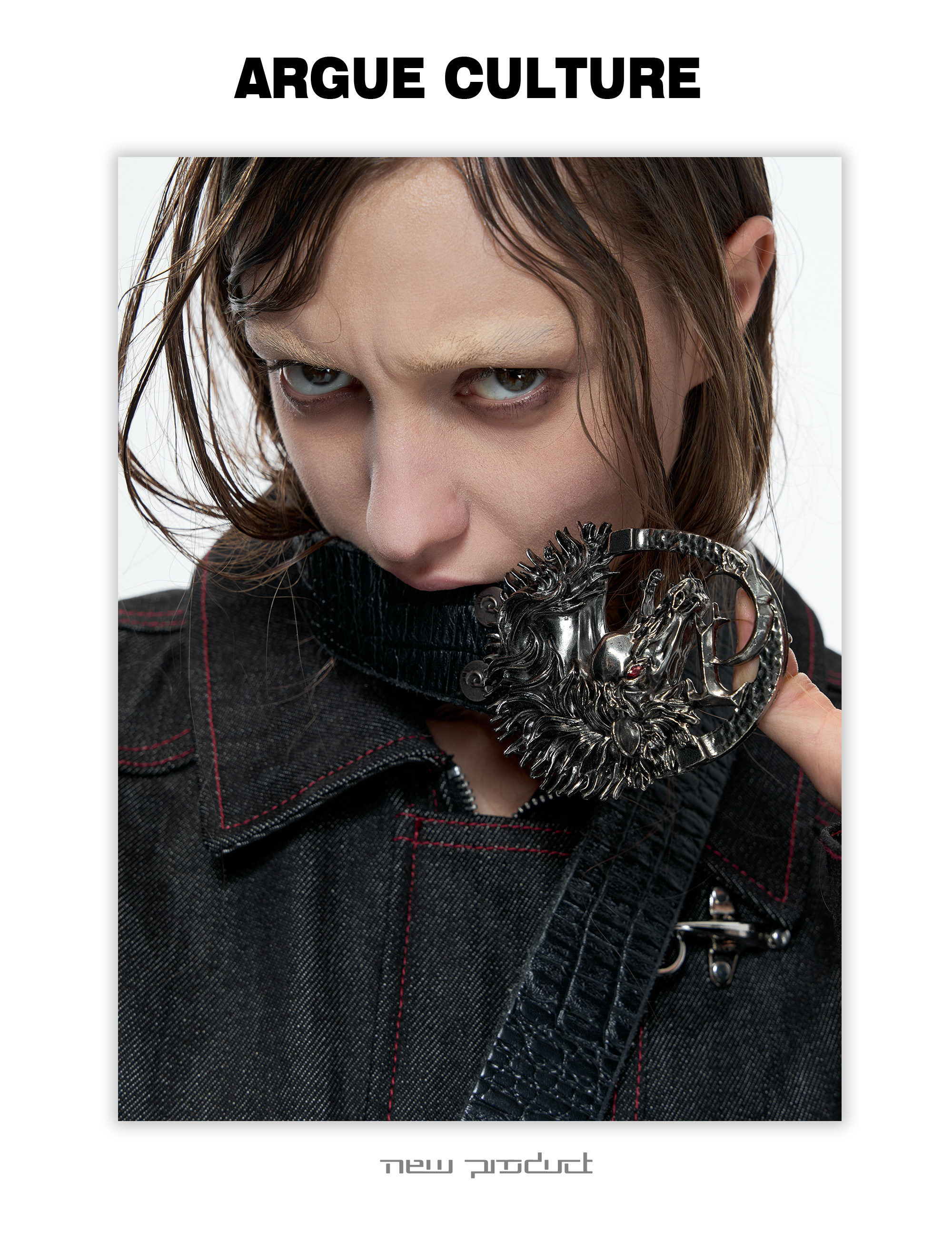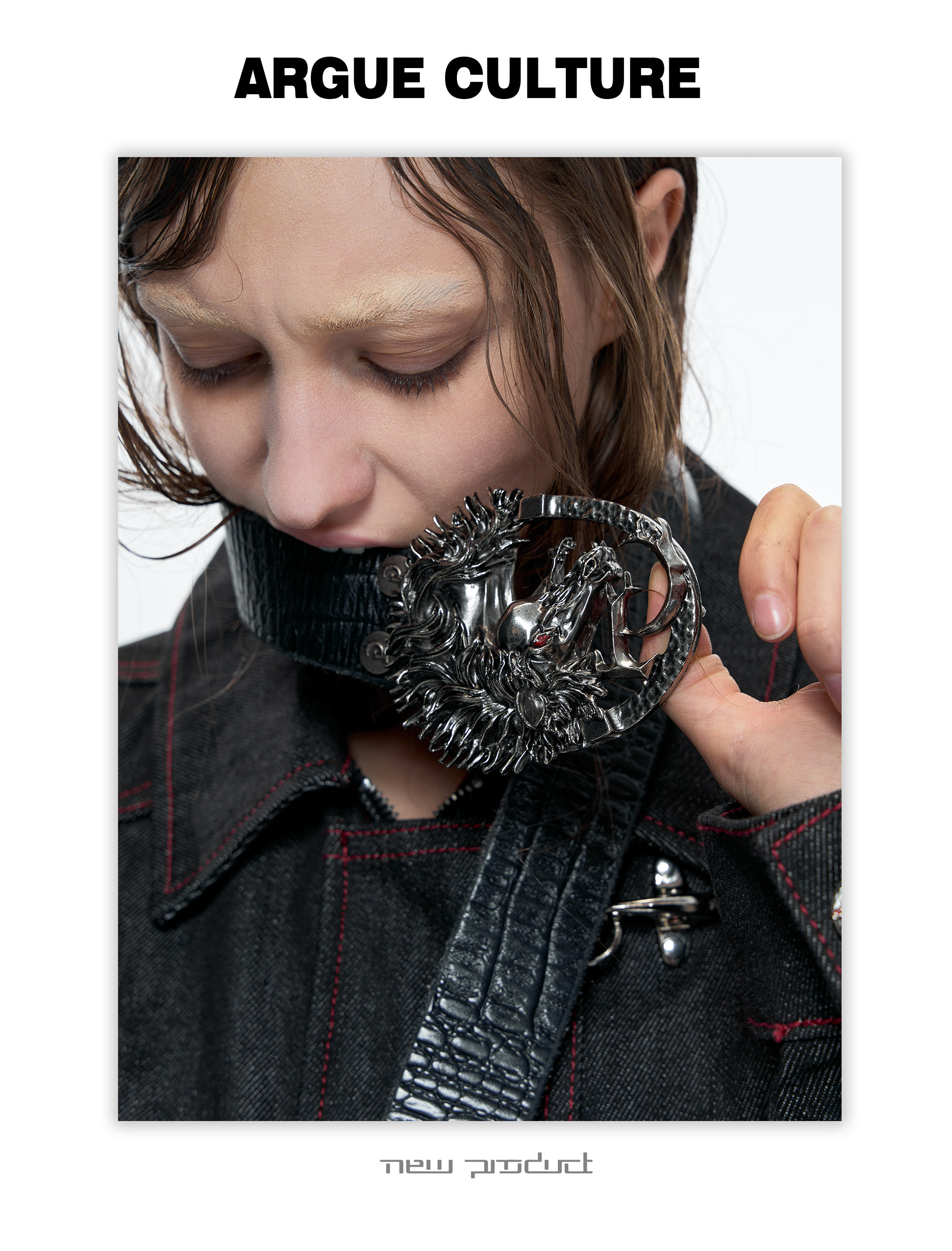 Crocodile Pattern Antique Horse Head Leather Belt WN23334
