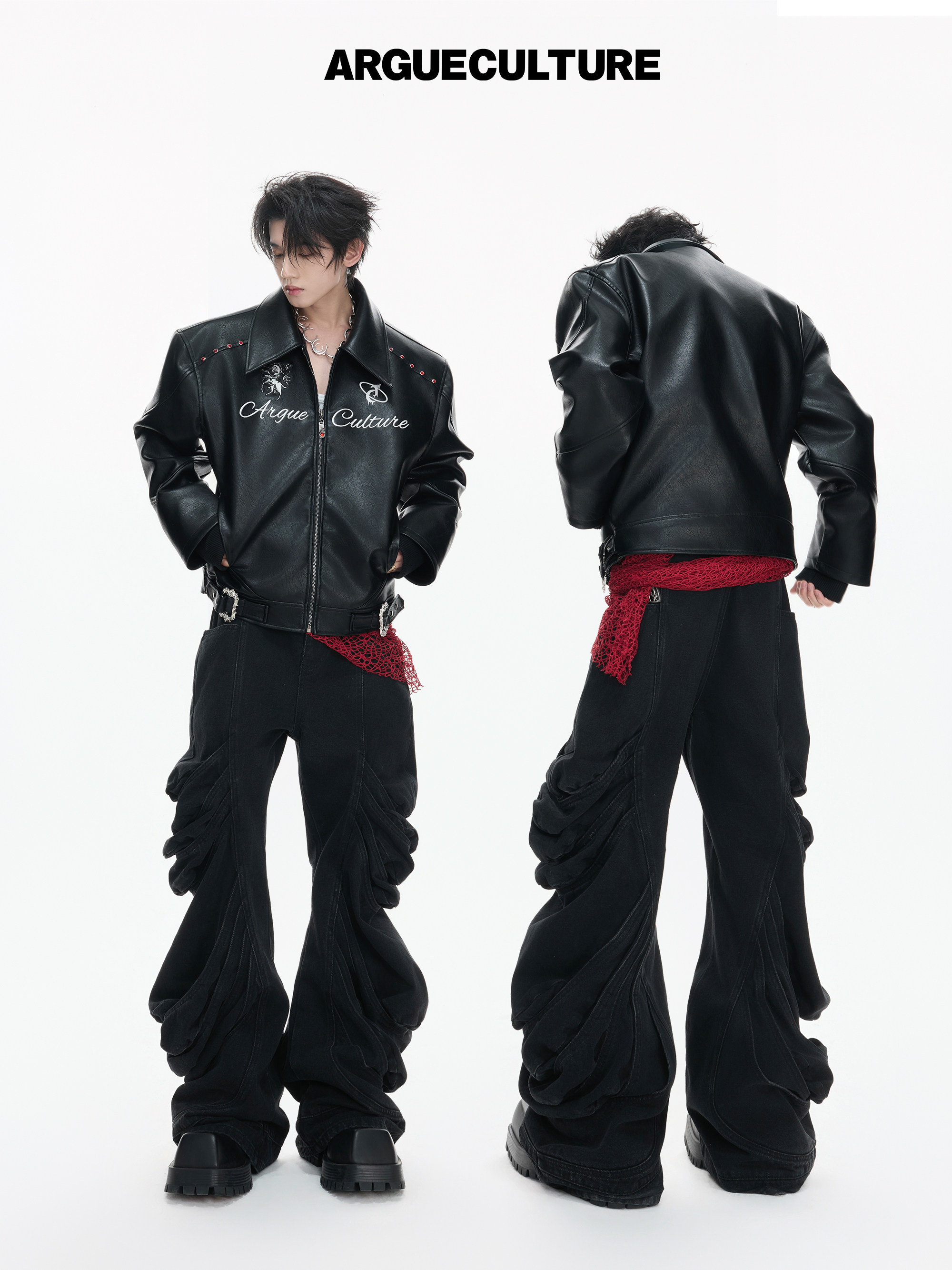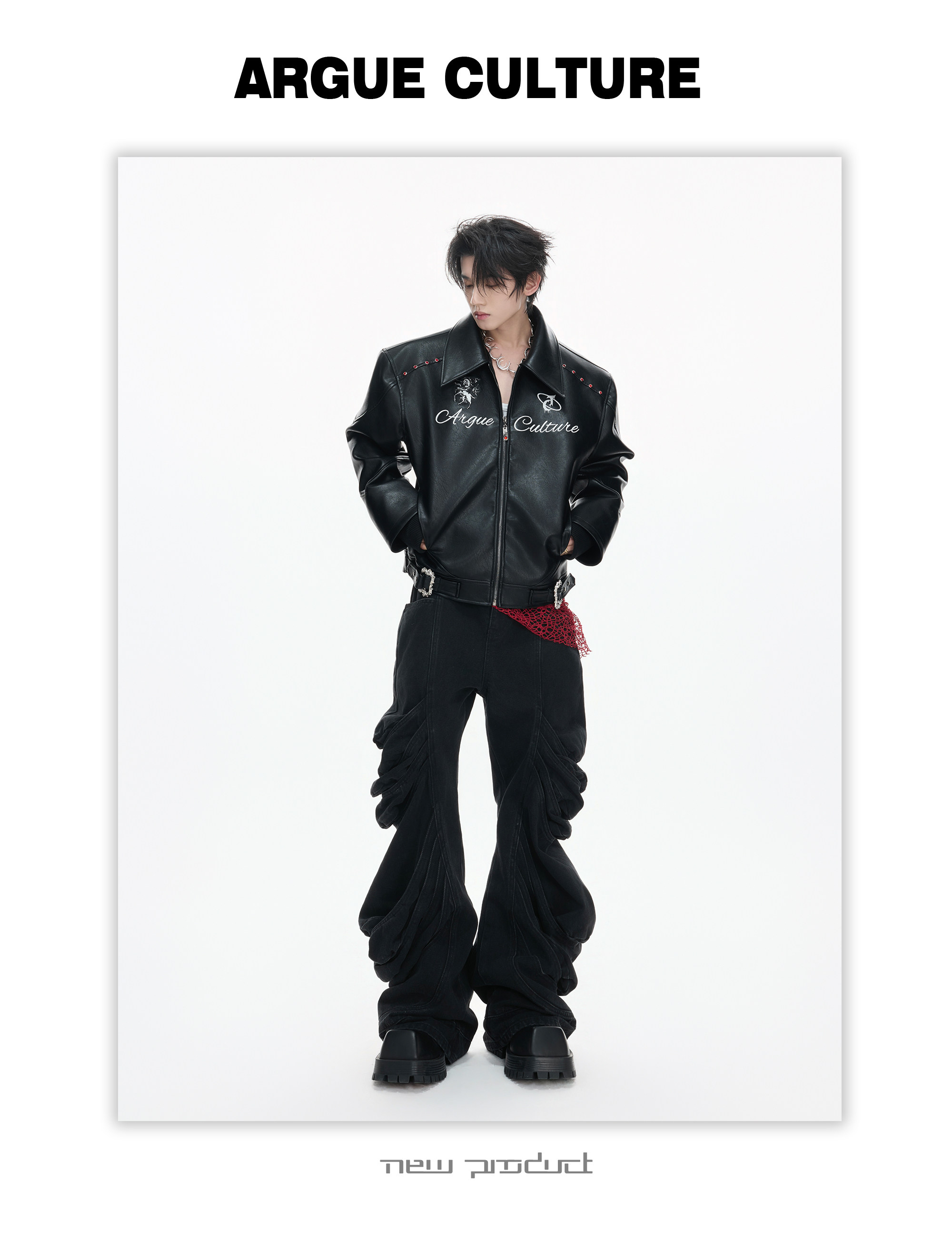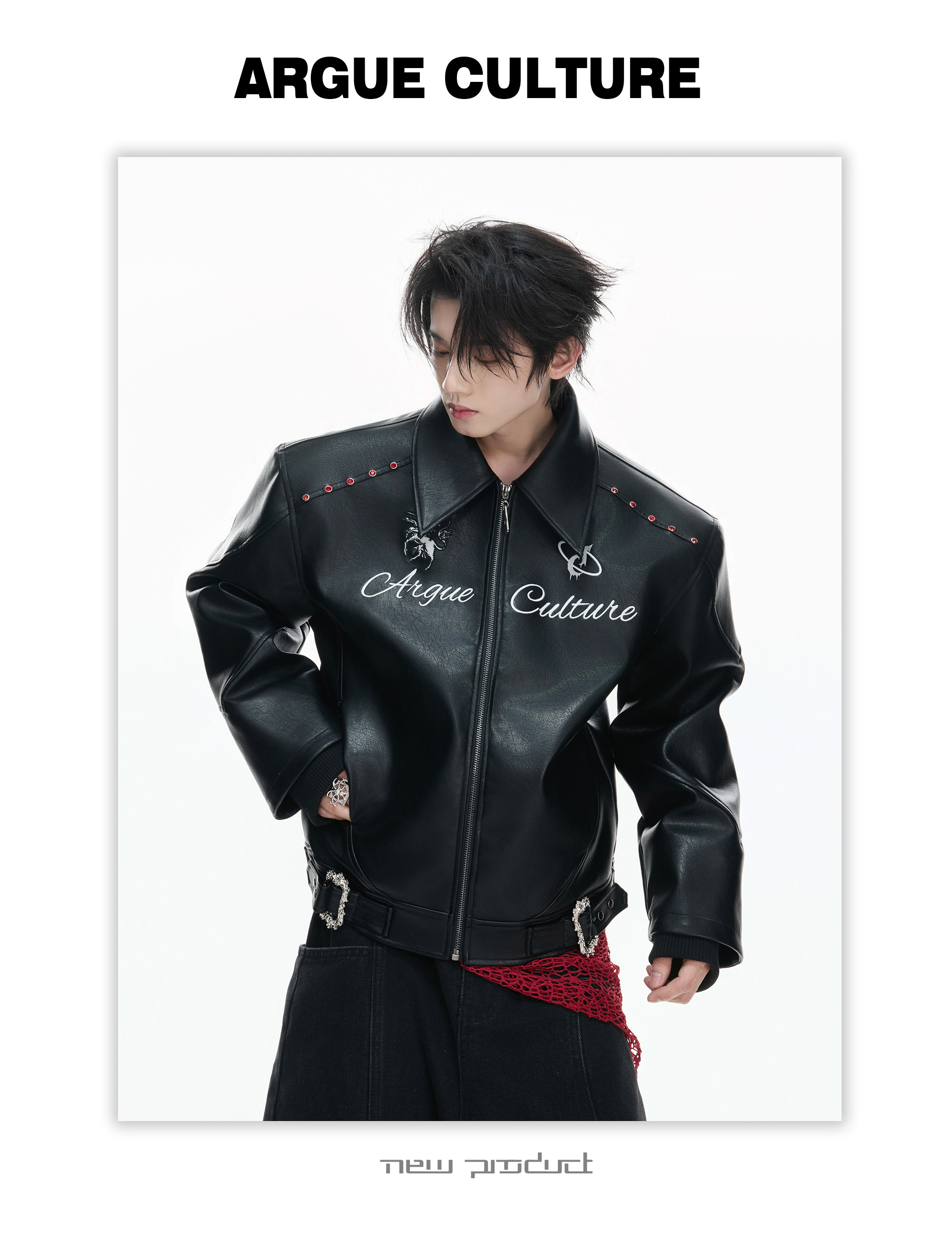 Original Crack Texture Fake Layered Thick PU Leather Jacket WN23335