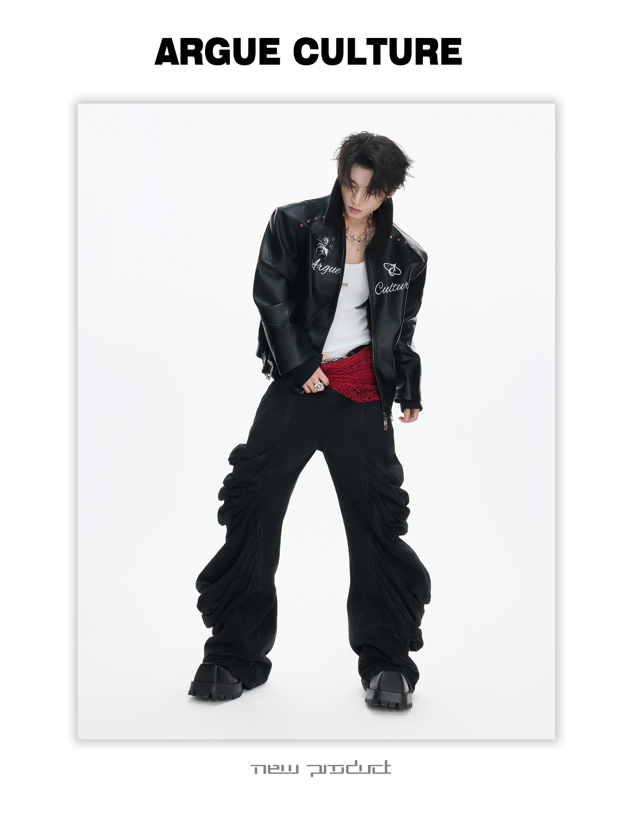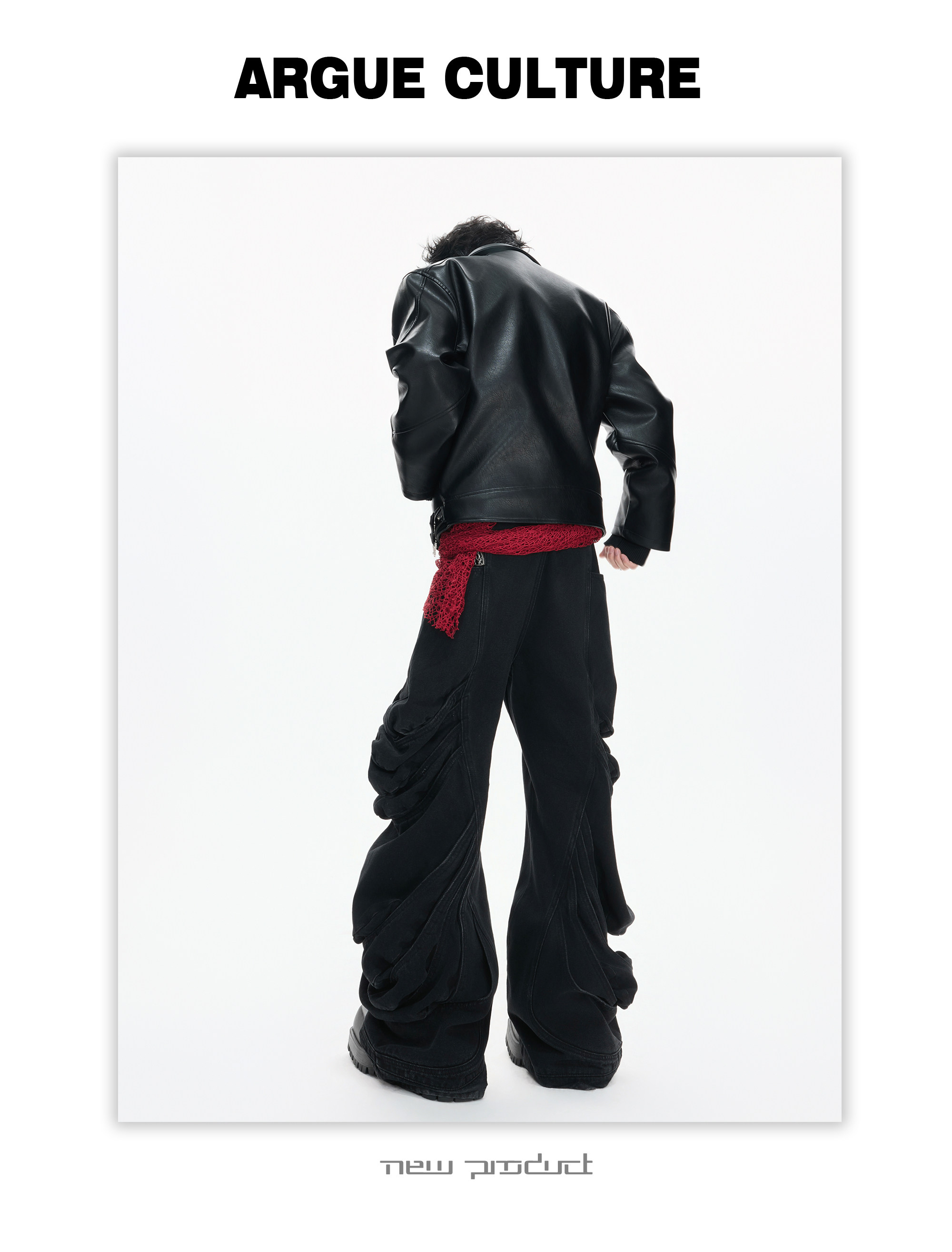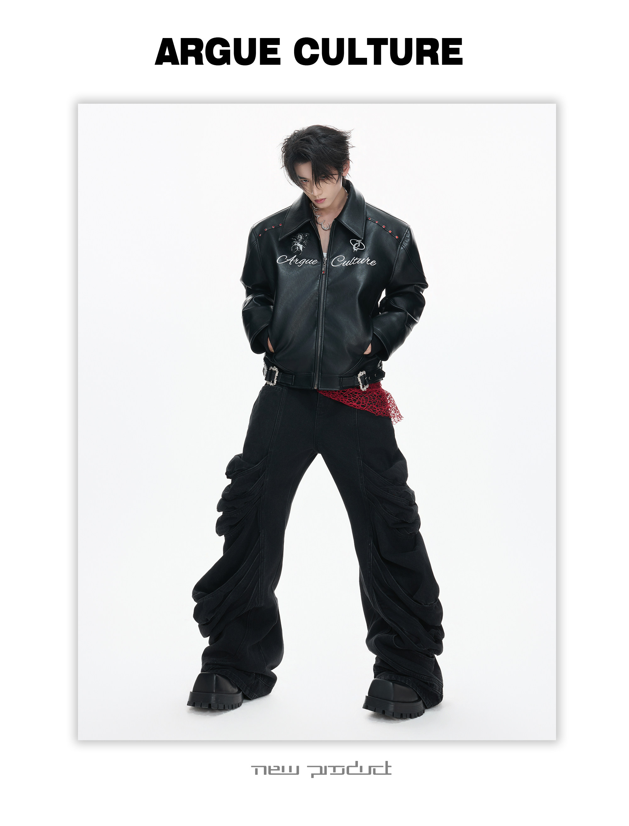 Original Crack Texture Fake Layered Thick PU Leather Jacket WN23335