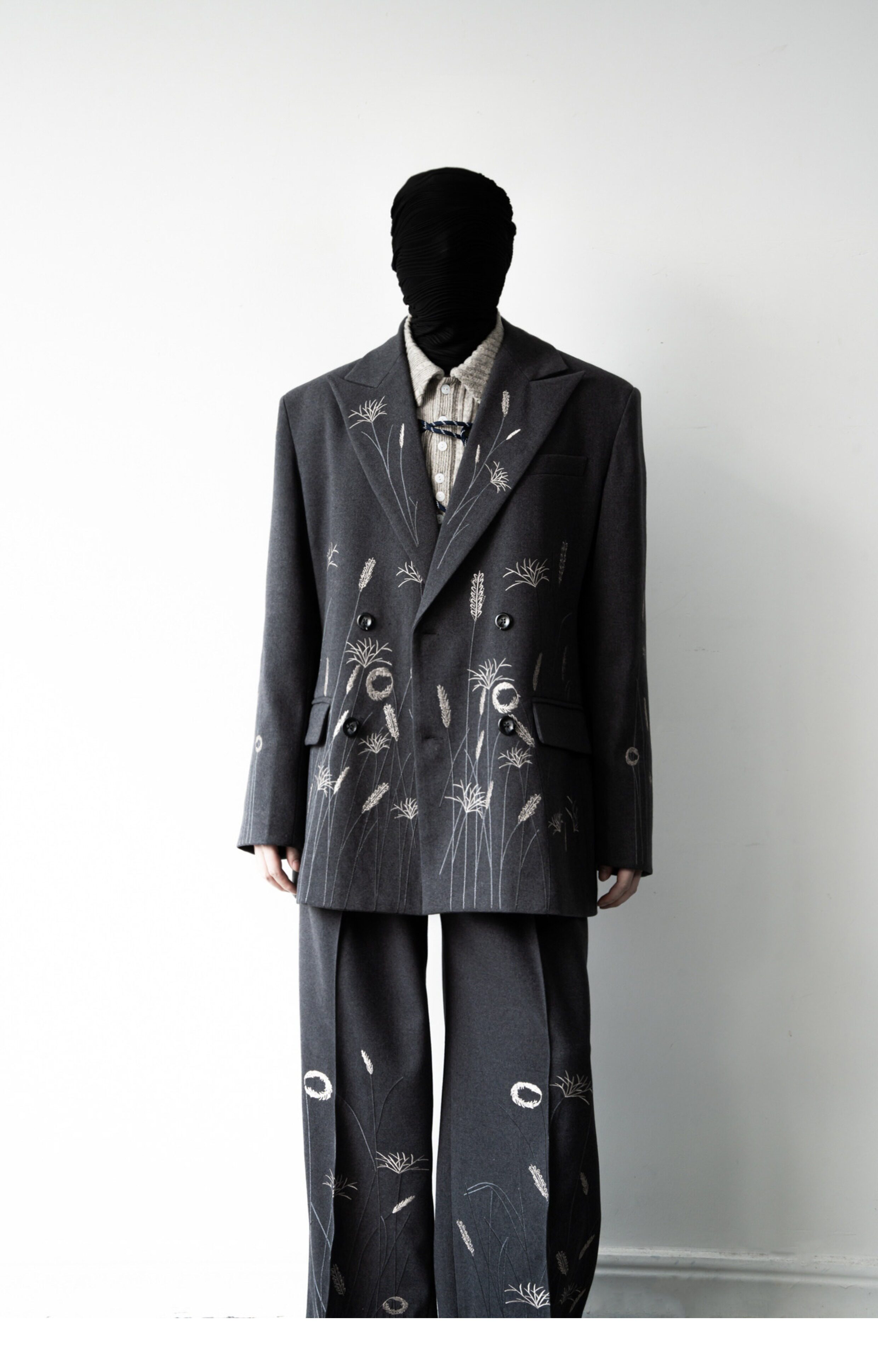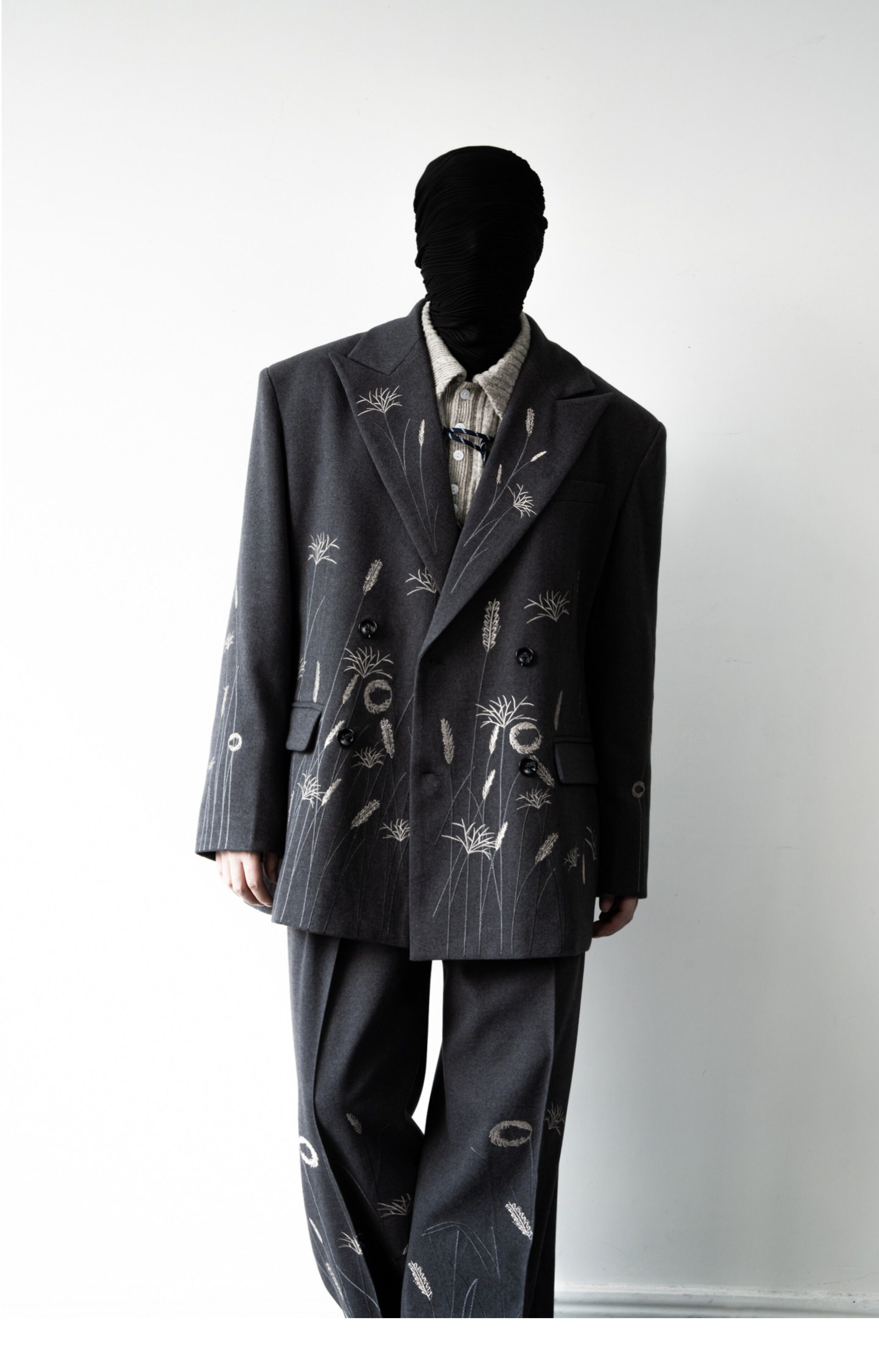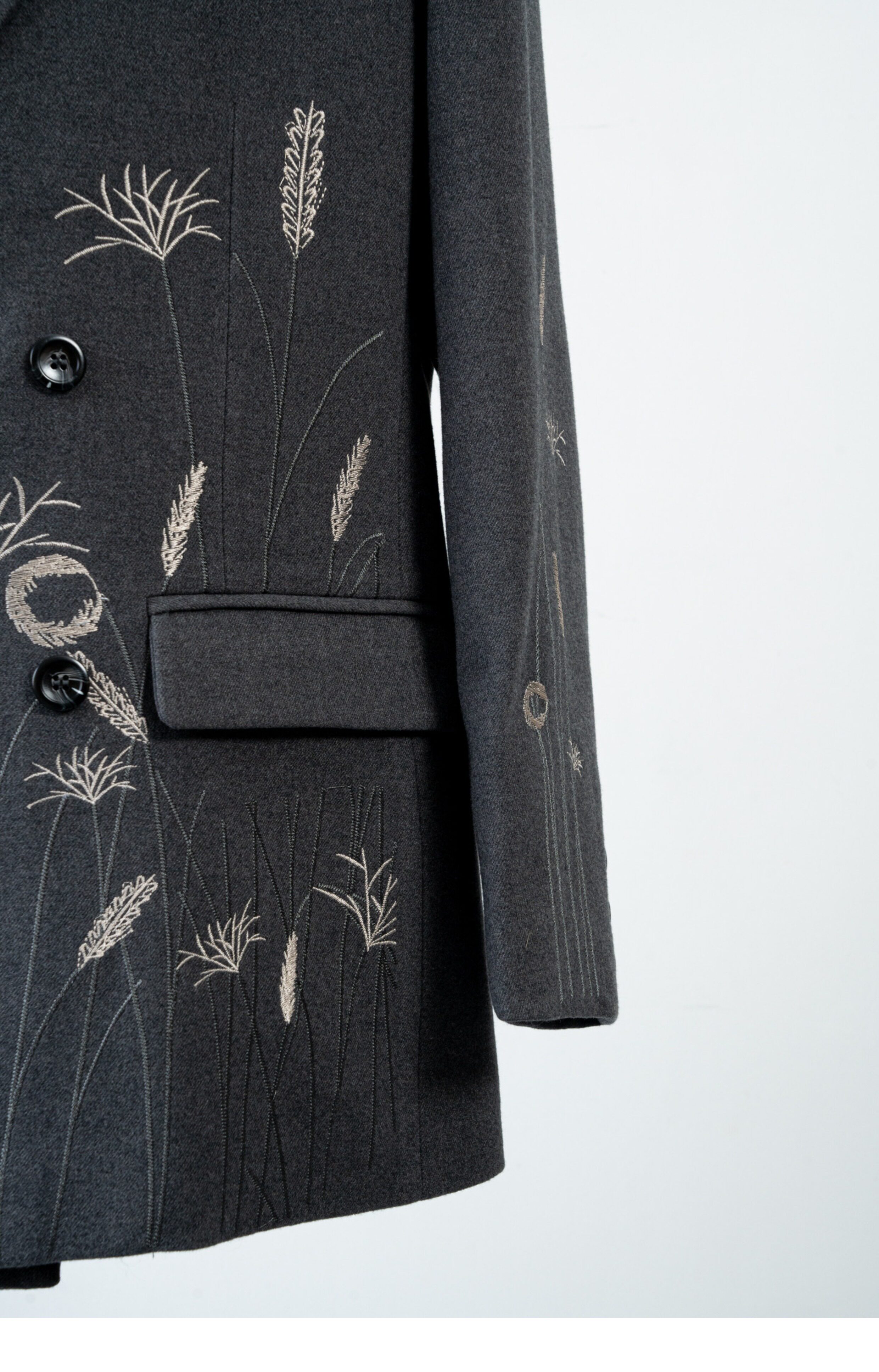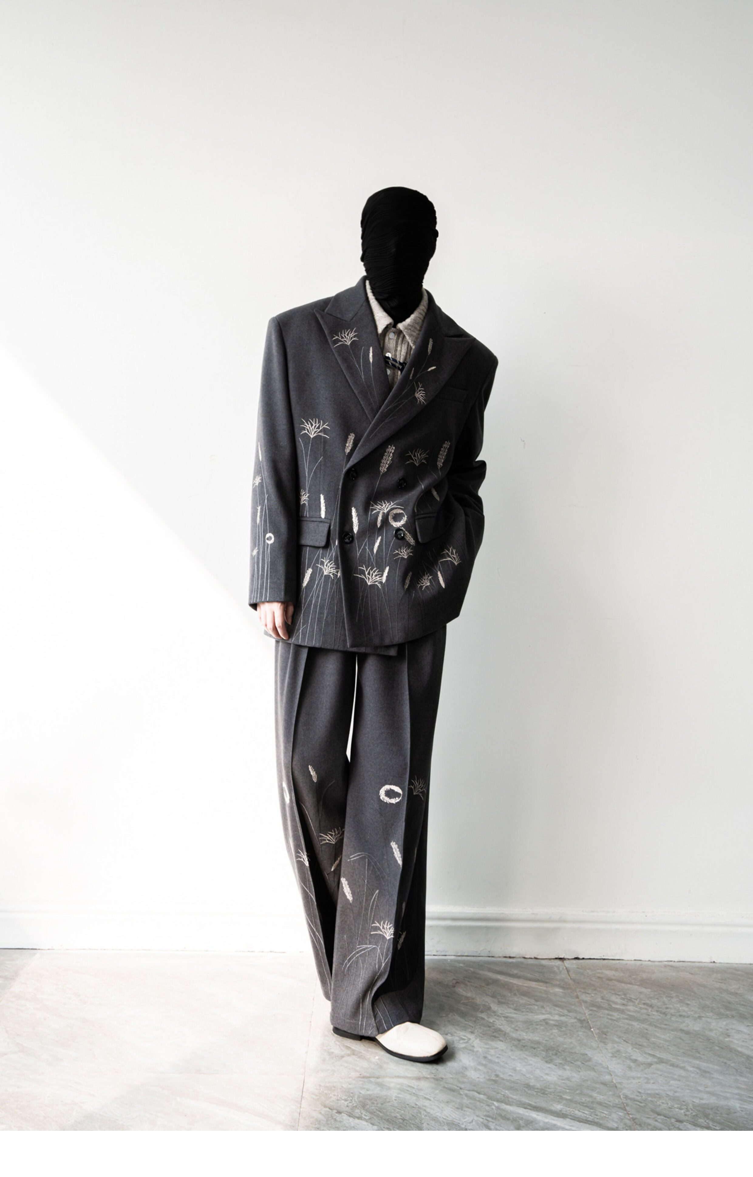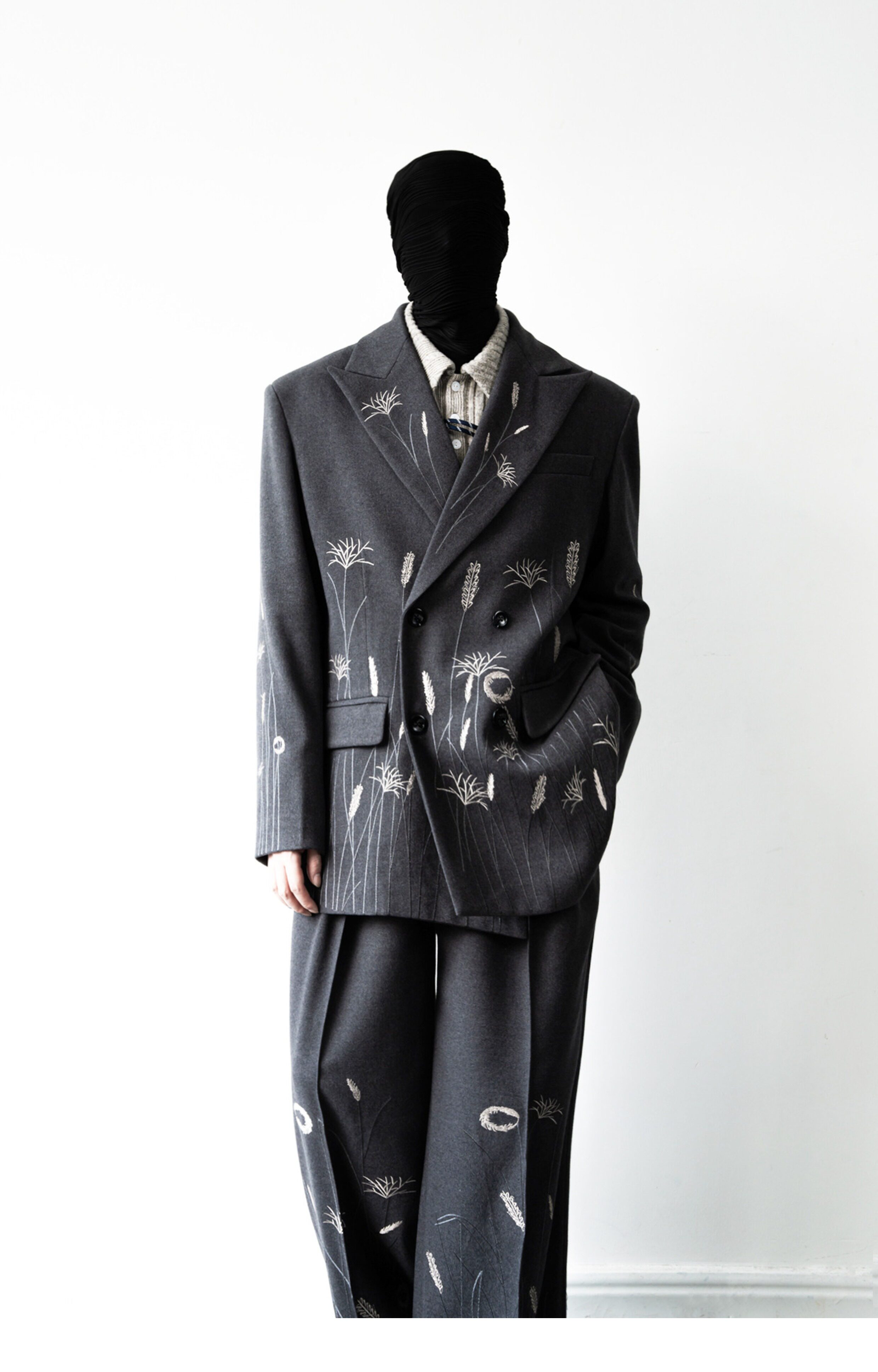 Floral Embroidery Double-Breasted Tailored Jacket & Wide-Leg Trousers Setup WN23641