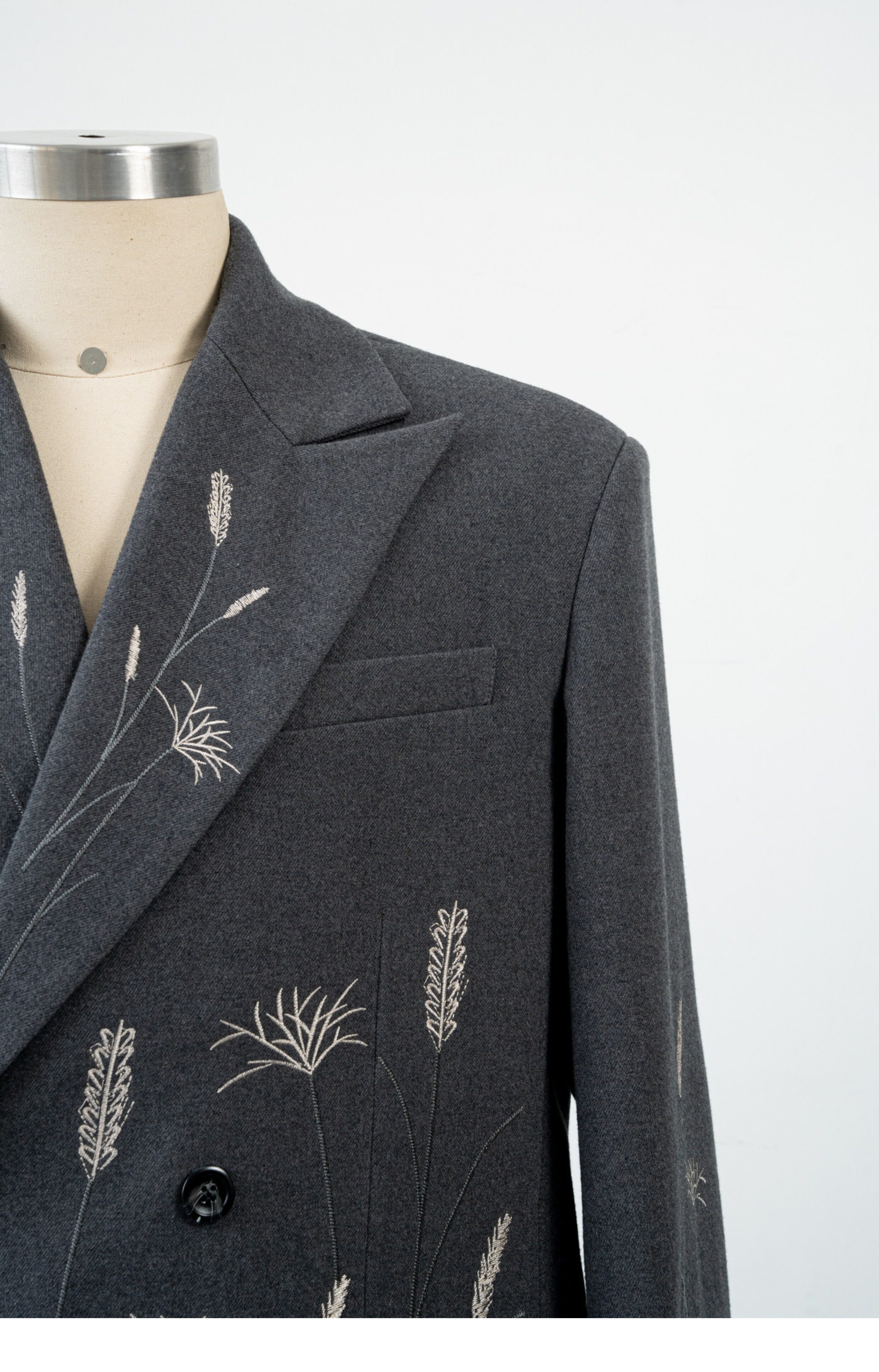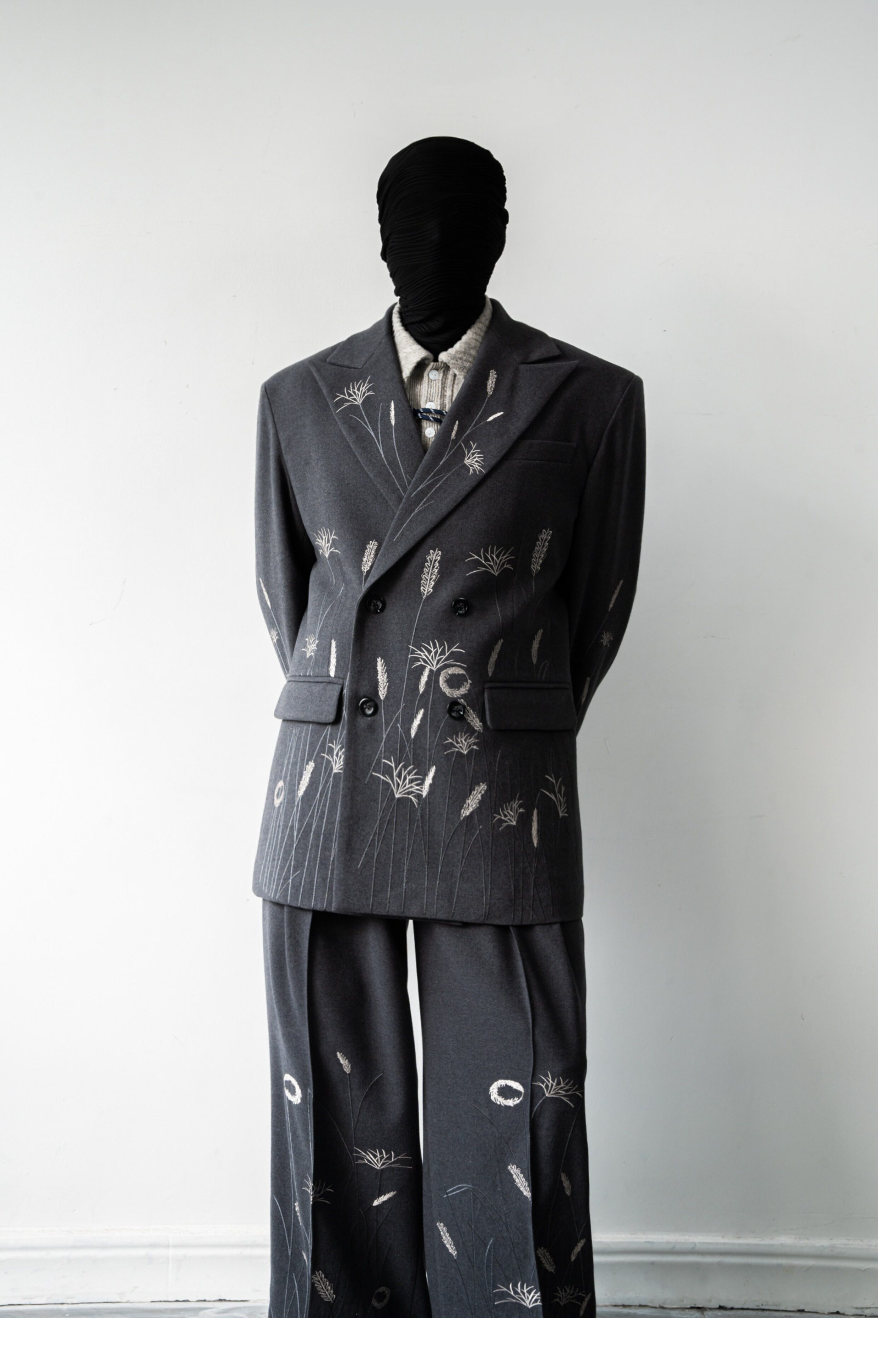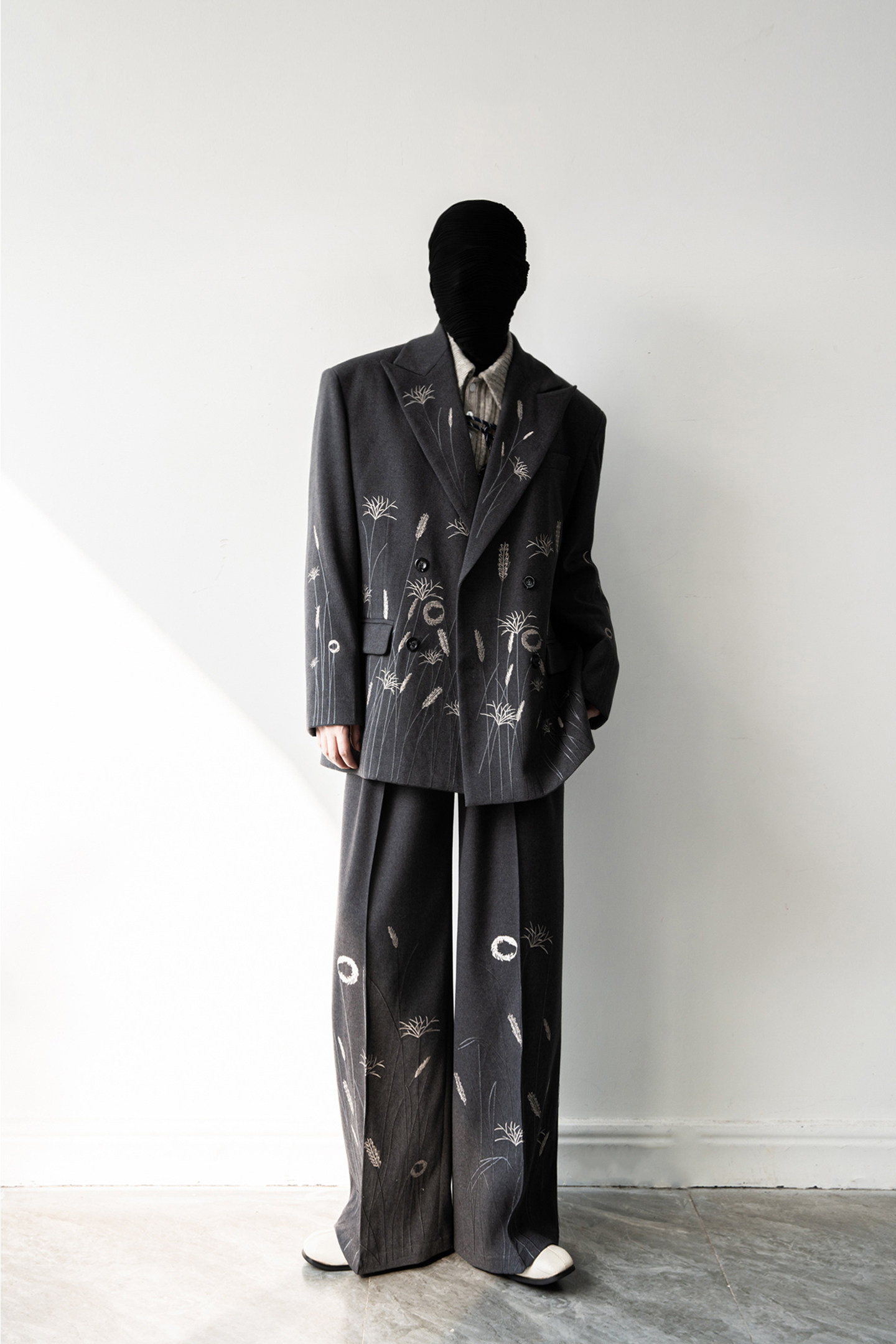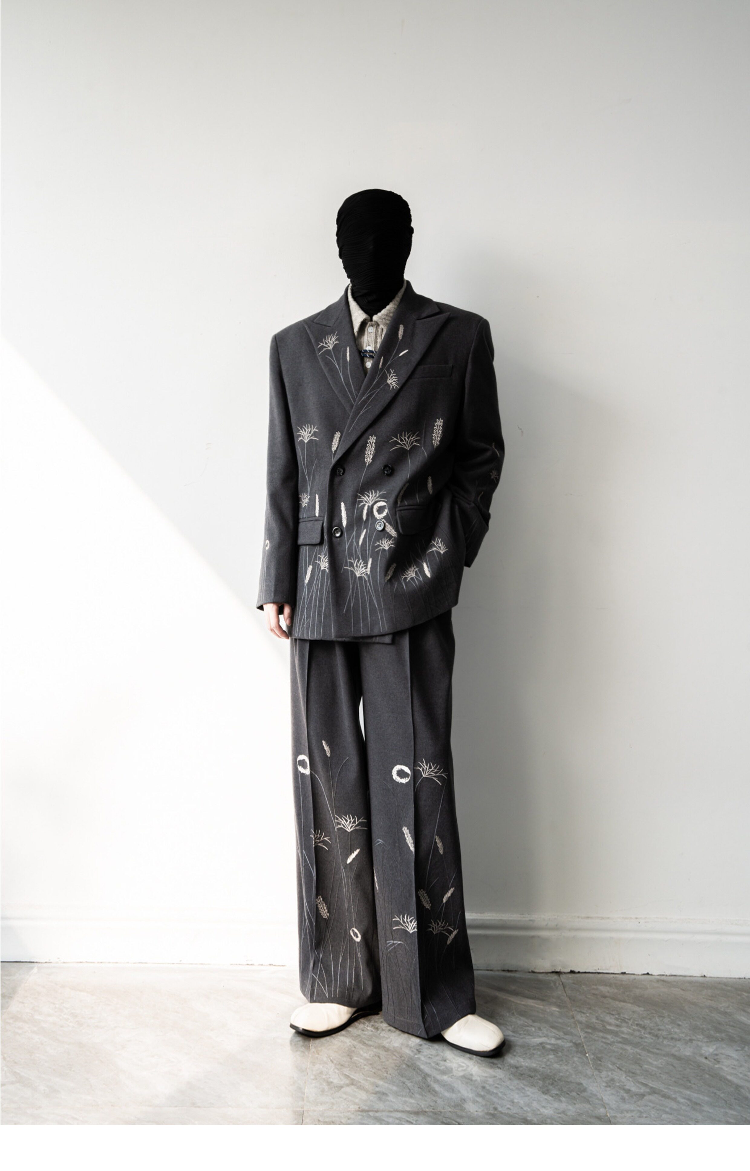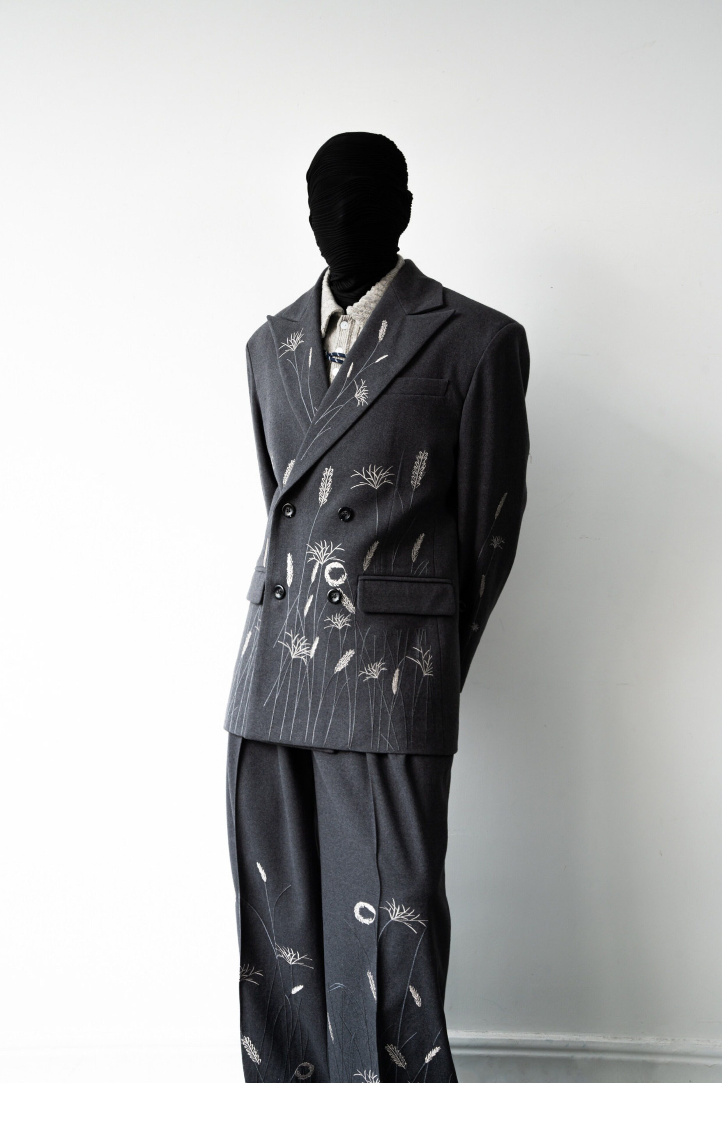 Floral Embroidery Double-Breasted Tailored Jacket & Wide-Leg Trousers Setup WN23641