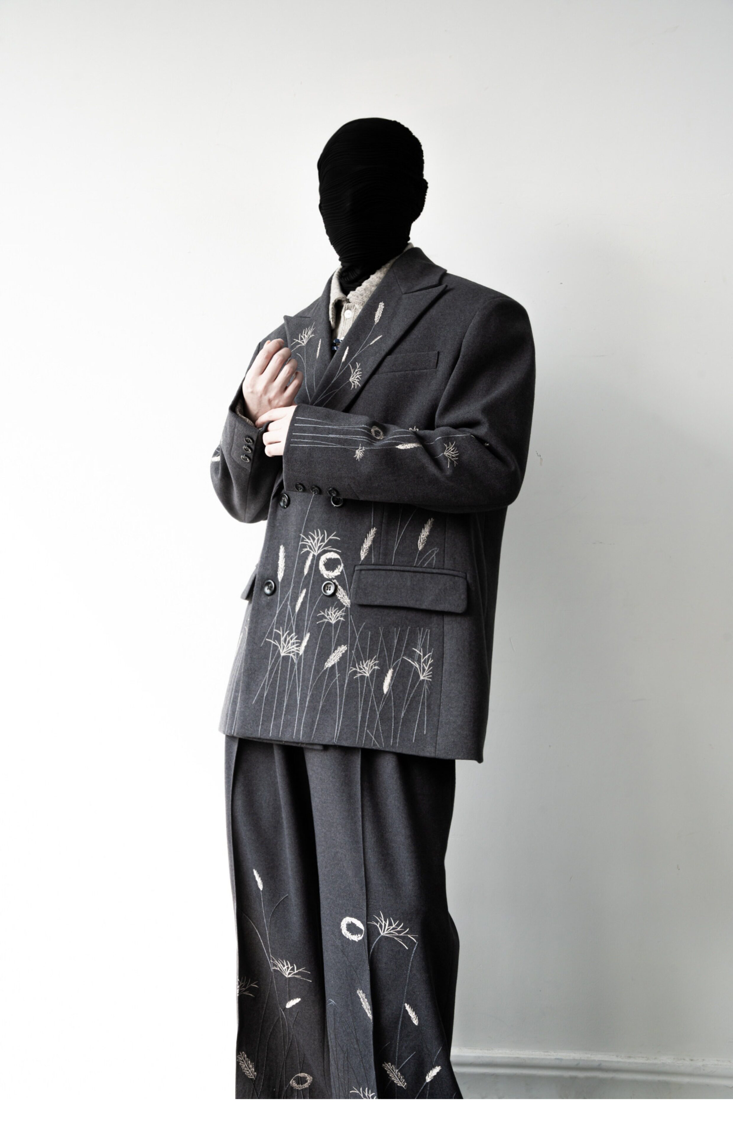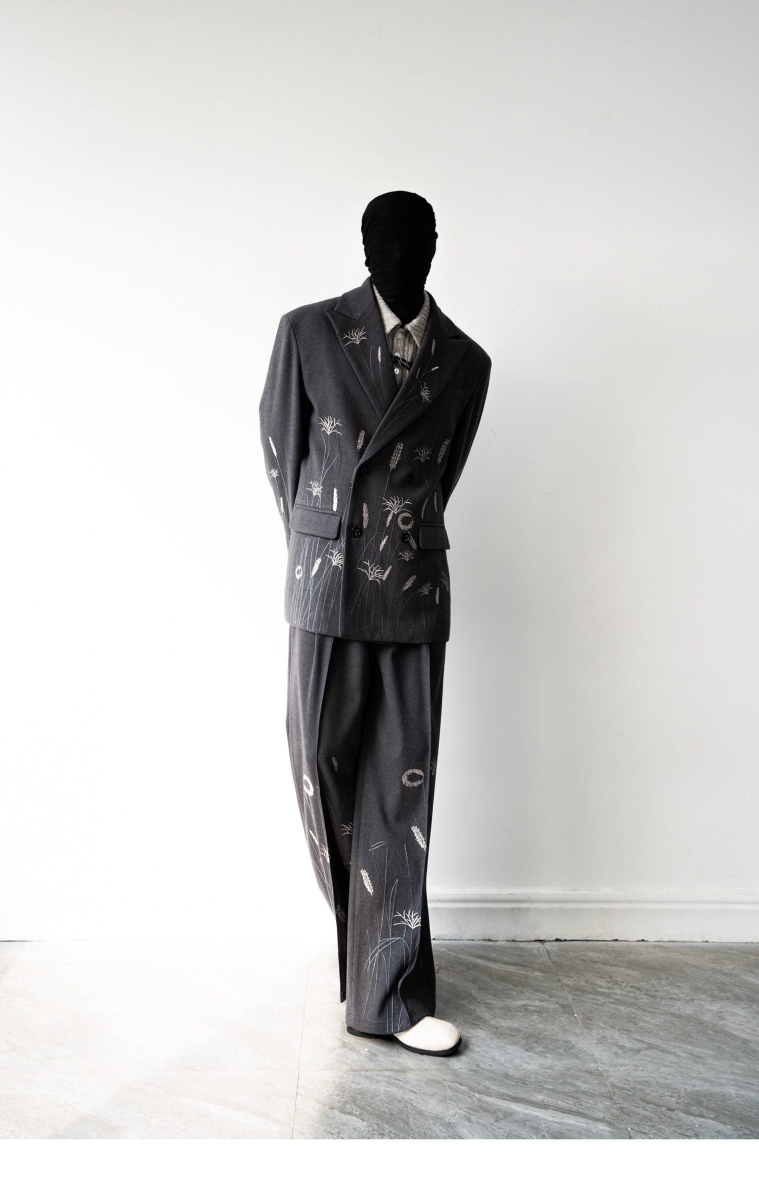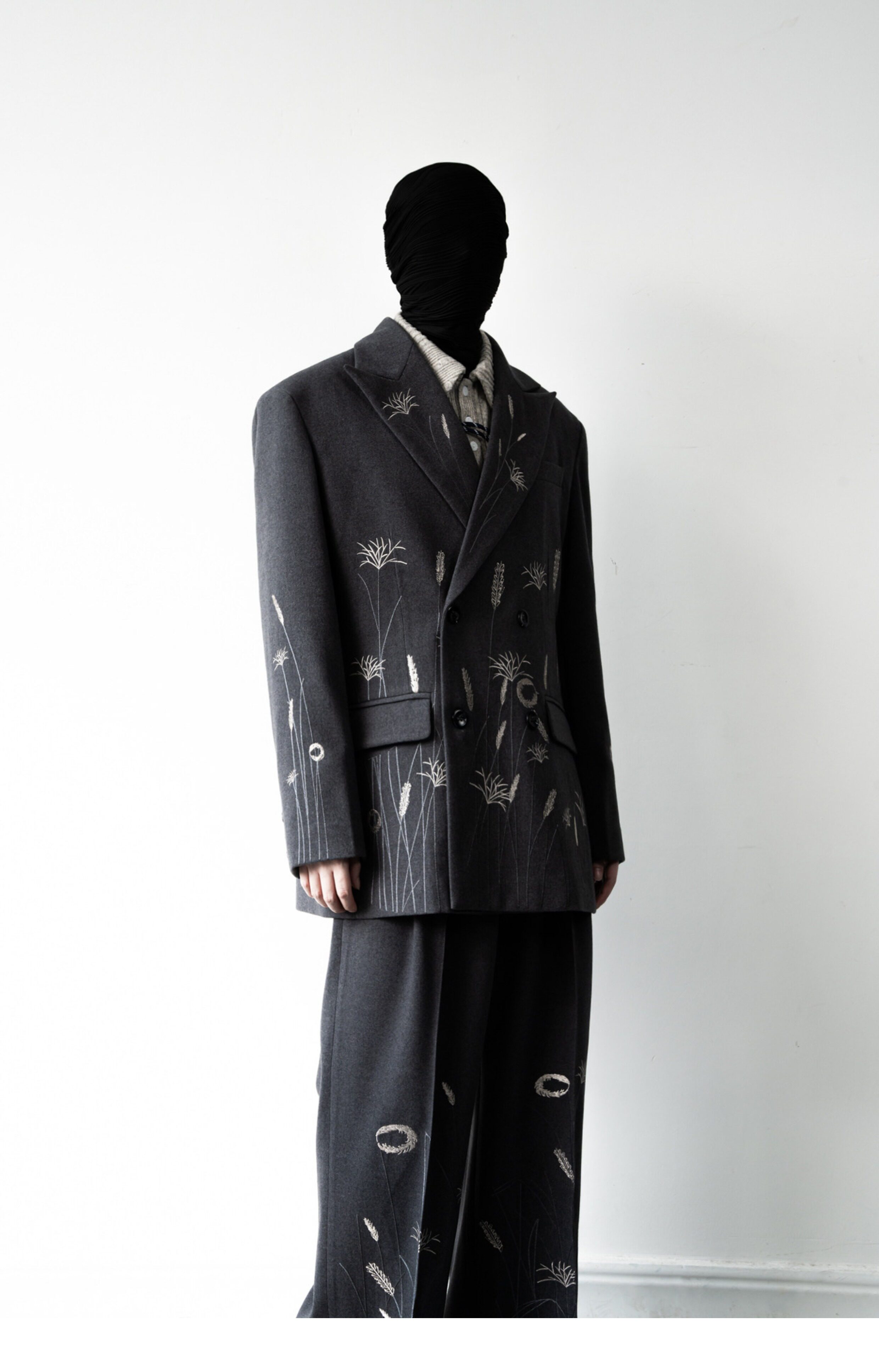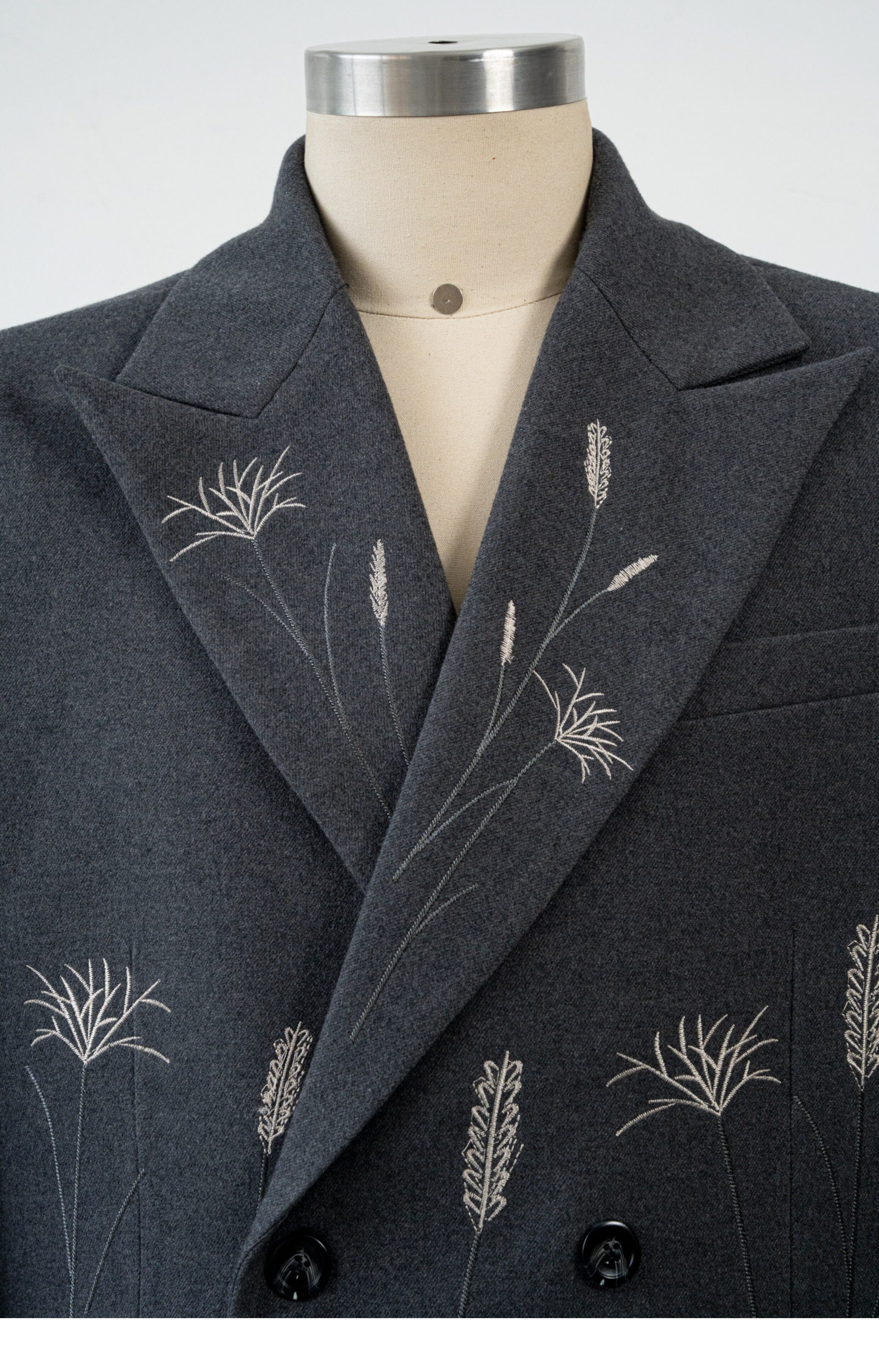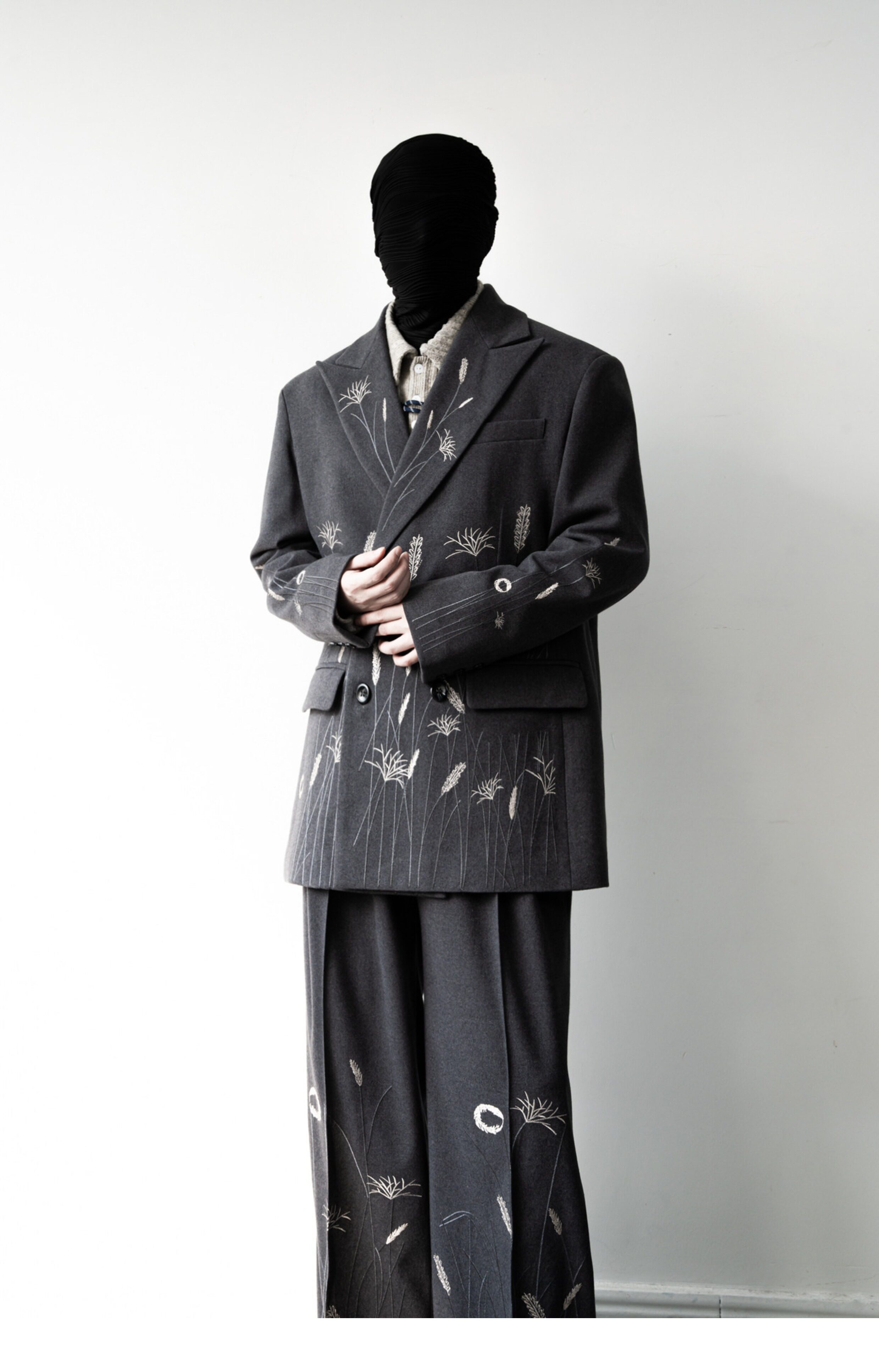 Floral Embroidery Double-Breasted Tailored Jacket & Wide-Leg Trousers Setup WN23641