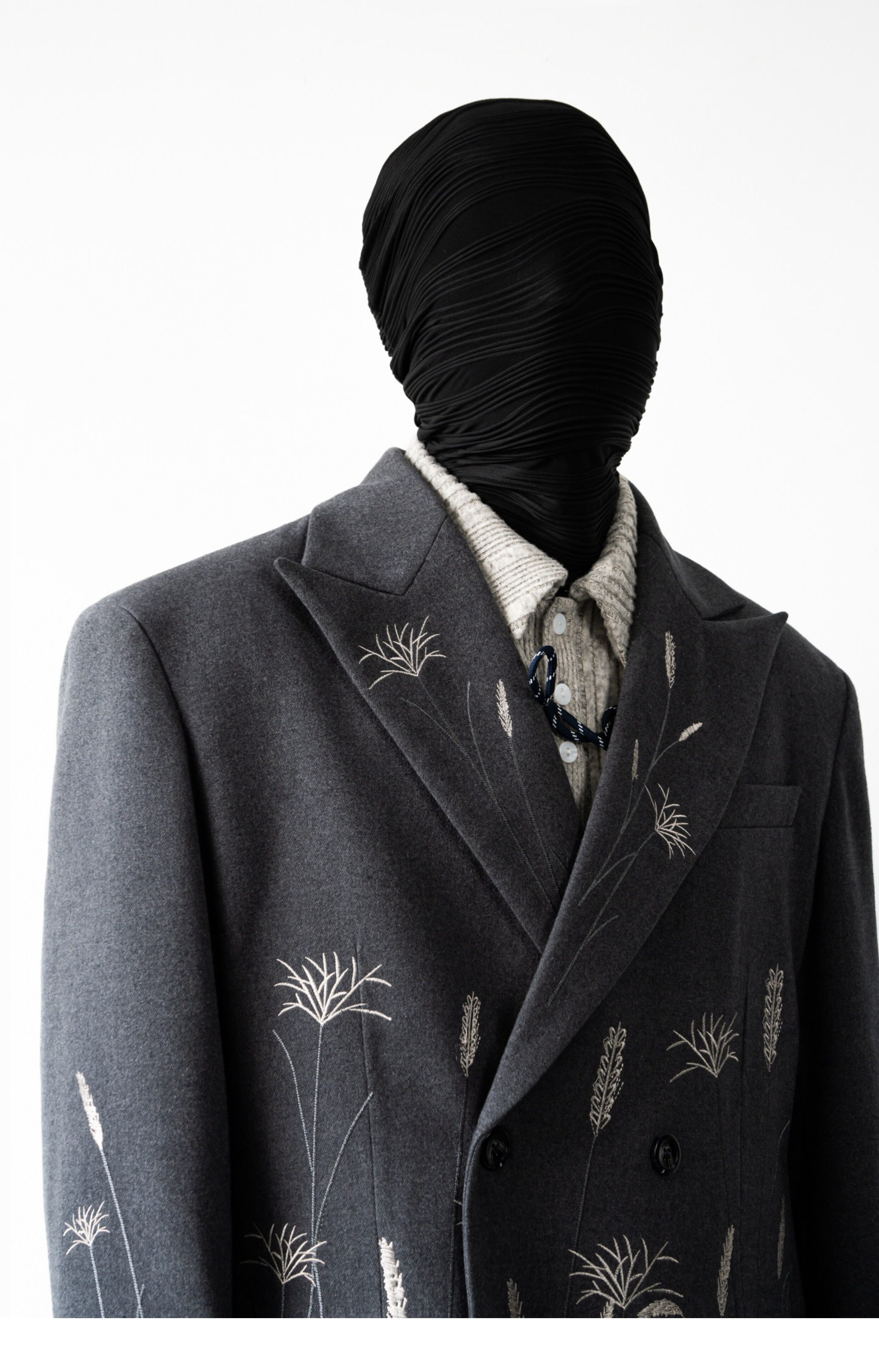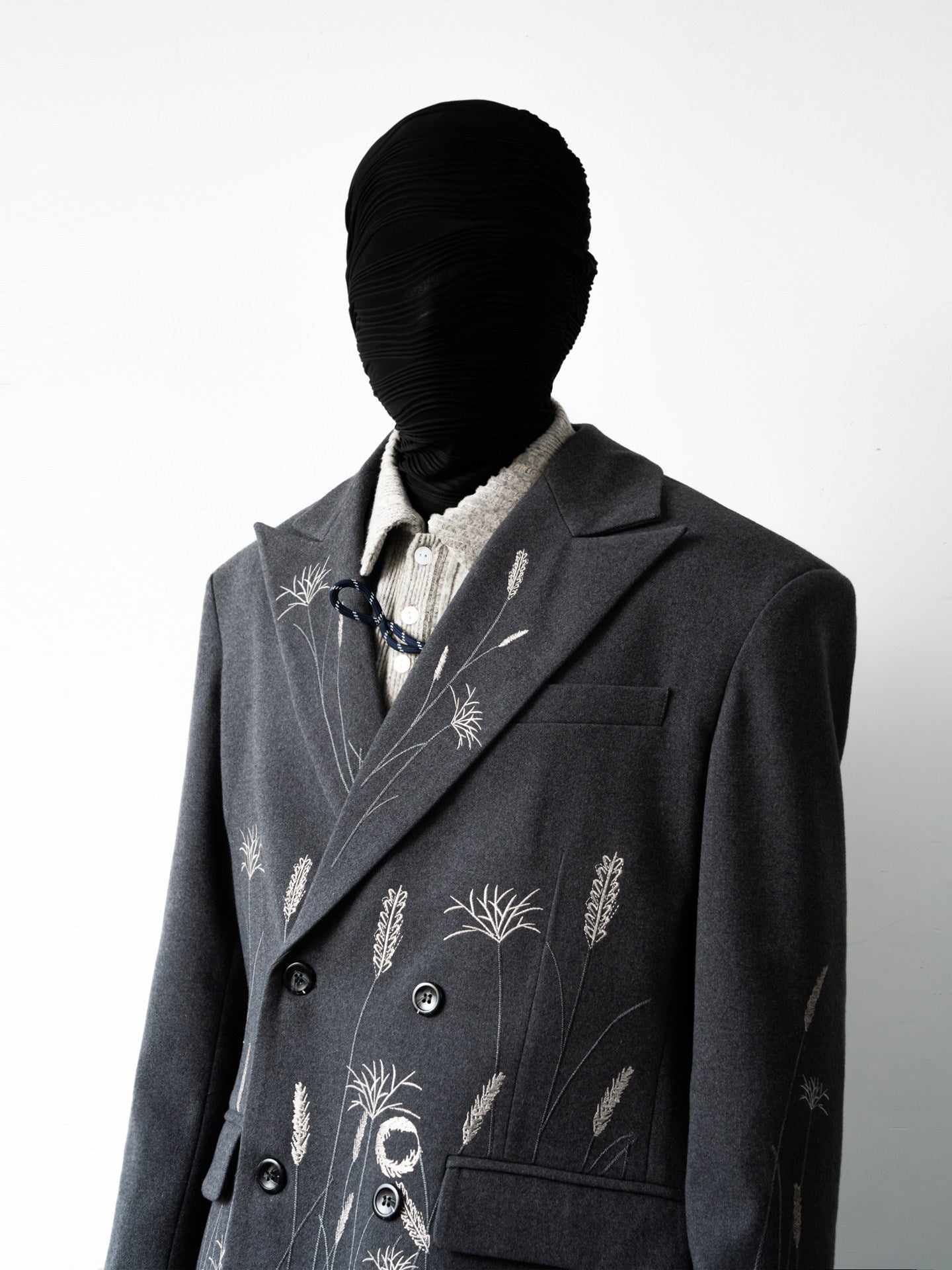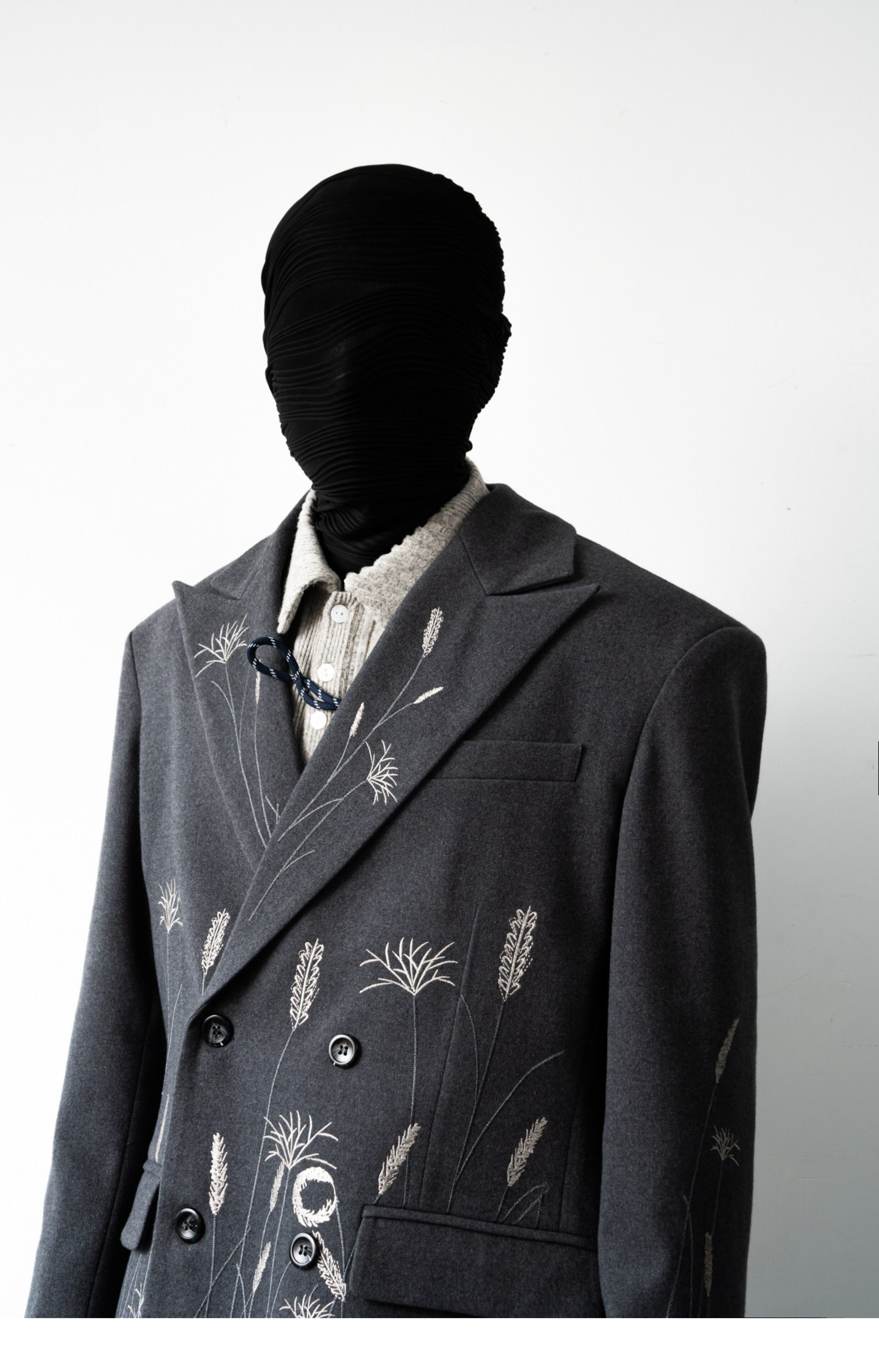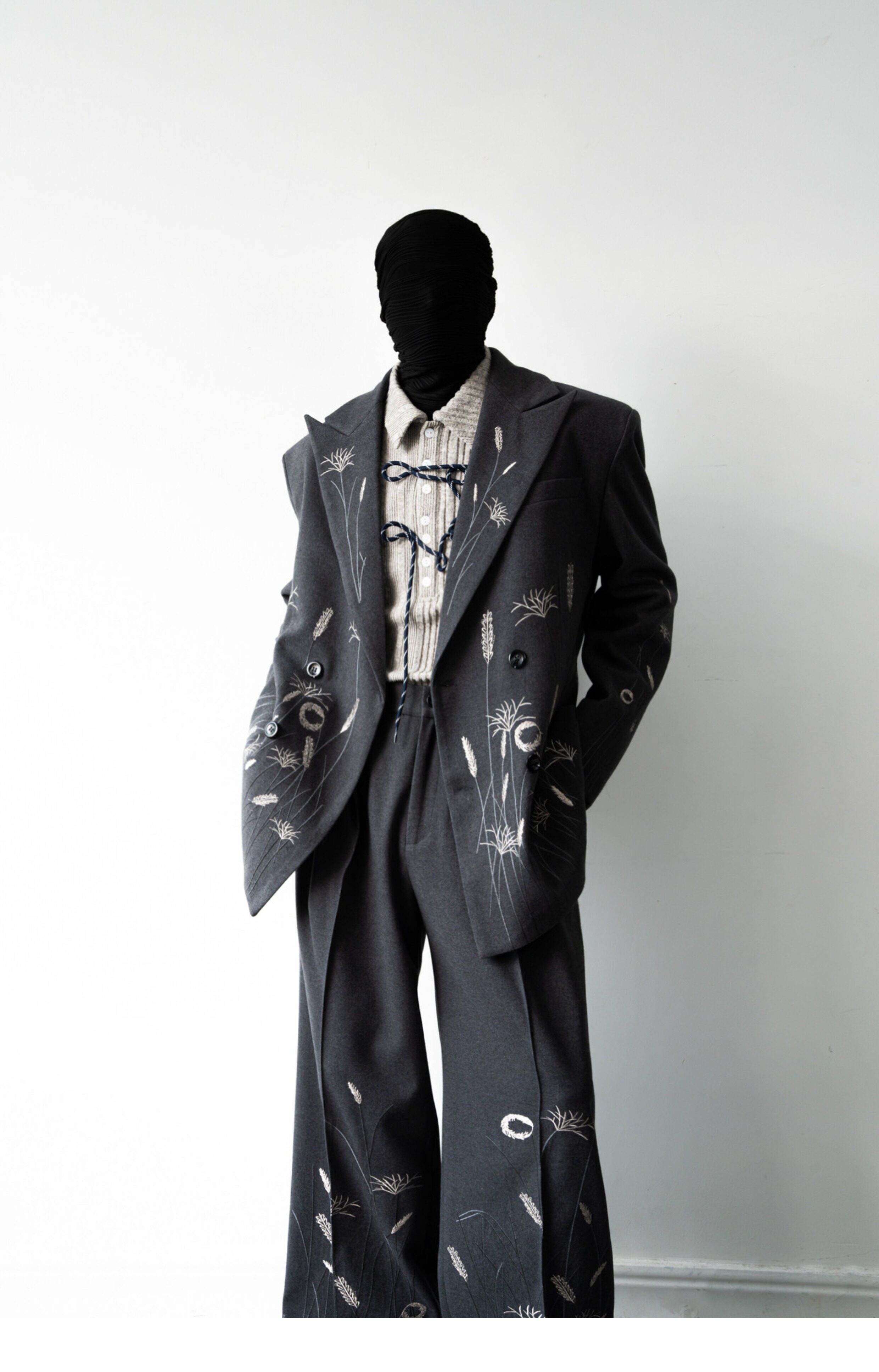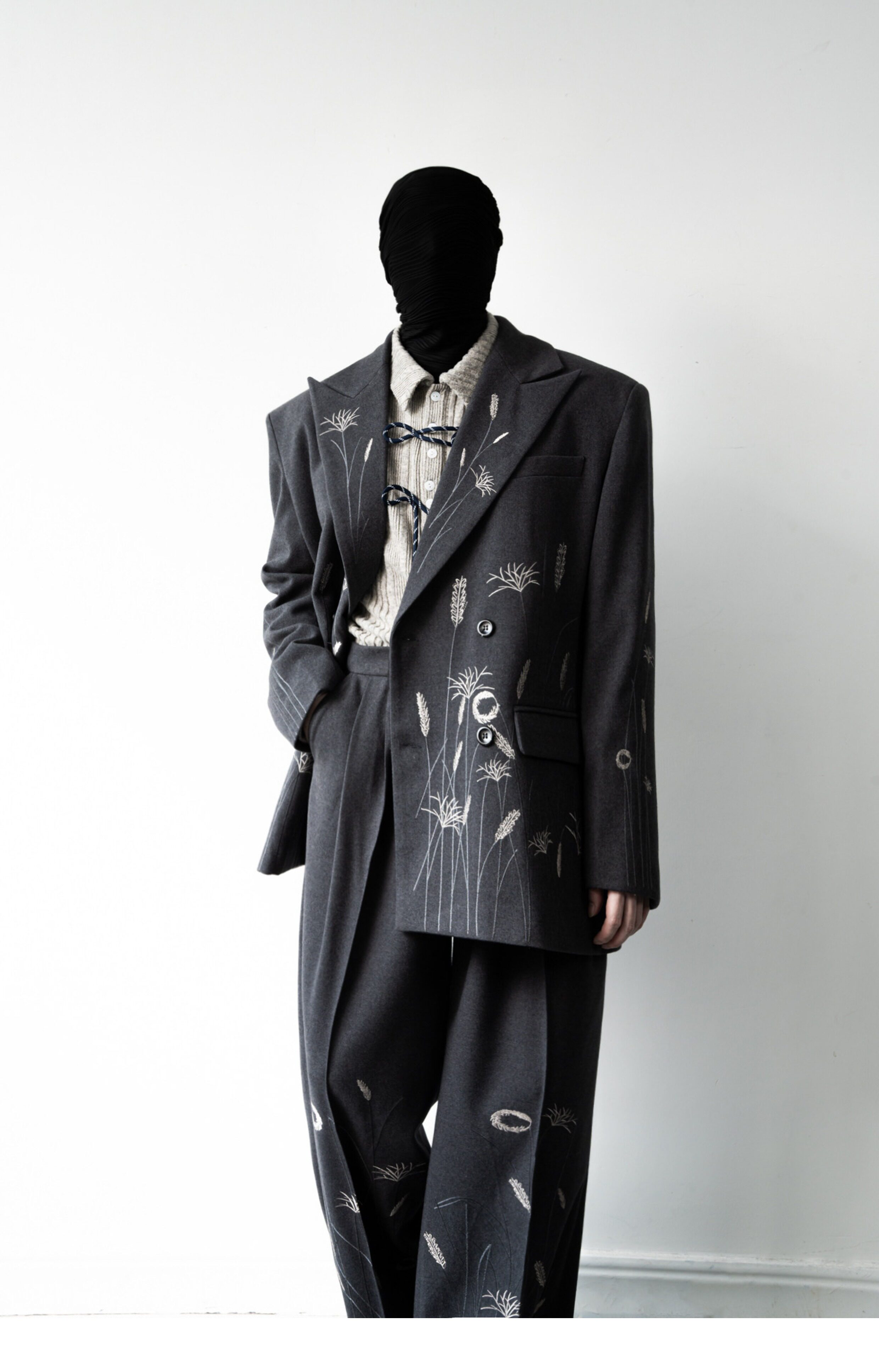 Floral Embroidery Double-Breasted Tailored Jacket & Wide-Leg Trousers Setup WN23641