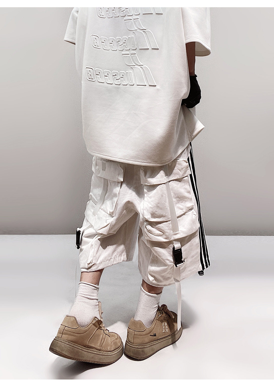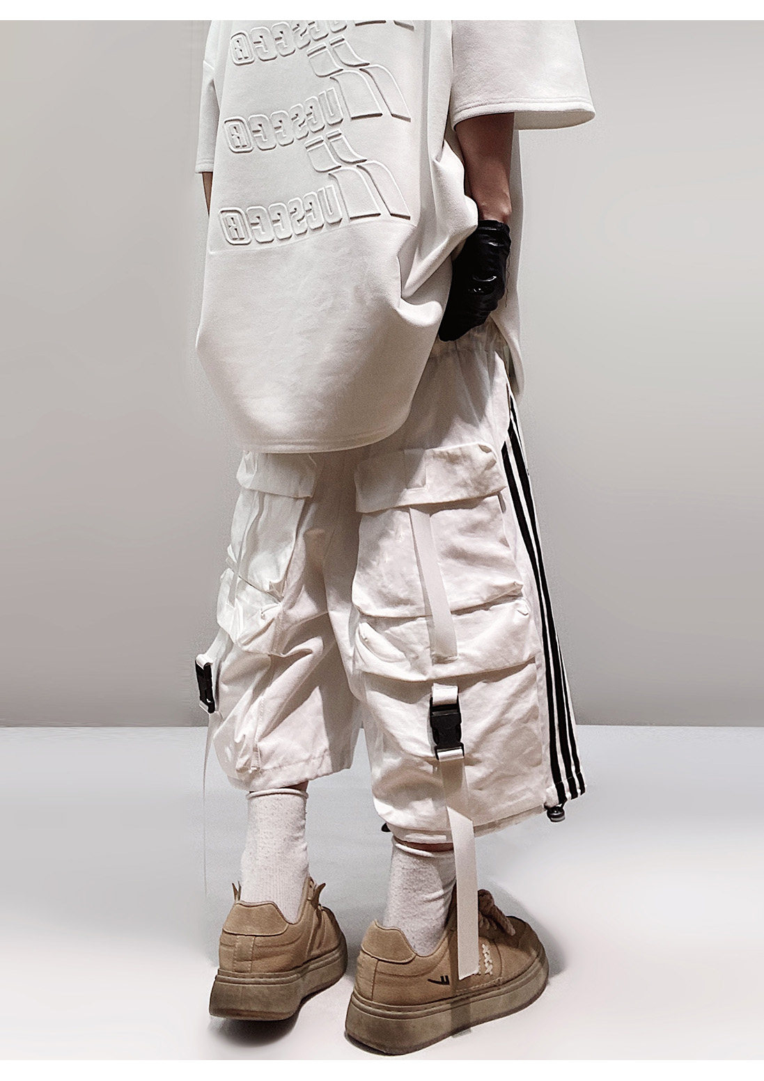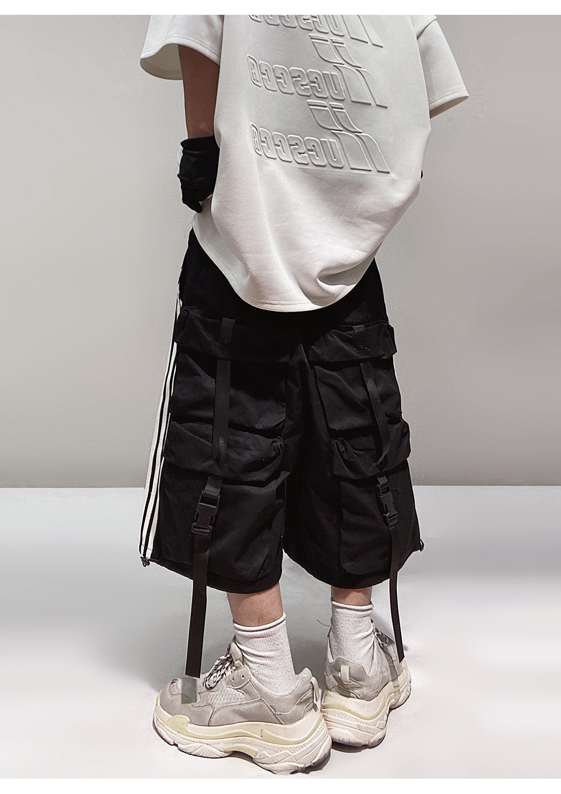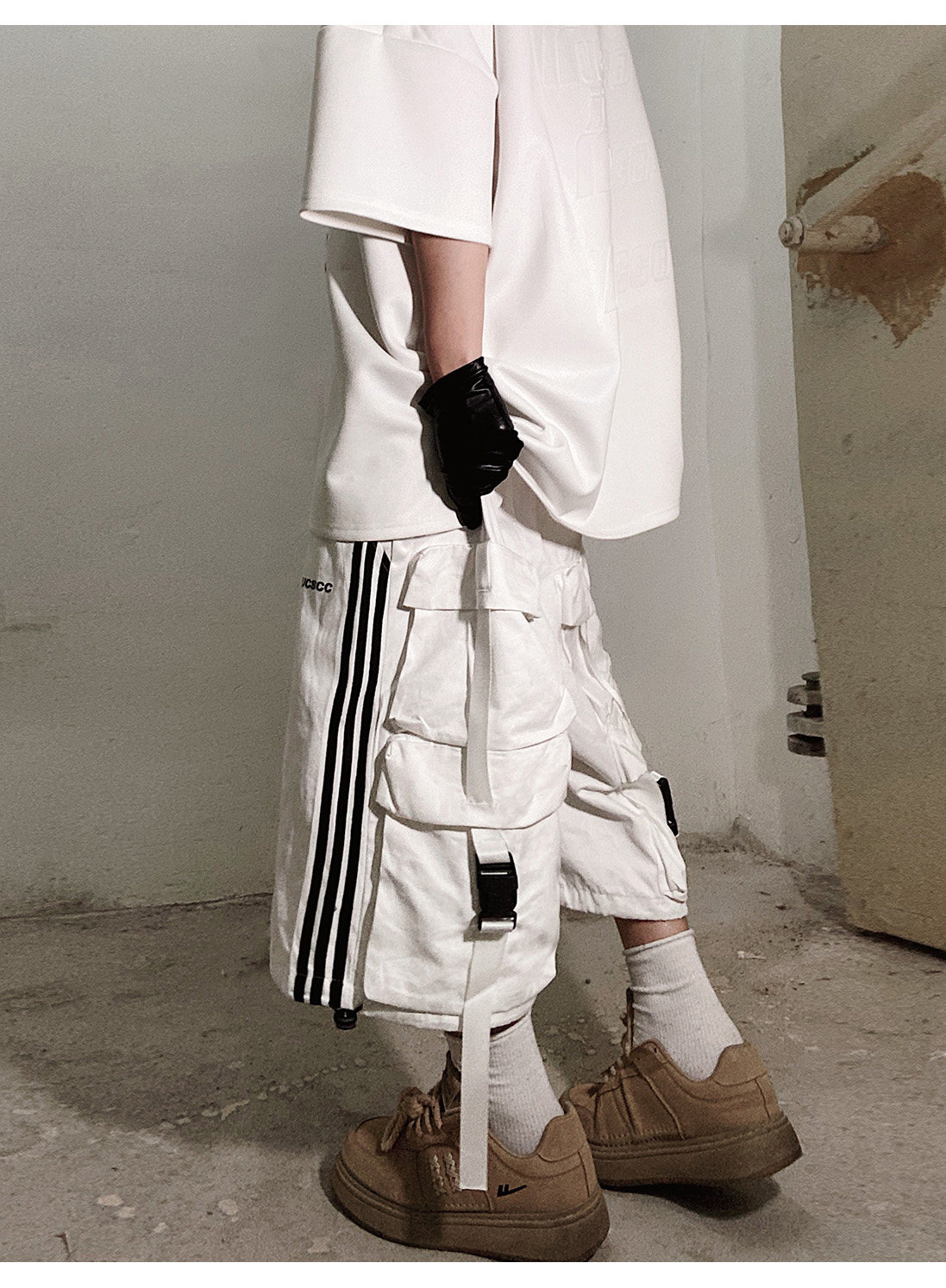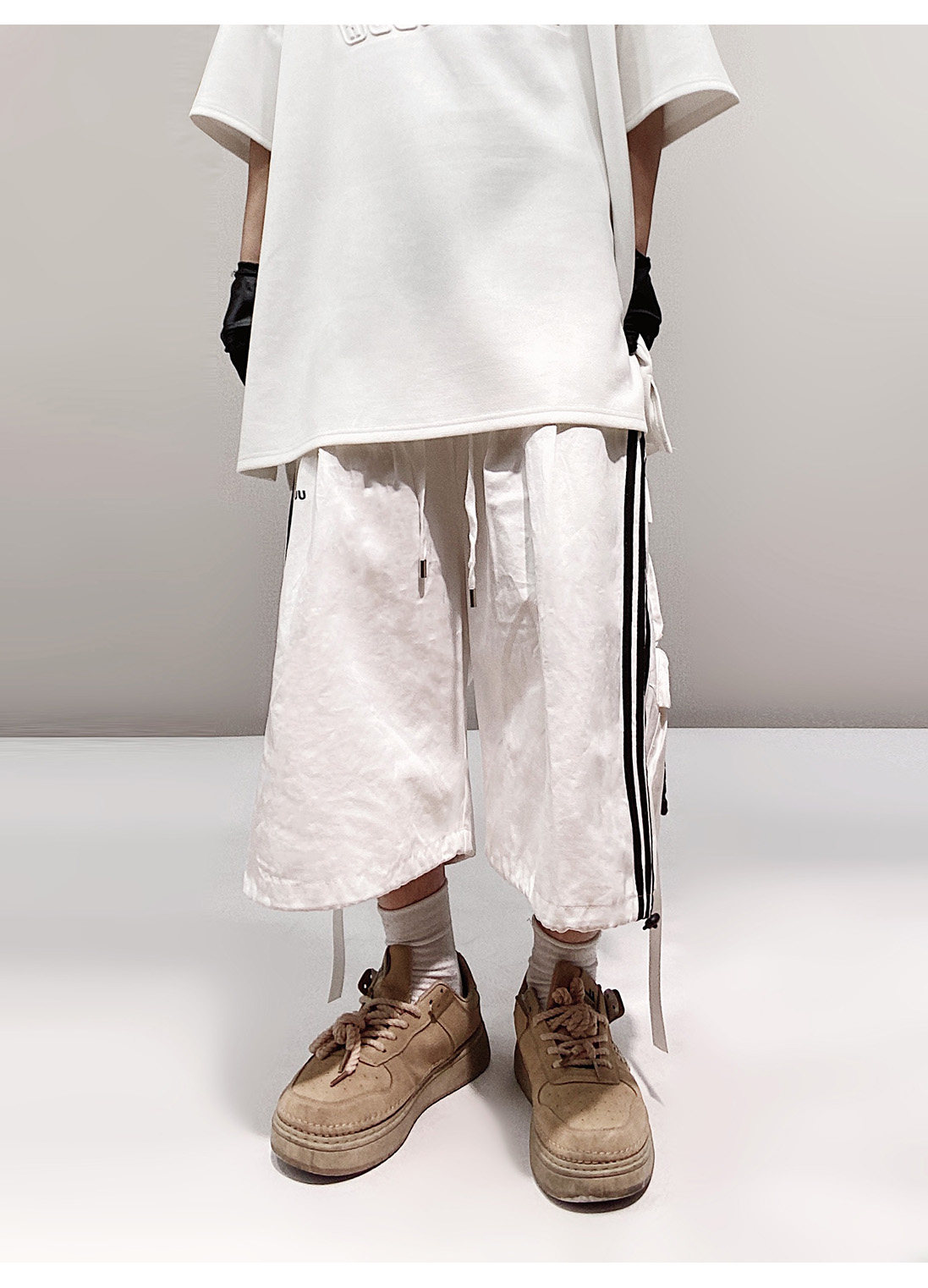 Pocket Design Wide-leg Cropped Cargo Pants WN23660-K