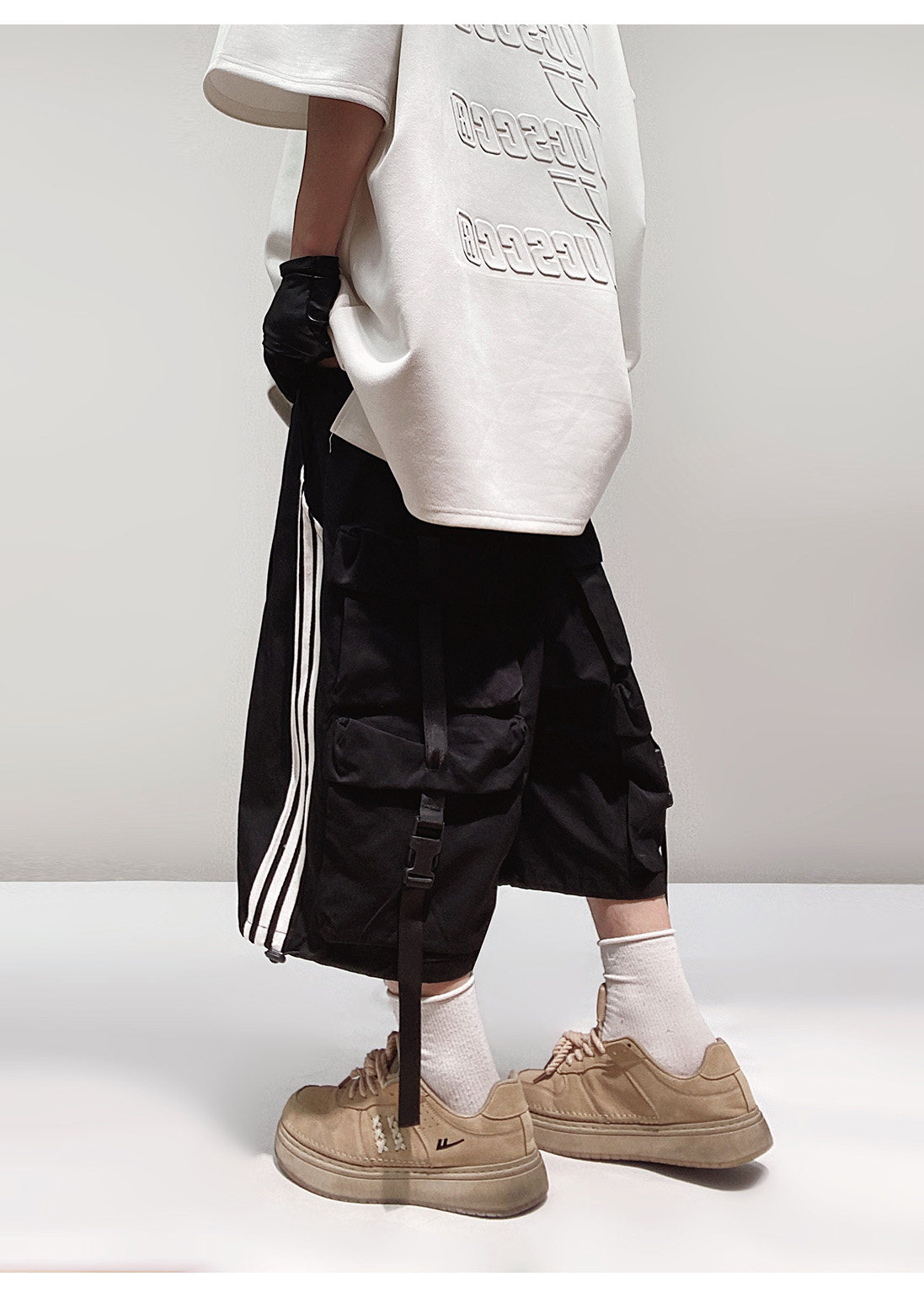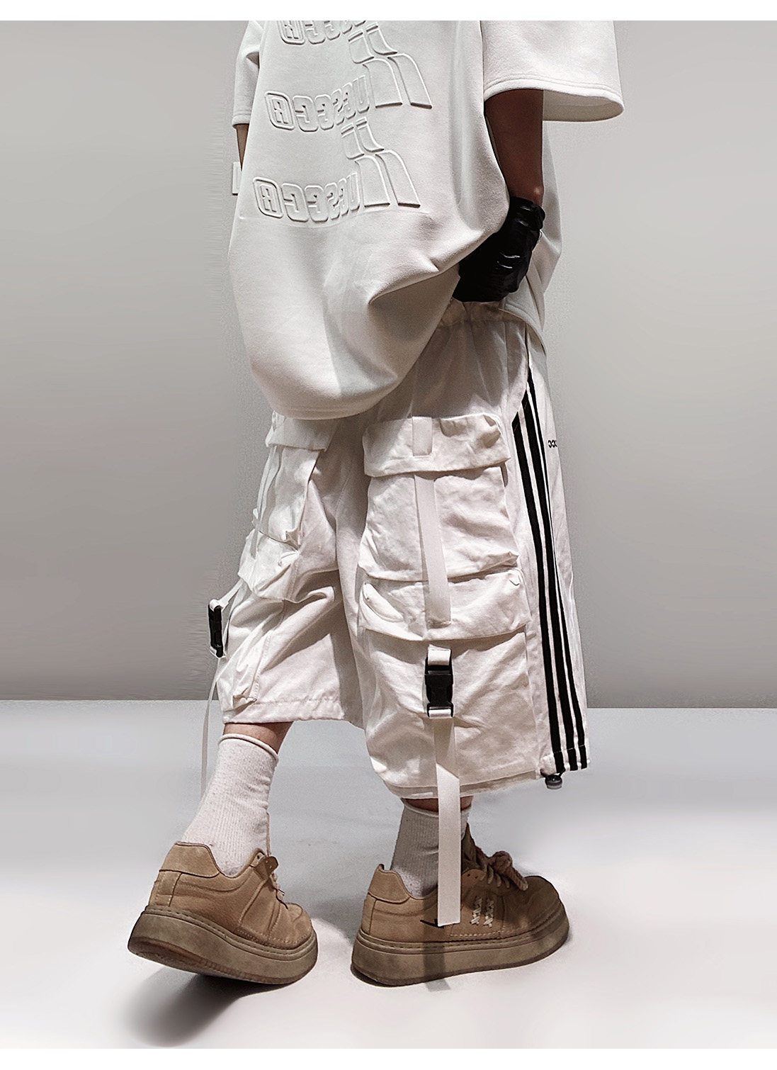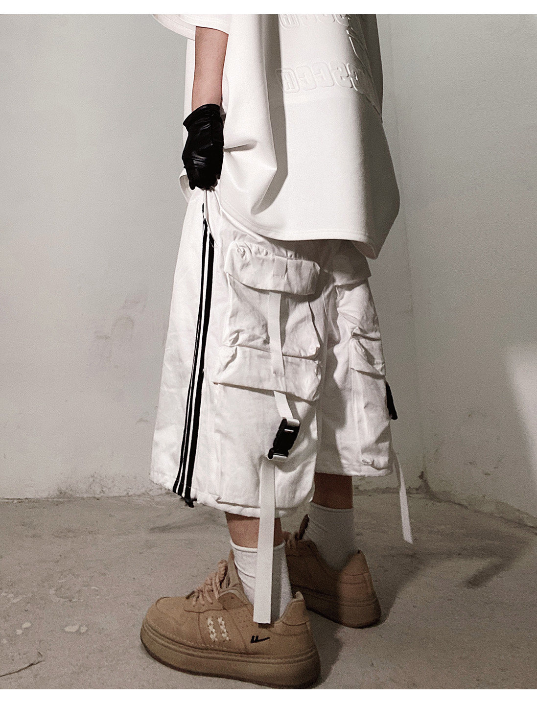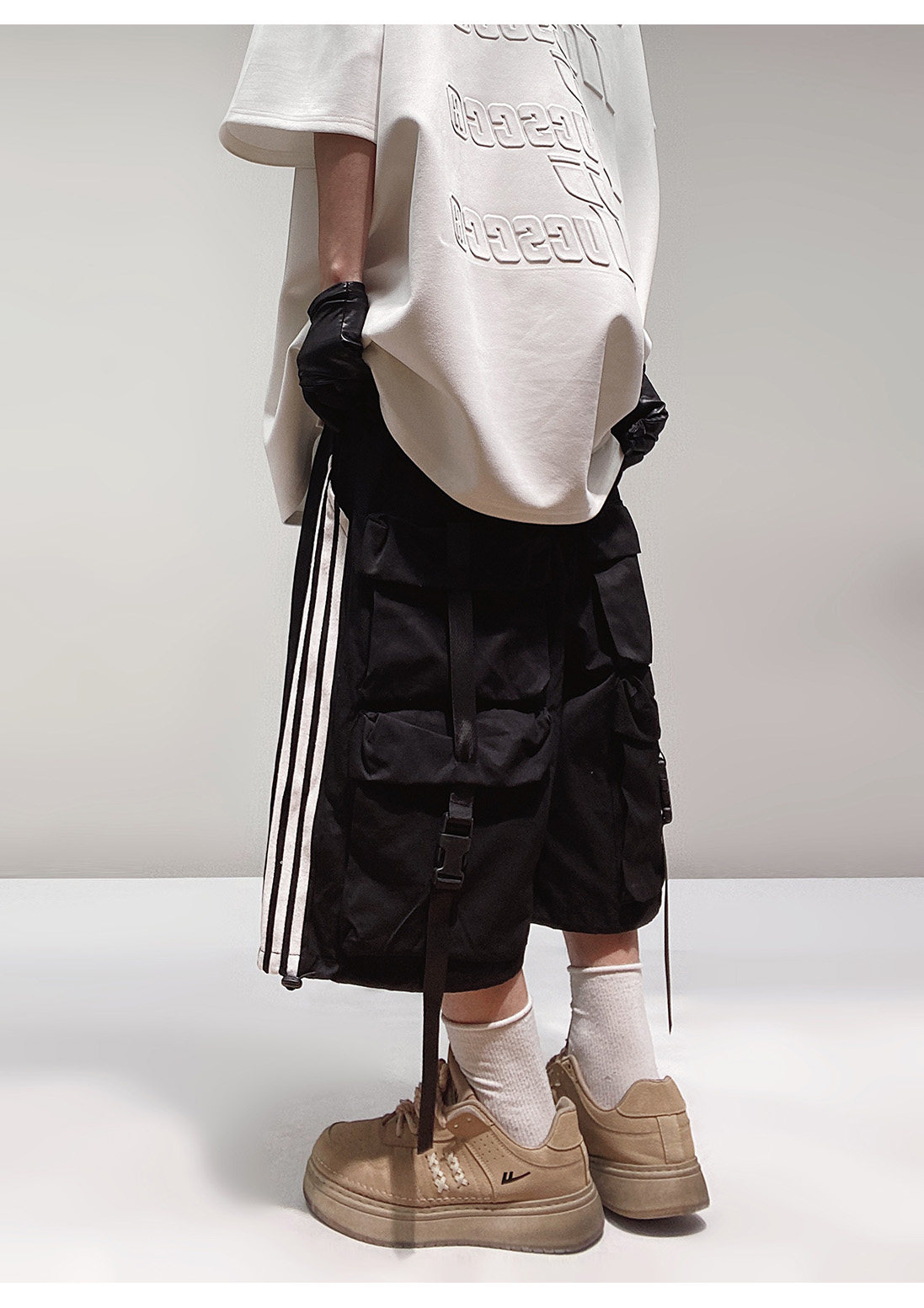 Pocket Design Wide-leg Cropped Cargo Pants WN23660-K