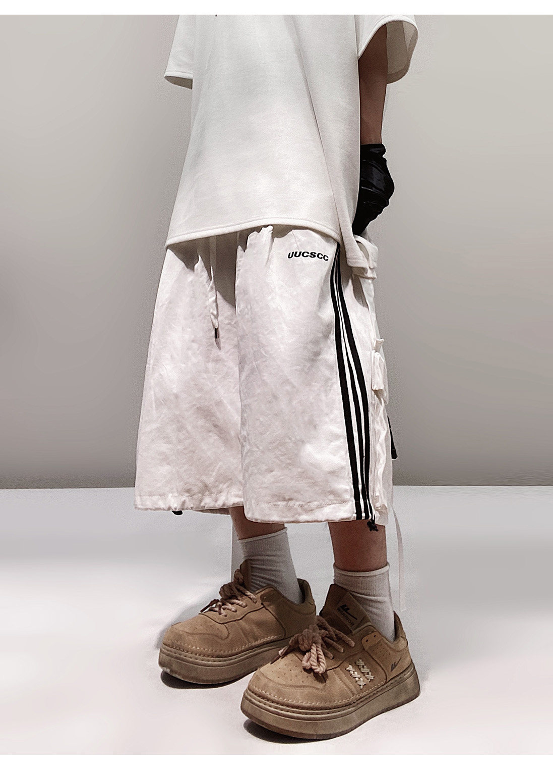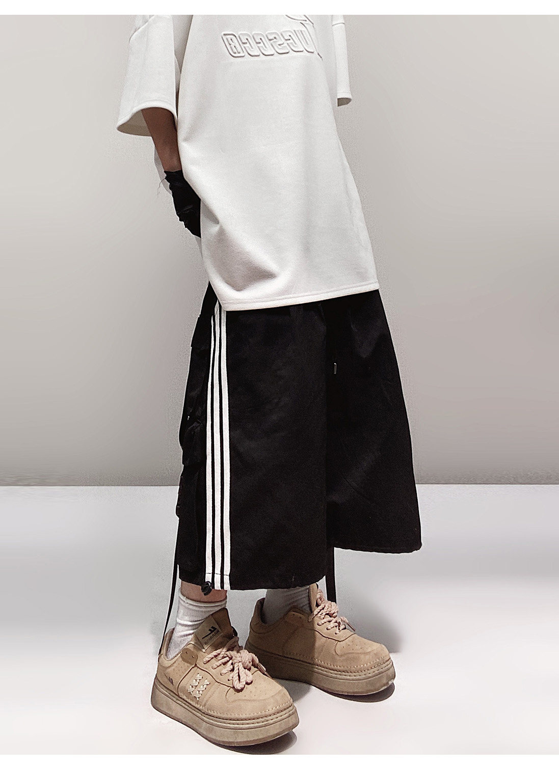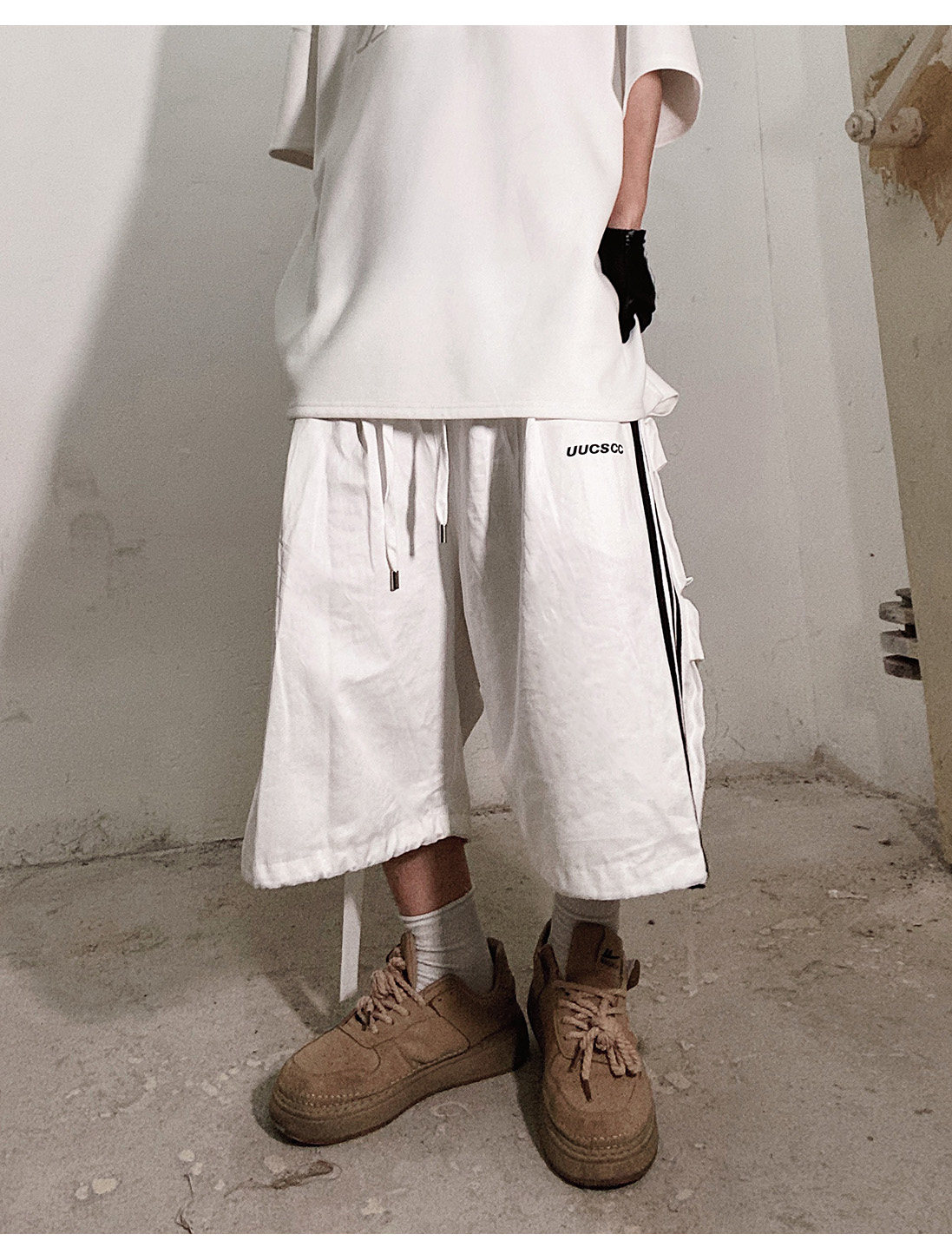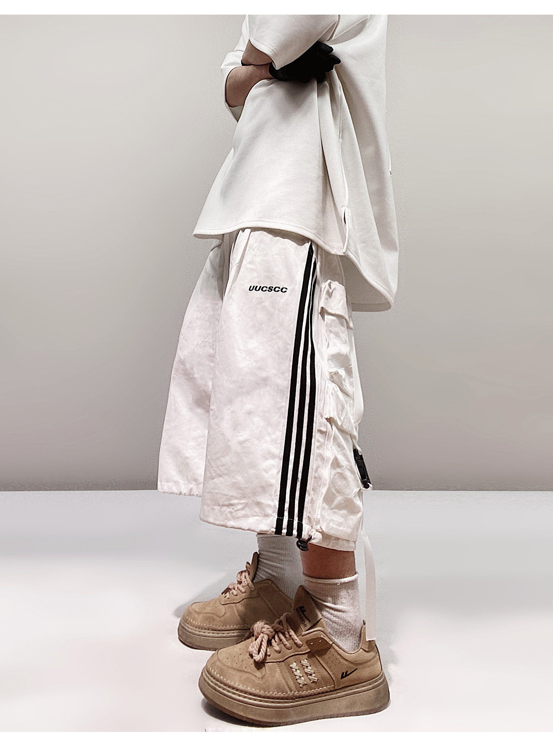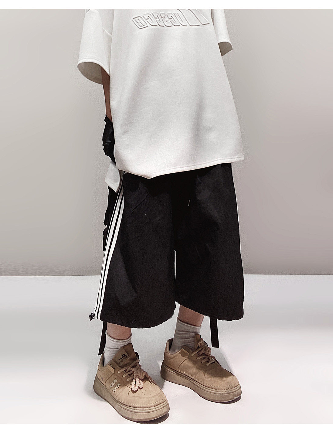 Pocket Design Wide-leg Cropped Cargo Pants WN23660-K