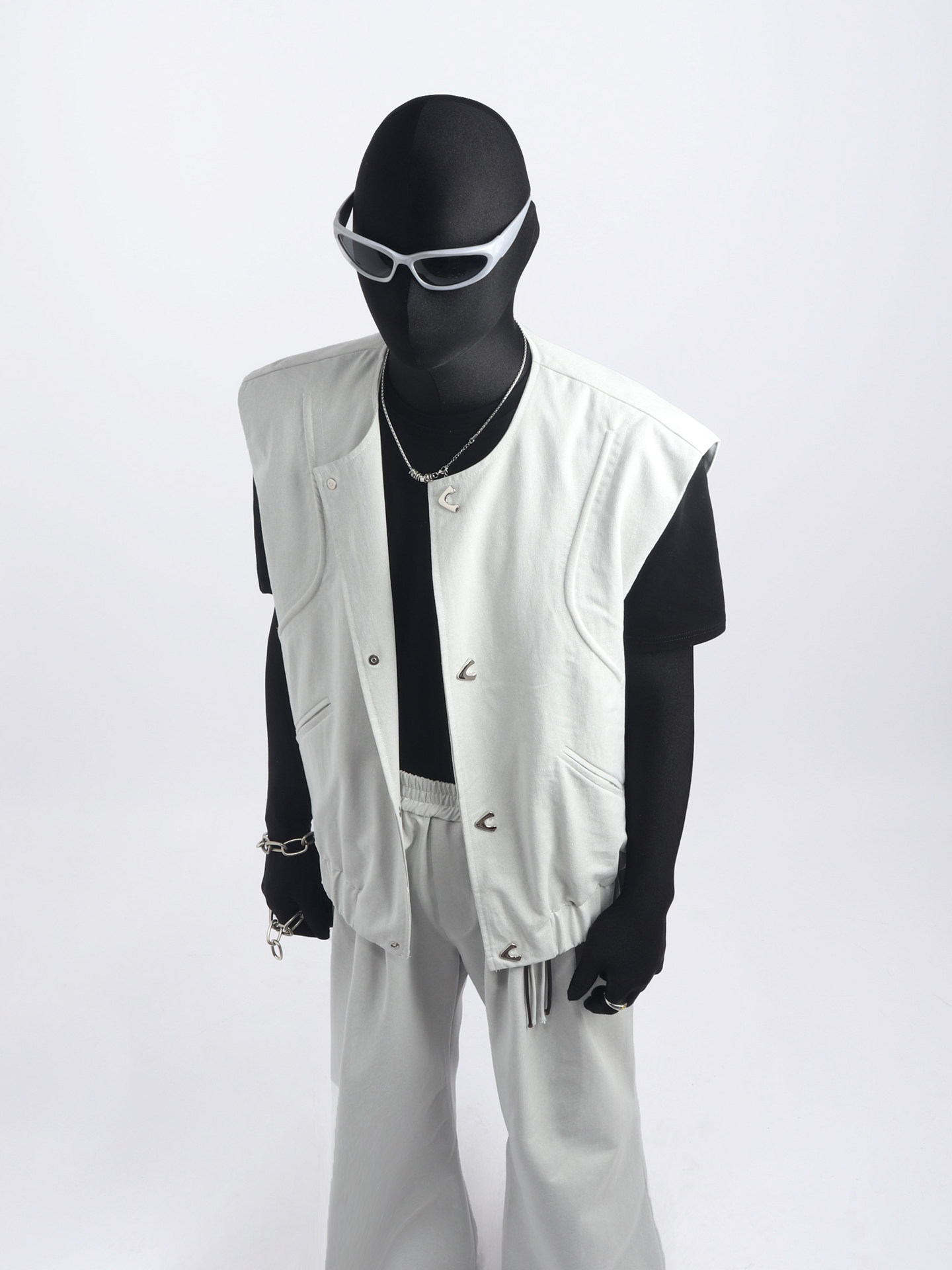 Sleeveless Short Jacket & Wide Leg Pants Setup WN23773