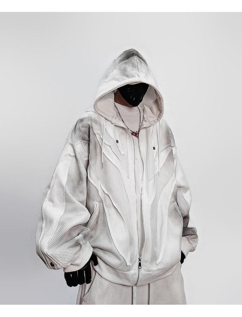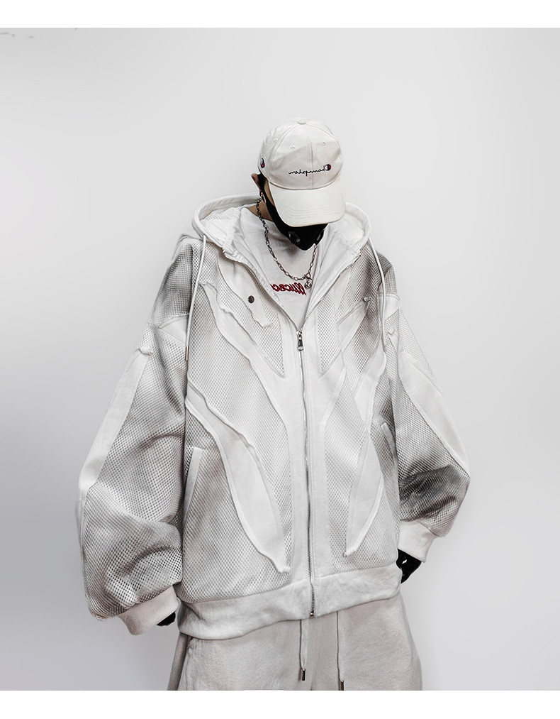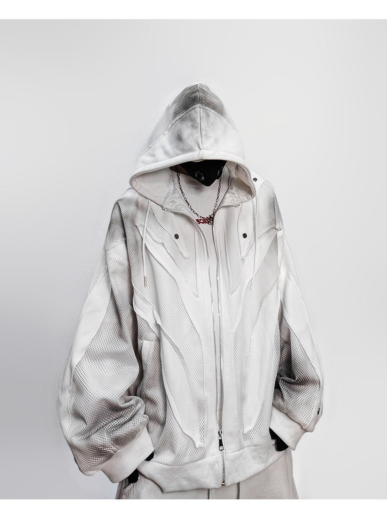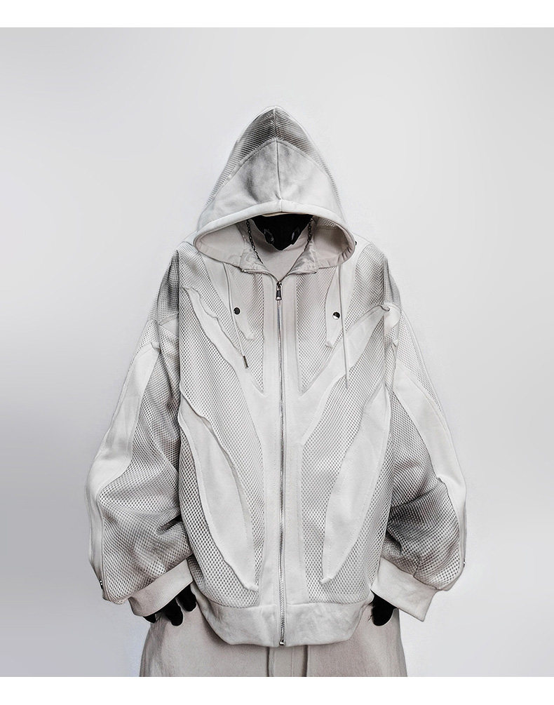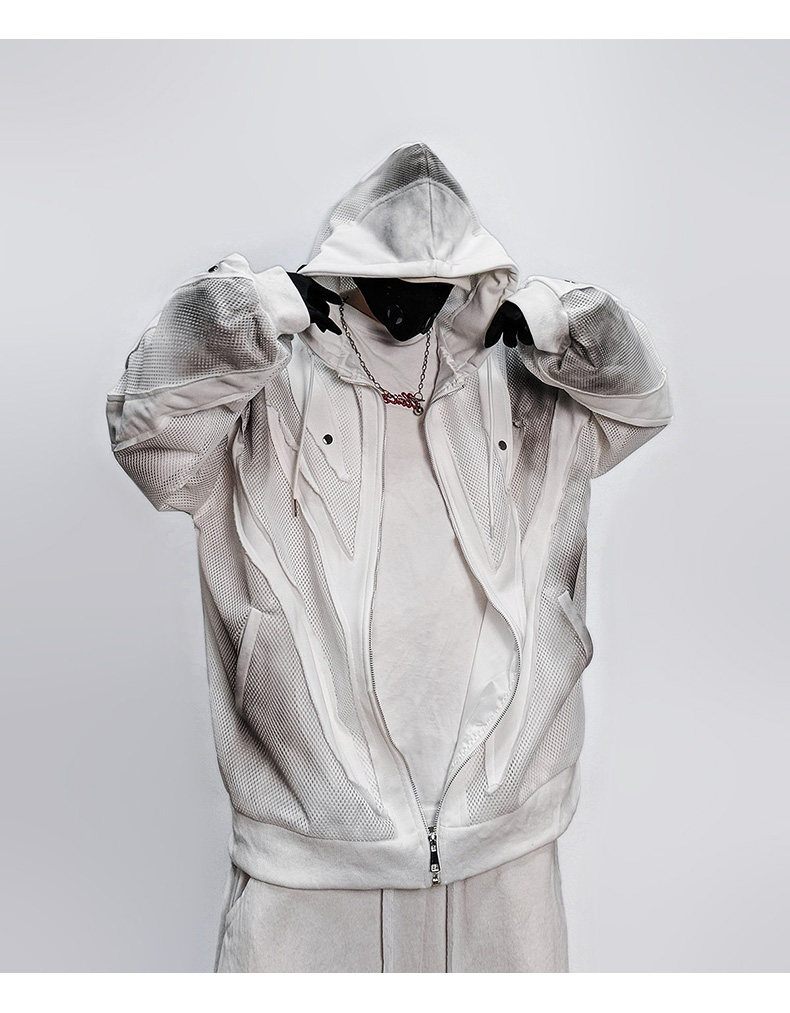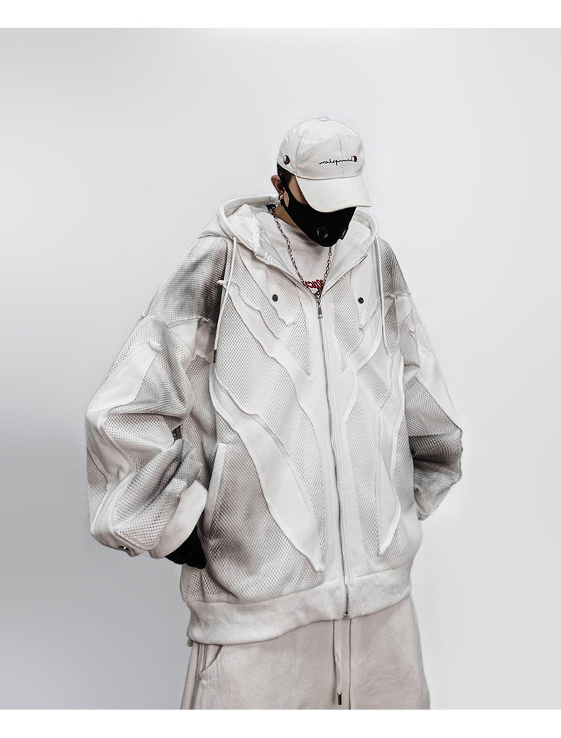 Mesh Panel Gradient Zipper Hoodie WN24011
