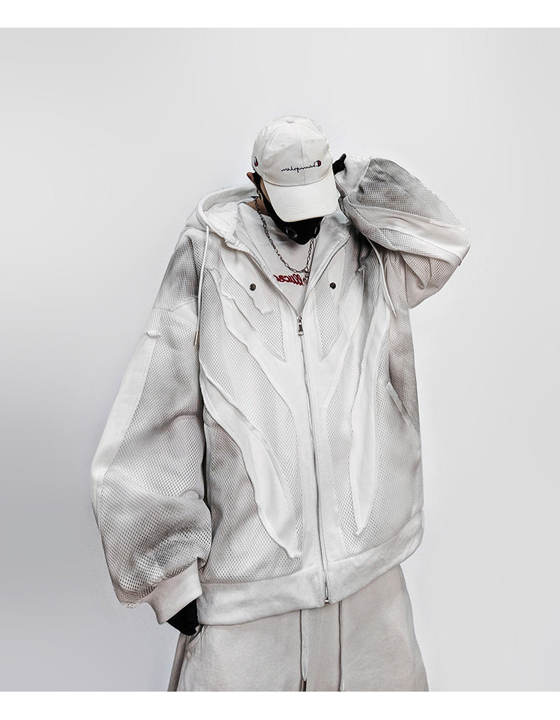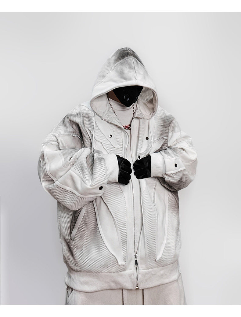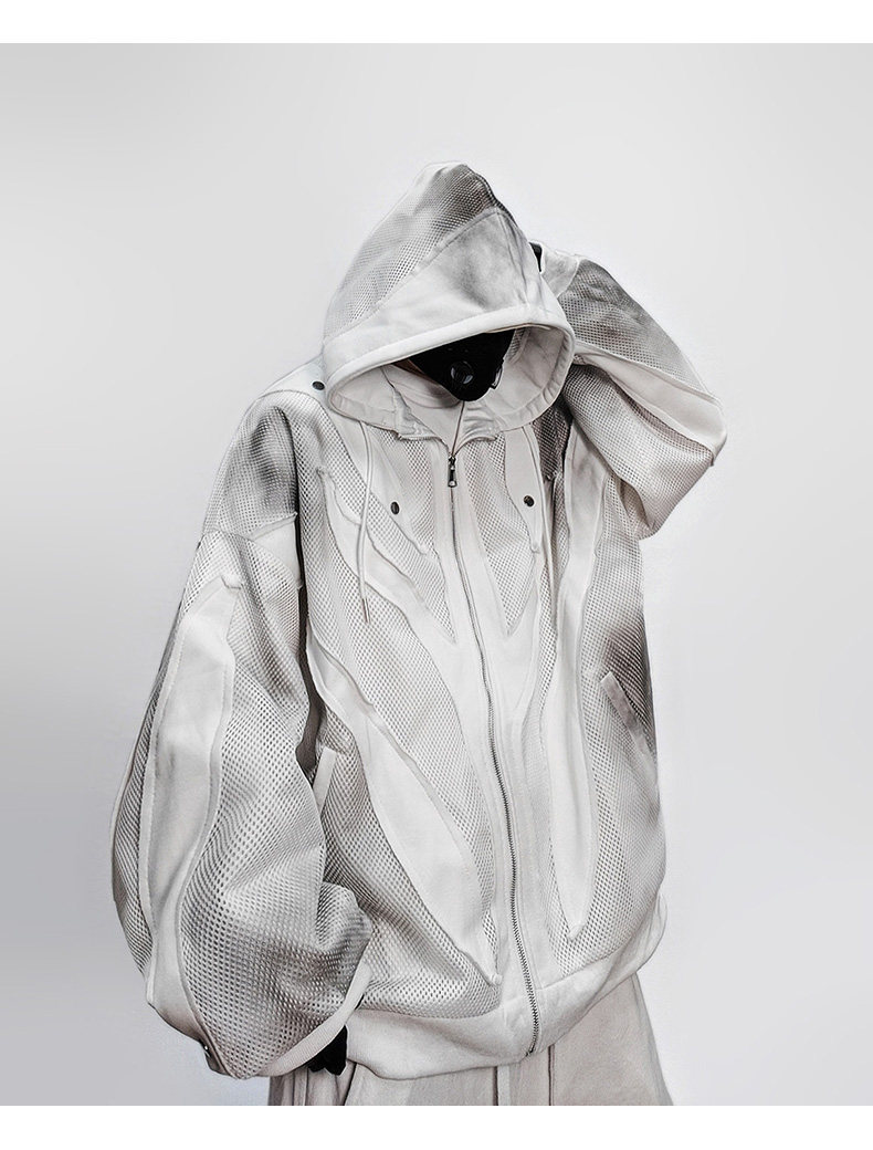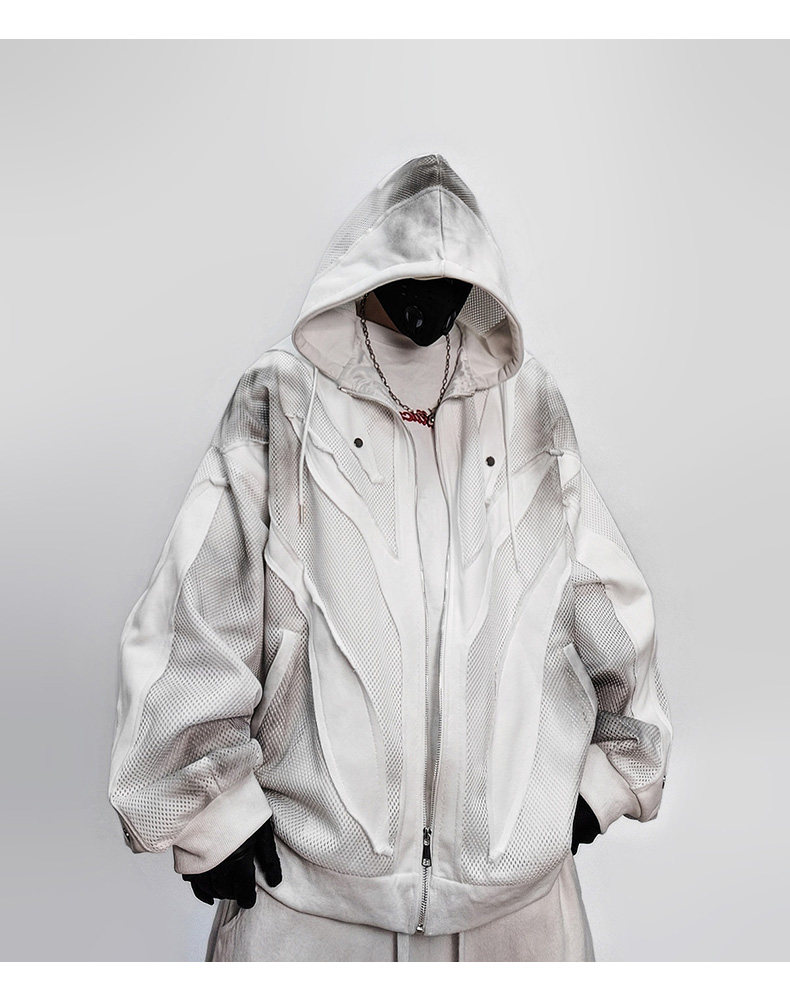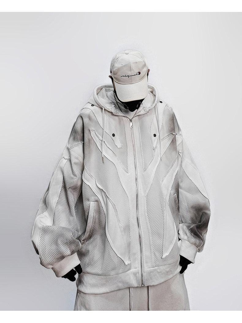 Mesh Panel Gradient Zipper Hoodie WN24011