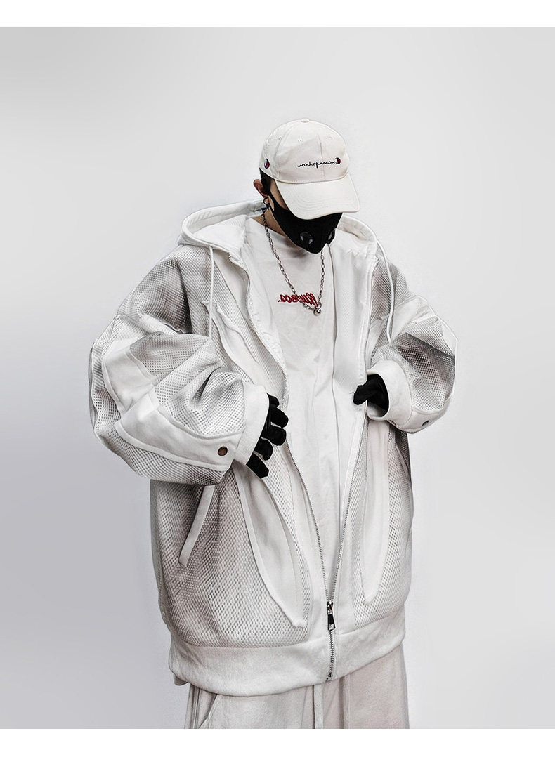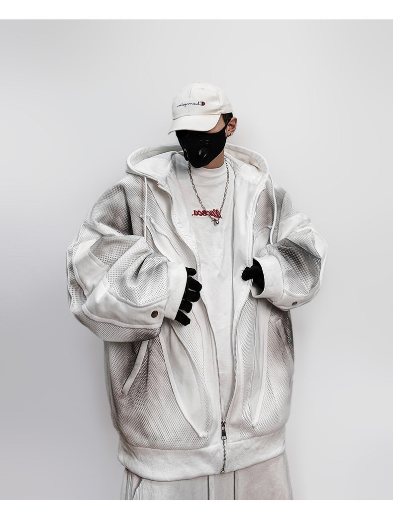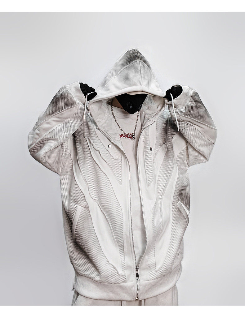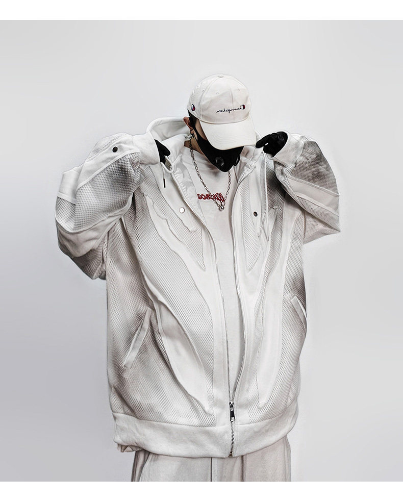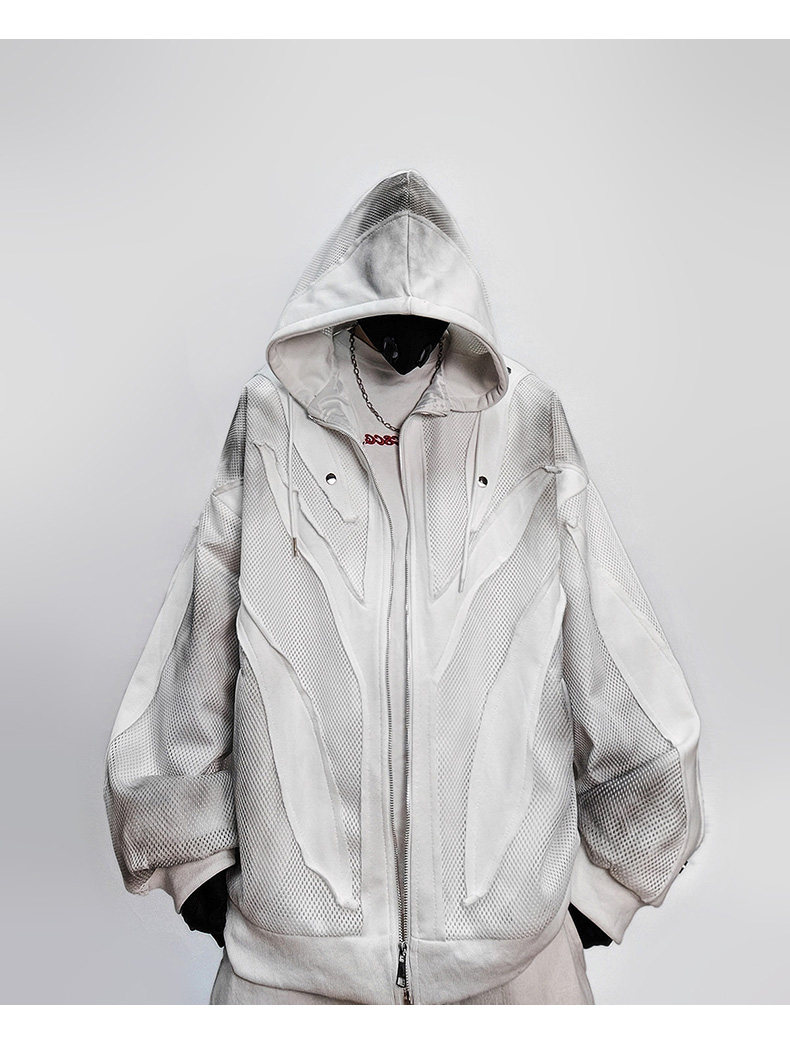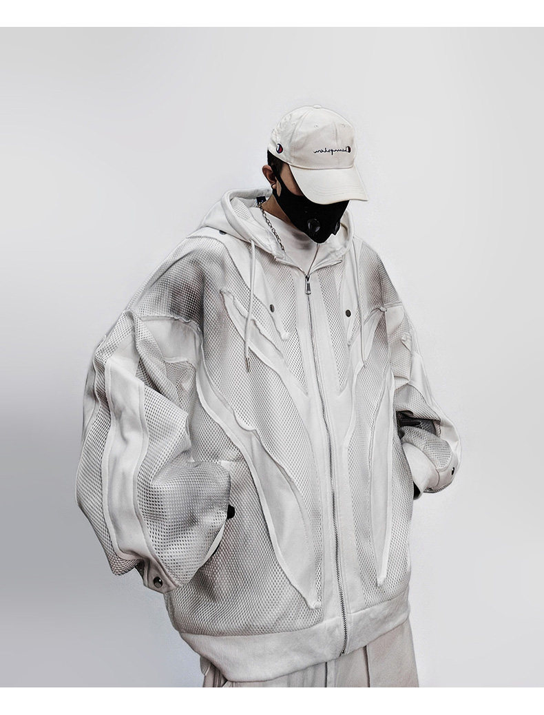 Mesh Panel Gradient Zipper Hoodie WN24011