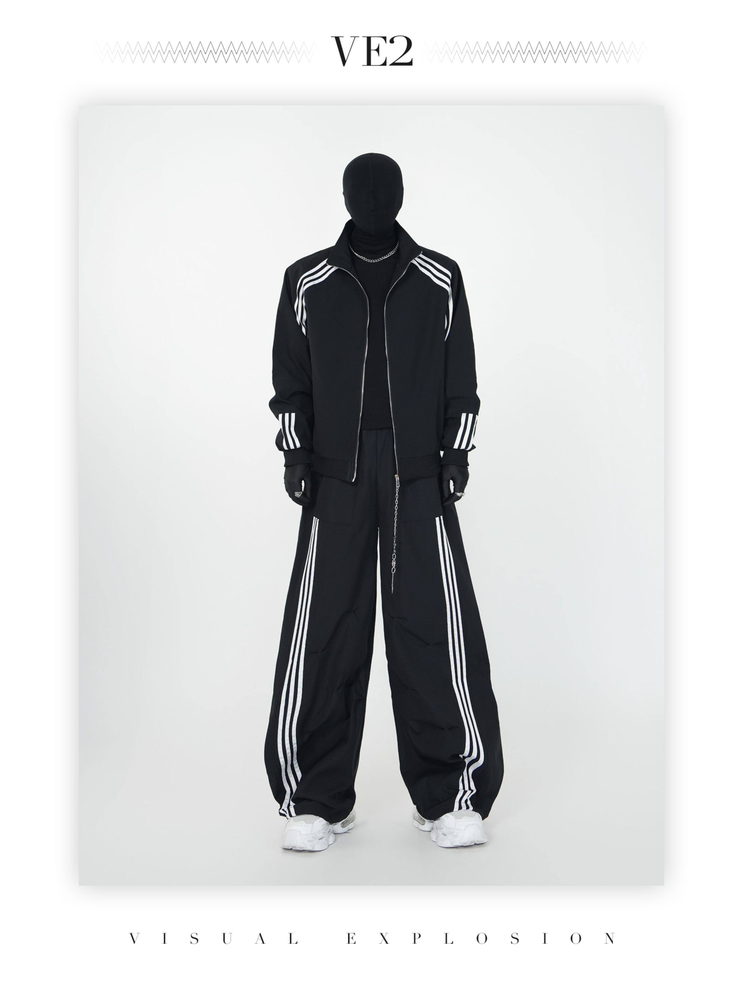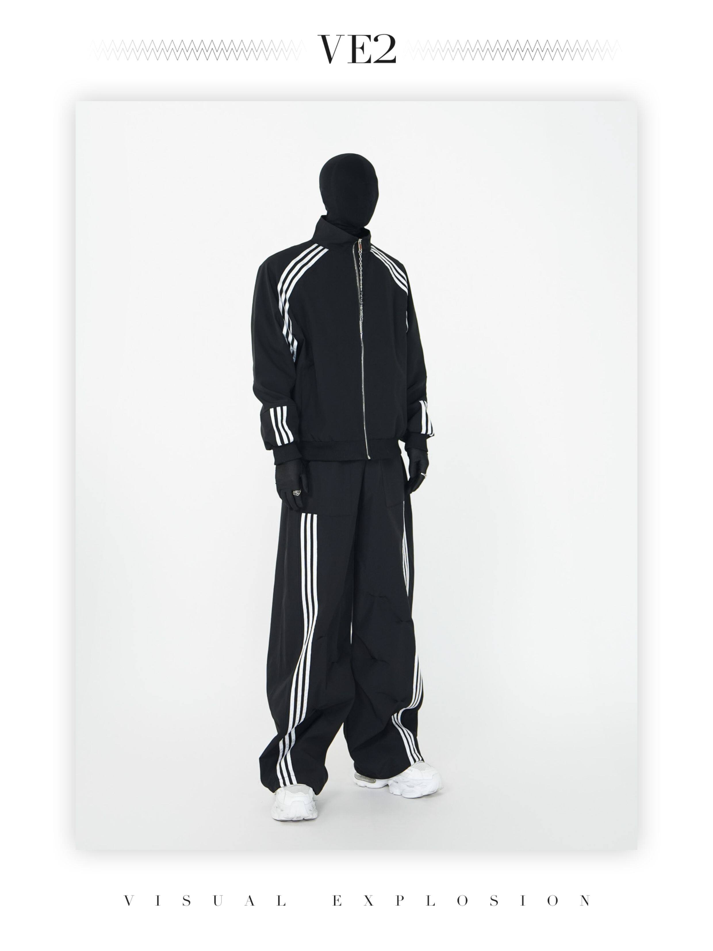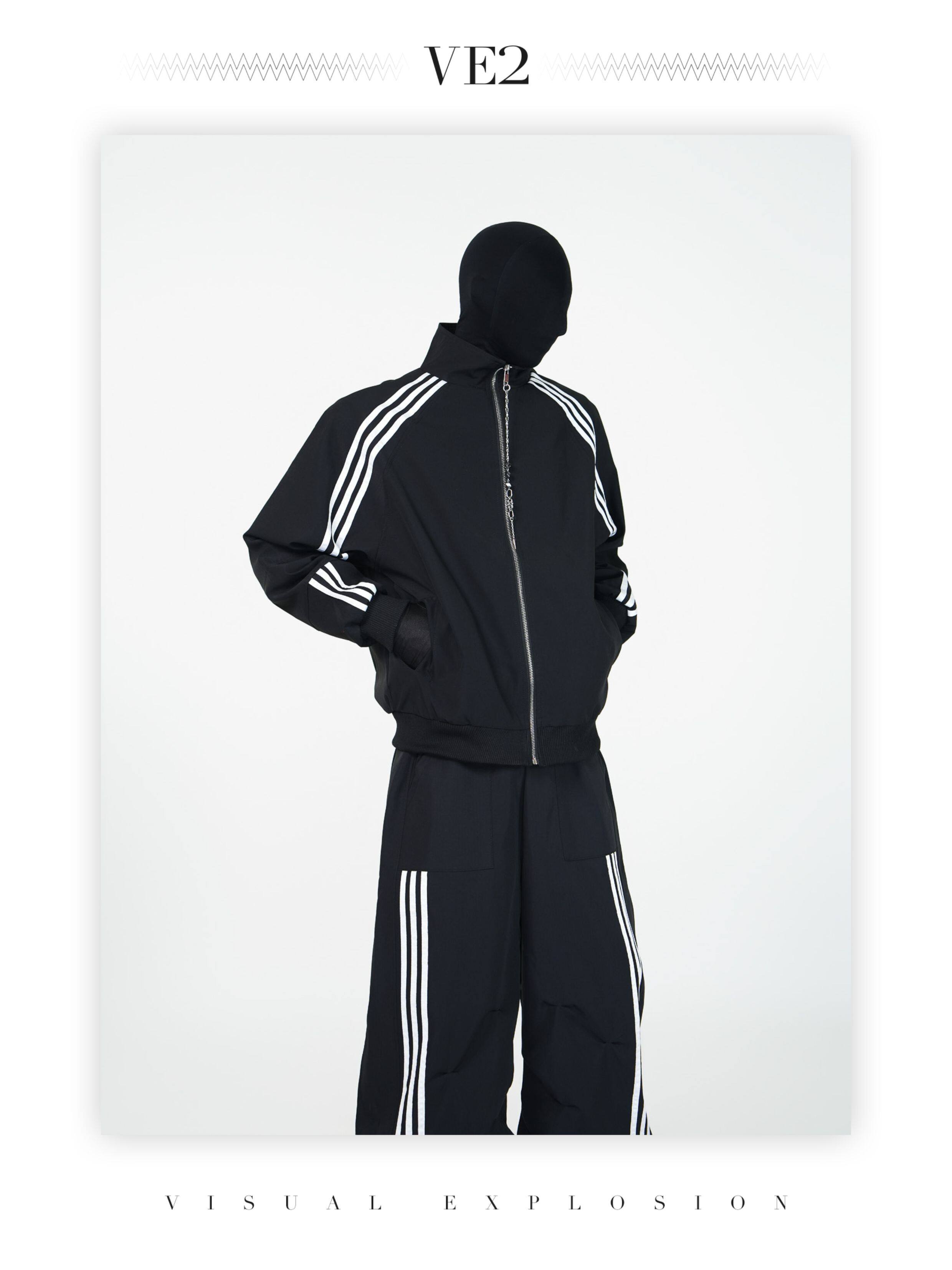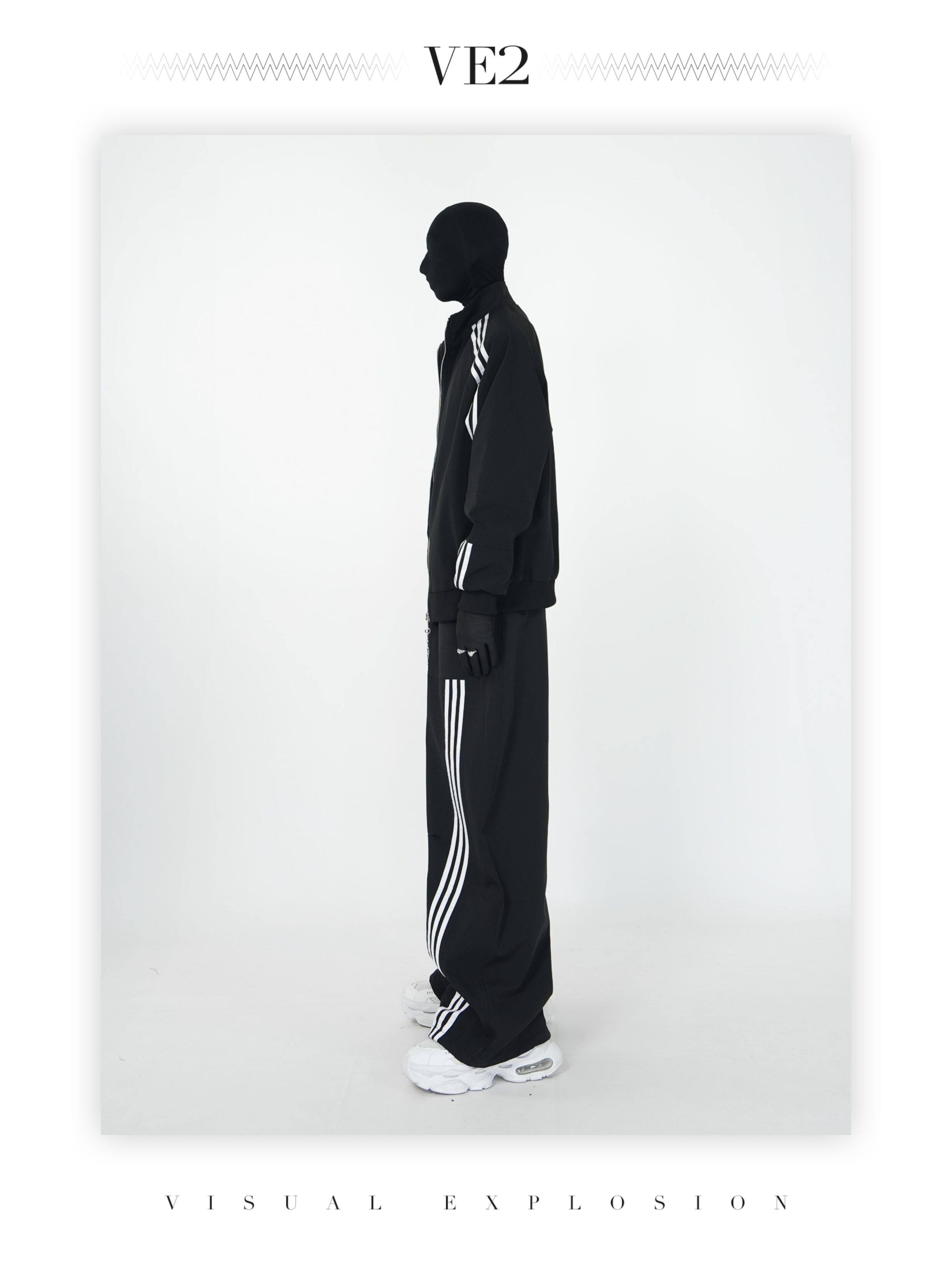 Stripe Line Zipper Jacket & Stripe Line Wide Leg Pants Setup WN24139