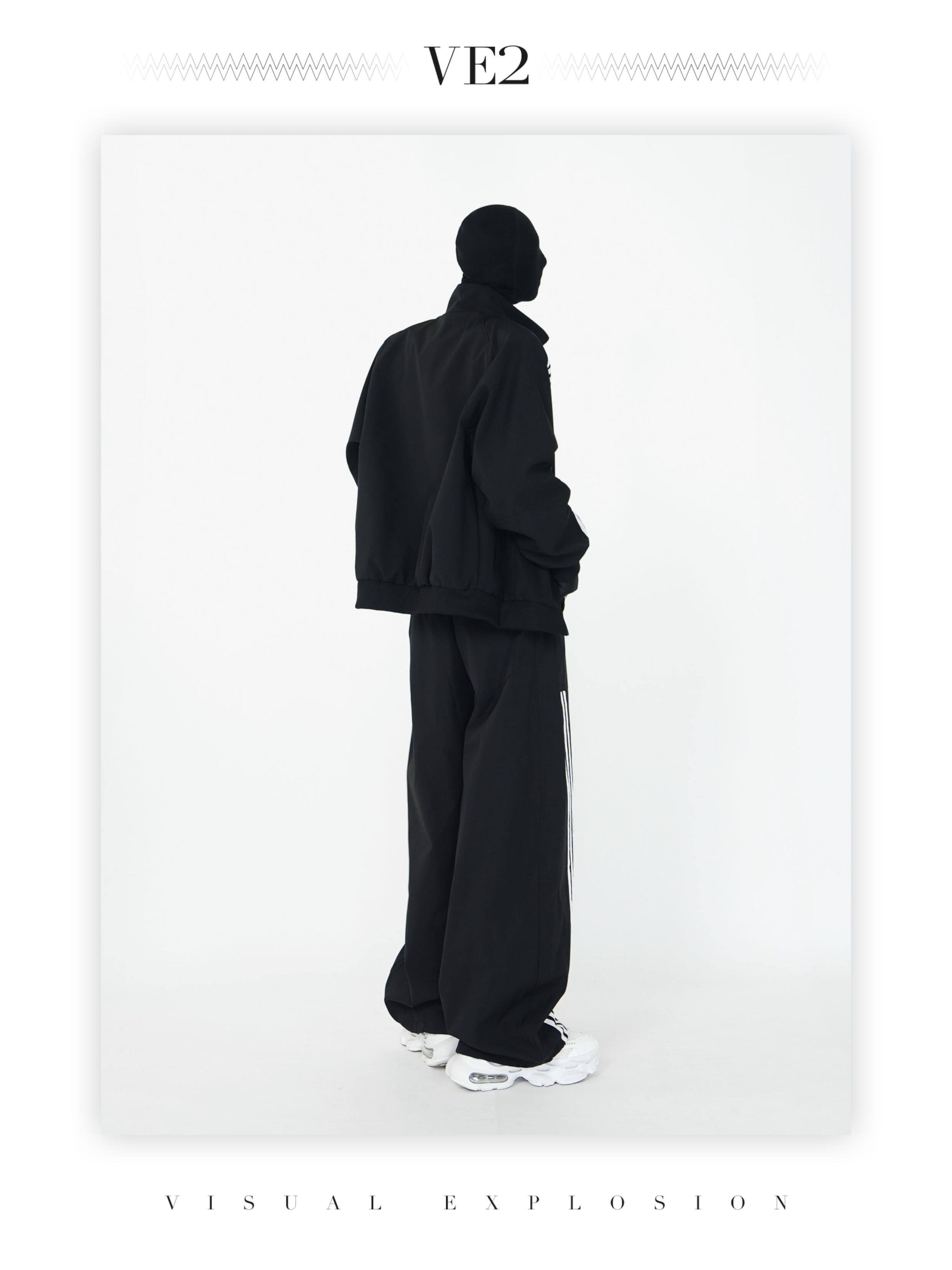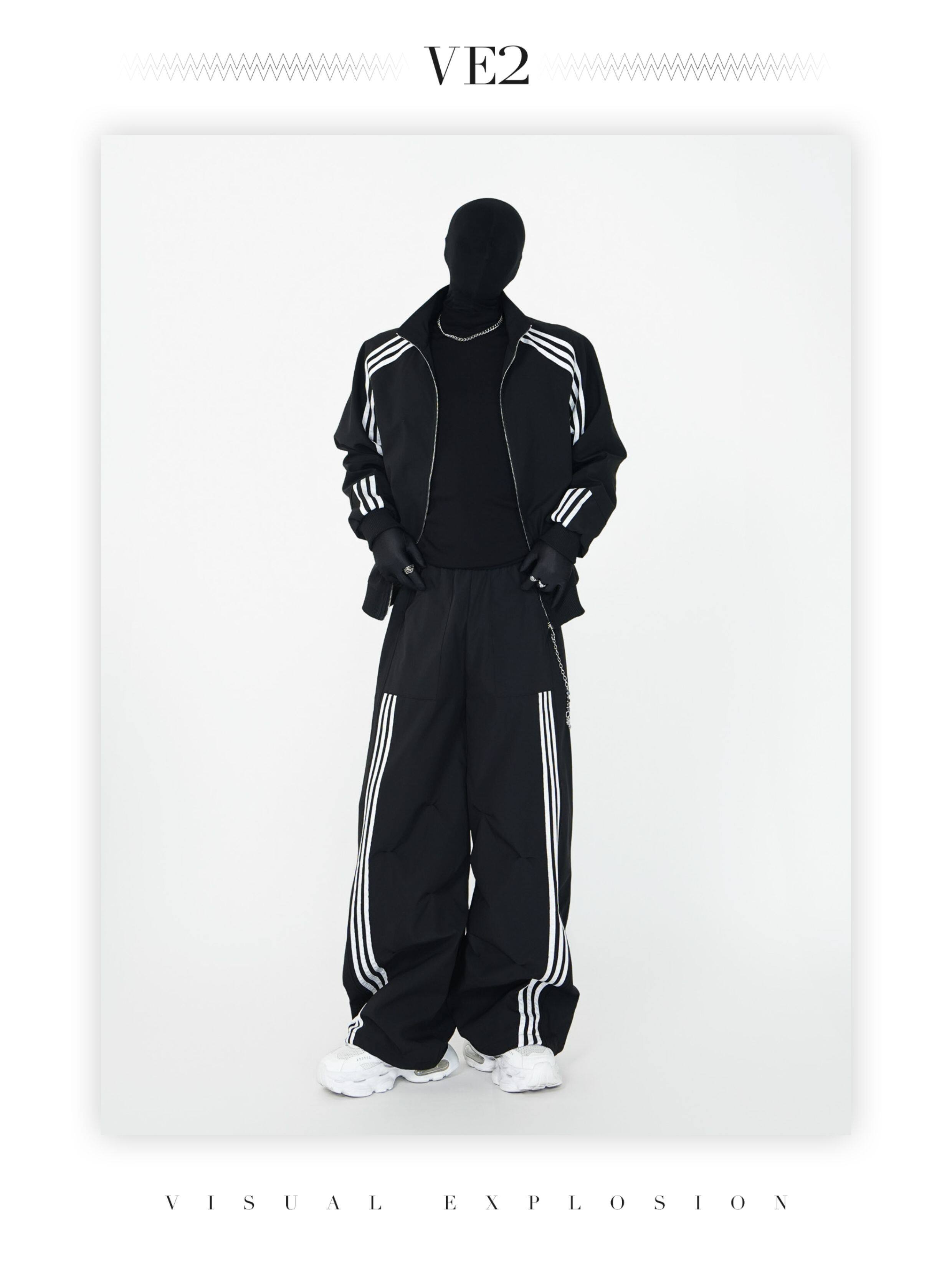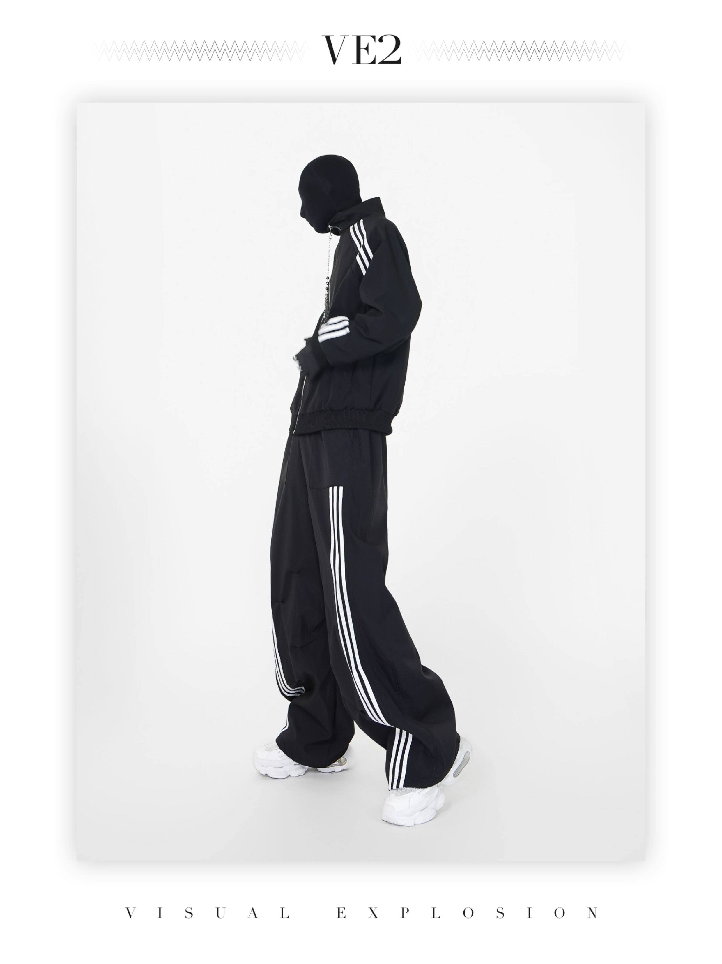 Stripe Line Zipper Jacket & Stripe Line Wide Leg Pants Setup WN24139