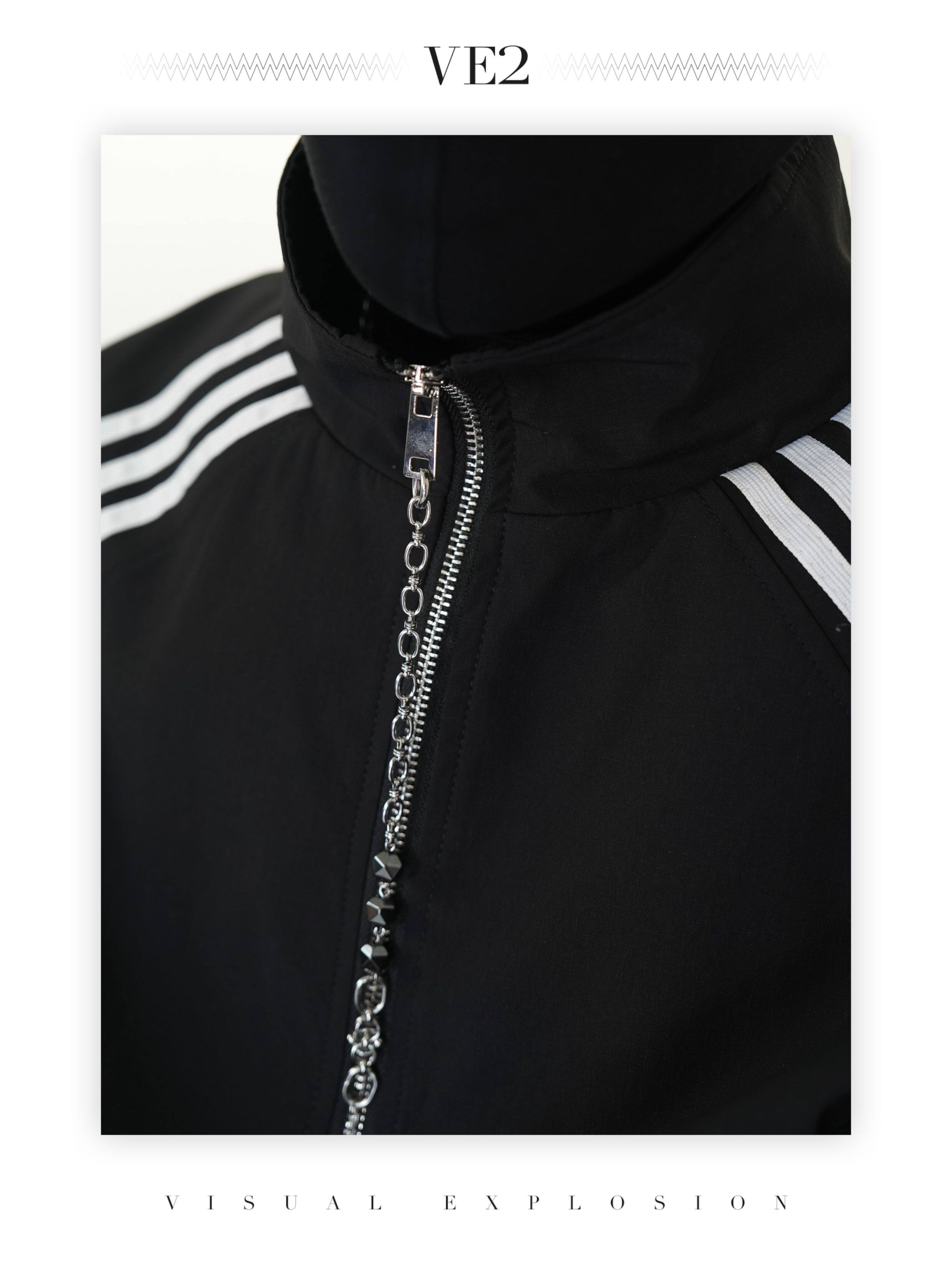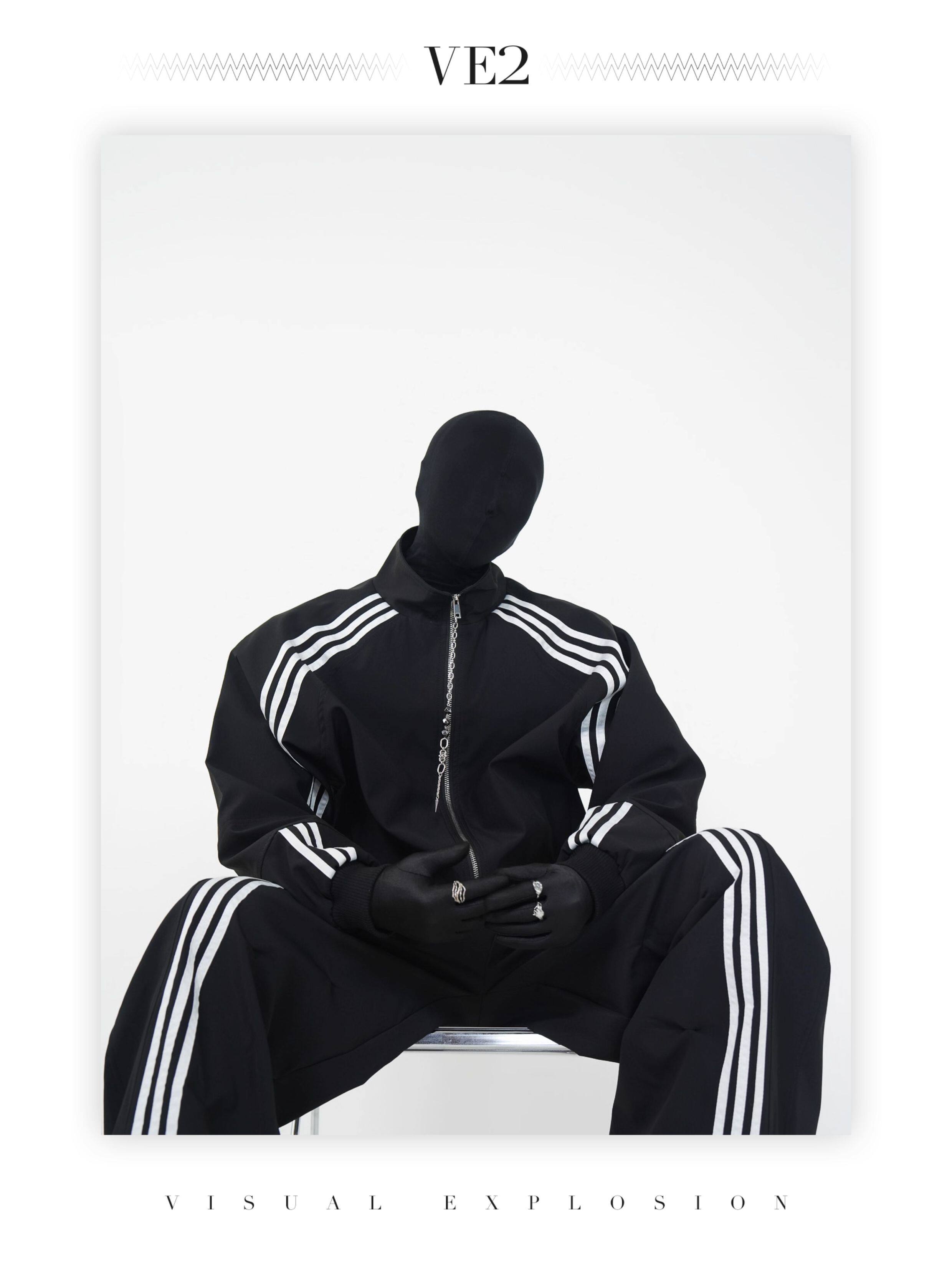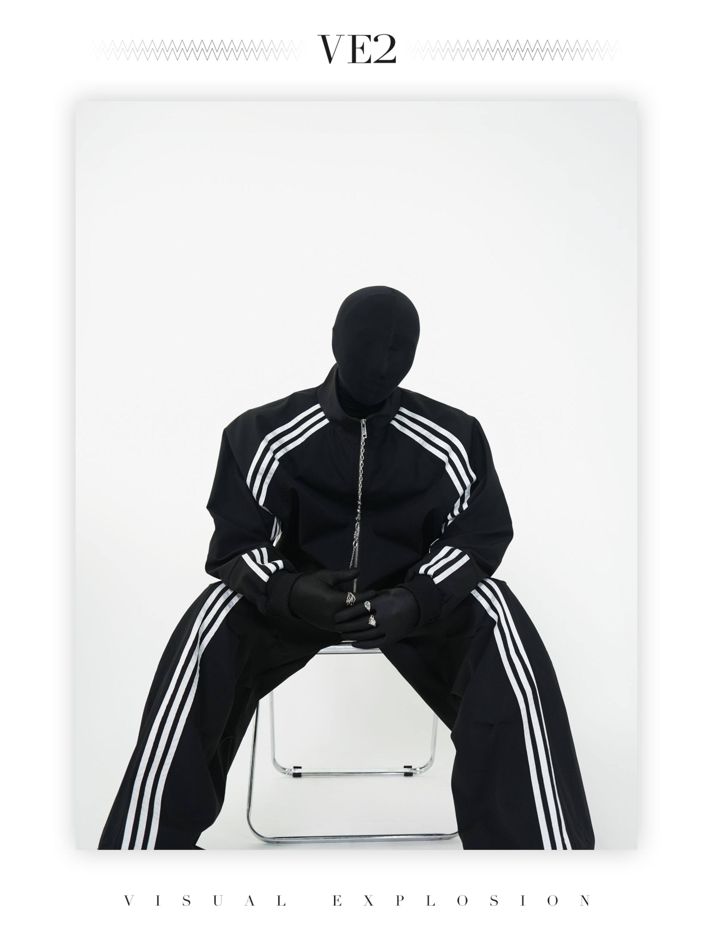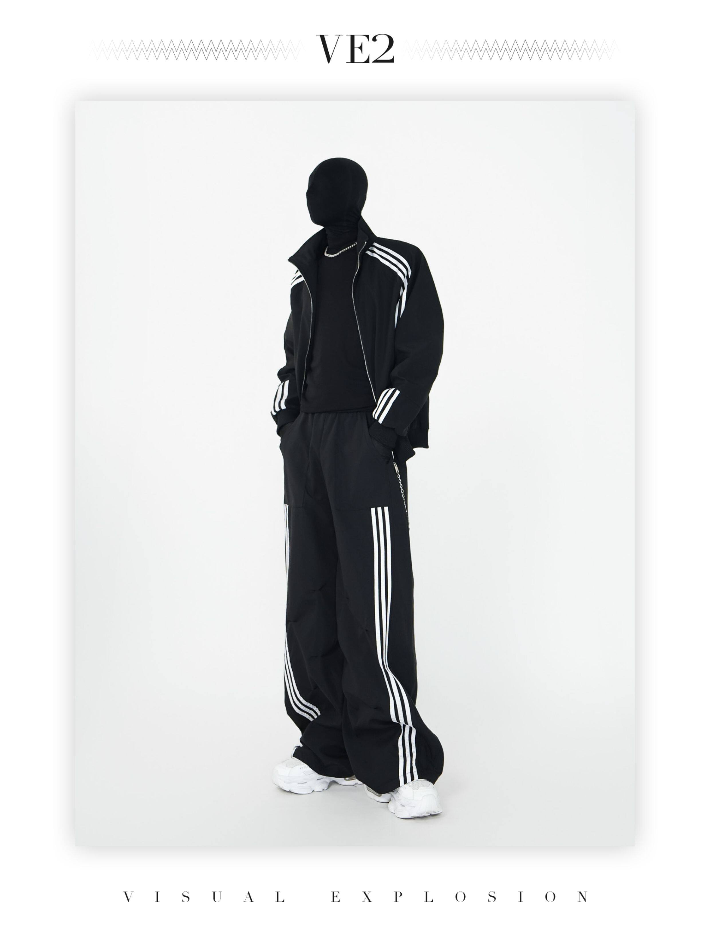 Stripe Line Zipper Jacket & Stripe Line Wide Leg Pants Setup WN24139