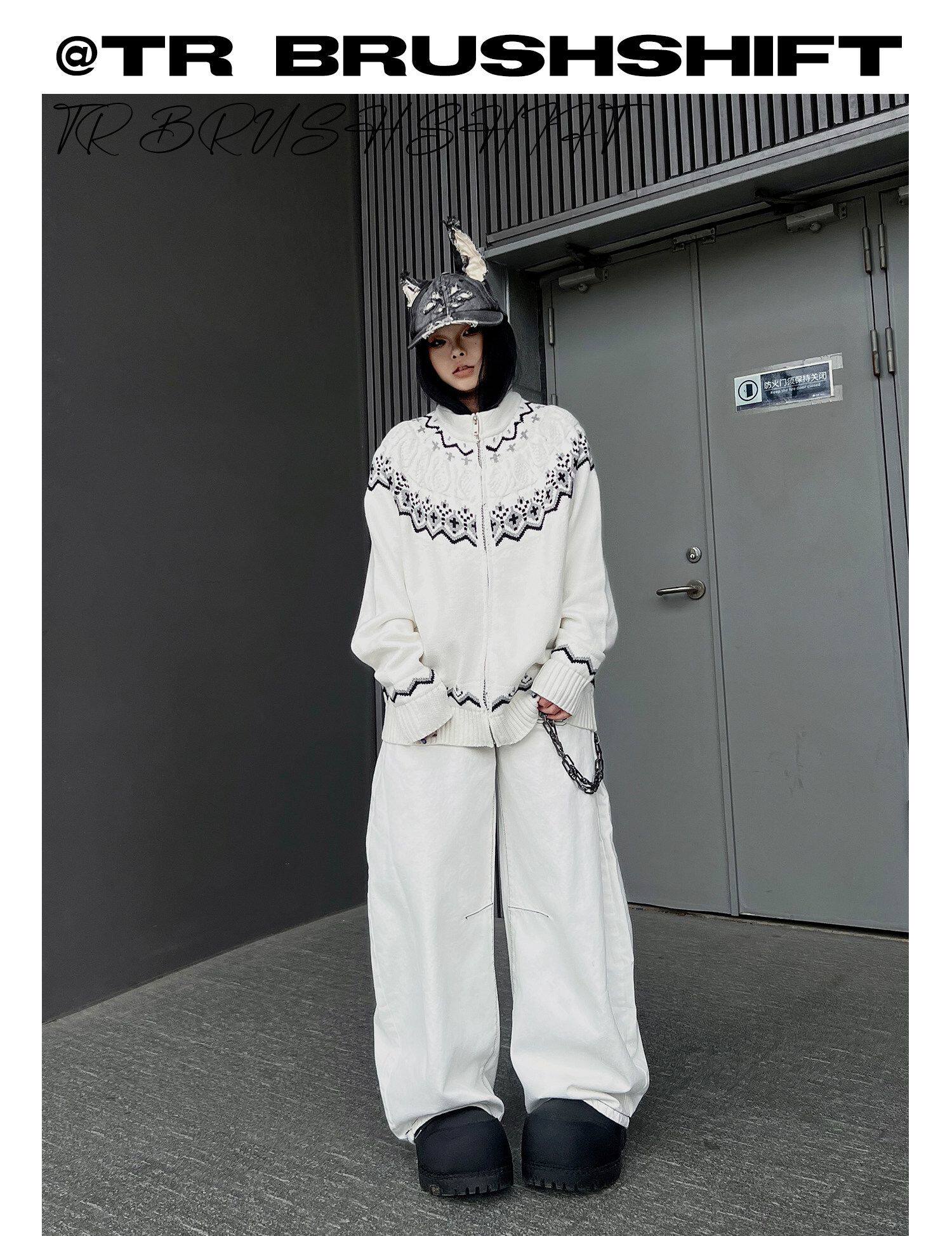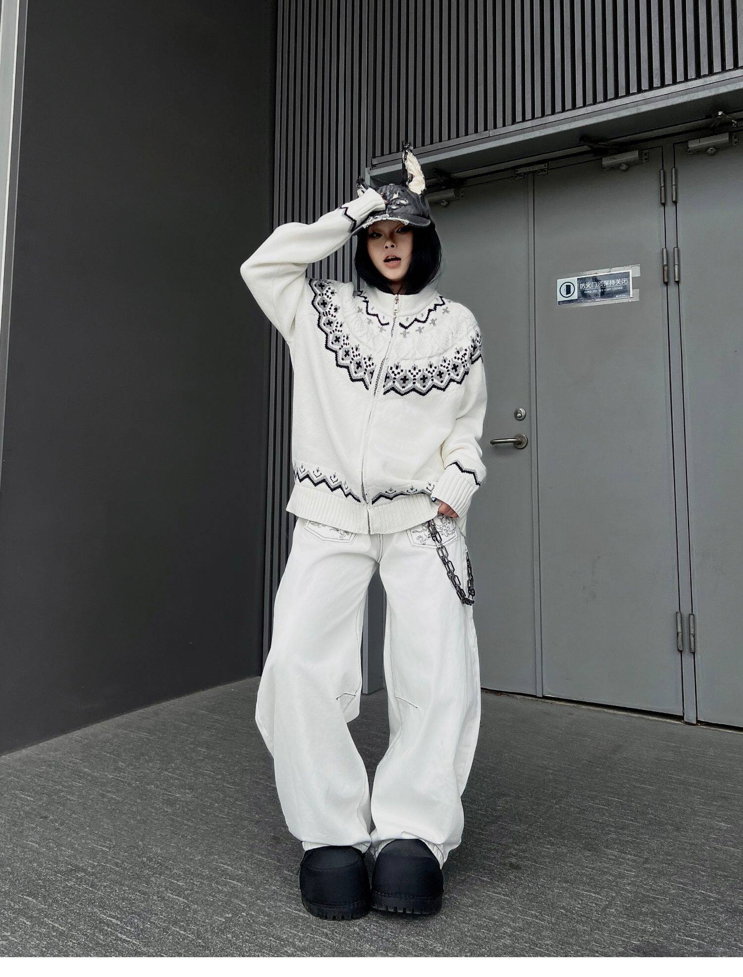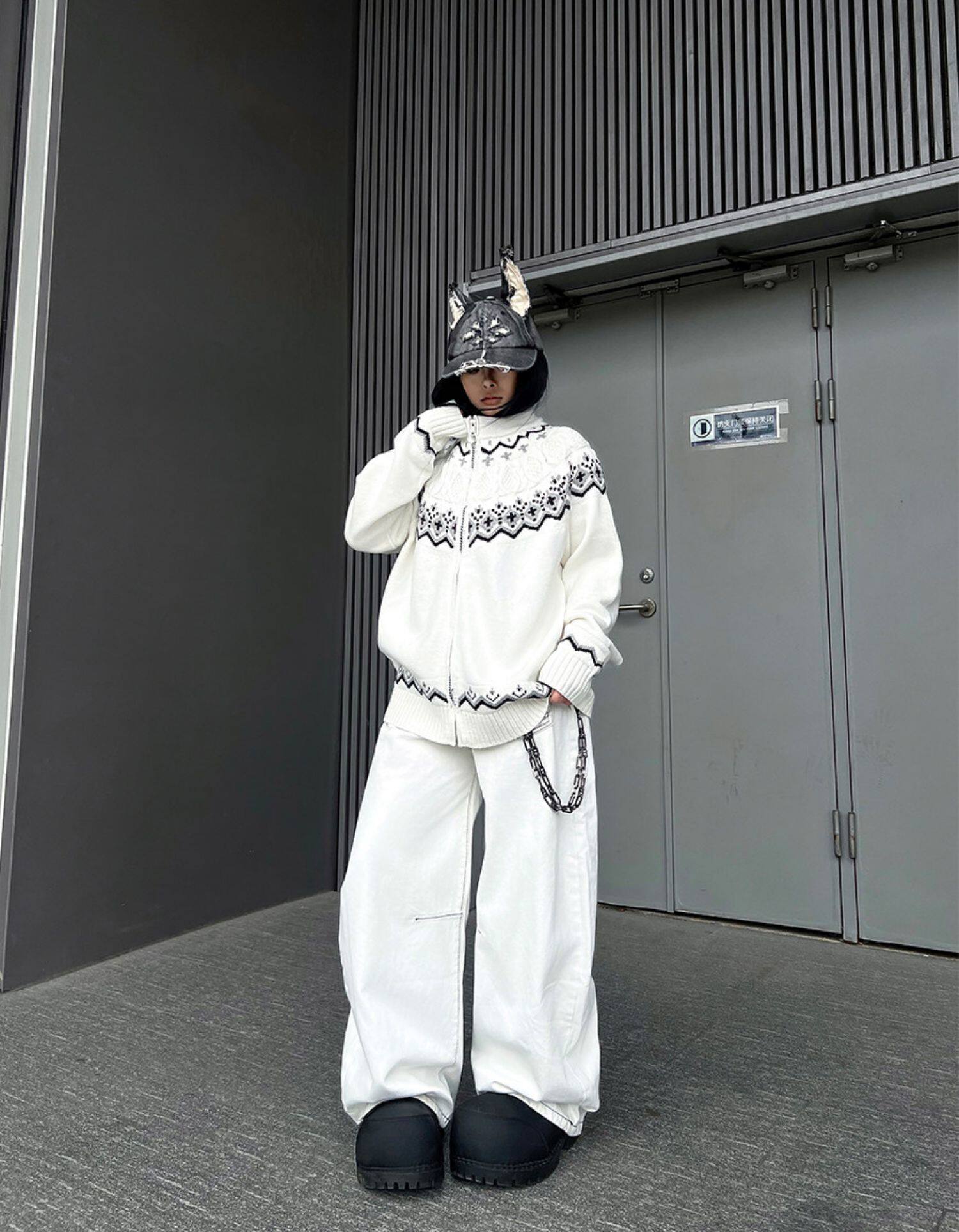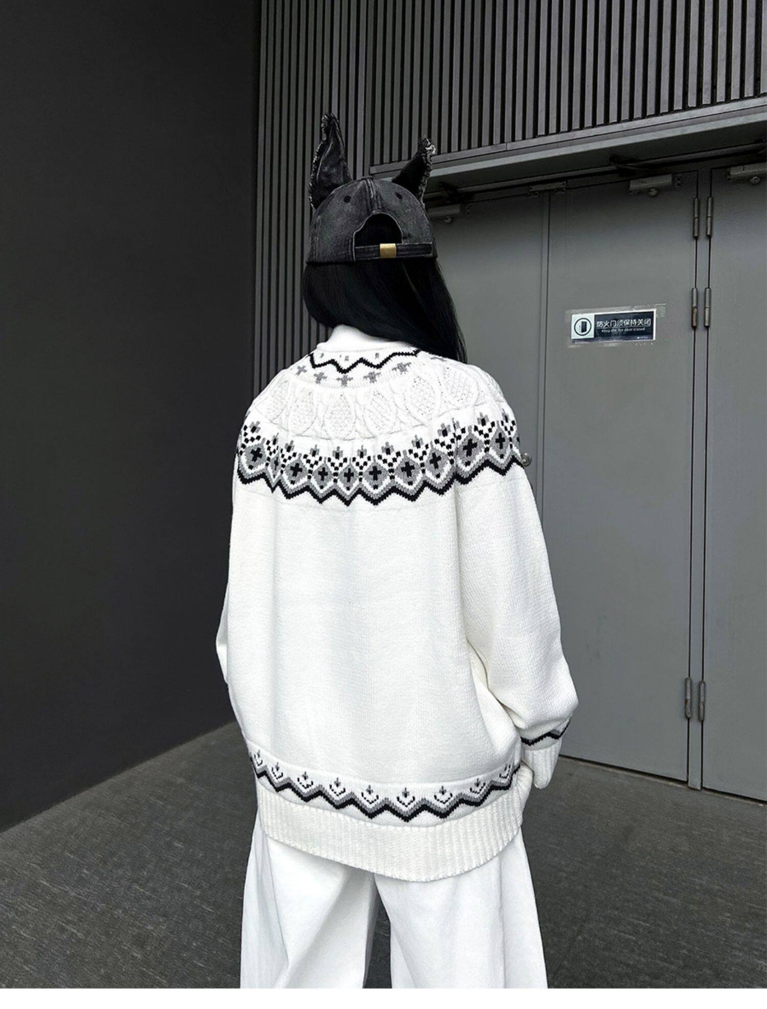 Nordic Pattern Zipper Knit Cardigan WN24151