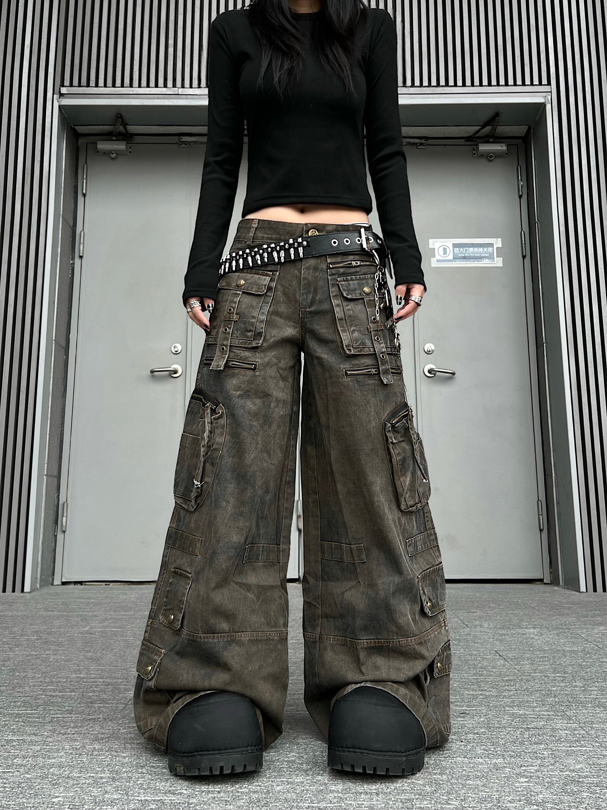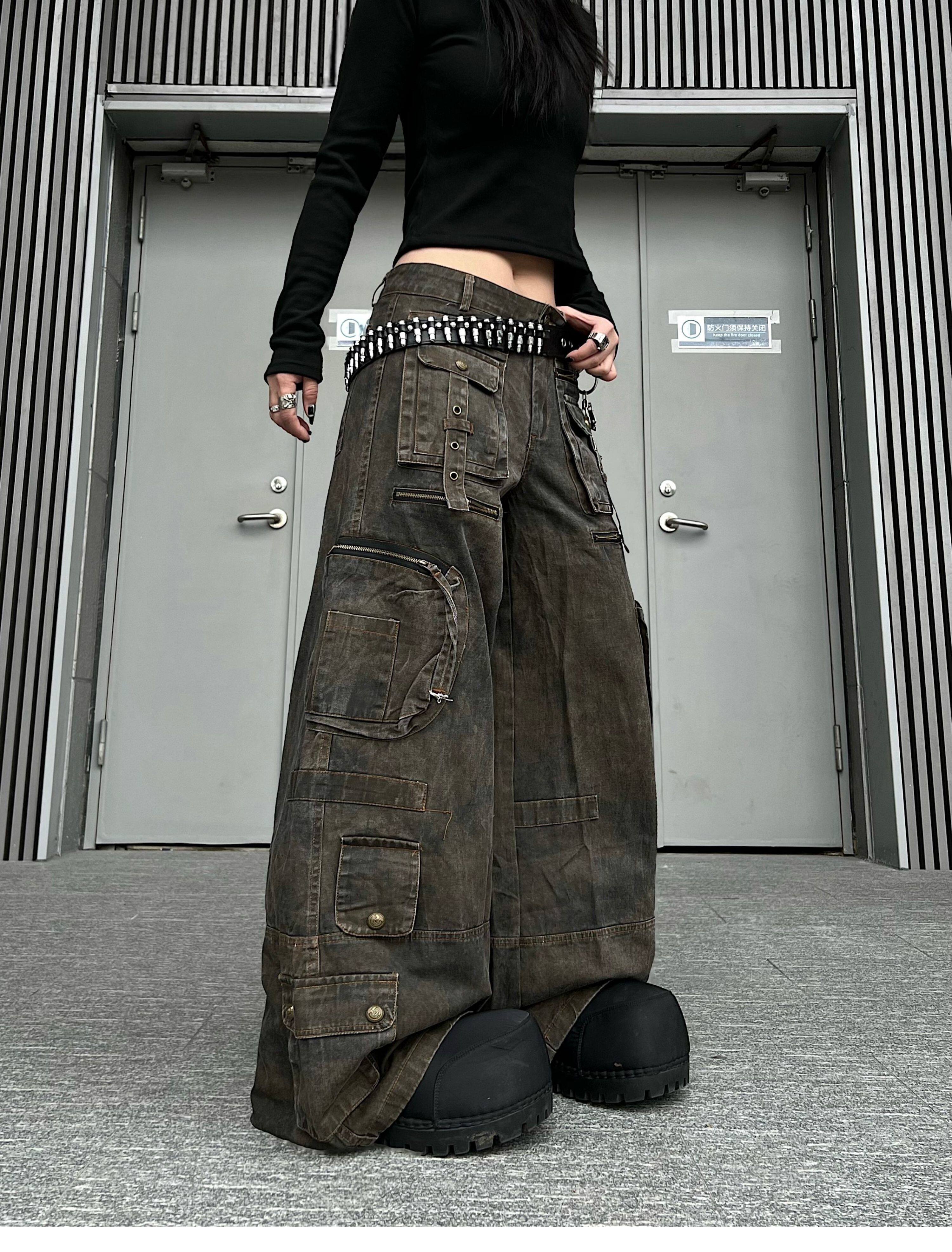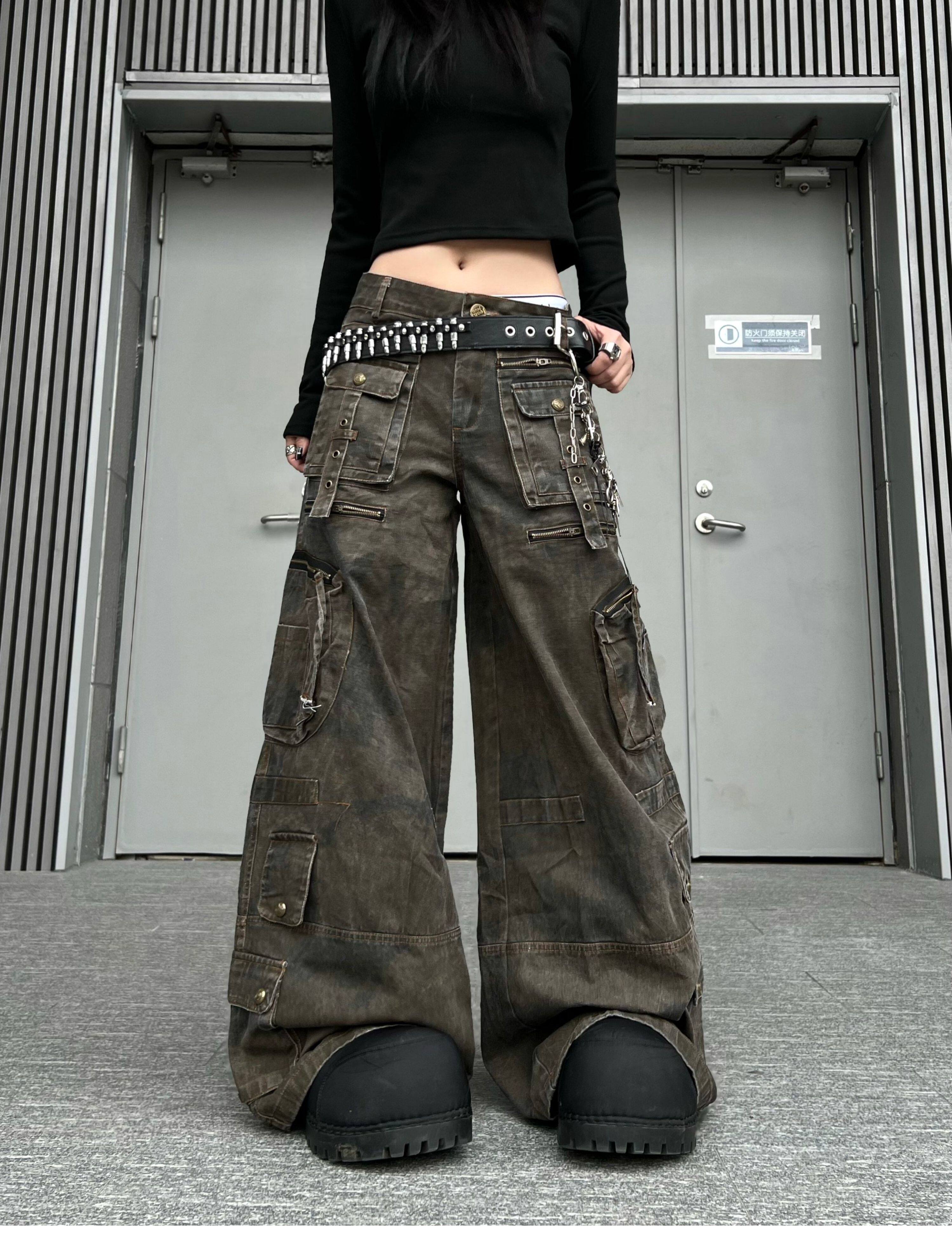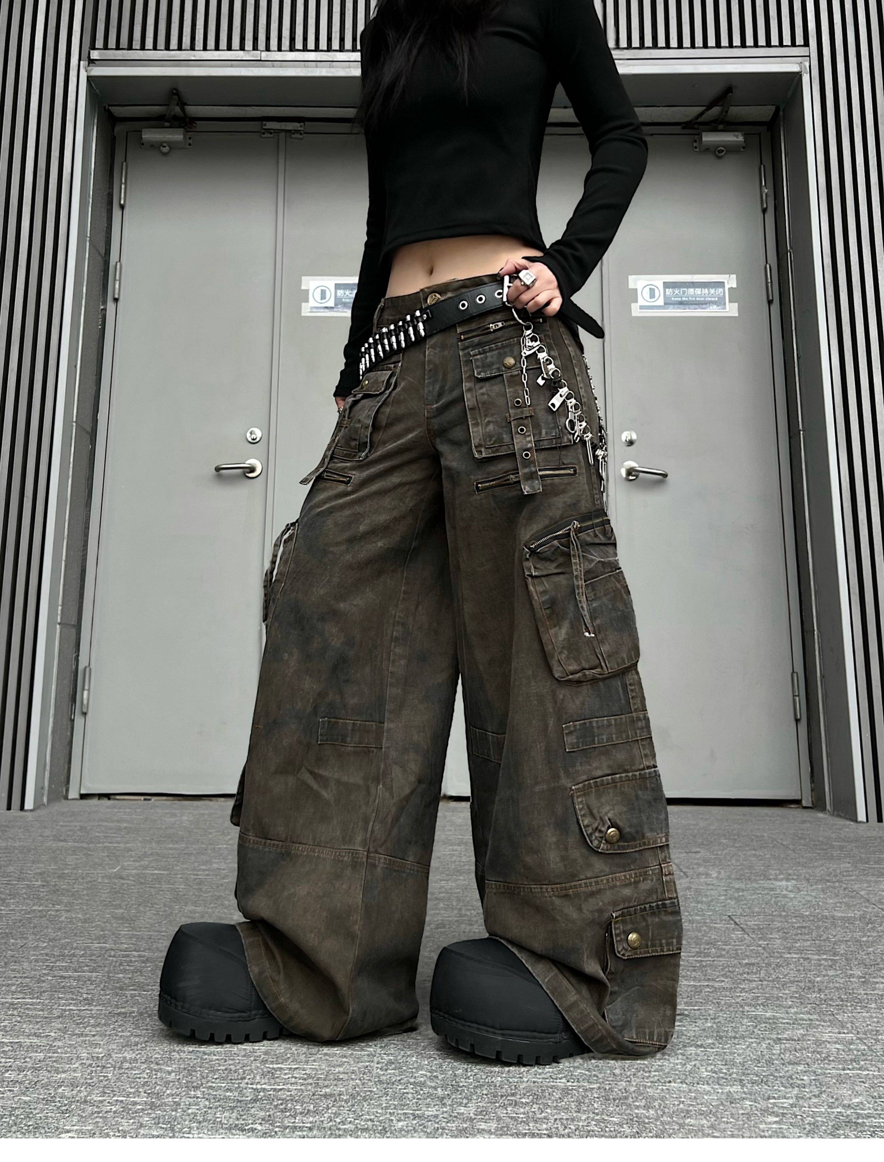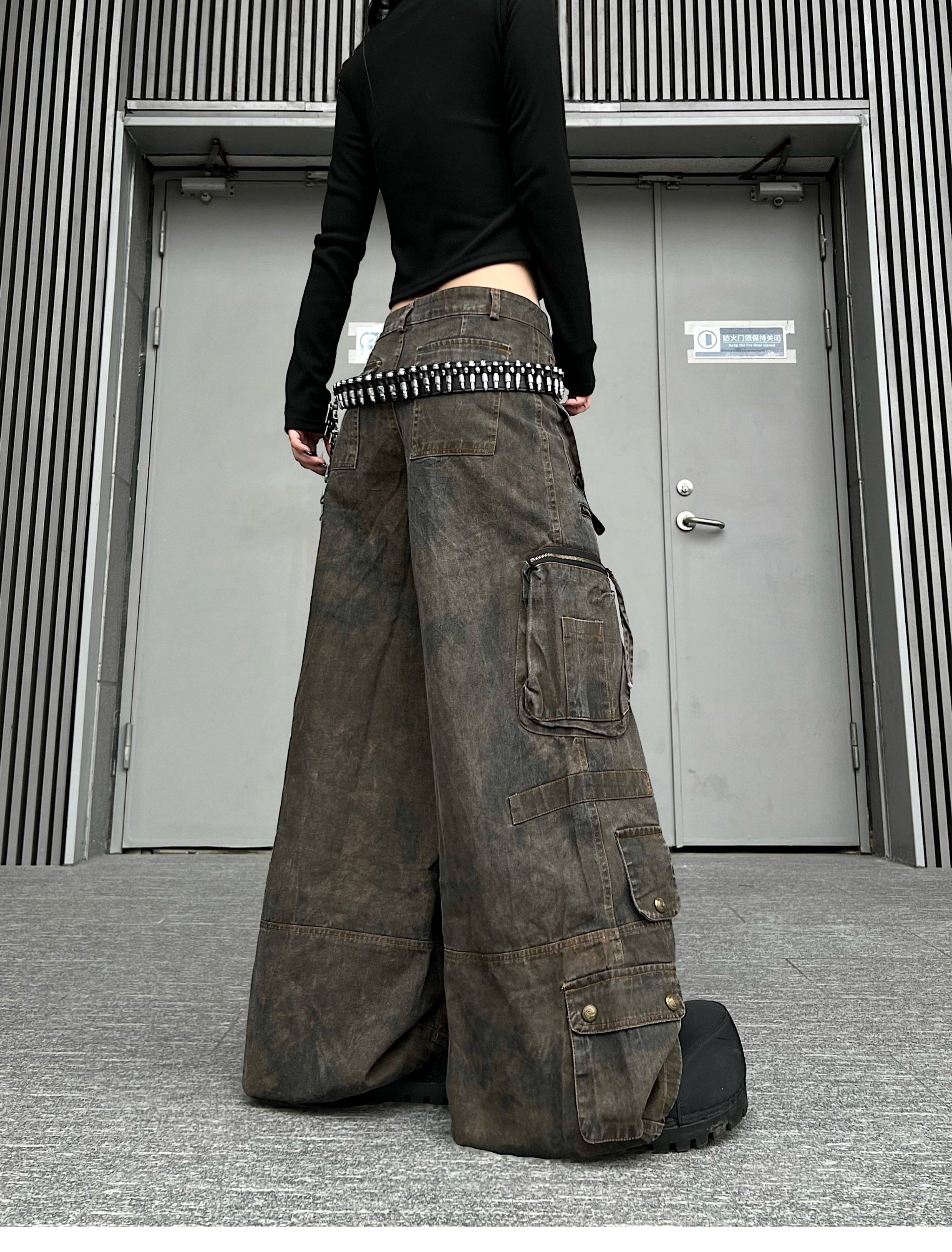 Washed Multi Pocket Wide Leg Cargo Pants WN24152