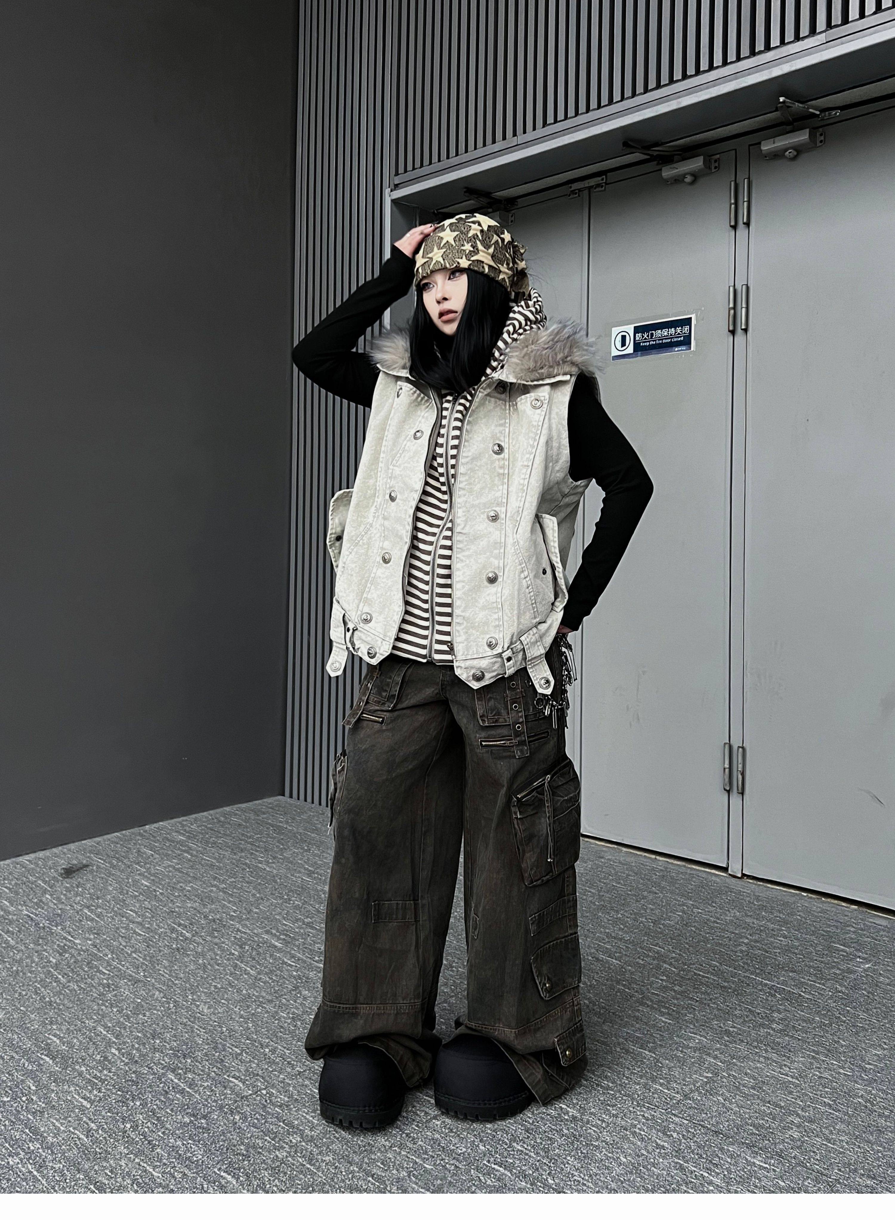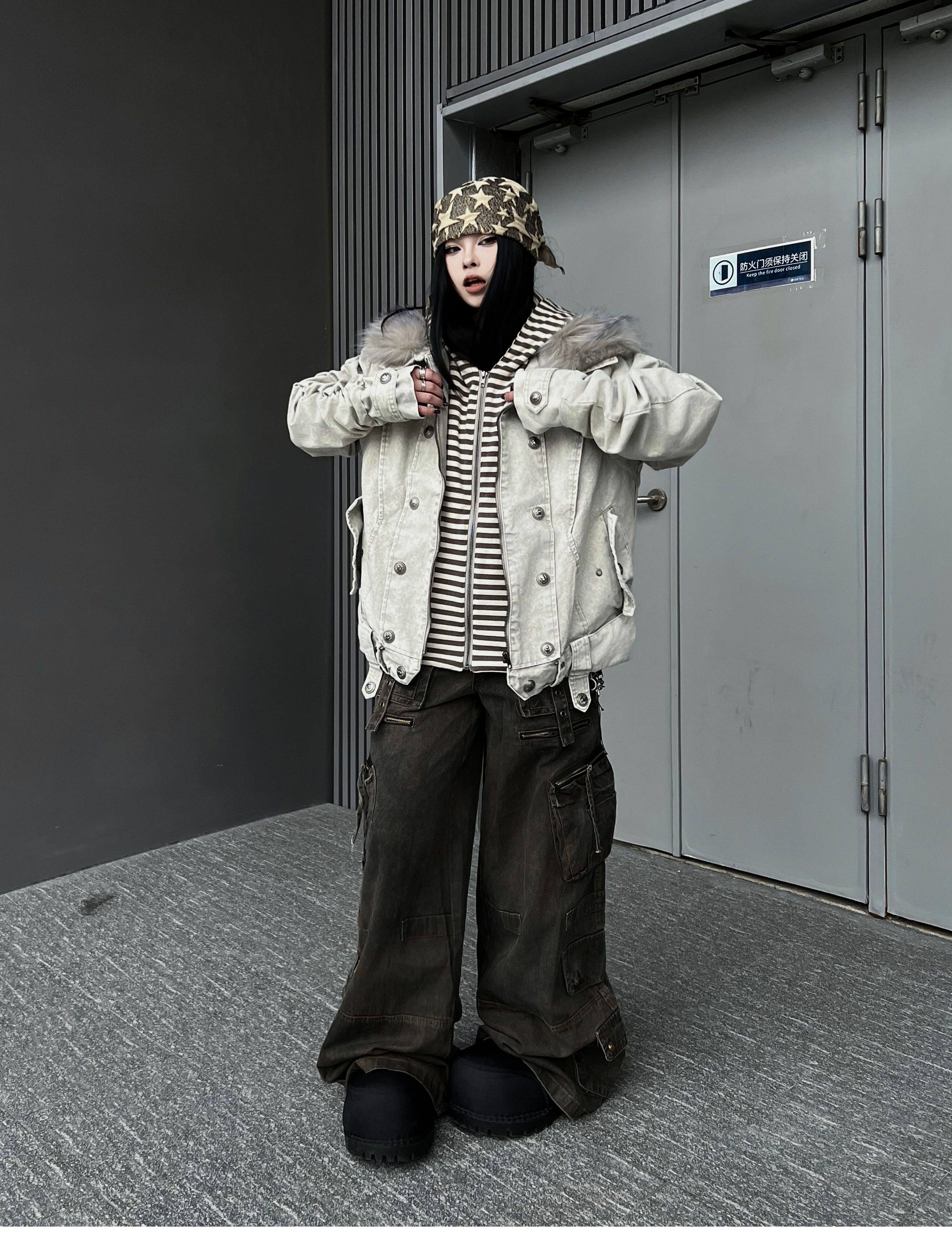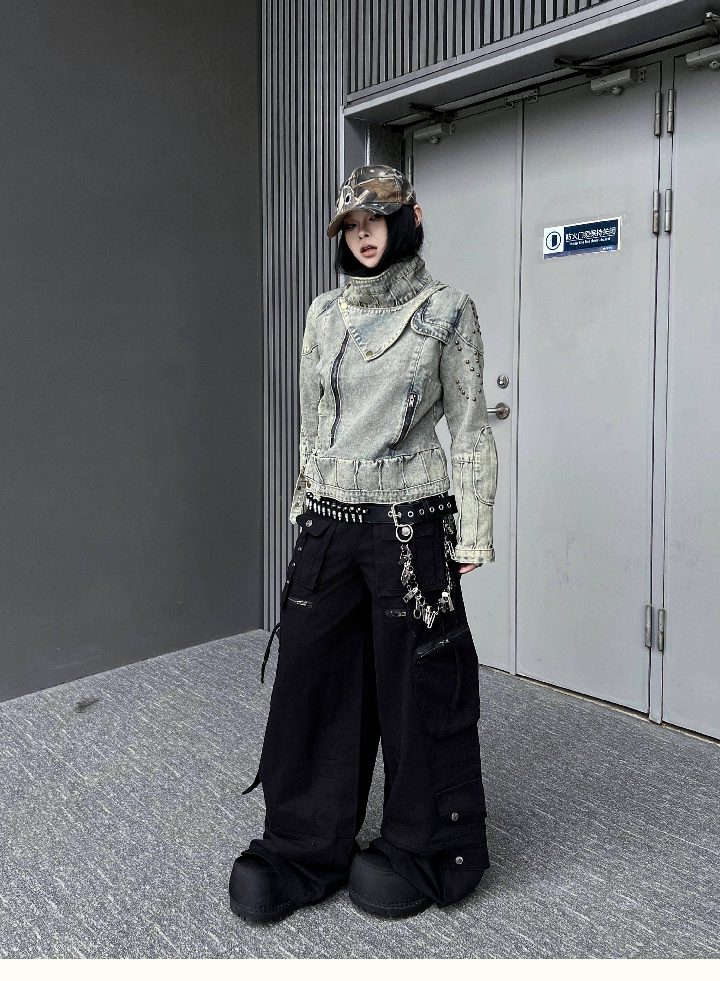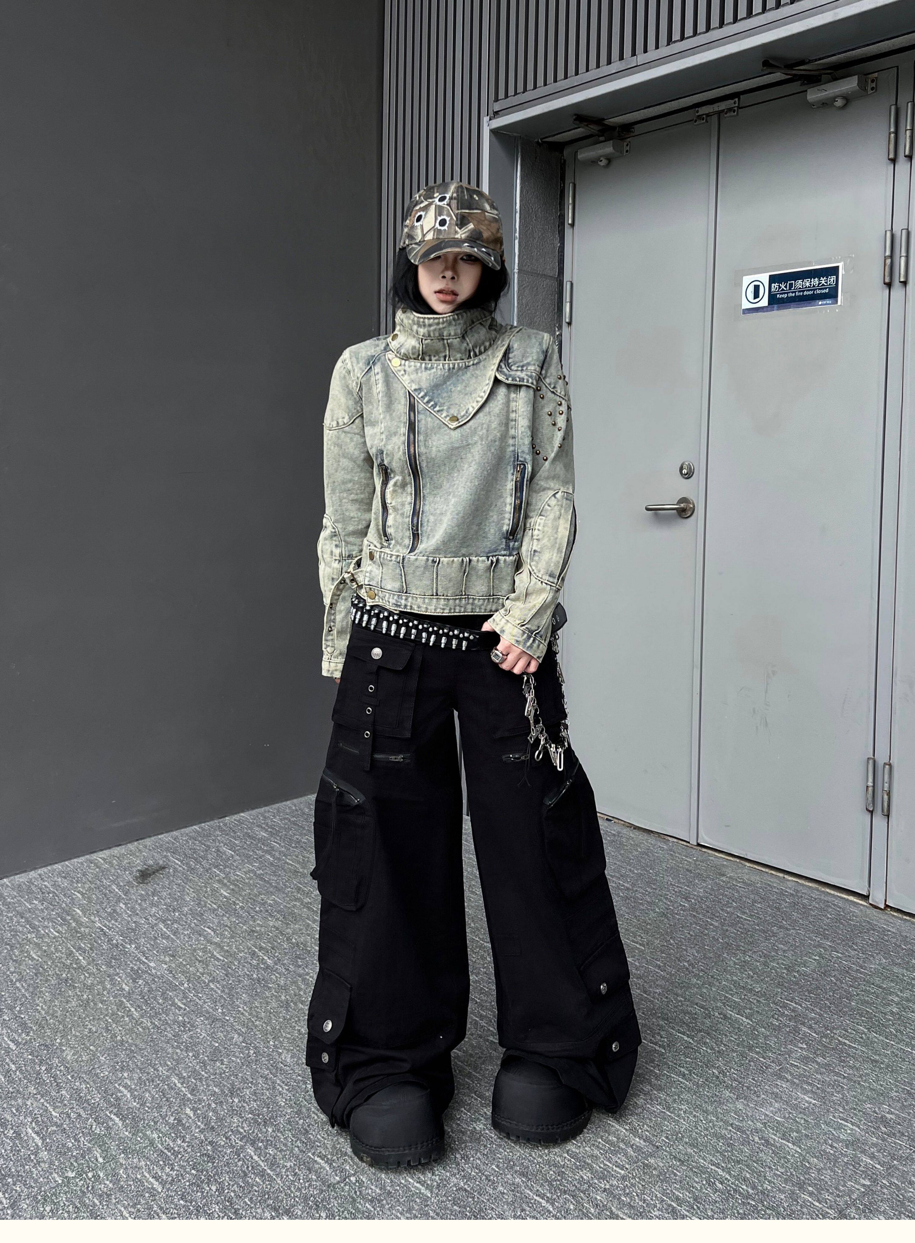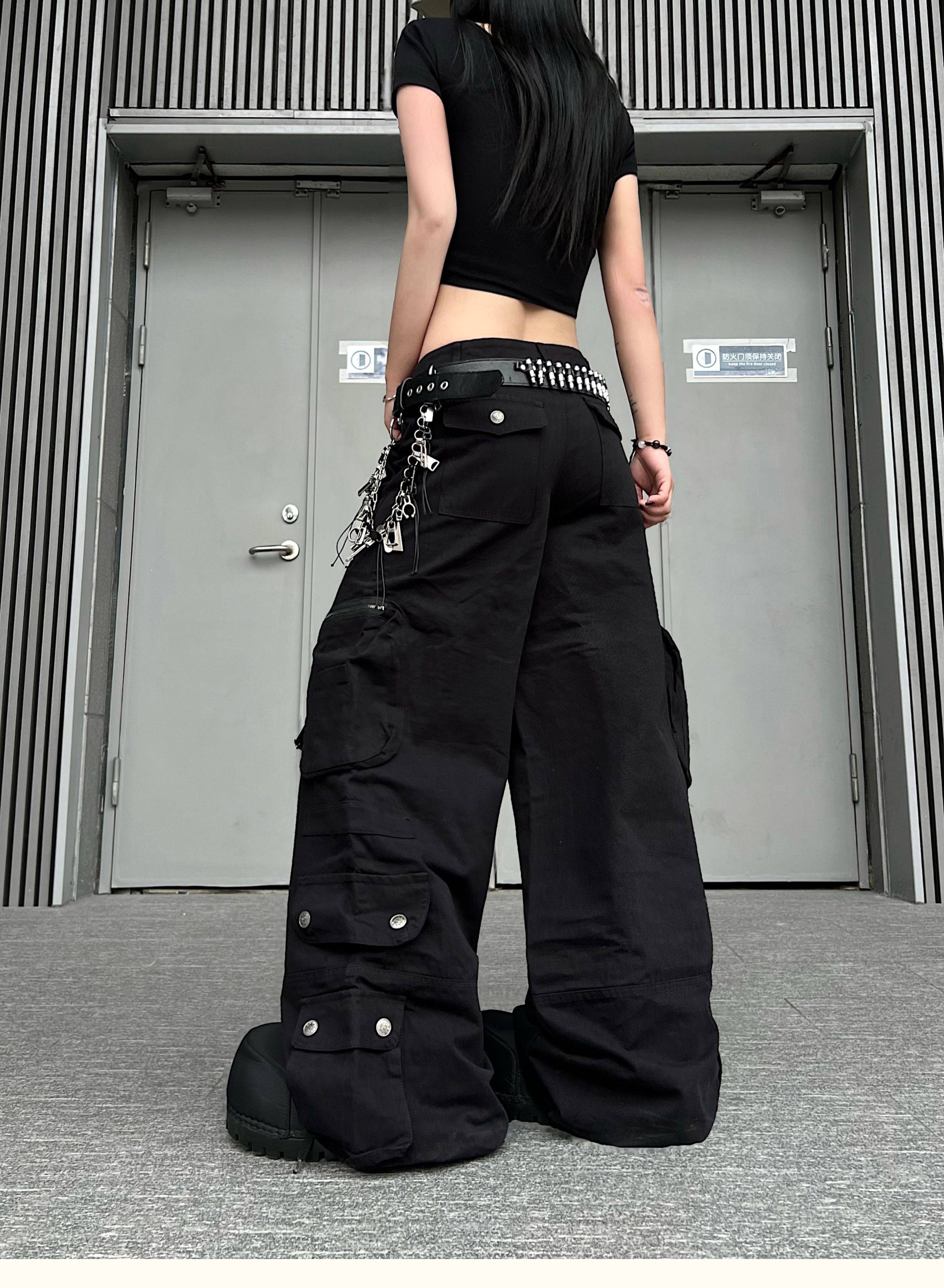 Washed Multi Pocket Wide Leg Cargo Pants WN24152