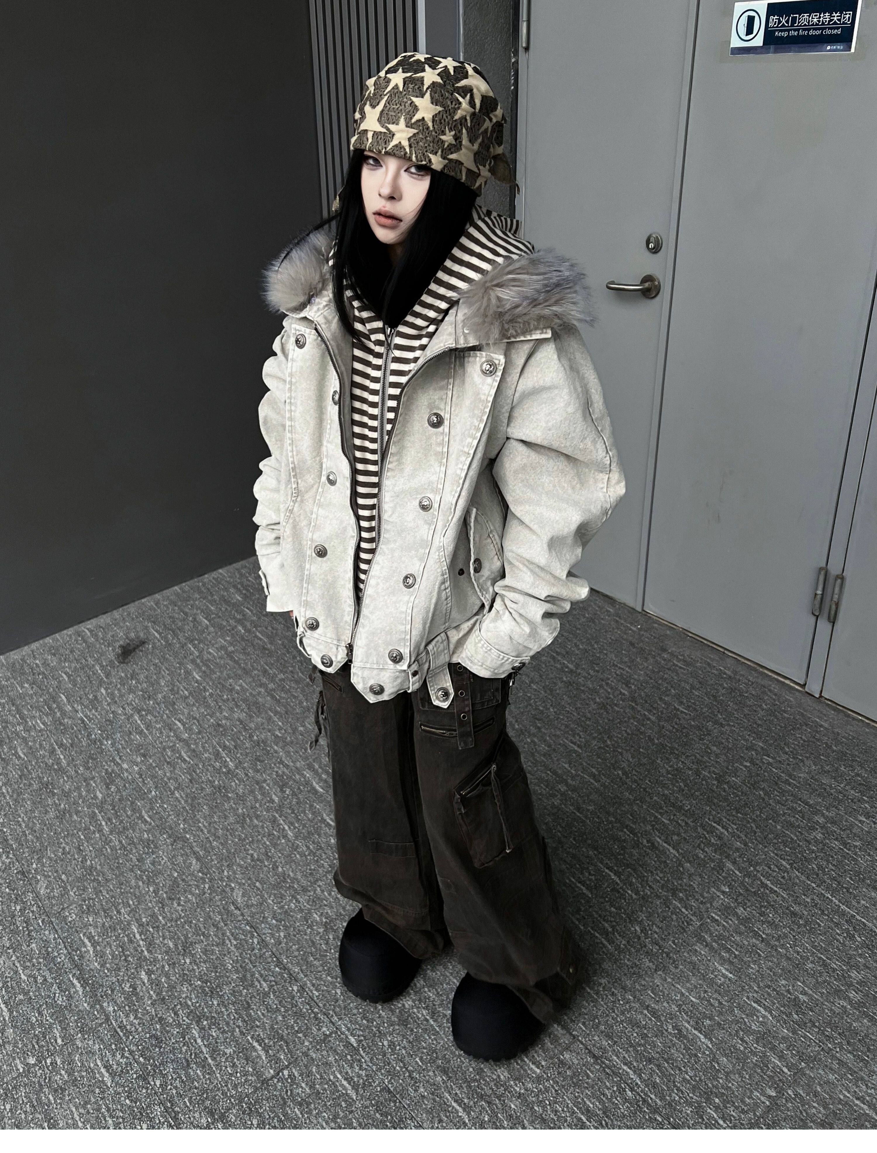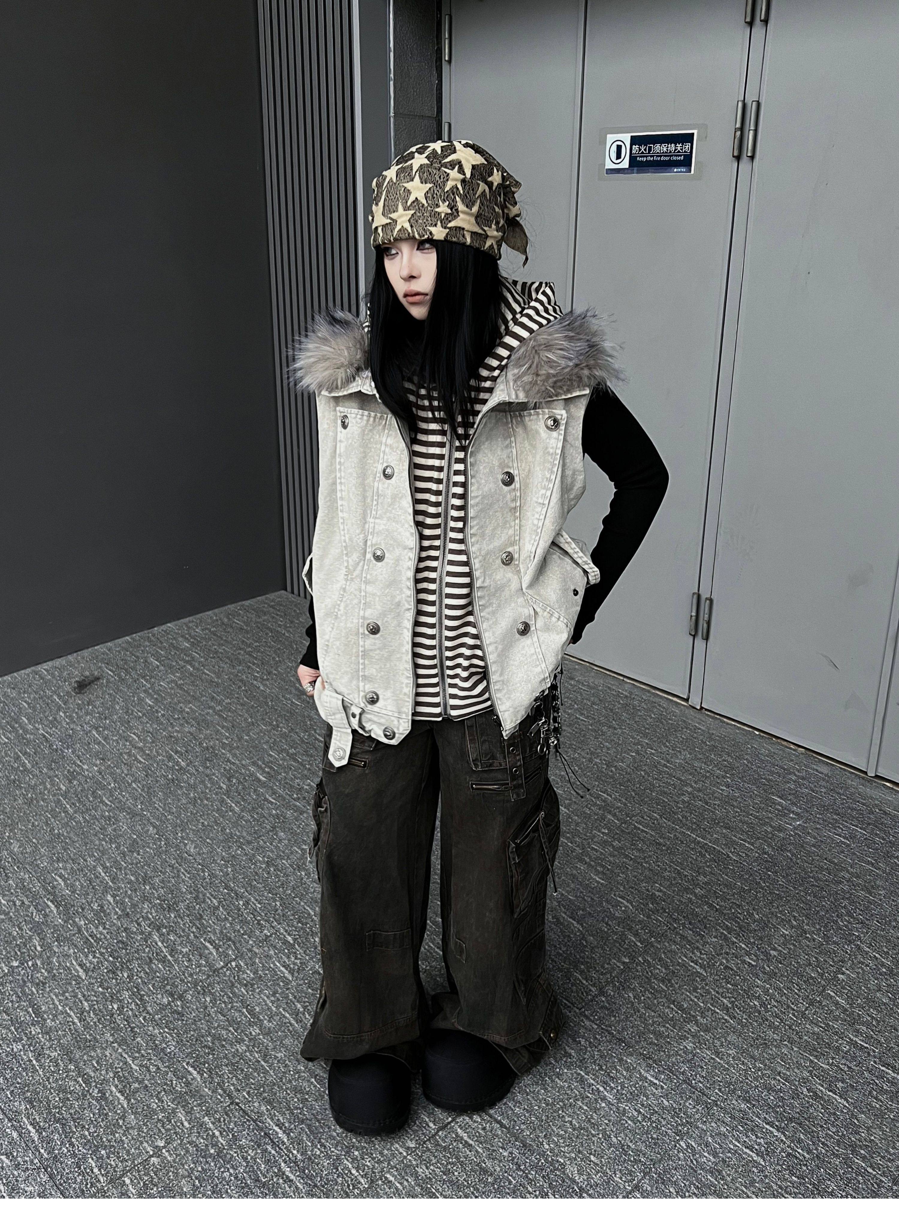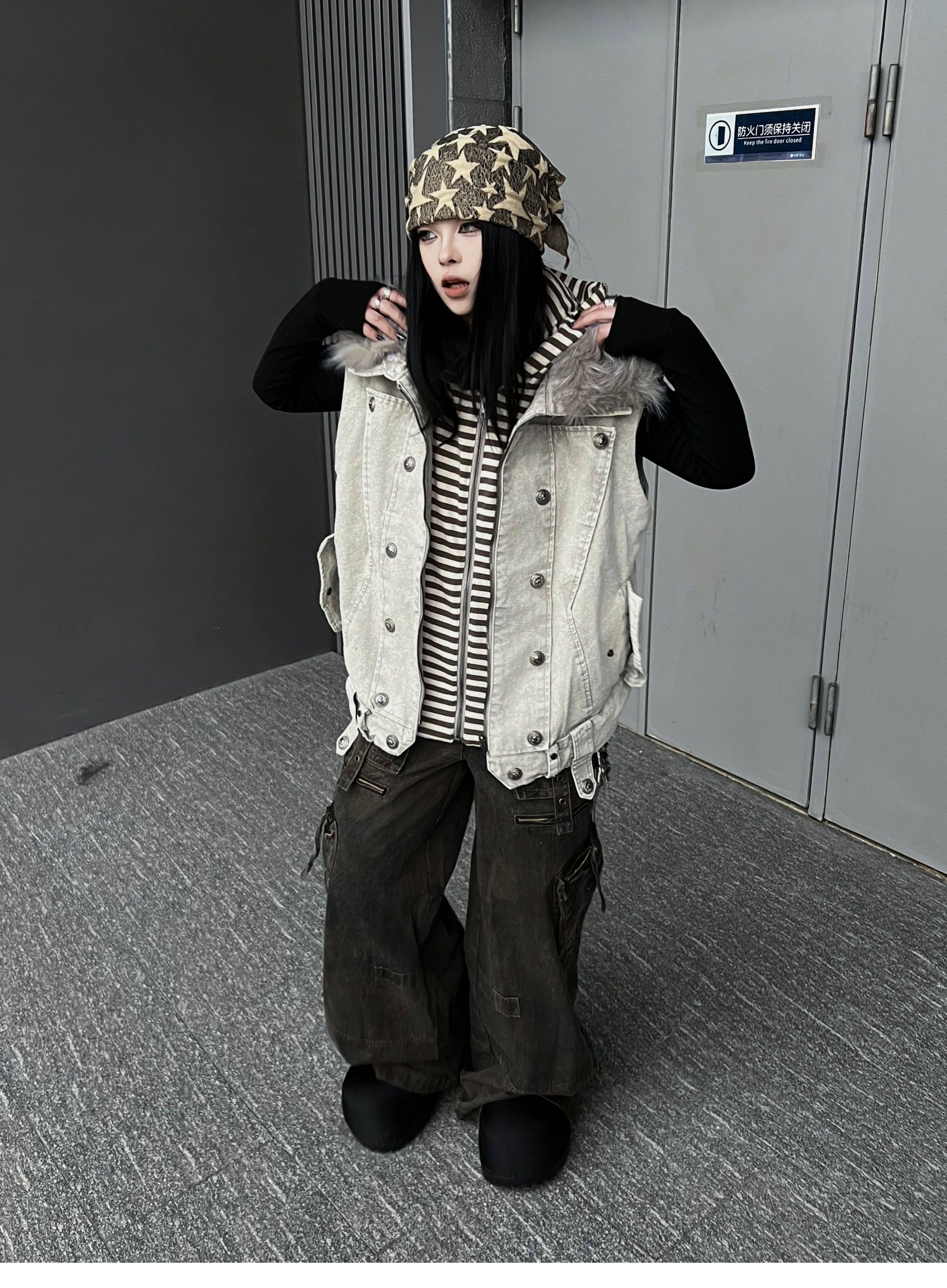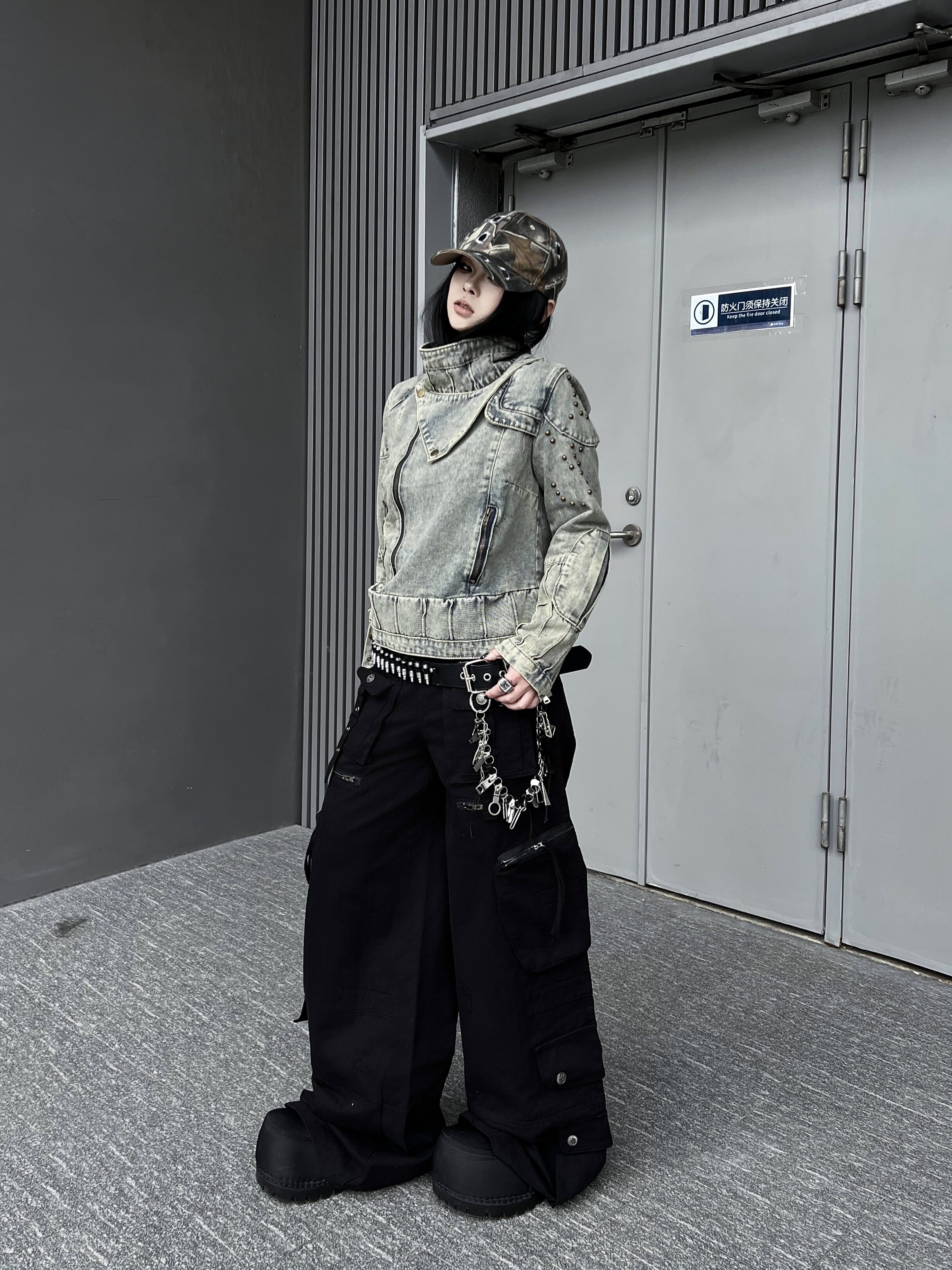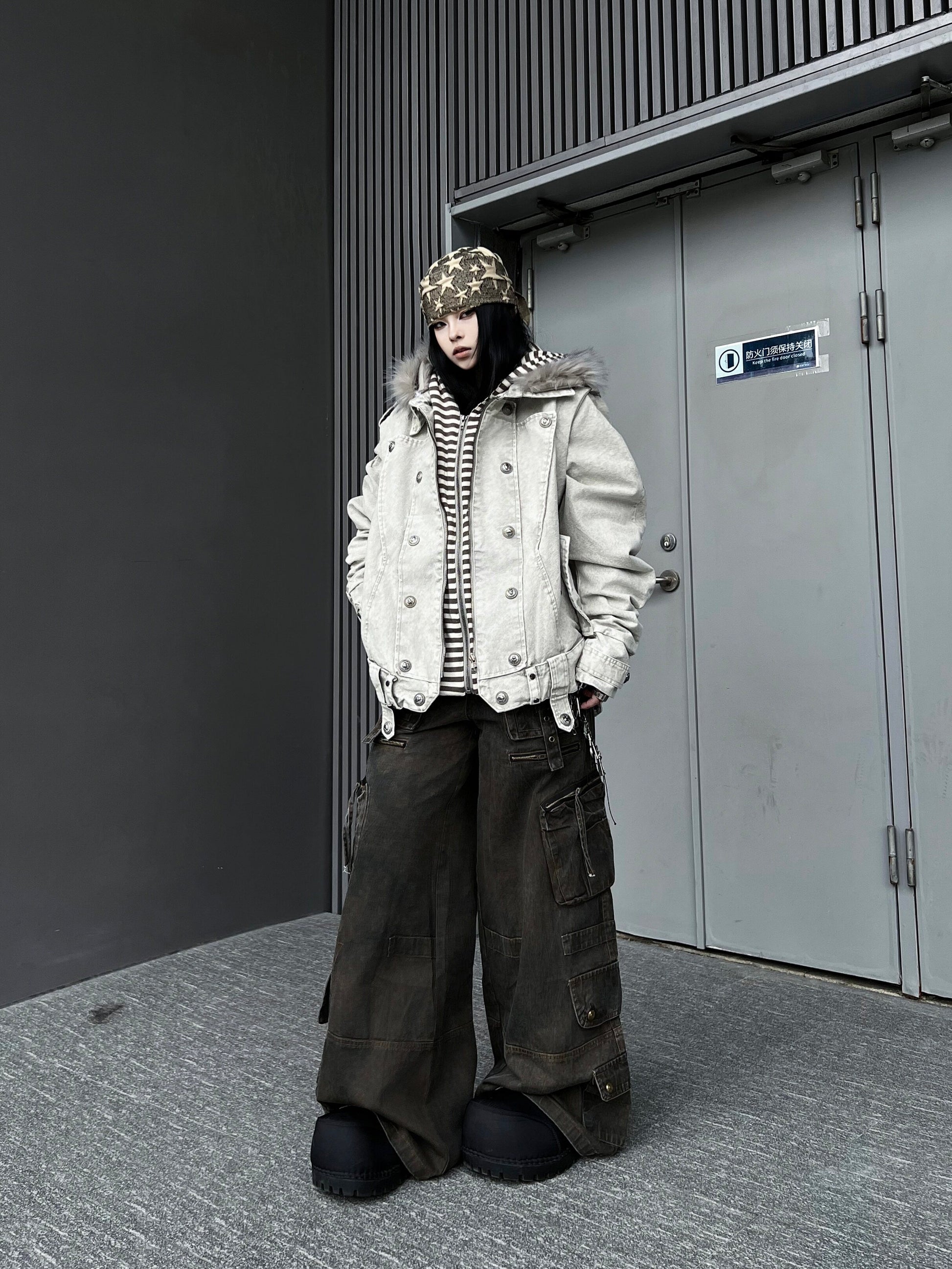 Washed Multi Pocket Wide Leg Cargo Pants WN24152