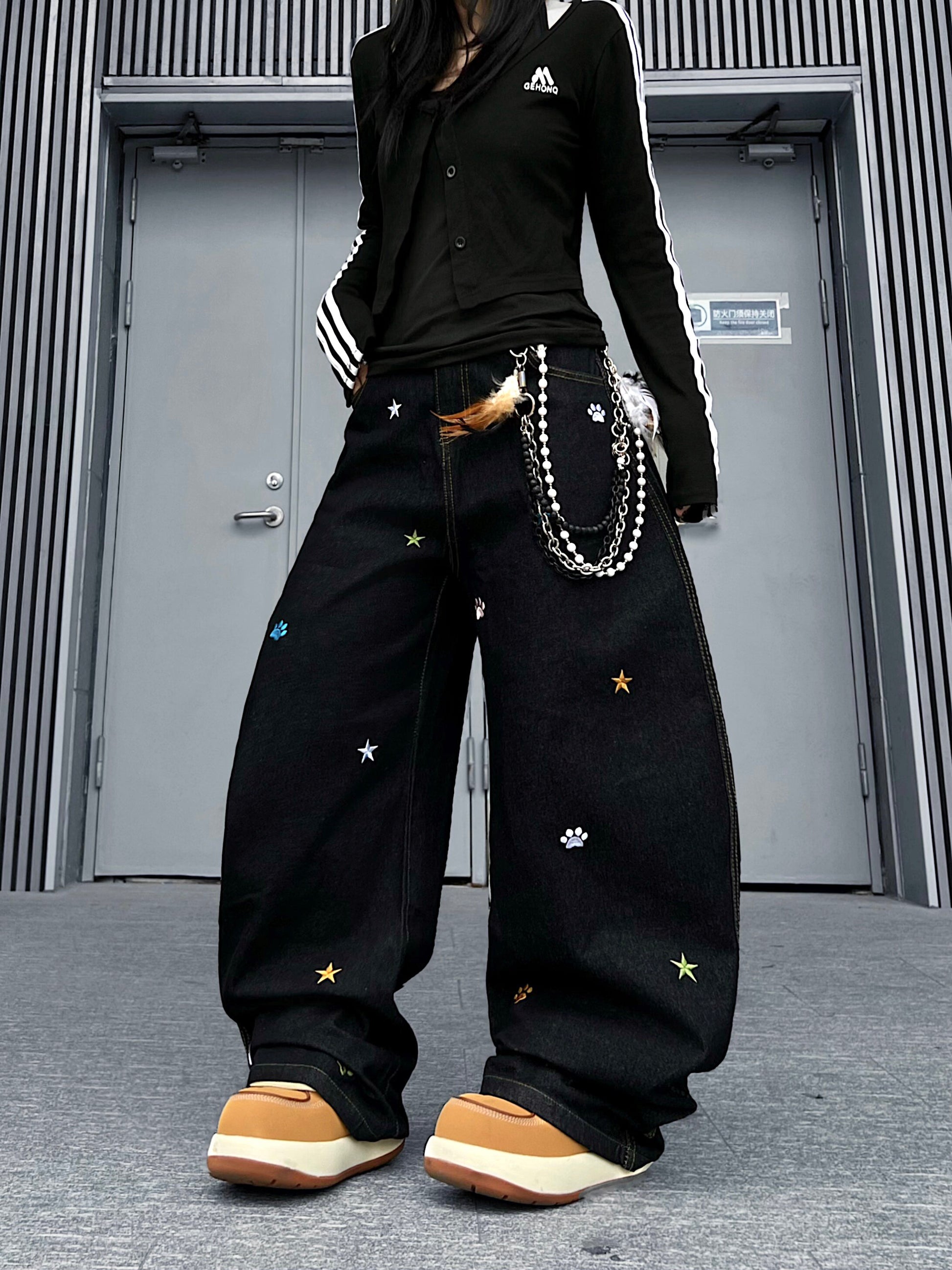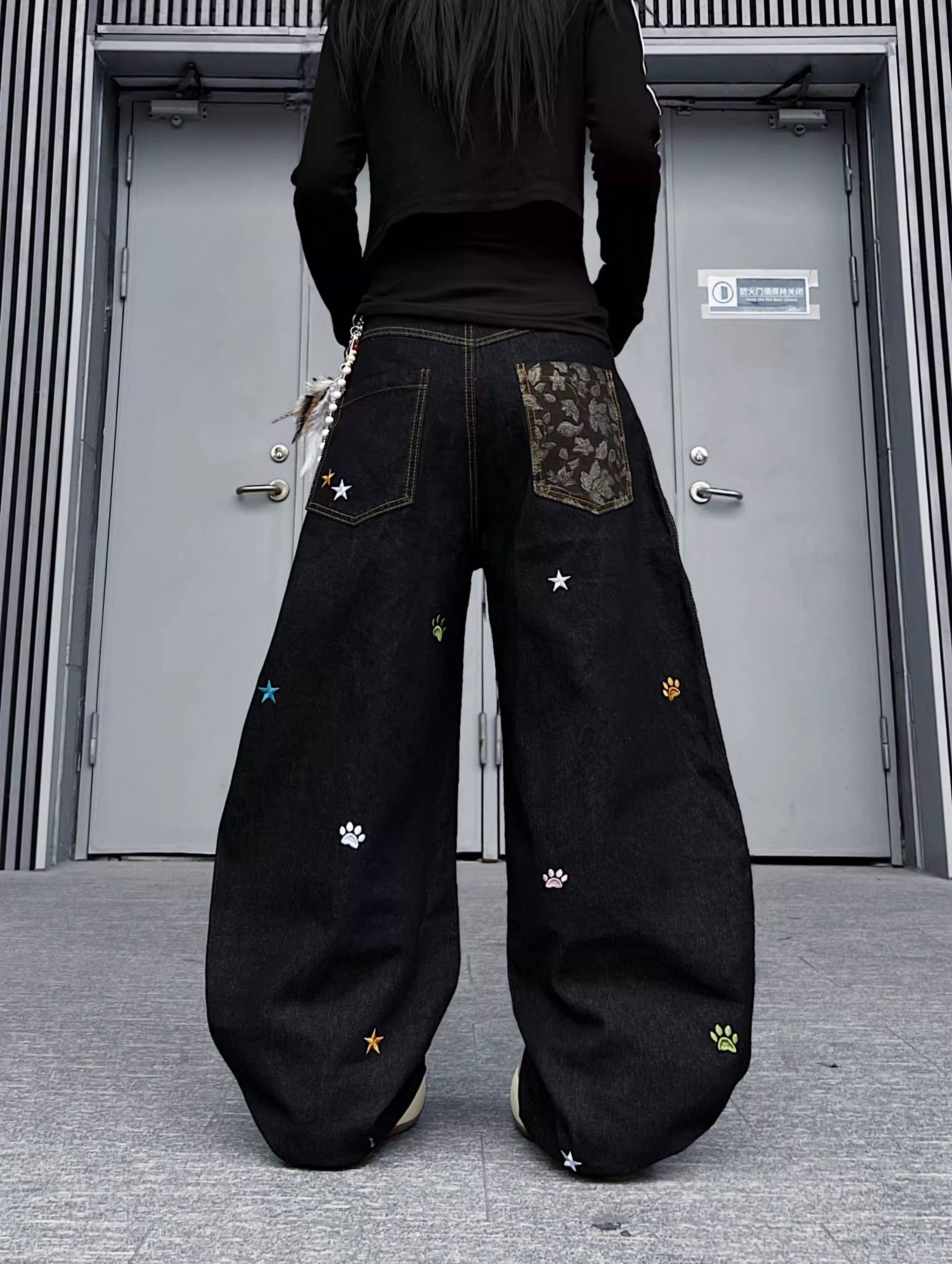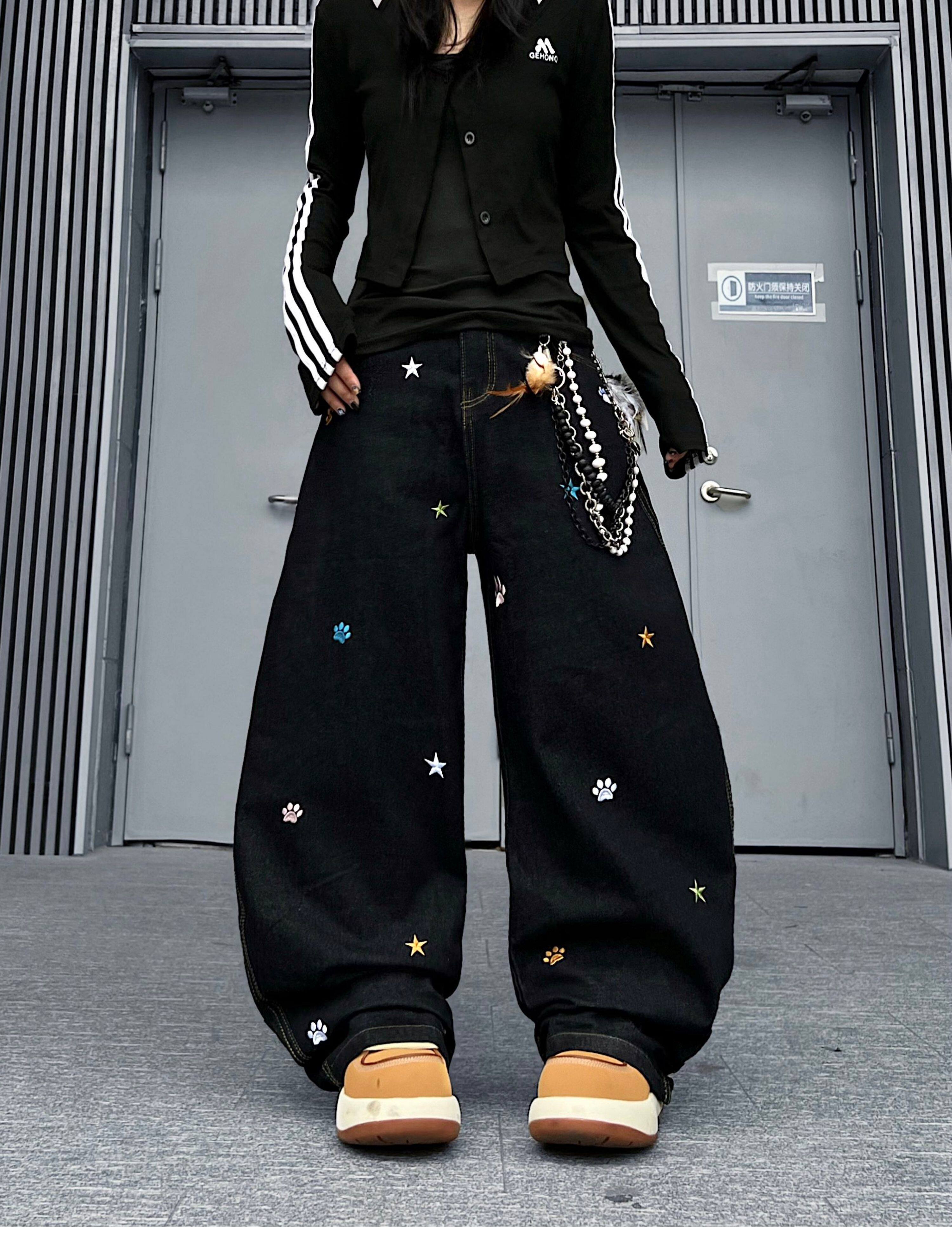 Star Embroidery Wide Leg Denim Jeans WN24153