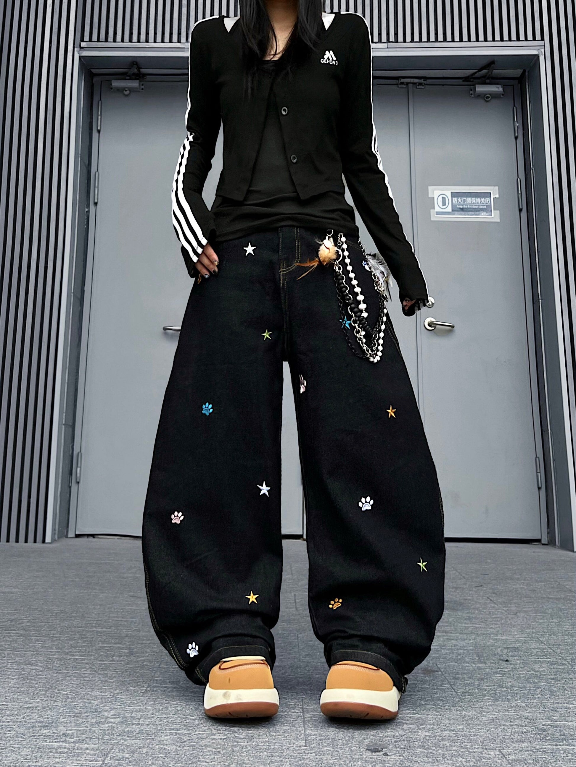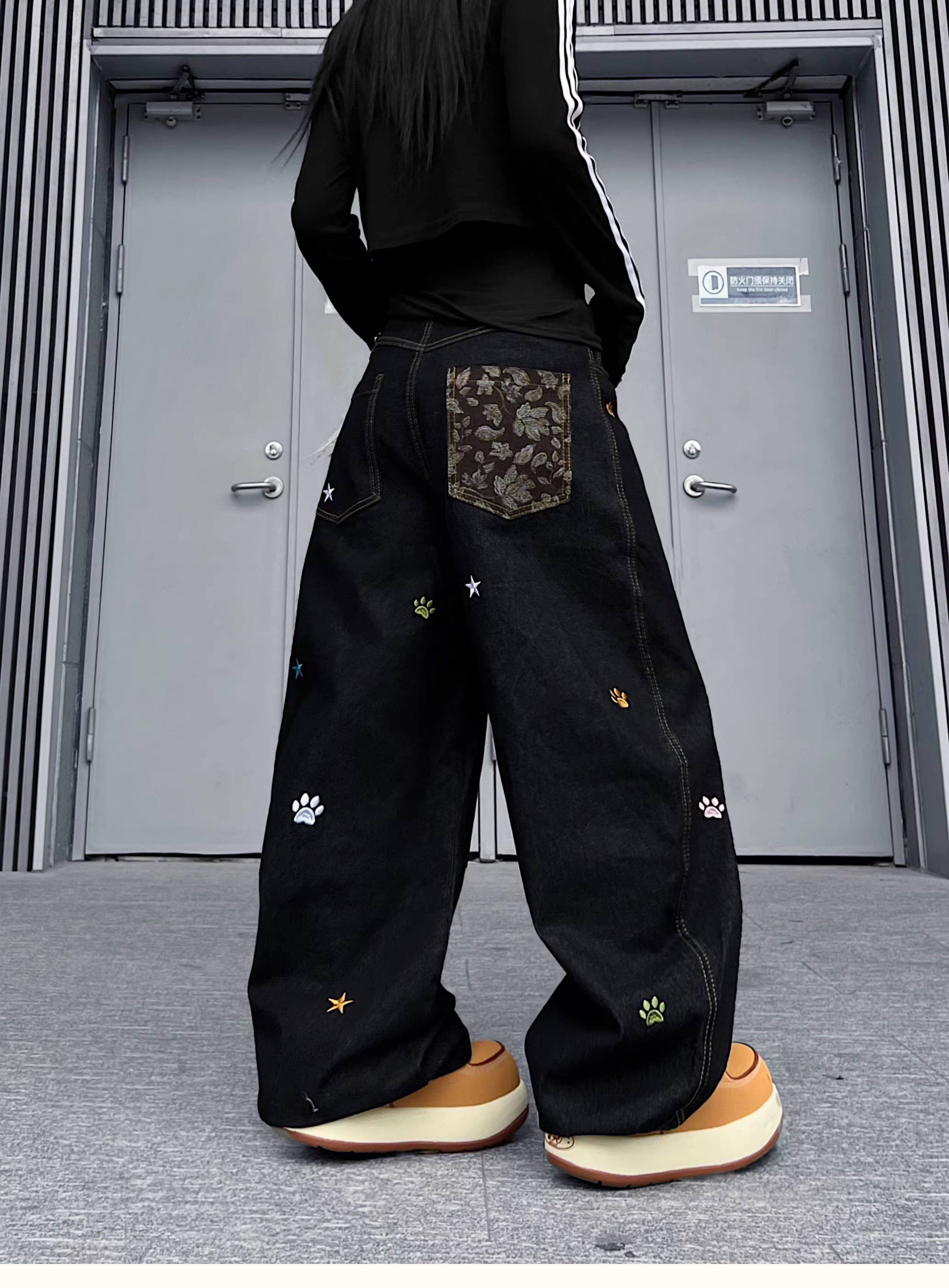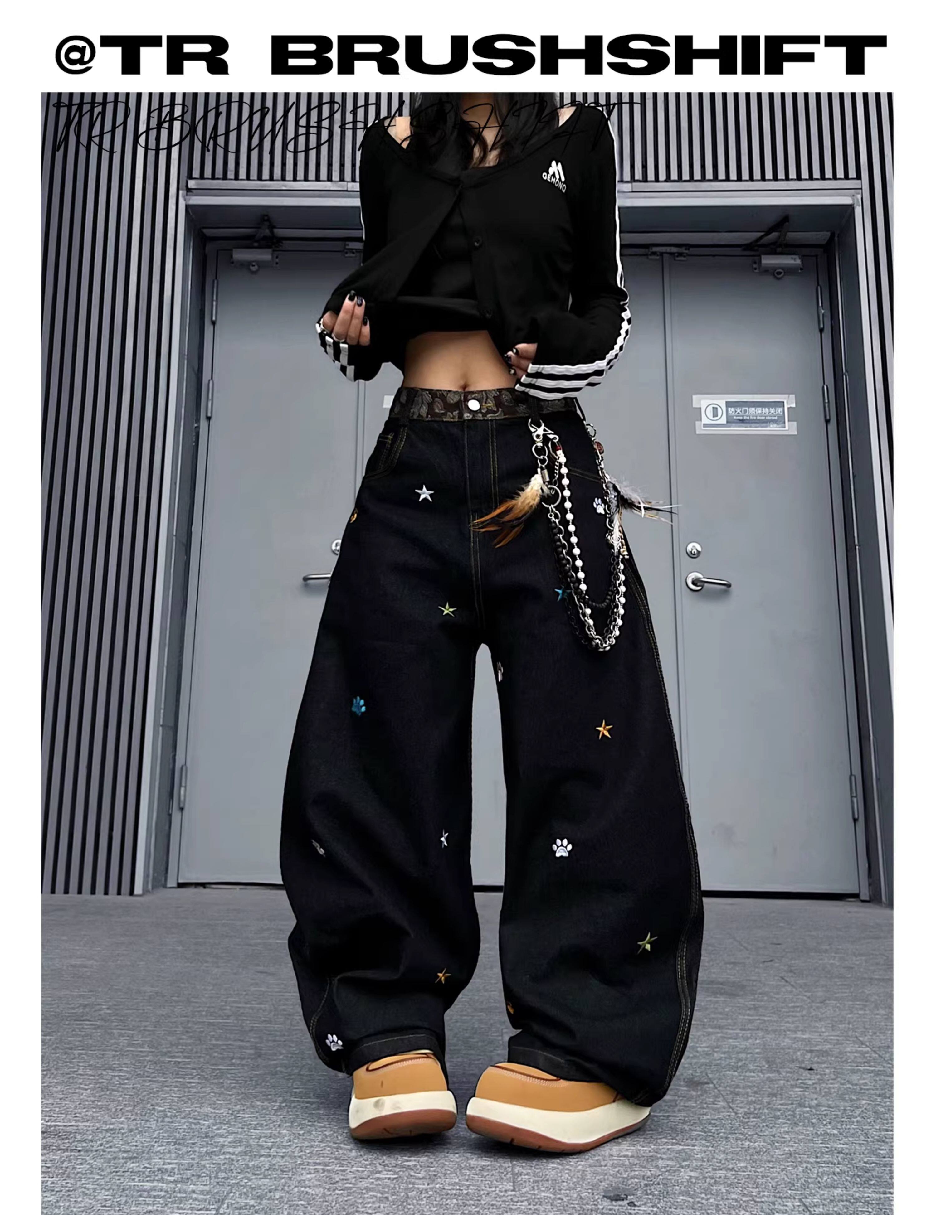 Star Embroidery Wide Leg Denim Jeans WN24153