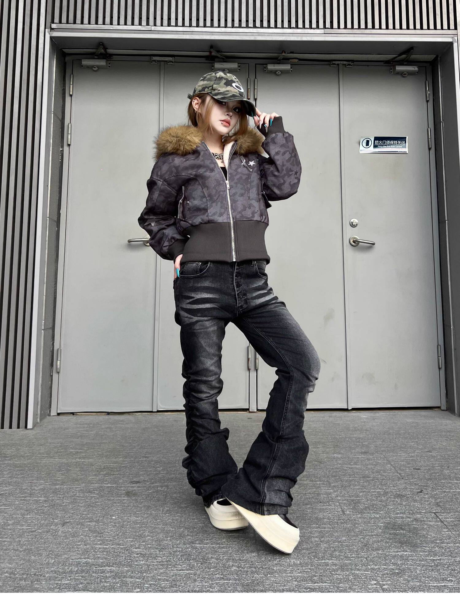 Washed Wrinkle Stacked Straight Denim Jeans WN24161