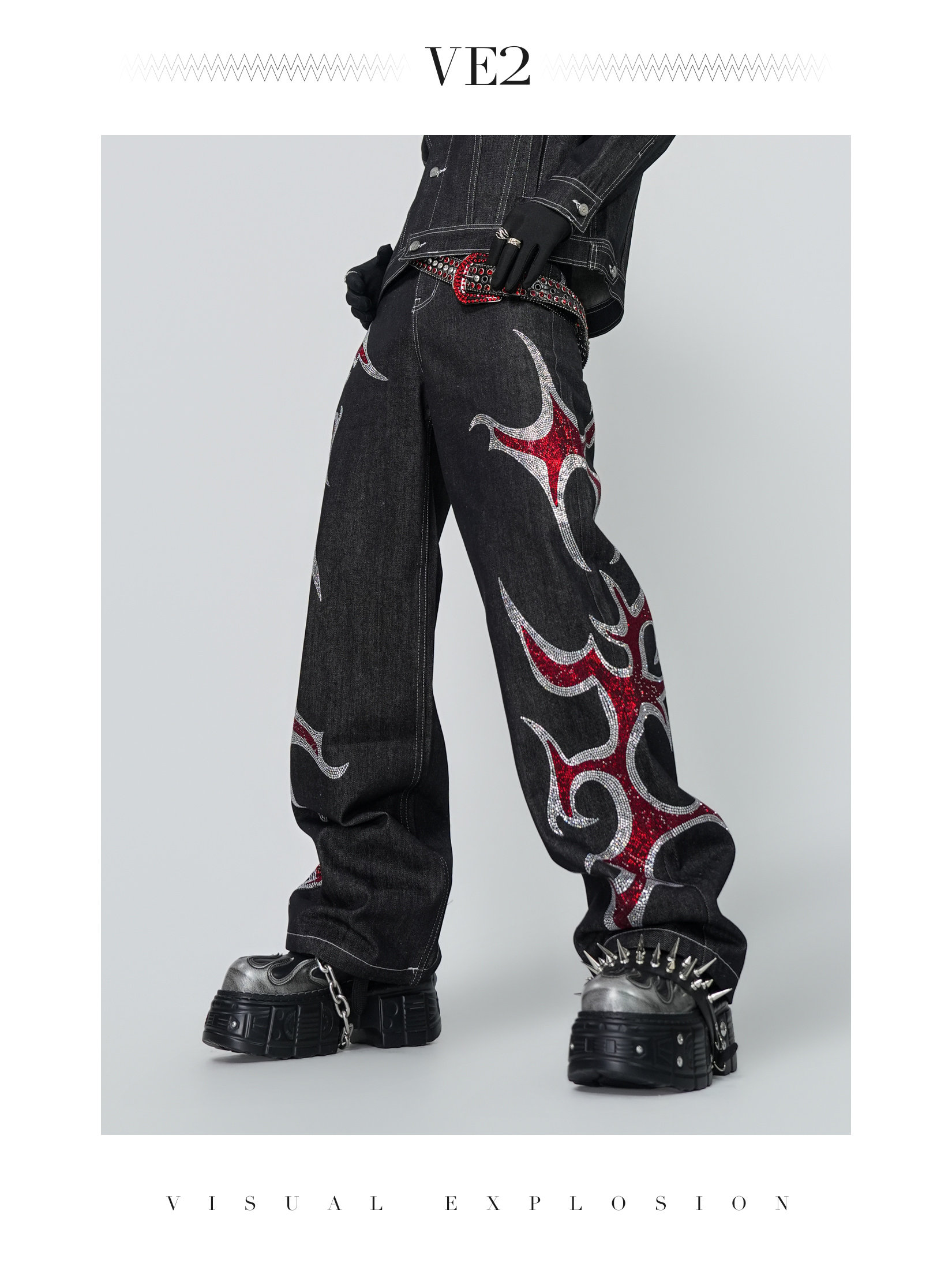 Rinestone Design Wide Leg Pants Setup WN24296 WN24296-K