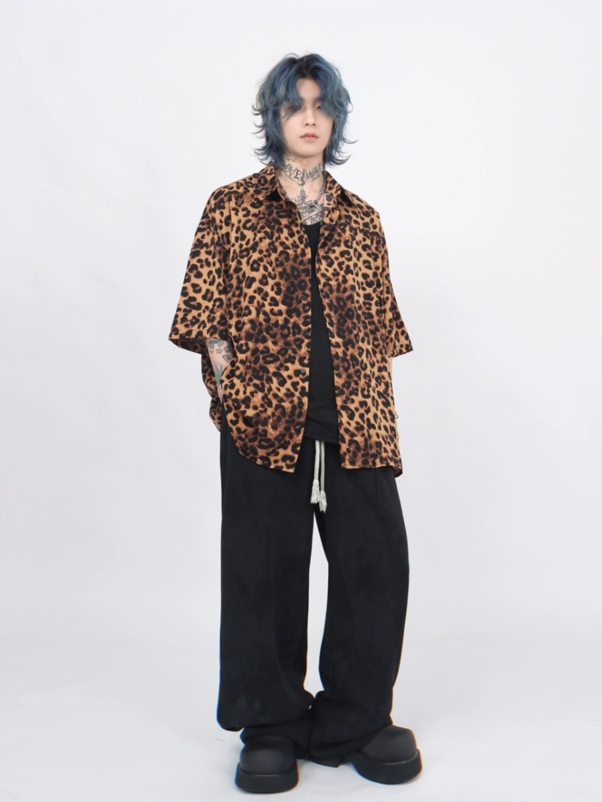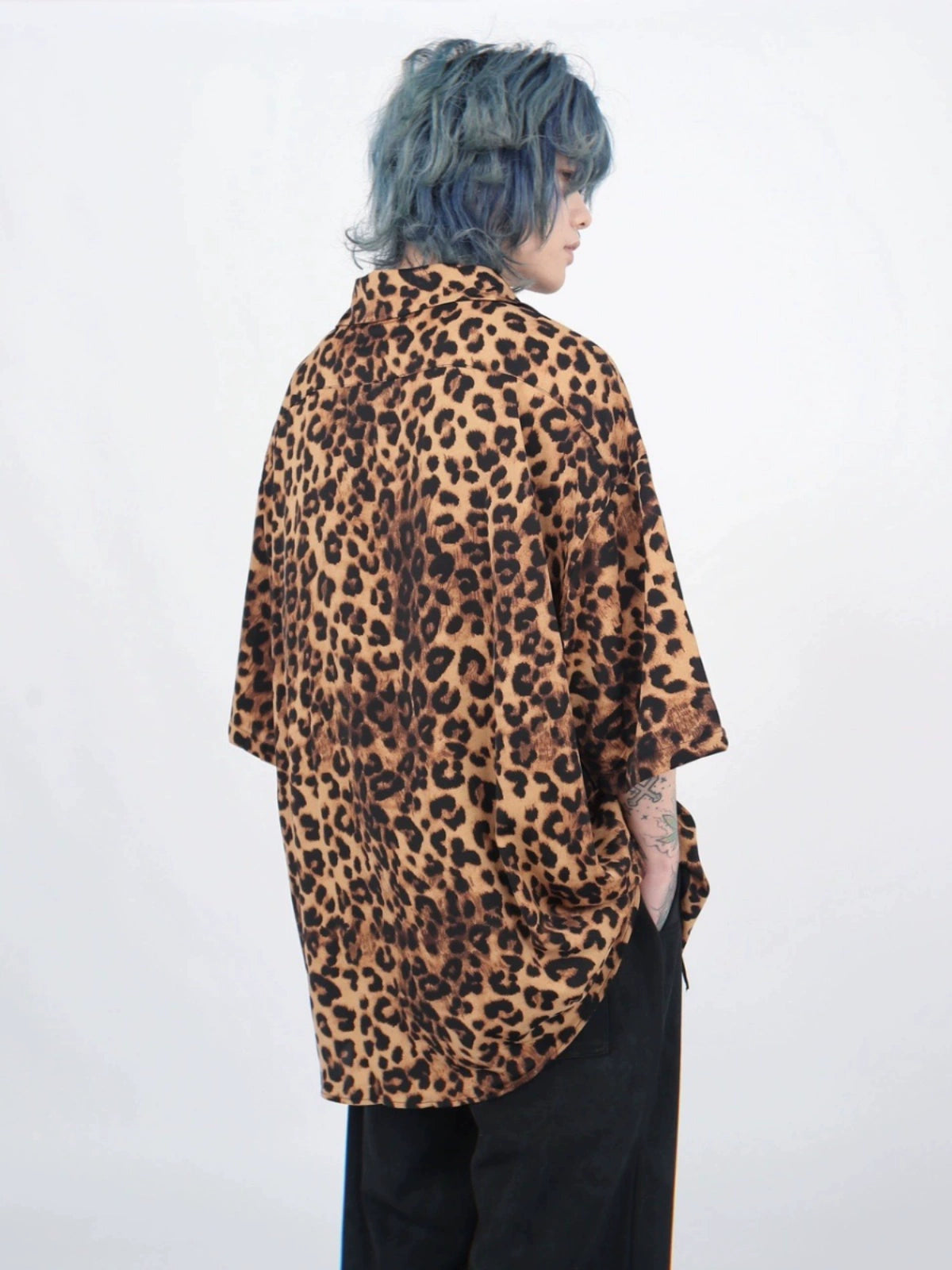 Leopard Print Oversize Short Sleeve Shirt WN5279
