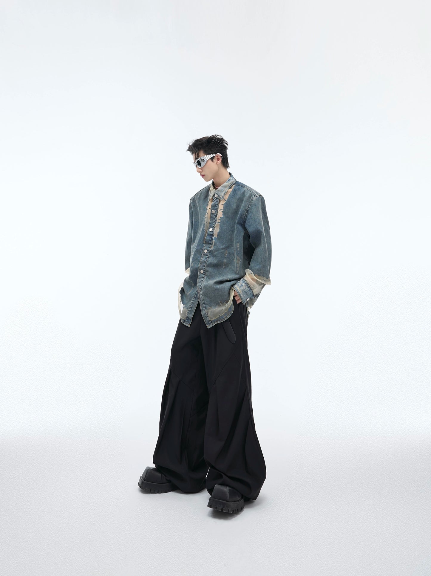 Oversize Damage Sheer Denim Shirt WN5601