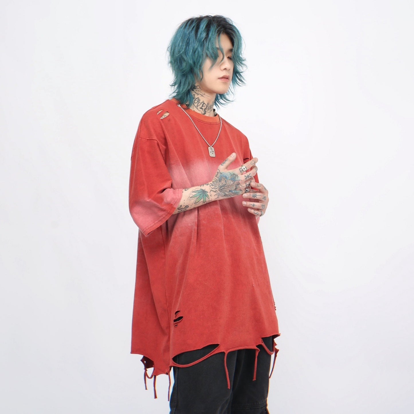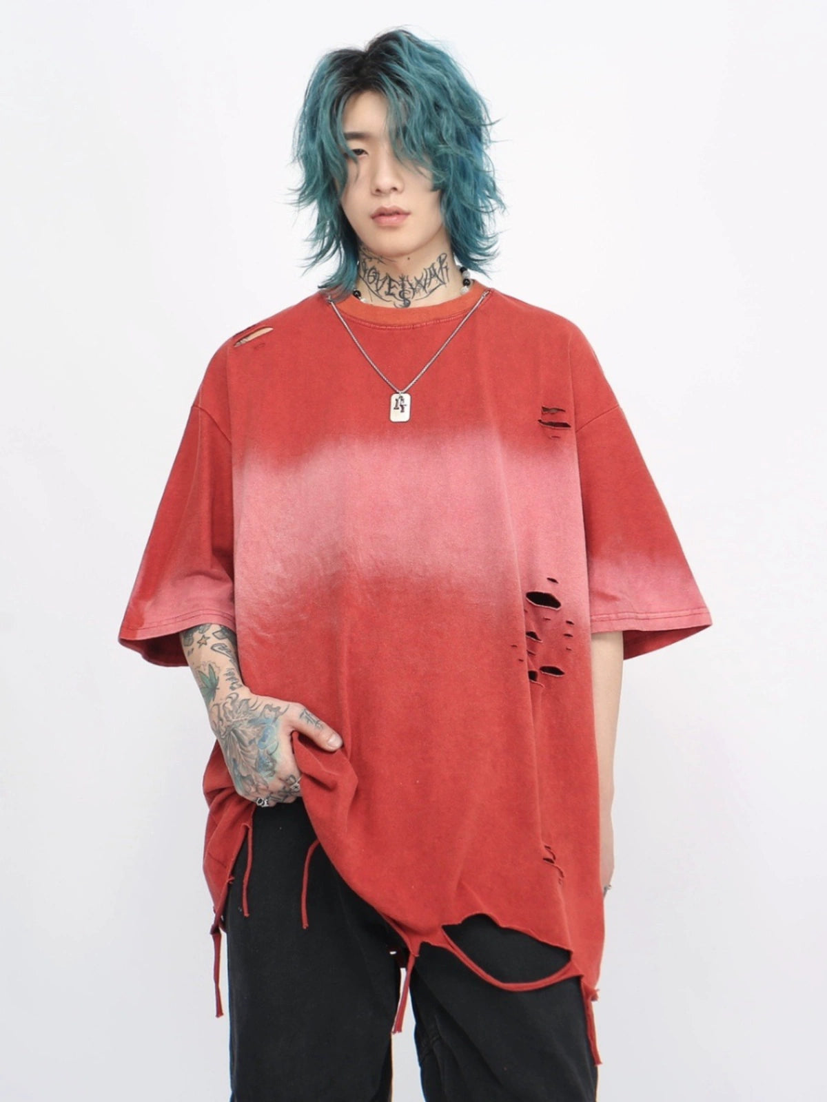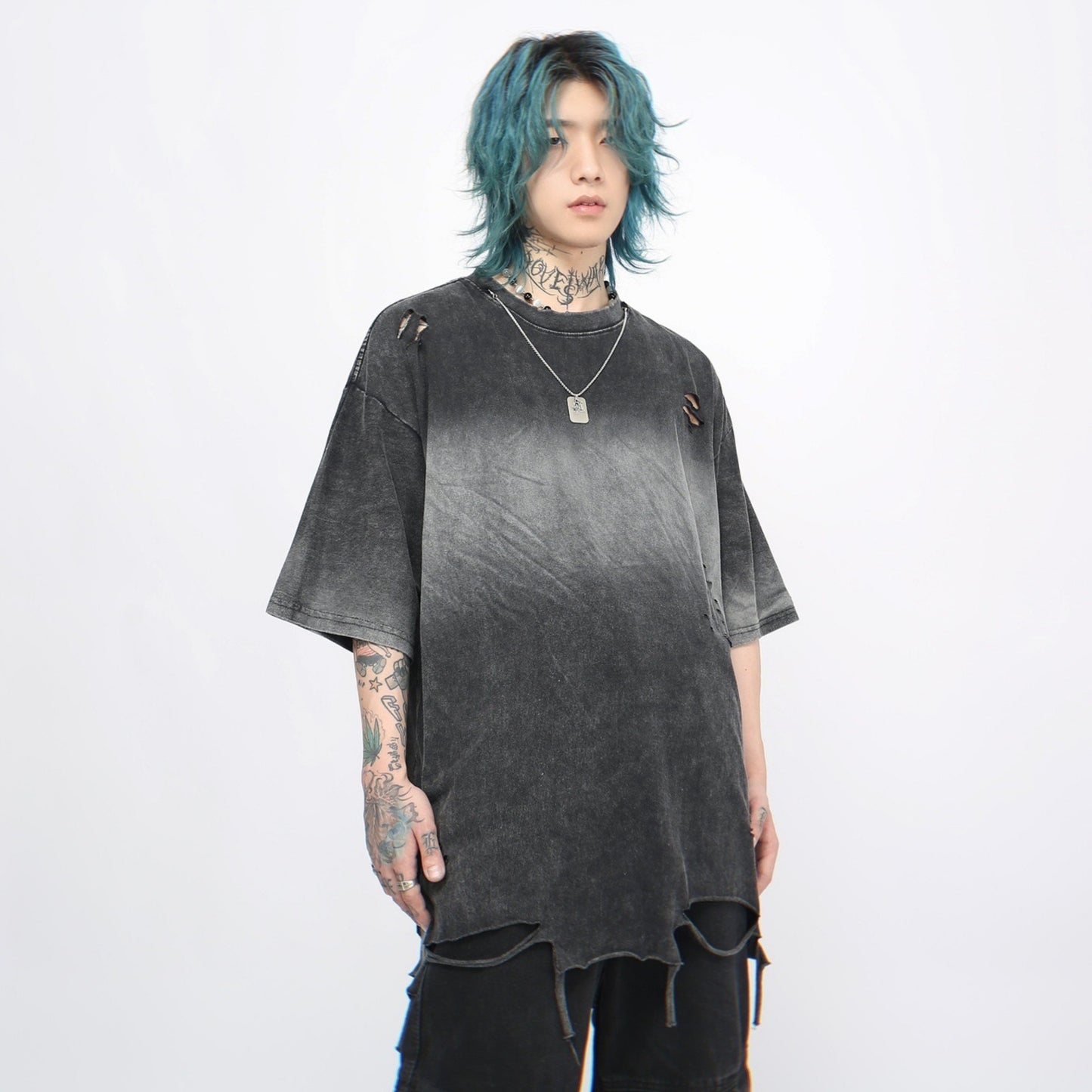 Washed Gradient Damage Oversize Short Sleeve T-Shirt WN5849