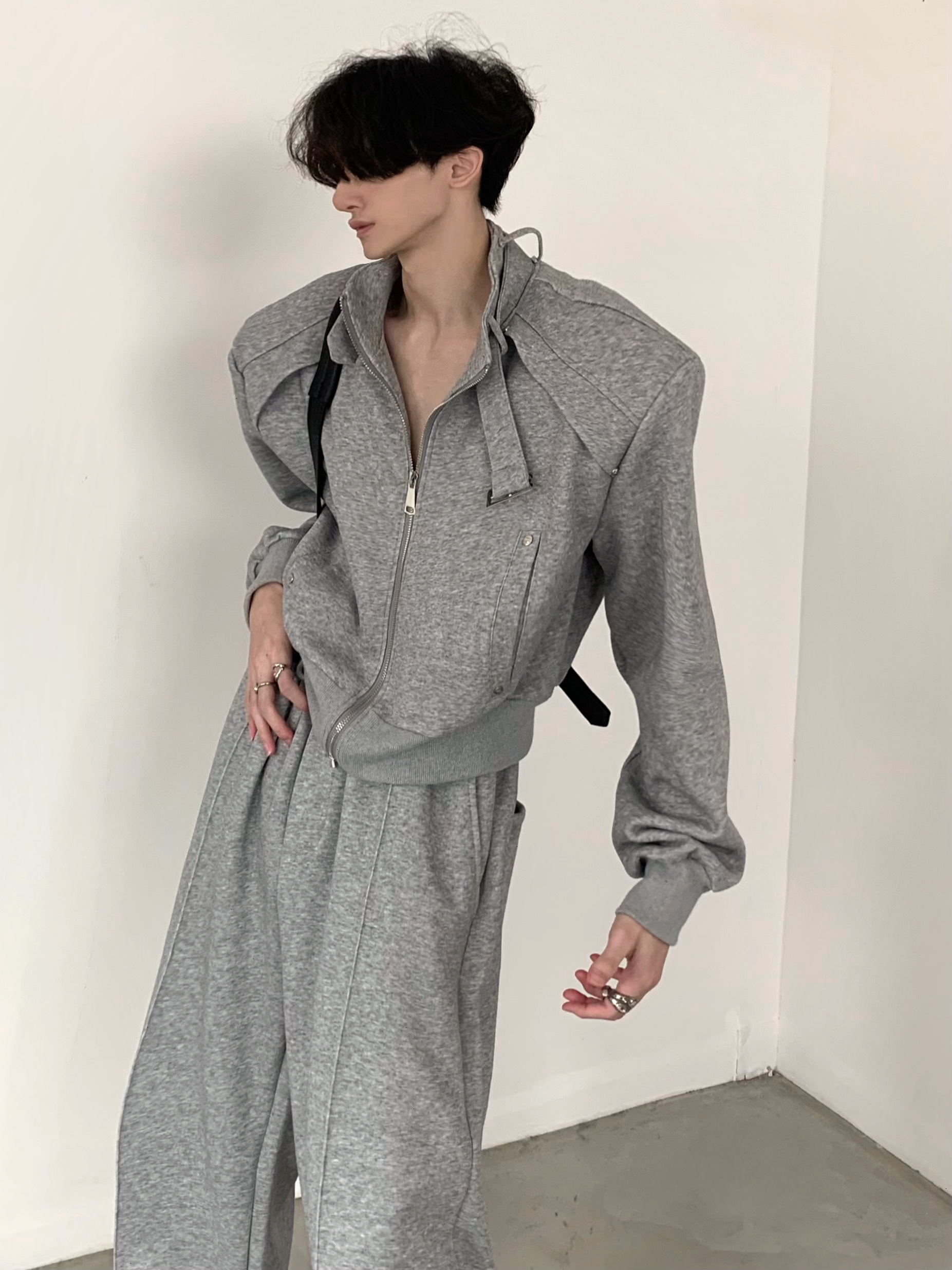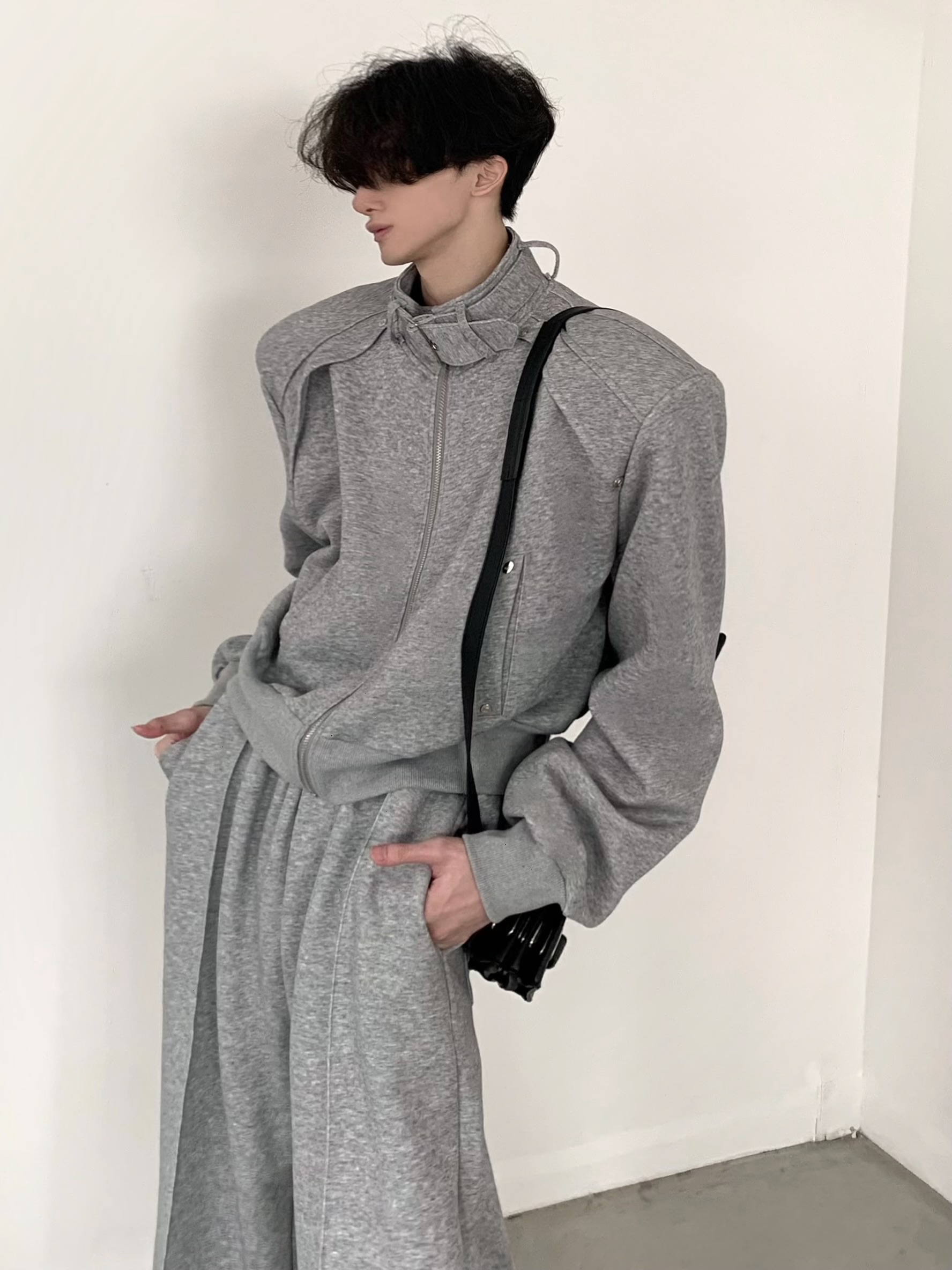 Sporty Casual Short Jacket & Wide-Leg Sporty Casual Sweatpants Setup WN5953