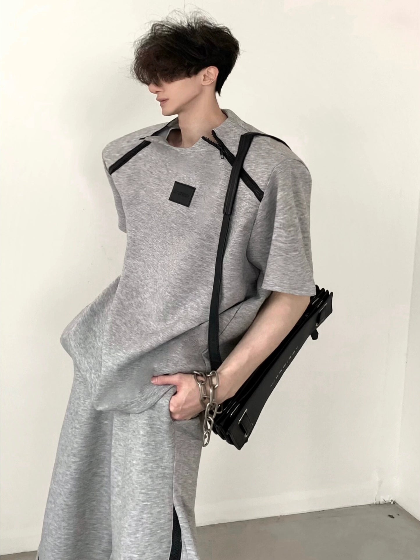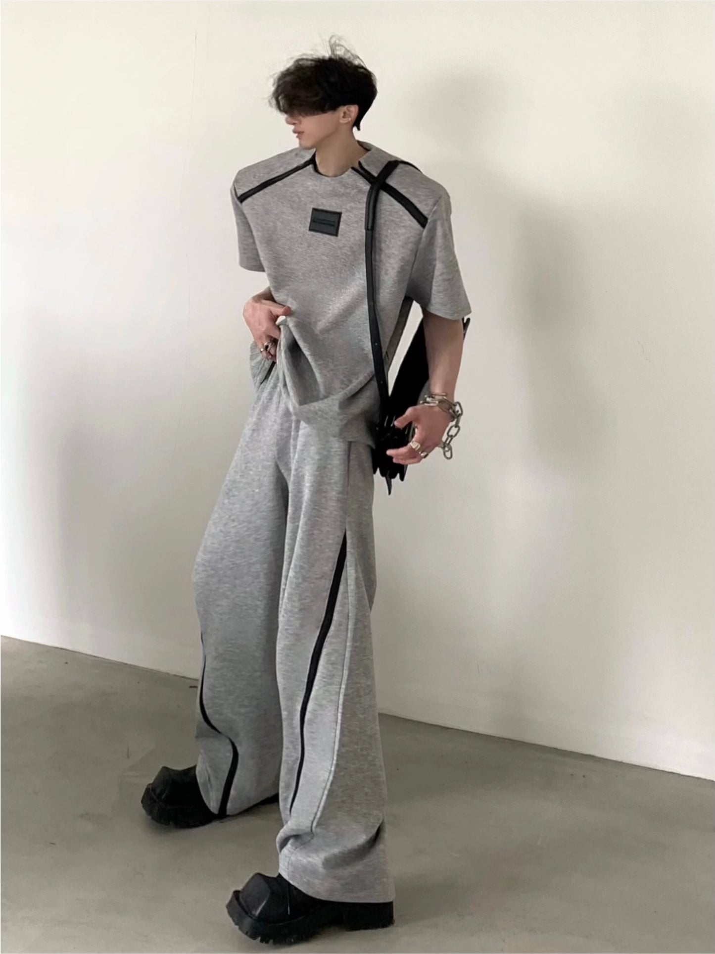 Shoulder Pad Sporty Short Sleeve T-Shirt & Wide-leg Pants Setup WN5971