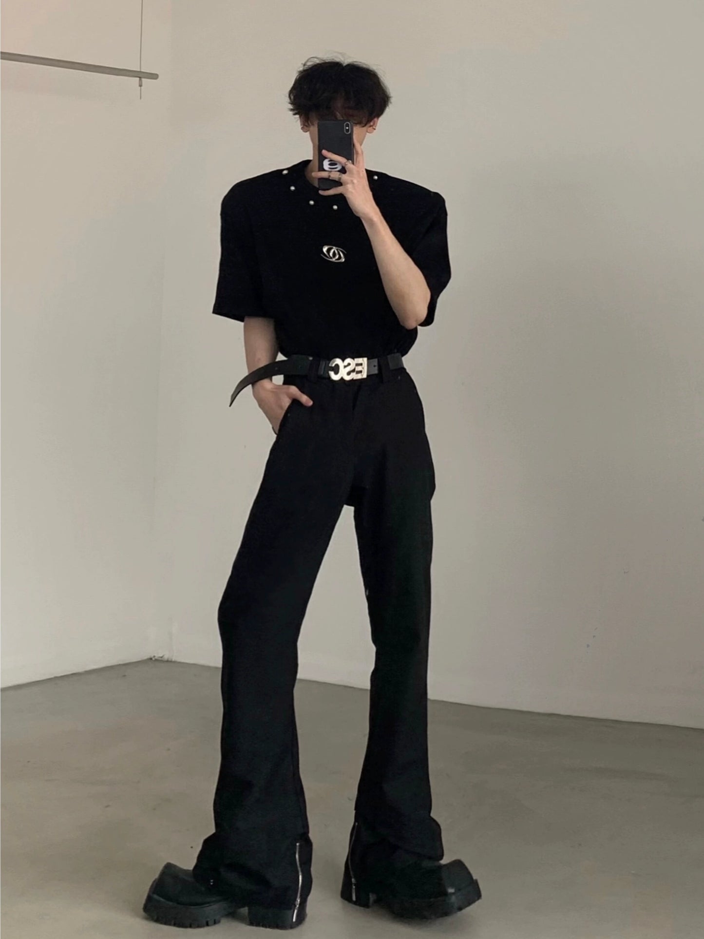 Perl Decoration Shoulder Pad Short Sleeve T-Shirt WN5990