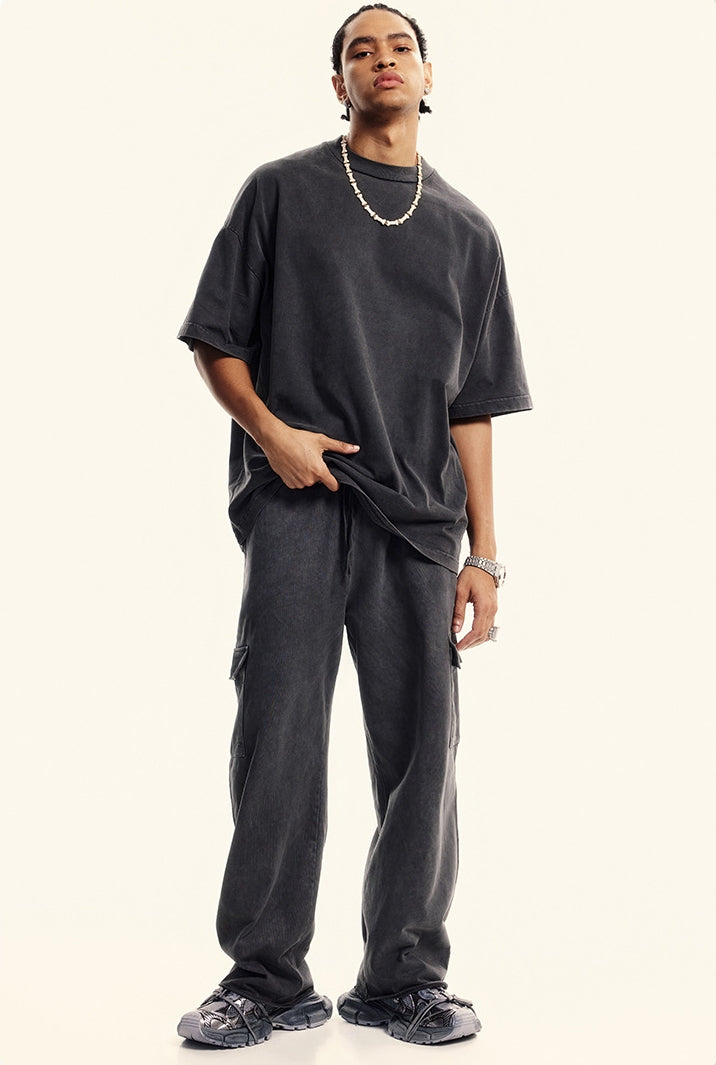 Washed Heavyweight Short Sleeve T-Shirt & Cargo Sweatpants Setup WN6063