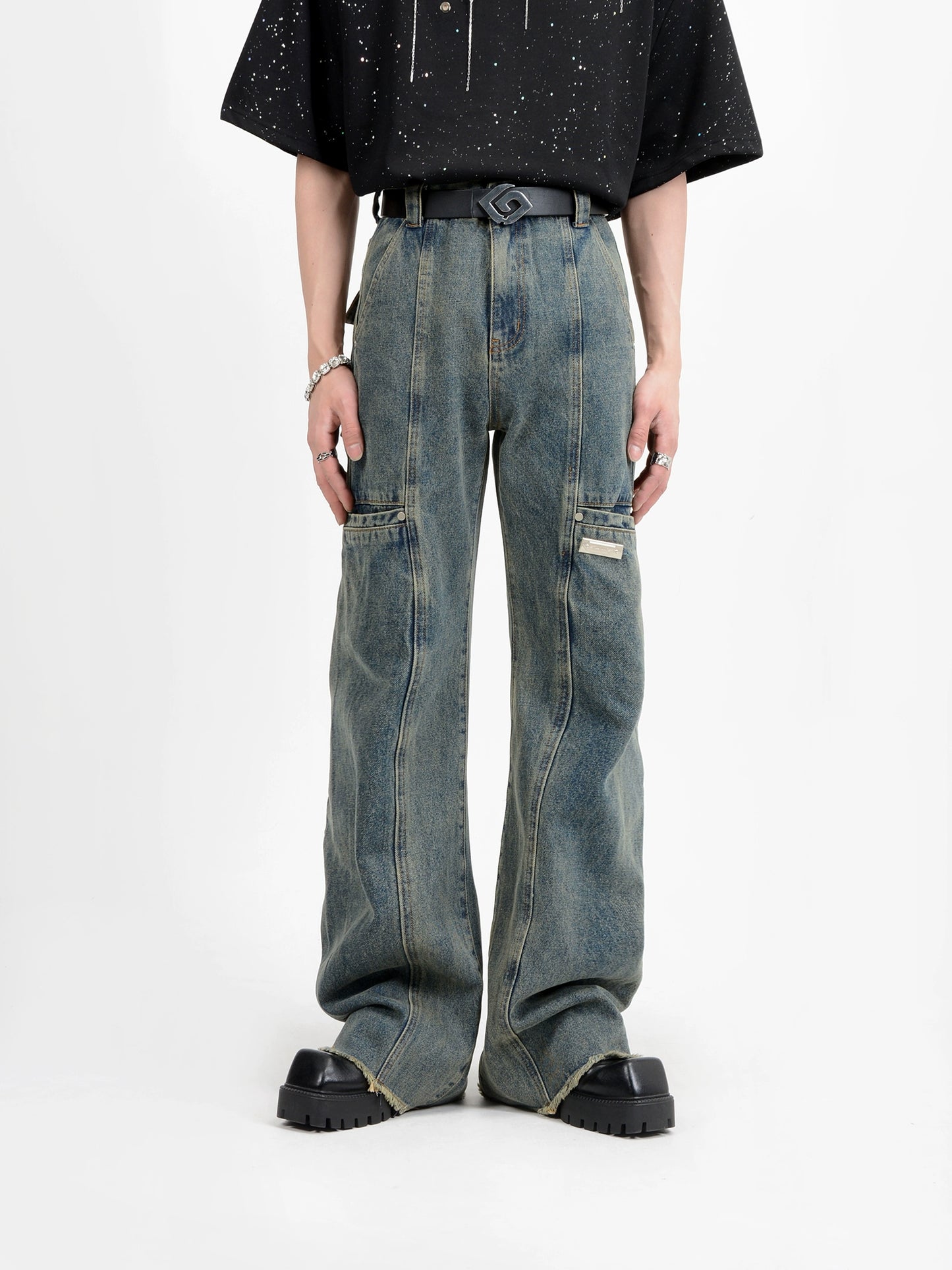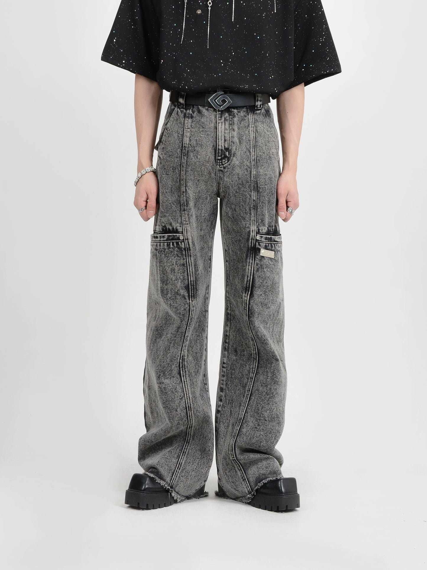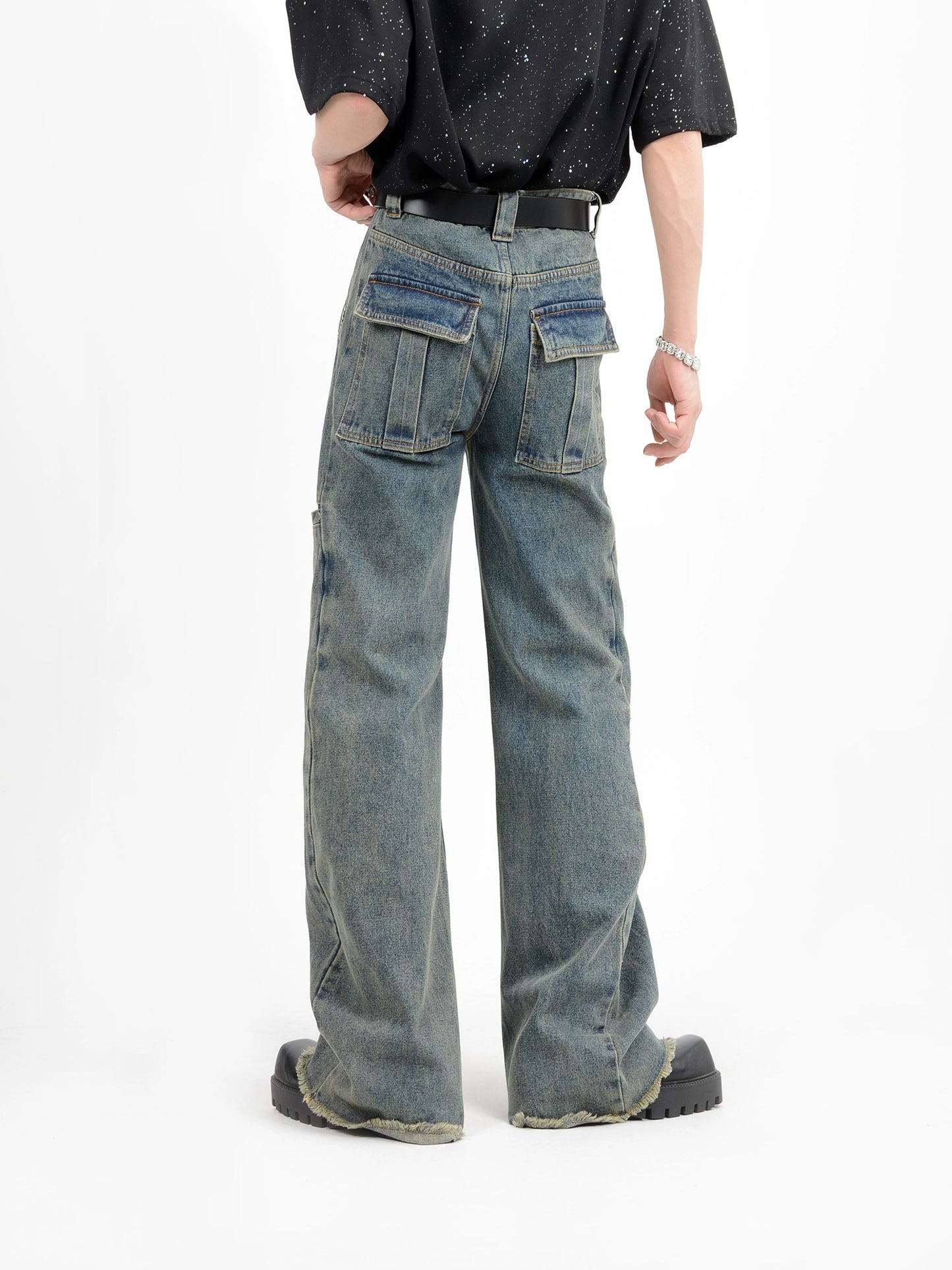 Washed Wide Leg Denim Jeans WN6112
