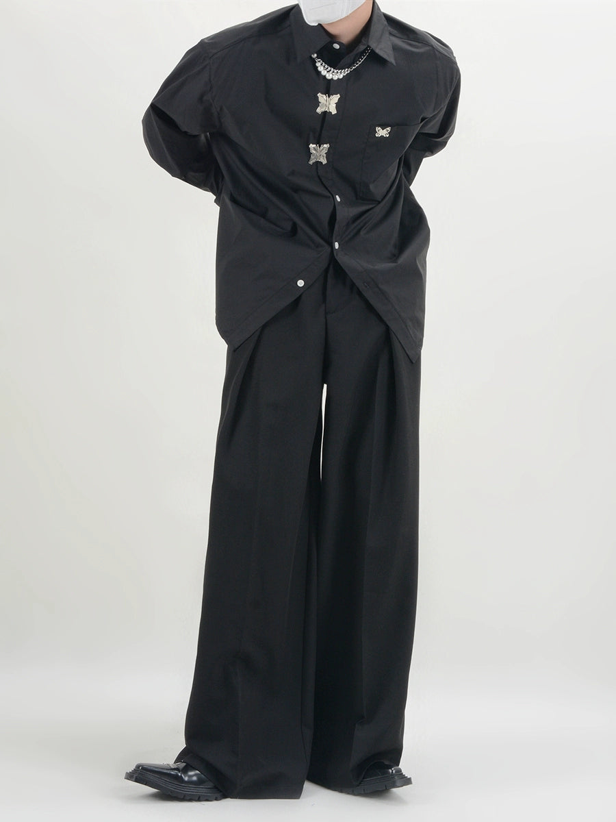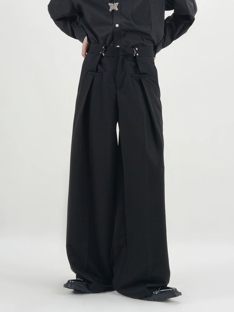 Wide-Leg Buckle Design Pleats Trousers WN6155