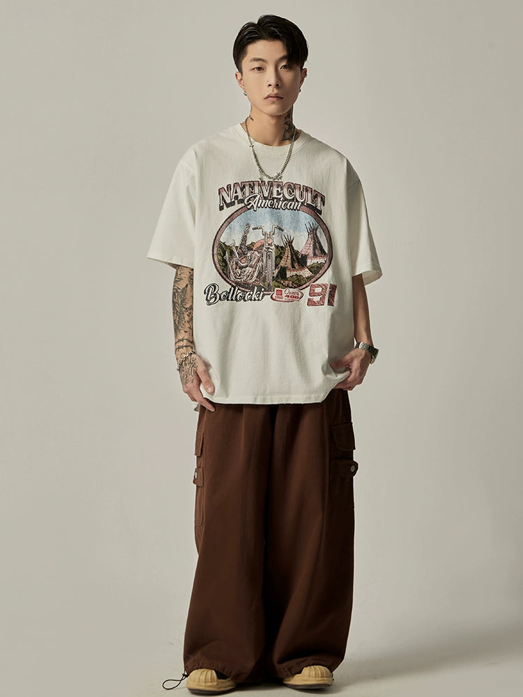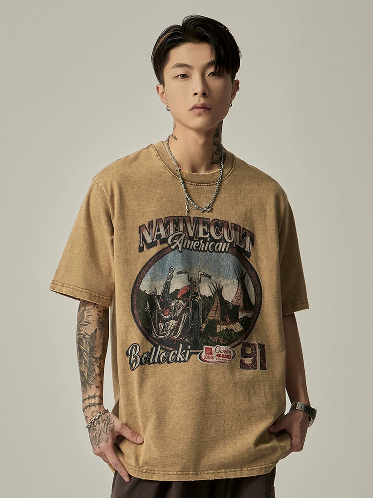 Motorcycle Illustrations Print Short Sleeve T-Shirt WN6179