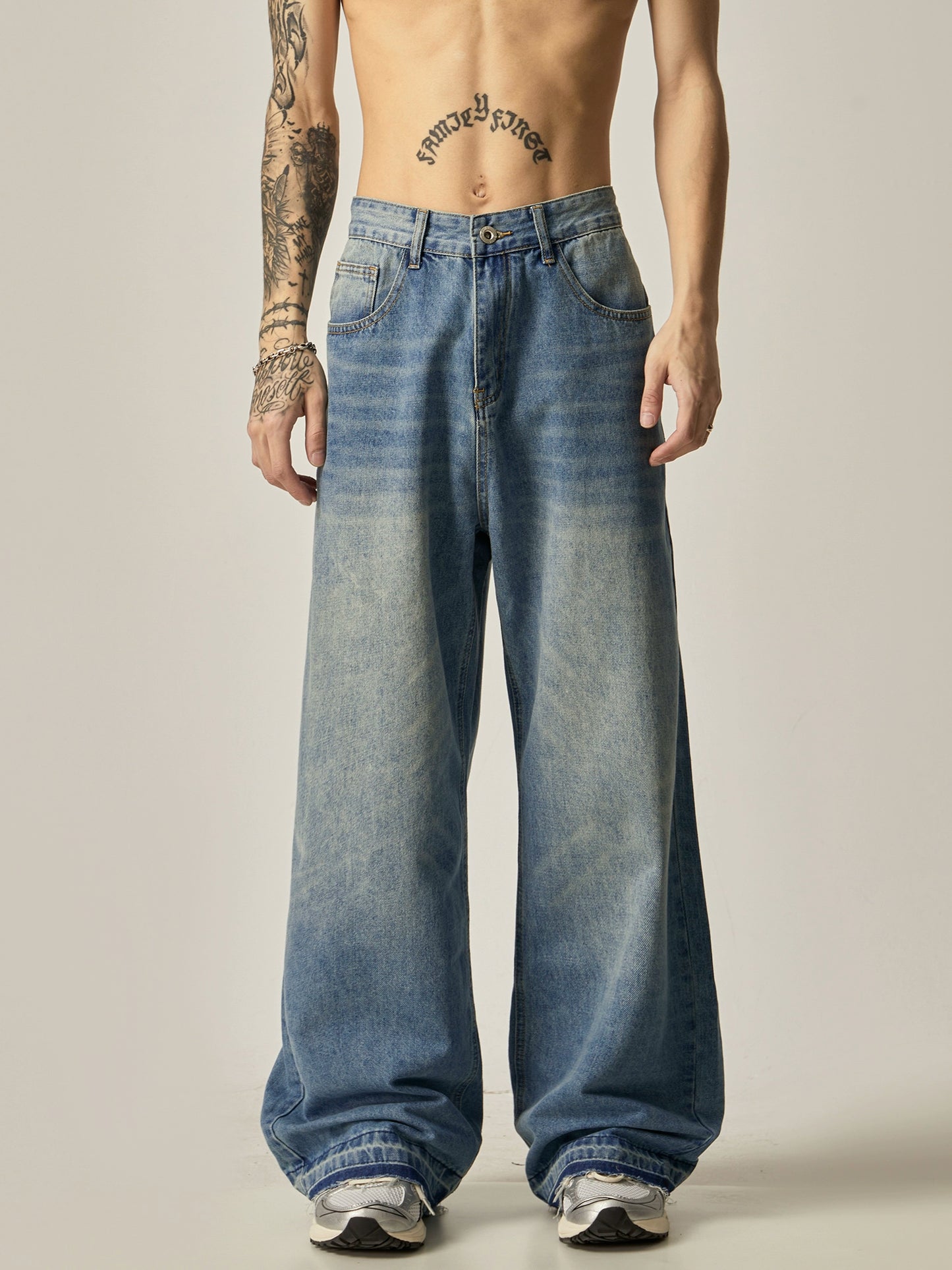 Washed Wide-leg Straight Denim Jeans WN6223
