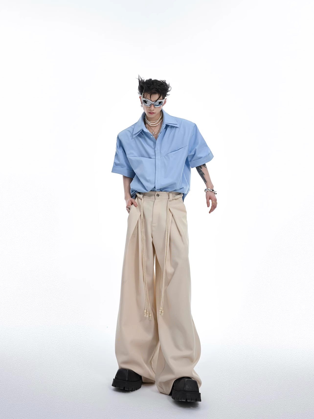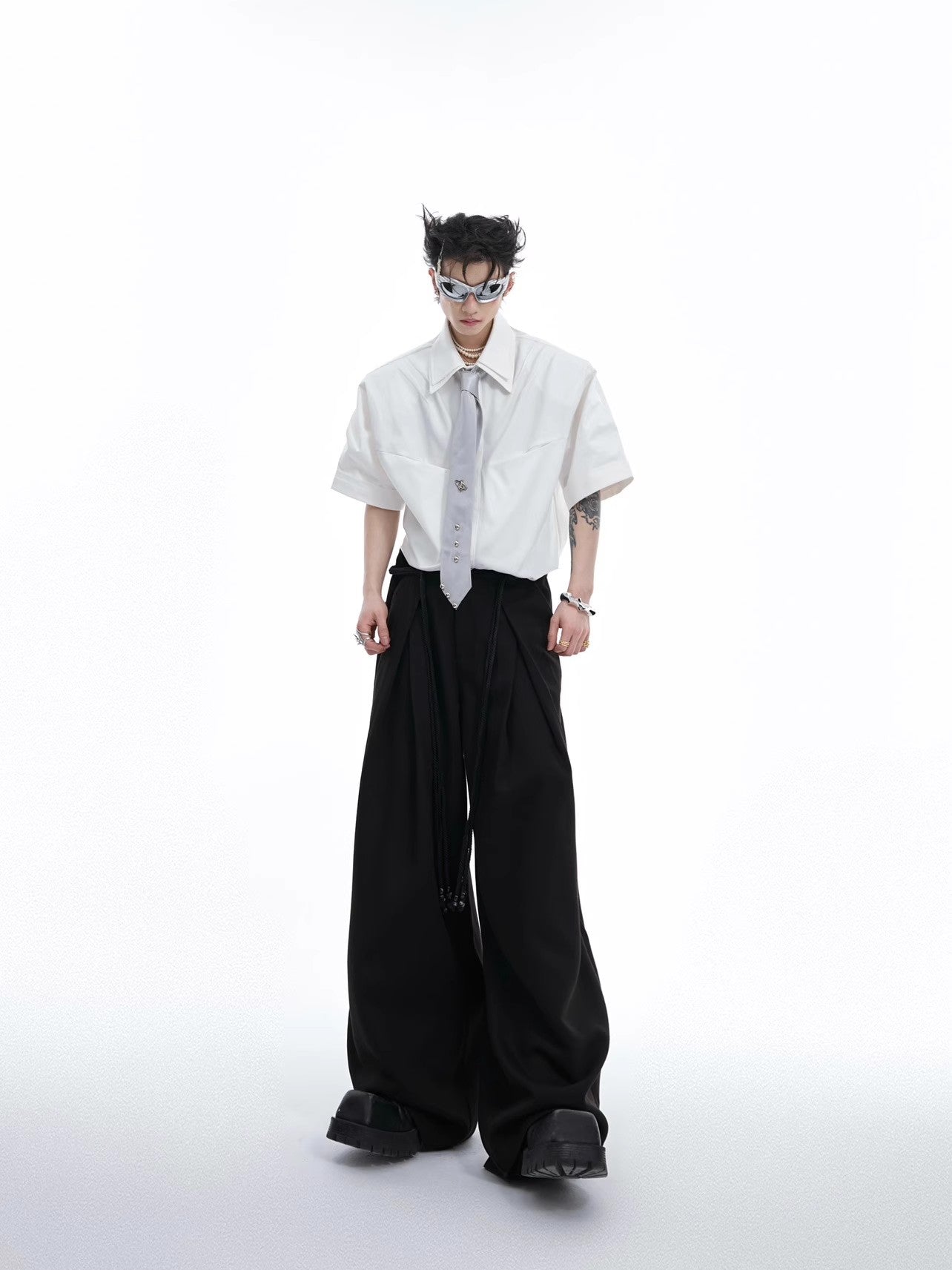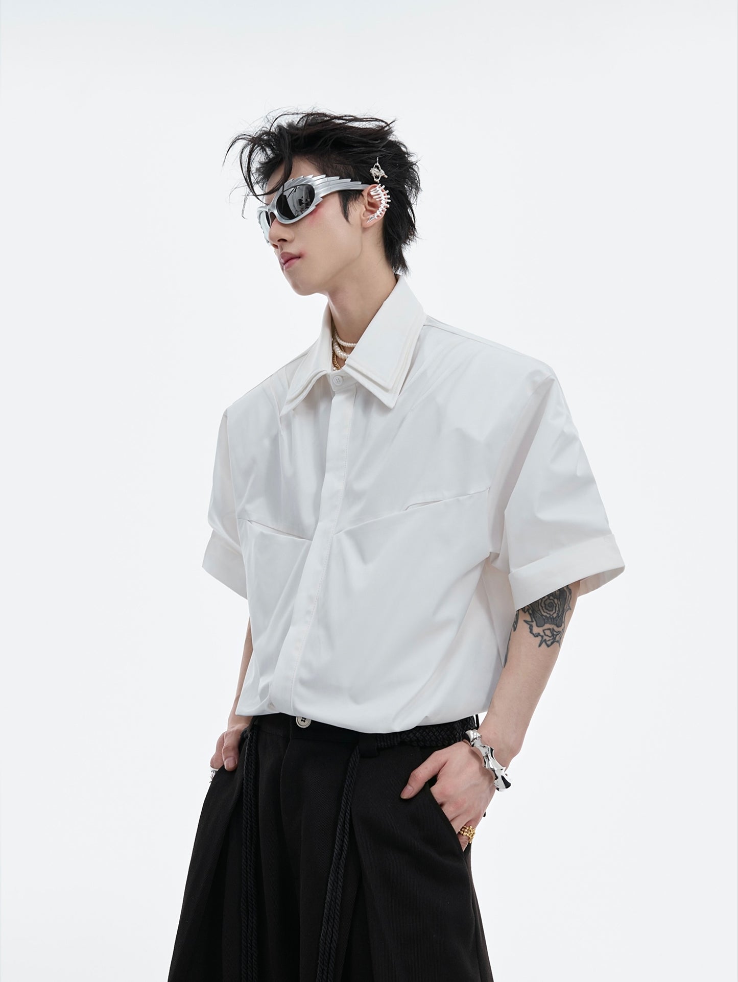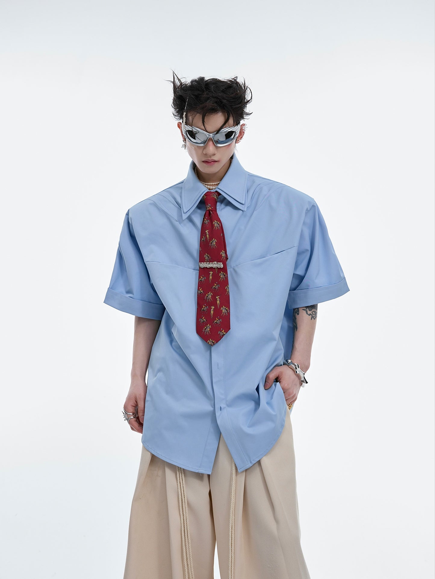 Double Layered Collar Shoulder Pads Plan Shirt WN6521