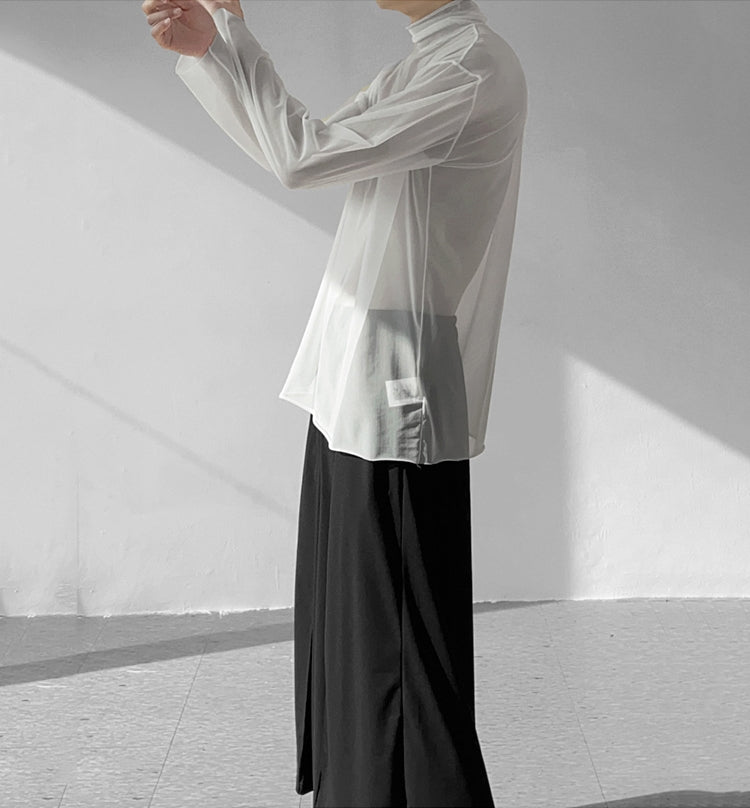 High Neck Mesh Mesh Long Sleeve T-shirt WN6802